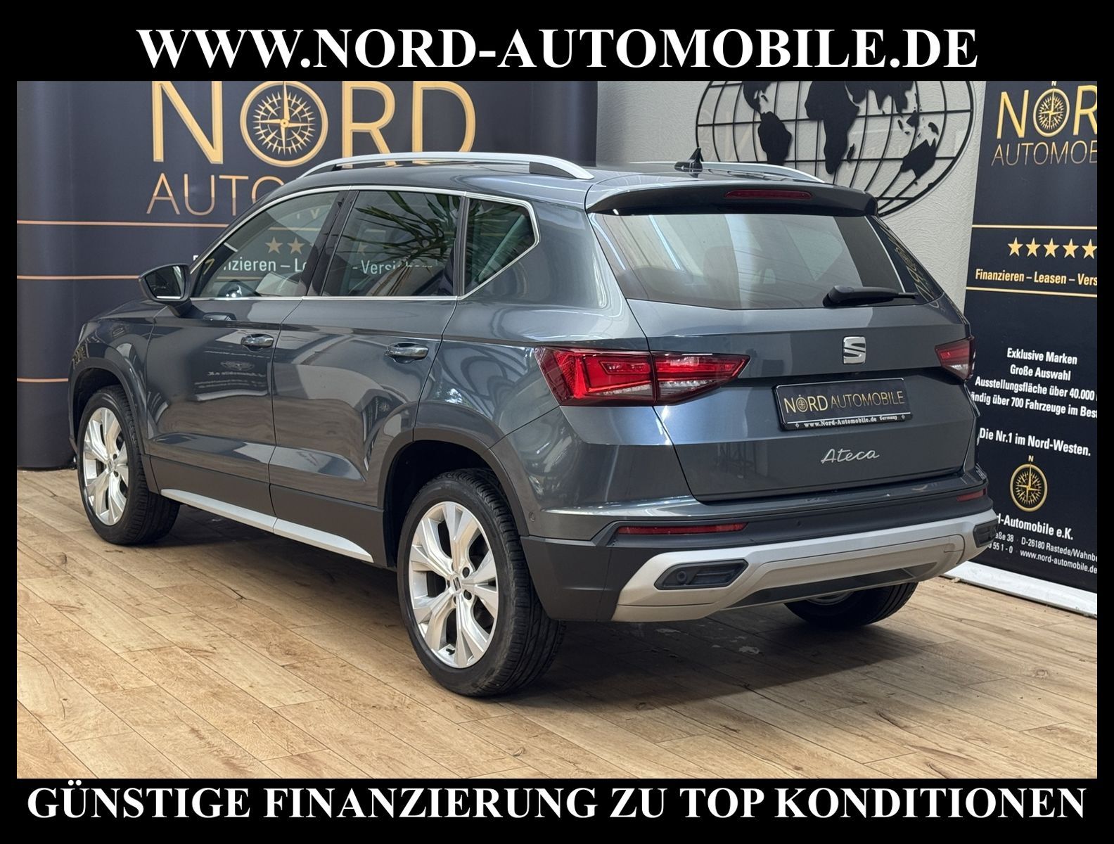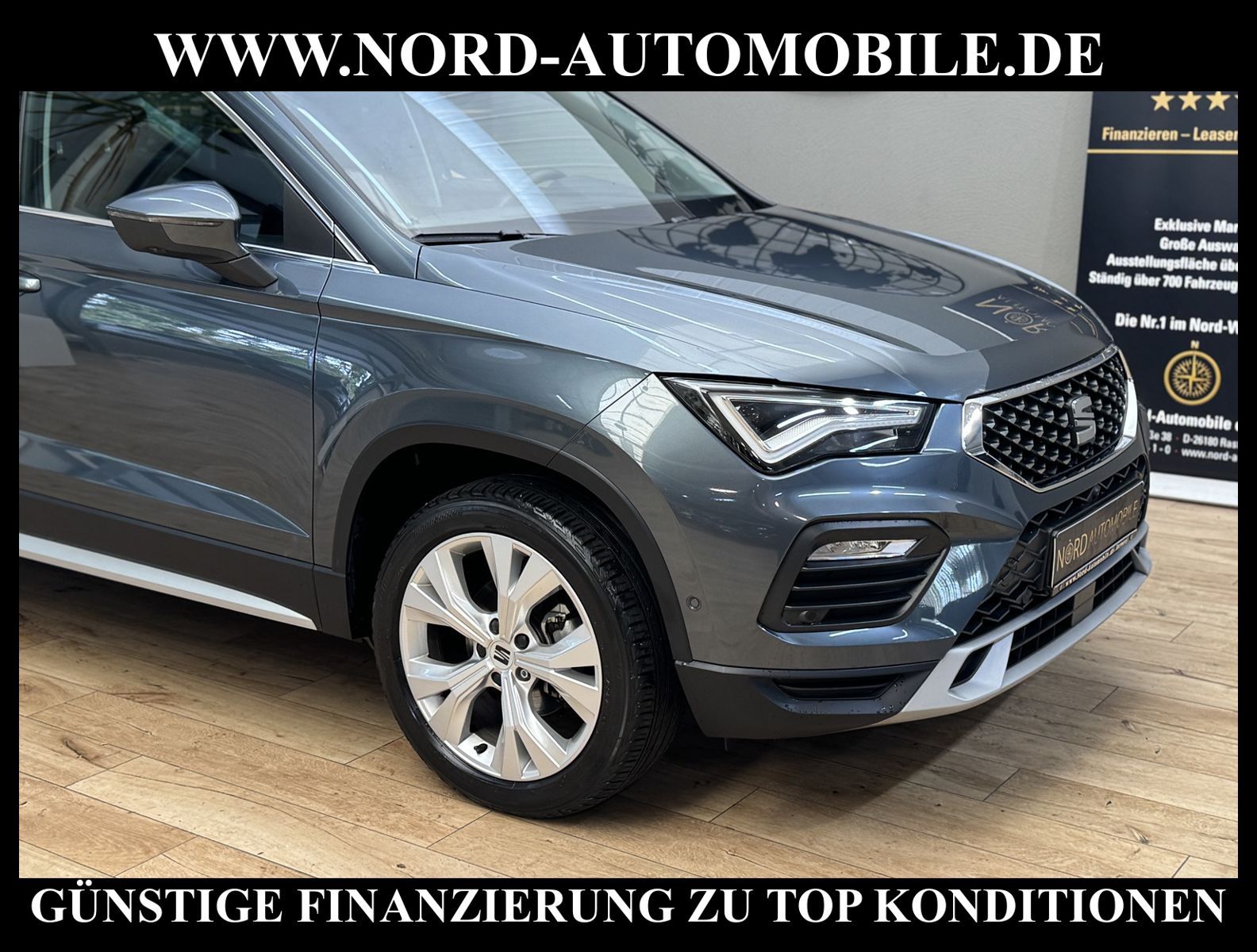 KomfortExtrasUnterhaltungBeschreibungwww.nord-automobile.de Seat Ateca X-PERIENCE Xperience 1.5 TSI 110kW 6-Gang 4 TürenAnsprechpartner: Jan Feldhus, Jonathan Steinfeld, Tom Bijman, Simon Wolff* FAHRZEUG-NUMMER: M-5631-BD * LACKIERUNG: ''Rodium'' Grau * Modelljahr:2021 * UPE brutto 37.485 ¤ * Deutsche Auslieferung * Schadstoffarm nach Abgasnorm Euro 6d * Parklenkassistent mit Einparkhilfe vorn und hinten * Sitzheizung für Vordersitze getrennt regelbar * Müdigkeitserkennung * Automatische Distanzregelung (ohne follow to stop) und Speed-Limiter * LED- Hauptscheinwerfer mit Linse * Klimaautomatik * Mit Verkehrszeichenerkennung * Spurhalteassistent * Spurwechselassistent * Mirror Link plus Wireless ''App'' plus RSE (Vorbereitung) * Kamerasystem Umgebungsansicht (Top View, 360°) * Mit Front und Rückfahrkamerasystem und zwei Seitenkameras * Digitaler Radioempfang * Full Link (MirrorLink, Apple CarPlay und Android Auto) * Soundsystem mit Subwoofer ''branded'' * Kombiinstrument digital (virtual cockpit) * Zentralverriegelung ''Keyless-Entry'' * Ledermultifunktionslenkrad, beheizbar * Komfortsitze vorn * Make-up-Spiegel links, beleuchtet, mit Abdeckung und Tasche * Höheneinstellung, manuell, für Vordersitze * Fernlichtassistent * Rücksitzbank ungeteilt, Lehne geteilt umlegbar mit Mittelarmlehne * Tagesfahrlicht mit Assistenzfahrlicht u.Coming- Leaving-home Funktion manuell * Scheiben seitlich in Wärmeschutzver- glasung, ab B-Säule und hinten dunkel eingefärbt * Lendenwirbelstütze, manuell einstellbar in Vordersitzlehnen * Leuchtweitenregulierung, autom.dynamisch * Scheibenwischer-Intervallschaltung mit Licht/Regensensor * Fensterheber mit Komfortschaltung und Abschaltsicherung * Wegfahrsperre (elektronisch) * Nebelscheinwerfer * Multifunktionsanzeige/Bordcomputer * Sicherheitsinnenspiegel automatisch abblendbar * Dachreling silber * Reifendruckkontrolle * Kindersitzverankerung für Kindersitzsystem ISO FIX * Front Assist inkl. City ANB für ACC high * Heckklappe/-Deckel elektr. betätigt (öffnen + schliessen, sensorgesteuert) * Seitenairbag vorn, mit Kopfairbag * Dynamiklenkung * Start/Stopp-Anlage mit Rekuperation * Außenspiegel elektrisch anklappbar-/ einstellbar, beheizbar, mit Beifahrerspiegelabsenkung * Navigationssystem ''Plus'' * Leichtmetallräder 7J x 18 * Nord-Automobile - Ihr starker und kompetenter Partner seit über 30 Jahren * Wir bieten Ihnen eine günstige Finanzierung auch ohne Anzahlung über die * AutoEuropaBank - Zweigniederlassung der Volkswagen Bank GmbH an * 20 XXL-Fotografien dieses Fahrzeuges finden Sie unter www.nord-automobile.de * Gerne unterbreiten wir Ihnen ein Angebot zum Ankauf Ihres bisherigen Fahrzeuges * Beim Export-Geschäft führen wir die Ausfuhranmeldung und Zulassung für Sie durch * Wir sind Meister-Werkstatt und zertifizierte GTÜ-Prüfstelle * Lernen Sie uns kennen - wir freuen uns auf Ihren Besuch * Keine Haftung für Druck & Schreibfehler. ... Klima, Klimaautomatik, Navigationssystem, Sitzheiz. vorn, Regensensor, ESP, ABS, Distronic, Parktronic System, Multifunktionslenkr., Radio, Soundsystem, Bordcomputer, Spiegel beheizbar, elektr. Fensterheber vorn, elektr. WFS, Keyless-Go, ZV mit Fernb., Fahrerairb., Beifahrerairb., Seitenairbag vorn, Kopfairbags, Leichtmetallfelgen, Nichtraucher, Nebelscheinw., Dachreling, abklappb. Spiegel, elektr. verstellb. Spiegel, Sitzhoehenv., Sitzheizung, Lichtsensor, Schadstoffklasse: Euro 6, Frontantrieb, Lederlenkrad, HSN 7593, TSN AOB, Verbrauch: 5,7/6,5/5,3 l/100 km (komb/inn/auß), CO2: 151 g/km, HU + AU wird vor Verkauf erneuert, Feinstaubplakette: 4 - Grün |