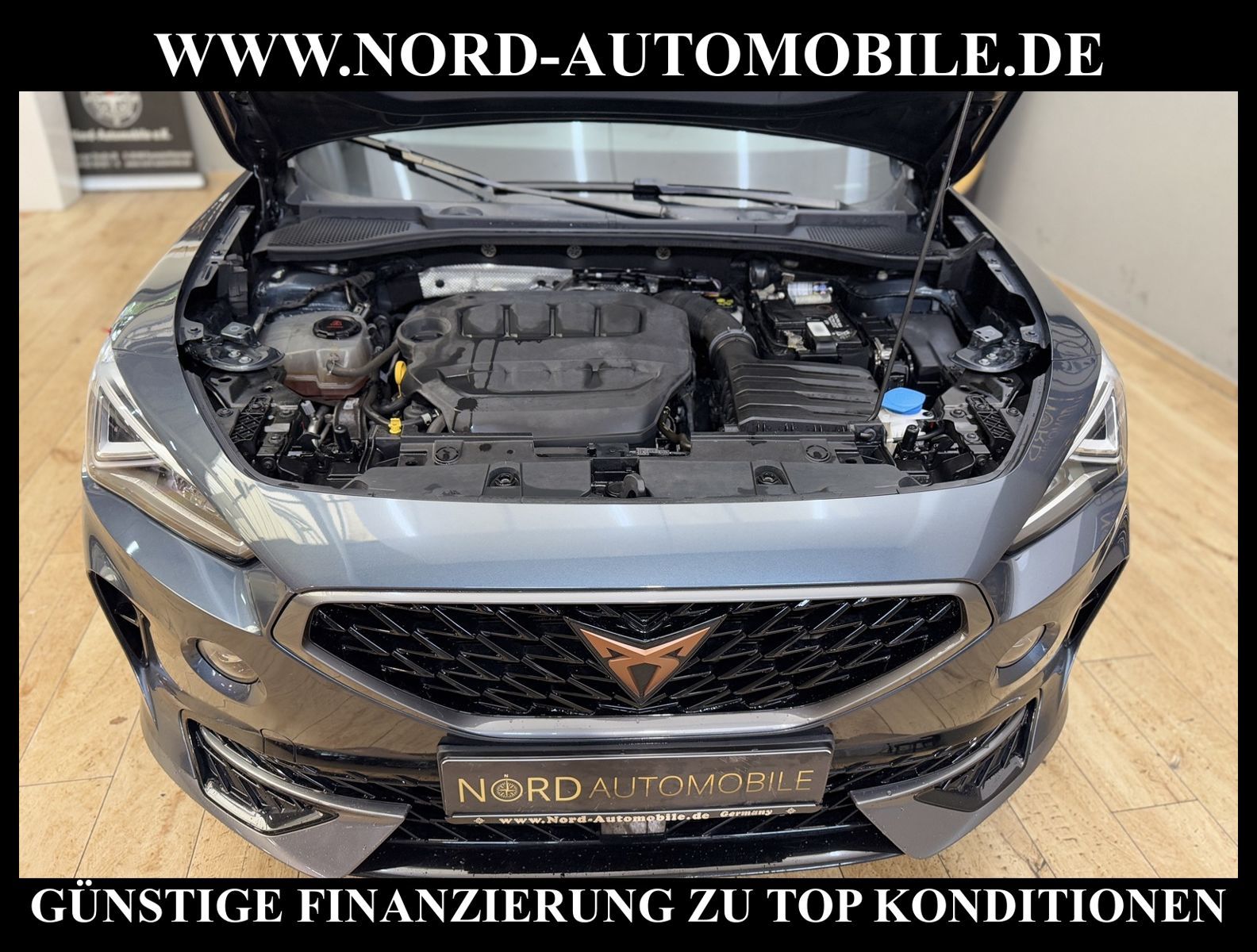 KomfortExtrasUnterhaltungBeschreibungwww.nord-automobile.de Cupra Formentor 2.0 TSI 140kW 7-Gang Automatikgetriebe 4 TürenAnsprechpartner: Jan Feldhus, Jonathan Steinfeld, Tom Bijman, Simon Wolff, Matthis Ullrich* FAHRZEUG-NUMMER: M-7844-BD * LACKIERUNG: ''Magnetic Tech'' * Modelljahr:2022 * UPE brutto 43.479 ¤ * Deutsche Auslieferung * Abgaskonzept, EU6 AP * Navigationssystem * 10''-Navigationssystem ''+'' * Full Link (MirrorLink, Apple CarPlay und Android Auto) * Automatische Distanzregelung (mit follow to stop) und Speed-Limiter * ''BEATS'': Soundsystem der Marke BEATS mit 10 Lautsprechern * Einparkhilfe * Mit Rückfahrkamerasystem * Sprachsteuerung * Telefonvorbereitung für Handy * Müdigkeitserkennung * LED-Scheinwerfer * Spurhalteassistent * Climatronic ( 3-Zonen ) mit Klimabedienteil hinten * Kombiinstrument digital (virtual cockpit) * Schlüsselloses Schließ- und Startsystem ''Keyless Advanced'' ohne Safesicherung * Lenkrad heizbar (Sport/Leder) mit Multifunktion und Schaltfunktion * Höheneinstellung, manuell, für Vordersitze * Lendenwirbelstütze, manuell einstellbar in Vordersitzlehnen * Tagesfahrlicht mit Assistenzfahrlicht u.Coming- u. Leaving-home Funktion automatisch * Rücksitzbank ungeteilt, Lehne geteilt umlegbar mit Mittelarmlehne * Einstiegleisten in den Türausschnitten (beleuchtet) * Nebelscheinwerfer * Fernlichtassistent * Scheiben seitlich in Wärmeschutzver- glasung, ab B-Säule und hinten dunkel eingefärbt * Mittelarmlehne vorn * Heckscheiben-Wisch-Waschanlage mit Intervallschaltung * Scheibenwischer-Intervallschaltung mit Licht/Regensensor * Variables Ladebodenkonzept * Fensterheber mit Komfortschaltung und Abschaltsicherung, elektrisch * Sicherheitsinnenspiegel automatisch abblendbar * Radschrauben mit Diebstahlsicherung (nicht abschließbar) * Reifendruckkontrolle * Außenspiegel elektr. verstell-, heiz- und anklappbar mit Spiegelabsenkung und Welcome Light * 7-Gang-Automatikgetriebe für Allrad * Start/Stopp-Anlage mit Rekuperation * Dynamiklenkung * 19''-Leichtmetallräder ''Exclusive'' 36/2, bearbeitet, in Silber * Heckklappe/-Deckel elektr. betätigt (öffnen + schliessen, sensorgesteuert) * Nord-Automobile - Ihr starker und kompetenter Partner seit über 30 Jahren * Wir bieten Ihnen eine günstige Finanzierung auch ohne Anzahlung über die * AutoEuropaBank - Zweigniederlassung der Volkswagen Bank GmbH an * 20 XXL-Fotografien dieses Fahrzeuges finden Sie unter www.nord-automobile.de * Gerne unterbreiten wir Ihnen ein Angebot zum Ankauf Ihres bisherigen Fahrzeuges * Beim Export-Geschäft führen wir die Ausfuhranmeldung und Zulassung für Sie durch * Wir sind Meister-Werkstatt und zertifizierte GTÜ-Prüfstelle * Lernen Sie uns kennen - wir freuen uns auf Ihren Besuch * Keine Haftung für Druck & Schreibfehler. ... Klima, Klimaautomatik, Automatik, Navigationssystem, Regensensor, ESP, ABS, Distronic, Multifunktionslenkr., Soundsystem, Tel. m. Freisprech., Bordcomputer, Spiegel beheizbar, elektr. Fensterheber vorn, elektr. WFS, ZV mit Fernb., Fahrerairb., Beifahrerairb., Leichtmetallfelgen, Nichtraucher, Nebelscheinw., abklappb. Spiegel, elektr. verstellb. Spiegel, Mittelarmlehne, Lichtsensor, aus erster Hand, Schadstoffklasse: Euro 6, Lederlenkrad, HSN 7593, TSN ARA, Verbrauch: 7,0/8,9/5,9 l/100 km (komb/inn/auß), CO2: 177 g/km, HU + AU wird vor Verkauf erneuert, Feinstaubplakette: 4 - Grün |