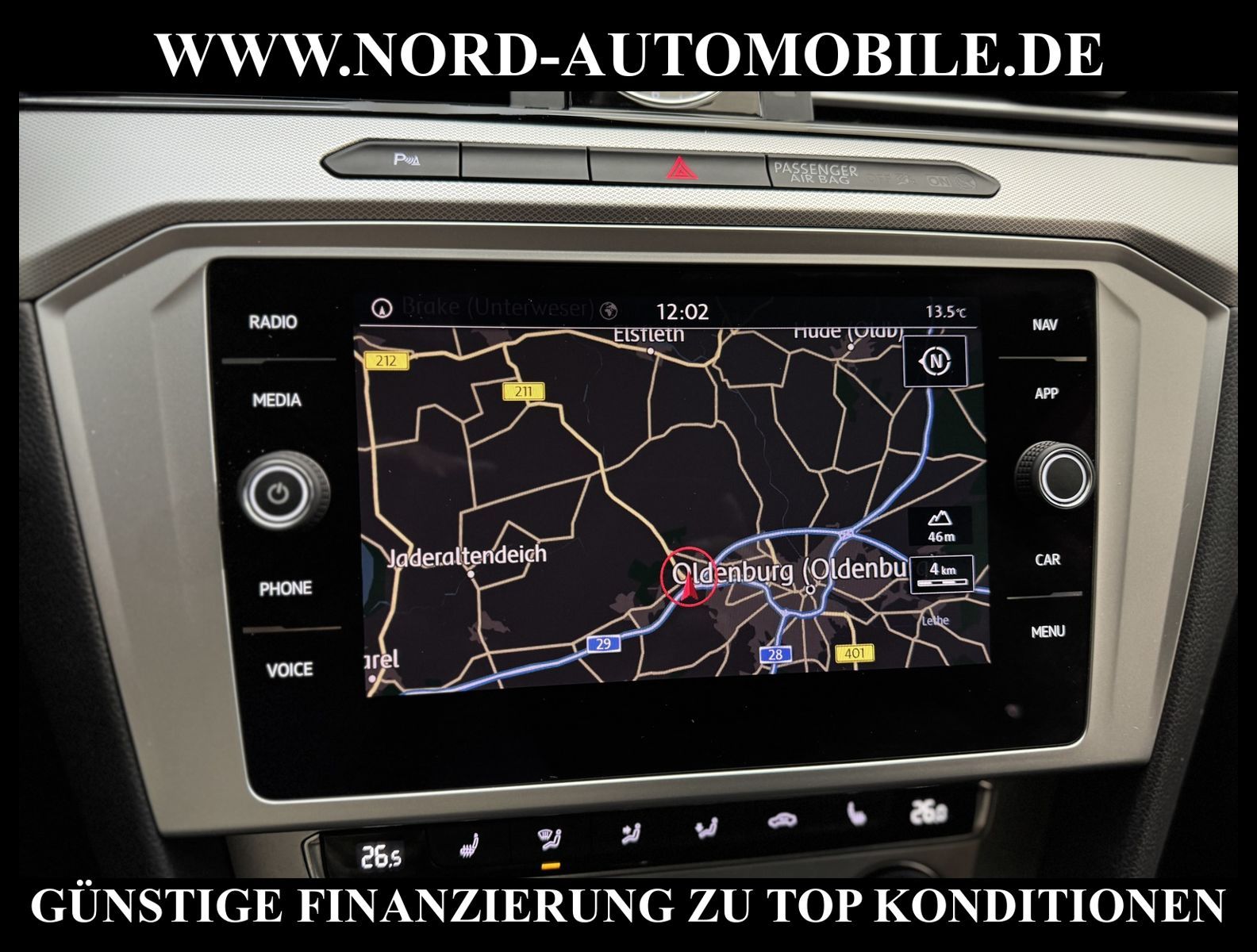 KomfortExtrasUnterhaltungBeschreibungwww.nord-automobile.de Volkswagen Passat Variant Comfortline 2.0 TDI SCR 110kW 6-Gang 4 TürenAnsprechpartner: Jan Feldhus, Jonathan Steinfeld, Tom Bijman, Simon Wolff* FAHRZEUG-NUMMER: TEST-63816-BD * LACKIERUNG: Uranograu * Modelljahr: 2019 * 1.-Hand * Ausstattung Comfortline * Abgasnorm Euro 6 * Deutsche Auslieferung * Navigationssystem ''Discover Media'' mit TFT-Touchscreen * Automatische Distanzregelung (ohne follow to stop) und Speed-Limiter * Rückfahrkamera ''Rear View'' * Einparkhilfe vorne und hinten * Müdigkeitserkennungserkennung * Business-Paket Premium mit Navigation * Climatronic ( 3-Zonen ) mit Klimabedienteil hinten * Zentralverriegelung ''Keyless-Go'' ohne Safesicherung * Verkehrszeichenerkennung * Front Assist inkl. City ANB für ACC high * Sitzheizung für Vordersitze getrennt regelbar * Radio ''Composition Media'' * 2 USB-Schnittstellen auch für iPod/iPhone, inkl. Multimediabuchse AUX-IN * Mobiltelefon Schnittstelle Comfort (inkl. Bluetooth-/Audio-Schnittstelle) * Telefonschnittstelle ''Comfort'' * Audiosystem Composition Media (Touchscreen, Radio/CD-Player, MP3, Bluetooth) * Multifunktionsanzeige/Bordcomputer ''Medium'' * Sitzbezüge in Stoff, Dessin ''Weave'' * Dekoreinlagen ''Diamond Silver'' für Instrumententafel und Türverkleidungen * Rücksitzbank ungeteilt, Lehne geteilt umlegbar (dreiteilig) mit Mittelarmlehne * Komfortsitze vorn * Höheneinstellung, manuell f.Vordersitze plus Sitzflächen-Neigungs u.Tiefeneins. links, plus Lehneneinst.elektr.links * Ledermultifunktionslenkrad * Scheibenwaschdüsen vorn automatisch beheizt * Nebelscheinwerfer und Abbiegeleuchte * Tagesfahrlicht mit Assistenzfahrlicht und coming home Funktion * Scheibenwischer-Intervallschaltung mit Licht/Regensensor * Lendenwirbelstütze, elektr. einstellbar für linke Vordersitzlehne mit Massage- funktion * Kindersitzverankerung für Kindersitzsystem I-Size, 2 x top tether * Airbag für Fahrer und Beifahrer, mit Beifahrerairbag-Deaktivierung * Außenspiegel elektr. verstell-, heiz- und anklappbar * Sicherheitsinnenspiegel automatisch abblendbar * Kopfairbagsystem für Front- und Fondpassagiere inkl. Seitenairbags vorn * Servolenkung, geschwindigkeitsabhängig (Servotronic) * Elektronische Parkbremse inkl. Auto-Hold-Funktion * Berganfahrassistent * Start/Stopp-Anlage mit Rekuperation * 6-Gang-Schaltgetriebe * Leichtmetallräder ''Sepang'' 6, 5 J x 16 * Reifenkontrollanzeige * Nord-Automobile - Ihr starker und kompetenter Partner seit über 30 Jahren * Wir bieten Ihnen eine günstige Finanzierung auch ohne Anzahlung über die * AutoEuropaBank - Zweigniederlassung der Volkswagen Bank GmbH an * 20 XXL-Fotografien dieses Fahrzeuges finden Sie unter www.nord-automobile.de * Gerne unterbreiten wir Ihnen ein Angebot zum Ankauf Ihres bisherigen Fahrzeuges * Beim Export-Geschäft führen wir die Ausfuhranmeldung und Zulassung für Sie durch * Wir sind Meister-Werkstatt und zertifizierte GTÜ-Prüfstelle * Lernen Sie uns kennen - wir freuen uns auf Ihren Besuch * Keine Haftung für Druck & Schreibfehler. ... Klima, Klimaautomatik, Navigationssystem, Sitzheiz. vorn, Regensensor, ESP, ABS, Distronic, Multifunktionslenkr., CD, Radio, Tel. m. Freisprech., Bordcomputer, Spiegel beheizbar, elektr. Fensterheber vorn, elektr. WFS, Keyless-Go, ZV mit Fernb., Fahrerairb., Beifahrerairb., Seitenairbag vorn, Kopfairbags, Leichtmetallfelgen, Nebelscheinw., Servolenkung, Sitzbank teilbar, Dachreling, abklappb. Spiegel, elektr. verstellb. Spiegel, Mittelarmlehne, Lendenwirbelst., Sitzhoehenv., orthop. Fahrersitz, Sitzheizung, Lichtsensor, Waermeschutzvergl., Schadstoffklasse: Euro 6, Diesel, Frontantrieb, Lederlenkrad, HSN 0603, TSN BQS, Verbrauch: 4,1/4,8/3,7 l/100 km (komb/inn/auß), CO2: 140 g/km, Feinstaubplakette: 4 - Grün |