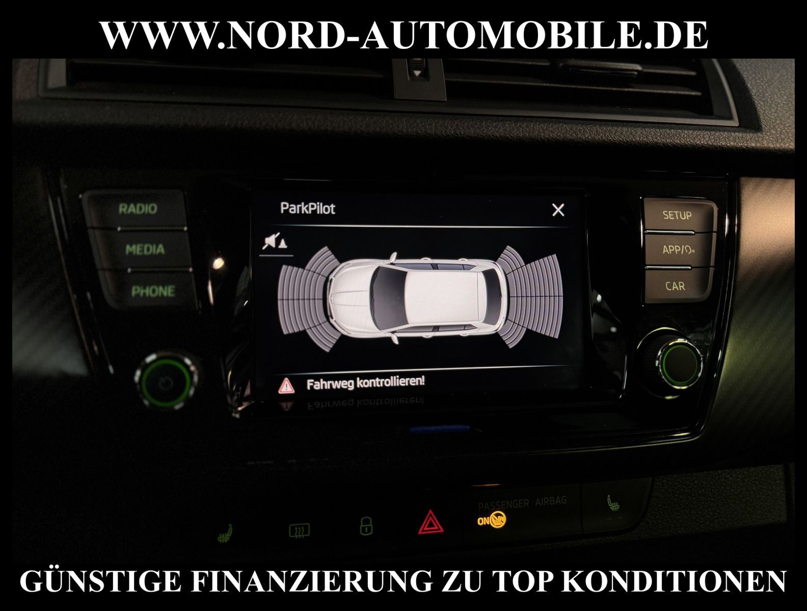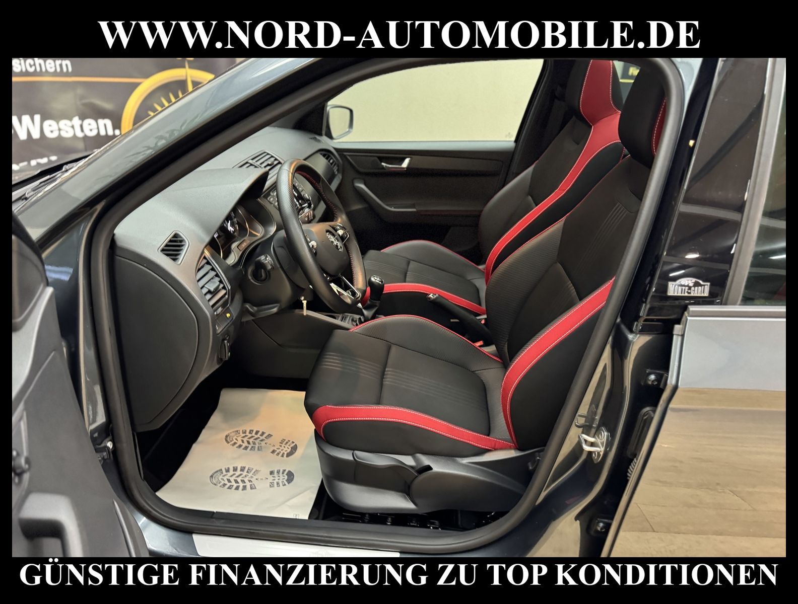 KomfortExtrasUnterhaltungBeschreibungwww.nord-automobile.de Skoda Fabia Monte Carlo 1.0 TSI 70kW 5-Gang 4 TürenAnsprechpartner: Jan Feldhus, Jonathan Steinfeld, Tom Bijman, Simon Wolff Matthis Ullrich* FAHRZEUG-NUMMER: M-8952-BD * LACKIERUNG: Quarz-Grau Metallic * Modelljahr:2021 * UPE brutto 22.467 ¤ * Auslieferungsland Deutschland * Schadstoffarm nach Abgasnorm Euro 6d-TEMP * Monte Carlo * Sitzheizung vorn * LED-Scheinwerfer * Radio ''SWING/SWING PLUS'' * Freisprechanlage Telefon mit Bluetooth * Klimaanlage Climatronic 2-Zonen - Staub- und Pollenfilter mit Aktivkohlefilter - Handschuhfach mit Kühlfunktion * SmartLink (MirrorLink, Apple CarPlay und Android Auto) * ''PARK DISTANCE CONTROL'' Parksensoren vo. u. hi. * Soundpaket * Extern, USB Typ-A, 1x USB Buchse * Sitzbezüge in Leder * Panorama Schiebedach * Ledermultifunktionslenkrad * Leuchtweitenregulierung, autom/dynamisch mit Kurvenfahrlicht * Rücksitzbank ungeteilt, Lehne geteilt umlegbar * Tagesfahrlichtschaltung * Sitz vorn höhenverstellbar mit Lendenwirbelstütze beidseitig * ''CRUISE CONTROL'' mit Speedlimiter * Sport-Komfortsitze vorn * Außenspiegel elektr. verstell- und heizbar * DAB - Digitaler Radioempfang * Zentralverriegelung m. Funkfernbedienung * Wegfahrsperre elektronisch * Scheiben seitlich in Wärmeschutzverglasung und hinten dunkel eingefärbt * Airbag FS und BFS, ohne Knieairbag, mit BFS-Deaktivierung * Front Assist inkl. City ANB ohne ACC * Radschrauben mit Diebstahlsicherung (nicht abschließbar) * Elektrische Fensterheber vorn * Servolenkung * Leichtmetallräder ''ITALIA'', schwarz, 7J x 16'' - 4 Stk. (schwarz) * Nord-Automobile - Ihr starker und kompetenter Partner seit über 30 Jahren * Wir bieten Ihnen eine günstige Finanzierung auch ohne Anzahlung über die * AutoEuropaBank - Zweigniederlassung der Volkswagen Bank GmbH an * 20 XXL-Fotografien dieses Fahrzeuges finden Sie unter www.nord-automobile.de * Gerne unterbreiten wir Ihnen ein Angebot zum Ankauf Ihres bisherigen Fahrzeuges * Beim Export-Geschäft führen wir die Ausfuhranmeldung und Zulassung für Sie durch * Wir sind Meister-Werkstatt und zertifizierte GTÜ-Prüfstelle * Lernen Sie uns kennen - wir freuen uns auf Ihren Besuch * Keine Haftung für Druck & Schreibfehler. ... Klima, Klimaautomatik, Sitzheiz. vorn, ESP, ABS, Schiebedach, Multifunktionslenkr., Radio, Tel. m. Freisprech., Bordcomputer, Tempomat, Spiegel beheizbar, elektr. Fensterheber vorn, elektr. WFS, ZV mit Fernb., Fahrerairb., Beifahrerairb., Kopfairbags, Leichtmetallfelgen, Nichtraucher, Nebelscheinw., Servolenkung, Sportsitze/Schalensitze, Sitzbank teilbar, elektr. verstellb. Spiegel, Lendenwirbelst., Sitzhoehenv., orthop. Fahrersitz, Sitzheizung, Waermeschutzvergl., aus erster Hand, Schadstoffklasse: Euro 6, Frontantrieb, Lederlenkrad, HSN 8004, TSN ASR, Verbrauch: 4,5/5,7/3,9 l/100 km (komb/inn/auß), CO2: 127 g/km, HU + AU wird vor Verkauf erneuert, Feinstaubplakette: 4 - Grün |