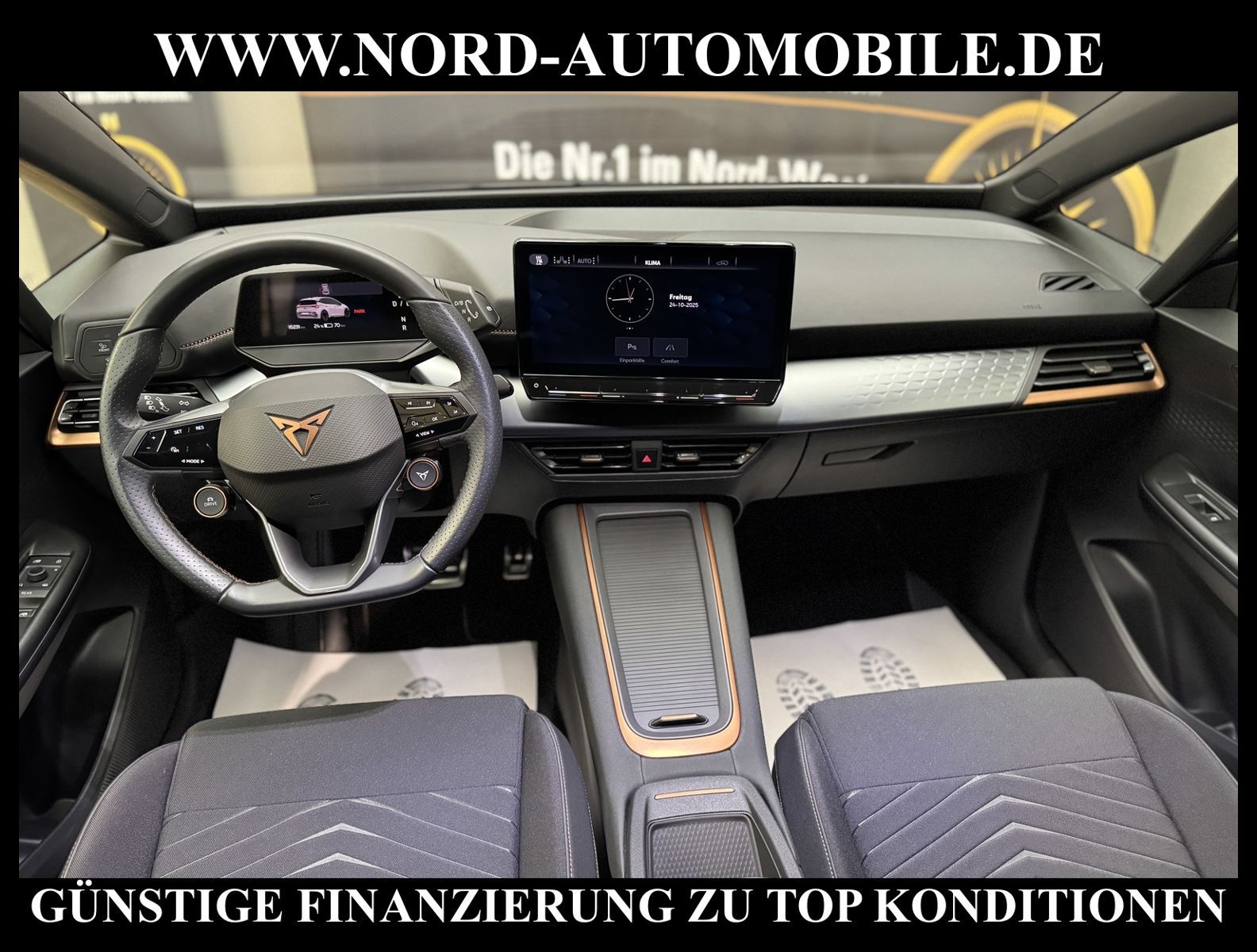 KomfortExtrasUnterhaltungBeschreibungwww.nord-automobile.de CUPRA BORNAnsprechpartner:Jan Feldhus, Jonathan Steinfeld, Tom Bijman, Simon Wolff, Matthis Ullrich* FAHRZEUG-NUMMER: M-1340-BD * LACKIERUNG: Vapor Grau * Deutsche Auslieferung * Mit Batteriezertifikat! * Modelljahr:2022 * UPE brutto 41.279 ¤ * Mit Rückfahrkamerasystem * Mit Verkehrszeichenerkennung * Spurhalteassistent * Fernlichtassistent * Sprachsteuerung * Mit Verkehrszeichenerkennung * Digitaler Radioempfang * Mirror Link plus Wireless ''App''plus RSE (Vorbereitung) * Automatische Distanzregelung(mit follow to stop) und Speed-Limiter * LED-Scheinwerfer * Telefonvorbereitung für Handy * Auspark- und Spurwechselassistent und Ausstiegswarner * Zentralverriegelung ''Keyless-Go''ohne Safesicherung * Mit Ausweichunterstützung mit Abbiegeassistent * Sitzheizung für Vordersitze getrennt regelbar * Automatische Distanzregelung (mit follow to stop) und Speed-Limiter * Höheneinstellung, manuell, li.Vordersitz * Rücksitzbank ungeteilt, Lehne geteilt umlegbar * Sicherheitsinnenspiegel automatisch abblendbar * Scheibenwischer-Intervallschaltung mit Licht/Regensensor * Außenspiegel elektrisch anklappbar-/einstellbar, beheizbar, mit Beifahrerspiegelabsenkung * Airbag FS und BFS, ohne Knieairbag, mit BFS-Deaktivierung * 19''-Ganzjahresreifen + 19''-Leichmetallräder ''Typhoon'', bearbeitet, in Kupfer * Dynamiklenkung * Reifendruckkontrolle * Müdigkeitserkennung * Nord-Automobile - Ihr starker und kompetenter Partner seit über 20 Jahren * Wir bieten Ihnen eine günstige Finanzierung auch ohne Anzahlung über die * AutoEuropaBank - Zweigniederlassung der Volkswagen Bank GmbH an * 20 XXL-Fotografien dieses Fahrzeuges finden Sie unter www.nord-automobile.de * Gerne unterbreiten wir Ihnen ein Angebot zum Ankauf Ihres bisherigen Fahrzeuges * Beim Export-Geschäft führen wir die Ausfuhranmeldung und Zulassung für Sie durch * Wir sind Meister-Werkstatt und zertifizierte DEKRA-Prüfstelle * Lernen Sie uns kennen - wir freuen uns auf Ihren Besuch * Keine Haftung für Druck & Schreibfehler. ... Klima, Klimaautomatik, Automatik, Navigationssystem, Sitzheiz. vorn, Regensensor, ESP, ASR, ABS, Distronic, Parktronic System, Multifunktionslenkr., Radio, Bordcomputer, Tempomat, Spiegel autom. abblendbar, Spiegel beheizbar, elektr. Fensterheber vorn+hinten, elektr. WFS, Keyless-Go, ZV mit Fernb., Fahrerairb., Beifahrerairb., Seitenairbag vorn, Kopfairbags, Leichtmetallfelgen, Nichtraucher, Servolenkung, Sportsitze/Schalensitze, Spoiler, Traktionskontr., Sitzbank teilbar, abklappb. Spiegel, elektr. verstellb. Spiegel, Kopfst. vorn, Mittelarmlehne, Sitzhoehenv., Sitzheizung Fahrer + Beif., Lichtsensor, Waermeschutzvergl., aus erster Hand, Heckantrieb, Lederlenkrad, HSN 7593, TSN ASM |