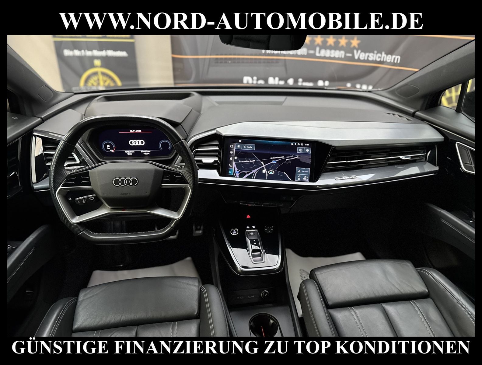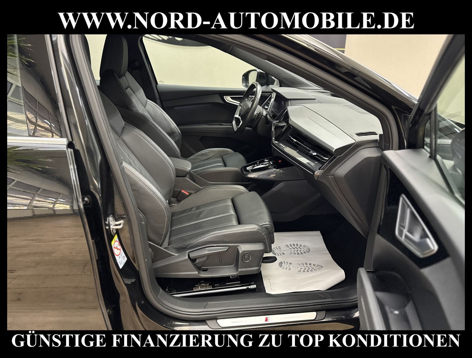 KomfortExtrasUnterhaltungBeschreibungwww.nord-automobile.de AUDI Q4 e-tronAnsprechpartner:Jan Feldhus, Jonathan Steinfeld, Tom Bijman, Simon Wolff, Matthis Ullrich* FAHRZEUG-NUMMER: M-2904-BD * LACKIERUNG: Mythosschwarz Metallic * Modelljahr:2022 * UPE brutto 62.196 ¤ * S-Line * Audi Smartphone Interface * Zentralverriegelung ''Keyless-Go'' * Navigationsgerät-High * Spurverlassenswarnung * Mit Rückfahrkamerasystem * Head-Up Display * Mit Verkehrszeichenerkennung * Digitaler Radioempfang * Pedalerie aus Edelstahl * Audi virtual cockpit plus * Interieur S line mit Sportsitzen in Leder/Kunstleder-Kombination schwarz * Mit Ausweichunterstützung mit Abbiegeassistent * Einparkhilfe vorn und hinten * Telefonvorbereitung für Handy * LED-Scheinwerfer * Automatische Distanzregelung(mit follow to stop) und Speed-Limiter * Dekor-Einlagen, Alu matt gebürstet * Ledersportmultifunktionslenkrad * Höheneinstellung, manuell, für Vordersitze * Rücksitzbank ungeteilt, Lehne geteilt umlegbar (dreiteilig) mit Mittelarmlehne * Servolenkung, geschwindigkeitsabhängig(Servotronic) * Lendenwirbelstütze, elektr. einstellbar in Vordersitzlehnen * Radschrauben mit Diebstahlsicherung(nicht abschließbar) * Airbag FS und BFS, ohne Knieairbag, mit BFS-Deaktivierung * Servoschließung Heckklappe * Sicherheitsinnenspiegel automatisch abblendbar * Diebstahlalarmanlage, Innenraumüberwachung, Back-up-Horn und Abschleppschutz * Außenspiegel automatisch abblendbar elektrisch anklapp-/einstellbar, beheizbar, mit Beifahrerspiegelabsenkung * Räder, 5-Y-Speichen, 8, 0J|9, 0Jx20, Reifen 235/50|255/45 R20 * Reifendruckkontrolle * Nord-Automobile - Ihr starker und kompetenter Partner seit über 20 Jahren * Wir bieten Ihnen eine günstige Finanzierung auch ohne Anzahlung über die * AutoEuropaBank - Zweigniederlassung der Volkswagen Bank GmbH an * 20 XXL-Fotografien dieses Fahrzeuges finden Sie unter www.nord-automobile.de * Gerne unterbreiten wir Ihnen ein Angebot zum Ankauf Ihres bisherigen Fahrzeuges * Beim Export-Geschäft führen wir die Ausfuhranmeldung und Zulassung für Sie durch * Wir sind Meister-Werkstatt und zertifizierte GTÜ-Prüfstelle * Lernen Sie uns kennen - wir freuen uns auf Ihren Besuch * Keine Haftung für Druck & Schreibfehler. ... Klima, Klimaautomatik, Automatik, Navigationssystem, Regensensor, Vorders. elekt. verstellb., ESP, ABS, Distronic, Parktronic System, Multifunktionslenkr., Radio, Bordcomputer, Tempomat, Spiegel autom. abblendbar, Spiegel beheizbar, elektr. Fensterheber vorn+hinten, Alarm, elektr. WFS, ZV mit Fernb., Fahrerairb., Beifahrerairb., Seitenairbag vorn, Kopfairbags, Leichtmetallfelgen, Nichtraucher, Servolenkung, Sportfahrwerk, Sportsitze/Schalensitze, Sitzbank teilbar, abklappb. Spiegel, elektr. verstellb. Spiegel, Kopfst. vorn, Aluoptik, Mittelarmlehne, Lendenwirbelst., elekt. verstellb. Fahrersitz, Lichtsensor, Waermeschutzvergl., 12 V Zusatzanschluss, Frontantrieb, Lederlenkrad, HSN 0588, TSN BZT, HU + AU wird vor Verkauf erneuert, Standklima |