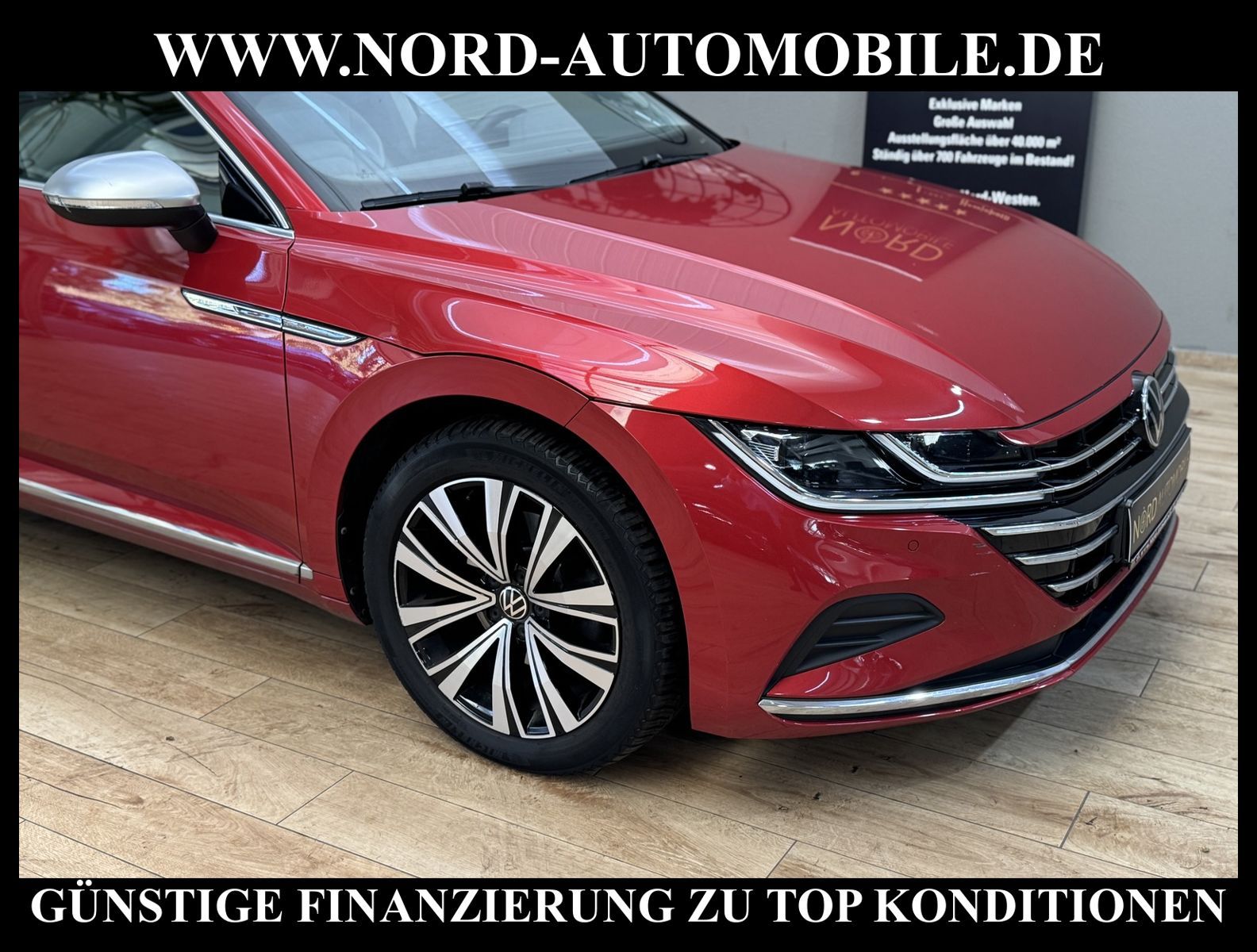 KomfortExtrasUnterhaltungBeschreibungwww.nord-automobile.de VW ARTEON SHOOTING BRAKEAnsprechpartner:Jan Feldhus, Jonathan Steinfeld, Tom Bijman, Simon Wolff, Matthis Ullrich* FAHRZEUG-NUMMER:M-0122-BD * LACKIERUNG: Kings Red Metallic * Deutsche Auslieferung * Modelljahr:2022 * Abgaskonzept, EU6 AP * UPE brutto 57.661 ¤ * Dynamiklenkung * Reifendruckkontrolle * Lederpaket ''Nappa'' * Einparkhilfe vorn und hinten * Wired & Wireless App-Connect * Navigationssystem ''Discover Pro'' inkl.''Streaming & Internet'' * Automatische Distanzregelung(mit follow to stop) und Speed-Limiter * LED-Scheinwerfer * Mit Verkehrszeichenerkennung * Digitaler Radioempfang * Mit Rückfahrkamerasystem * Zentralverriegelung ''Keyless-Entry''ohne Safesicherung * Geschwindigkeitsbegrenzungsanlage * Climatronic ( 3-Zonen ) mit Klimabedienteil hinten * Front Assist inkl. City ANB für ACC high * Komforttelefonie und Wireless charging( ohne LTE ) * Spurhalteassistent plus Emergency Assist und Stauassistent * Sitzheizung für Vorder-/u.Hintersitze, getrennt regelbar * Höheneinstellung, manuell f.Vordersitze plus Sitzflächen-Neigungs u.Tiefeneins.links, plus Lehneneinst.elektr.links * Rücksitzbank ungeteilt, Lehne geteilt umlegbar, mit Mittelarmlehne * Ledersportmultifunktionslenkrad, beheizbar mit Tiptronic * Fernlichtassistent * Ambientebeleuchtung * Sport-Komfortsitze vorn * Scheiben seitlich in Wärmeschutzverglasung, ab B-Säule und hinten dunkel eingefärbt * Radschrauben mit Diebstahlsicherung(nicht abschließbar) * Außenspiegel automatisch abblendbar elektrisch anklapp-/einstellbar, beheizbar, mit Beifahrerspiegelabsenkung * Airbag FS und BFS, Knieairbag auf FS, mit BFS-Deaktivierung * Sicherheitsinnenspiegel automatisch abblendbar * Start/Stopp-Anlage mit Rekuperation * 6-Gang-Automatikgetriebe * Leichtmetallräder 8J x 18 * Nord-Automobile - Ihr starker und kompetenter Partner seit über 30 Jahren * Wir bieten Ihnen eine günstige Finanzierung auch ohne Anzahlung über die * AutoEuropaBank - Zweigniederlassung der Volkswagen Bank GmbH an * 20 XXL-Fotografien dieses Fahrzeuges finden Sie unter www.nord-automobile.de * Gerne unterbreiten wir Ihnen ein Angebot zum Ankauf Ihres bisherigen Fahrzeuges * Beim Export-Geschäft führen wir die Ausfuhranmeldung und Zulassung für Sie durch * Wir sind Meister-Werkstatt und zertifizierte GTÜ-Prüfstelle * Lernen Sie uns kennen - wir freuen uns auf Ihren Besuch * Keine Haftung für Druck & Schreibfehler. ... Klima vorn+hinten, Klimaautomatik, Automatik, Leder, Navigationssystem, Sitzheiz. vorn, Sitzheiz. hinten, Regensensor, ESP, ASR, ABS, Distronic, Parktronic System, Multifunktionslenkr., Radio, Bordcomputer, Spiegel autom. abblendbar, Spiegel beheizbar, elektr. Fensterheber vorn, elektr. WFS, Keyless-Go, ZV mit Fernb., Fahrerairb., Beifahrerairb., Seitenairbag vorn, Kopfairbags, Leichtmetallfelgen, elektr. Fahrwerksregelung, Nichtraucher, Traktionskontr., Sitzbank teilbar, Innenraumfilter, Lenksaeule einstellbar, abklappb. Spiegel, elektr. verstellb. Spiegel, Kopfst. hinten, Gurtstraffer, Gepaeckraumabd., Nebelschlussl., Scheibenbr., Holzoptik, Mittelarmlehne, Lendenwirbelst., Sitzhoehenv., Sitzheizung Fahrer + Beif., Lichtsensor, Waermeschutzvergl., 12 V Zusatzanschluss, aus erster Hand, Schadstoffklasse: Euro 6, Frontantrieb, Lederlenkrad, Lederschaltknauf, HSN 0603, TSN COR, Verbrauch: 1,3/0,0/0,0 l/100 km (komb/inn/auß), CO2: 26 g/km, Partikelfilter, HU + AU wird vor Verkauf erneuert, Feinstaubplakette: 4 - Grün |