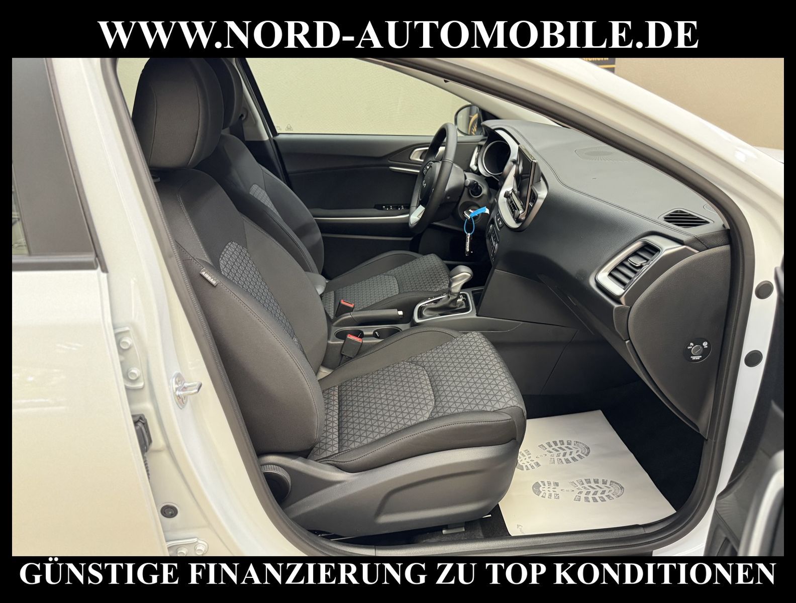 KomfortExtrasUnterhaltungBeschreibungwww.nord-automobile.de KIA CEED SWAnsprechpartner:Jan Feldhus, Jonathan Steinfeld, Tom Bijman, Simon Wolff, Matthis Ullrich* FAHRZEUG-NUMMER: M-0539 * LACKIERUNG: Cassa White * Aktiver Spurhalteassistent * integrierte GPS-Navigation mit 10, 25-Zoll-Farb-Touchscreen-Display + DAB * Manuelle Klimaanlage * Birdcomputer mit 4, 2''-Display Supervision * PTC-Heizung * Sitzheizung vorn * Lenkrad beheizbar * Autonomes Notbremssystem (FCA) - Auto/Fußgänger/Radfahrer * Tempomat * Parksensoren hinten * Fahrersitz höhenverstellbar * Lederlenkrad mit Multifunktion * Umklappbare Rücksitze im Verhältnis 60:40 * Außenspiegel elektr.verstellbar und beheizbar * LED-Tagfahrlicht * Nebelscheinwerfer * Dachreling * Aurbag Fahrer und Beifahrer * Elektrische Fensterheber vorne und hinten * Zentralverriegelung mit Fernbedienung * Automatikgetriebe * LM-Felgen 16''Zoll * Nord-Automobile - Ihr starker und kompetenter Partner seit über 30 Jahren * Wir bieten Ihnen eine günstige Finanzierung auch ohne Anzahlung über die * AutoEuropaBank - Zweigniederlassung der Volkswagen Bank GmbH an * 20 XXL-Fotografien dieses Fahrzeuges finden Sie unter www.nord-automobile.de * Gerne unterbreiten wir Ihnen ein Angebot zum Ankauf Ihres bisherigen Fahrzeuges * Beim Export-Geschäft führen wir die Ausfuhranmeldung und Zulassung für Sie durch * Wir sind Meister-Werkstatt und zertifizierte GTÜ-Prüfstelle * Lernen Sie uns kennen - wir freuen uns auf Ihren Besuch * Keine Haftung für Druck & Schreibfehler. ... Klima, Automatik, Navigationssystem, Sitzheiz. vorn, ESP, ASR, ABS, Parktronic System, Multifunktionslenkr., Radio, Bordcomputer, Tempomat, Spiegel beheizbar, elektr. Fensterheber vorn+hinten, Alarm, WFS, ZV mit Fernb., Fahrerairb., Beifahrerairb., Seitenairbag vorn, Kopfairbags, Leichtmetallfelgen, Nichtraucher, Nebelscheinw., Servolenkung, Spoiler, Traktionskontr., Sitzbank teilbar, Dachreling, elektr. verstellb. Spiegel, Kopfst. vorn, Kopfst. hinten, beh. Heckscheibe, Heckscheibenw., 3.Bremsl., Mittelarmlehne, Sitzhoehenv., Sitzheizung Fahrer + Beif., Lichtsensor, Waermeschutzvergl., Dachantenne, 12 V Zusatzanschluss, aus erster Hand, Jahresw., Schadstoffklasse: Euro 6, Frontantrieb, Lederlenkrad, Lederschaltknauf, Verbrauch: 6,0/0,0/0,0 l/100 km (komb/inn/auß), CO2: 137 g/km, Partikelfilter, Feinstaubplakette: 4 - Grün |