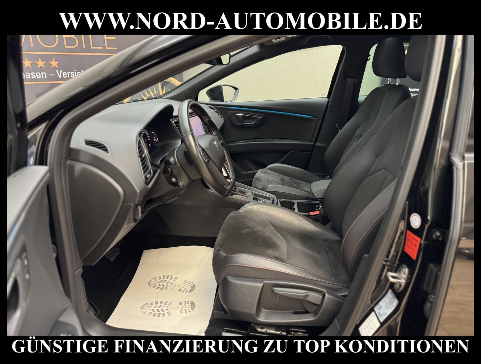 KomfortExtrasUnterhaltungBeschreibungwww.nord-automobile.de Seat Leon FR-Line Black Matt Edition 2.0 TDI 110kW 7-Gang Automatikgetriebe 4 TürenAnsprechpartner: Jan Feldhus, Jonathan Steinfeld, Tom Bijman, Simon Wolff, Matthis Ullrich* FAHRZEUG-NUMMER: M-4820-BD * LACKIERUNG: Mitternachtsschwarz * Modelljahr:2020 * UPE brutto 38.214 ¤ * Deutsche Auslieferung * Schadstoffarm nach Abgasnorm Euro 6d-TEMP * Sportpaket * Navigationssystem * Einparkhilfe vorn und hinten * Sitzheizung für Vordersitze getrennt regelbar * Panorama-Ausstelldach elektrisch * Rückfahrkamera * LED Scheinwerfer * Anhängevorrichtung, abnehmbar und abschließbar * Müdigkeitserkennung * Ultraschall-Einparkhilfe vorne und hinten mit OPS (Optisches Parksystem) * Klimaautomatik * Mit Verkehrszeichenerkennung * DAB (Digital Audio Broadcasting) * Digitaler Radioempfang * Fahrassistenz-Paket - Fernlichtassistent - Verkehrszeichenerkennung - Automatische Distanzregelung (ACC) - Spurhalteassistent - Frontkamera * Komfort telefonie * Geschwindigkeitsbegrenzungsanlage * Mirror Link plus Wireless RSE ''App'' * Full Link (MirrorLink, Apple CarPlay und Android Auto) * Spurhalte-, Stau-, und Emergency Assistent (Heading Control Assist) * Soundsystem mit Subwoofer ''branded'' * Kombiinstrument digital (virtual cockpit) * Automatische Distanzregelung * Connectivity Box: Induktive Ladestation + GSM-Verstärker * Komfortsitze vorn * Make-up-Spiegel links, beleuchtet, mit Abdeckung und Tasche * Höheneinstellung, manuell, für Vordersitze * Fernlichtassistent * Rücksitzbank ungeteilt, Lehne geteilt umlegbar mit Mittelarmlehne * Tagesfahrlicht mit Assistenzfahrlicht u.Coming- Leaving-home Funktion manuell * Scheiben seitlich in Wärmeschutzver- glasung, ab B-Säule und hinten dunkel eingefärbt * Lendenwirbelstütze, manuell einstellbar in Vordersitzlehnen * Leuchtweitenregulierung, autom.dynamisch * Scheibenwischer-Intervallschaltung mit Licht/Regensensor * Winterpaket: Sitzheizung vorne, Scheinwerfer-Reinigungsanlage, beheizbare Scheibenwaschdüsen, beheizbare Aussenspiegel * Scheinwerferreinigungsanlage * Ledersportmultifunktionslenkrad mit Tiptronic * Fensterheber mit Komfortschaltung und Abschaltsicherung * City-Notbremsfunktion * Ablage-Paket * Nebelscheinwerfer * Multifunktionsanzeige/Bordcomputer * Außenspiegel, elektrisch anklappbar und elektrisch einstell-/beheizbar * Sicherheitsinnenspiegel automatisch abblendbar * Reifendruckkontrolle * FR Dynamik-Paket: Adaptive Fahrwerklenkung (DCC), Progressivlenkung * Kindersitzverankerung für Kindersitzsystem ISO FIX * Front Assist inkl. City ANB für ACC high * Seitenairbag vorn, mit Kopfairbag * Diebstahlalarmanlage, Innenraumüber- wachung, Back-up-Horn und Abschleppschutz * Dynamiklenkung * 7-Gang-Automatikgetriebe * Leichtmetallräder 7 1/2J x 18 * Start/Stopp-Anlage mit Rekuperation * Nord-Automobile - Ihr starker und kompetenter Partner seit über 30 Jahren * Wir bieten Ihnen eine günstige Finanzierung auch ohne Anzahlung über die * AutoEuropaBank - Zweigniederlassung der Volkswagen Bank GmbH an * 20 XXL-Fotografien dieses Fahrzeuges finden Sie unter www.nord-automobile.de * Gerne unterbreiten wir Ihnen ein Angebot zum Ankauf Ihres bisherigen Fahrzeuges * Beim Export-Geschäft führen wir die Ausfuhranmeldung und Zulassung für Sie durch * Wir sind Meister-Werkstatt und zertifizierte GTÜ-Prüfstelle * Lernen Sie uns kennen - wir freuen uns auf Ihren Besuch * Keine Haftung für Druck & Schreibfehler. ... Klima, Klimaautomatik, Automatik, Navigationssystem, Sitzheiz. vorn, Regensensor, ESP, ABS, Distronic, Multifunktionslenkr., Radio, Soundsystem, Tel. m. Freisprech., Bordcomputer, Tempomat, Spiegel beheizbar, Scheinwerferreinigung, elektr. Fensterheber vorn, elektr. WFS, ZV mit Fernb., Fahrerairb., Beifahrerairb., Seitenairbag vorn, Kopfairbags, Leichtmetallfelgen, Nichtraucher, Anhaengerk., Nebelscheinw., abklappb. Spiegel, Mittelarmlehne, Sitzhoehenv., Sitzheizung, Lichtsensor, aus erster Hand, Schadstoffklasse: Euro 6, Diesel, Frontantrieb, Lederlenkrad, HSN 7593, TSN AIR, Verbrauch: 4,3/5,0/3,8 l/100 km (komb/inn/auß), CO2: 138 g/km, Feinstaubplakette: 4 - Grün |