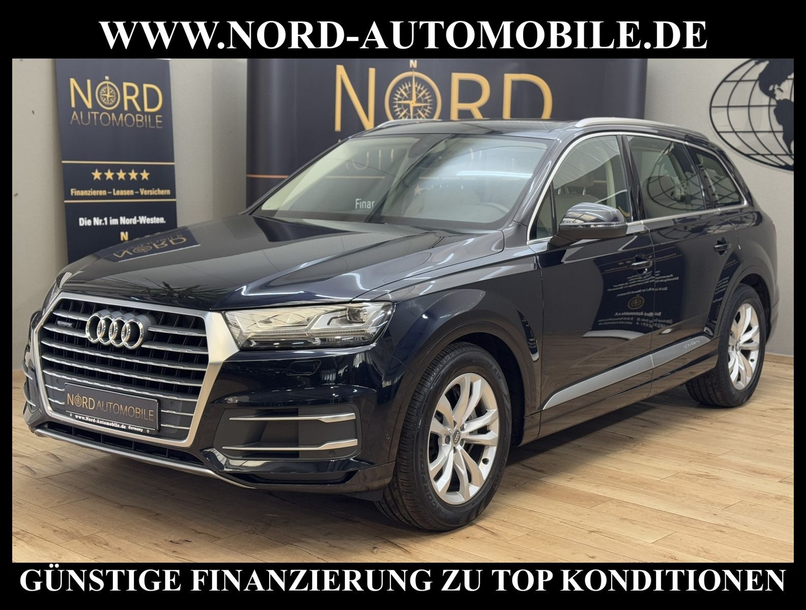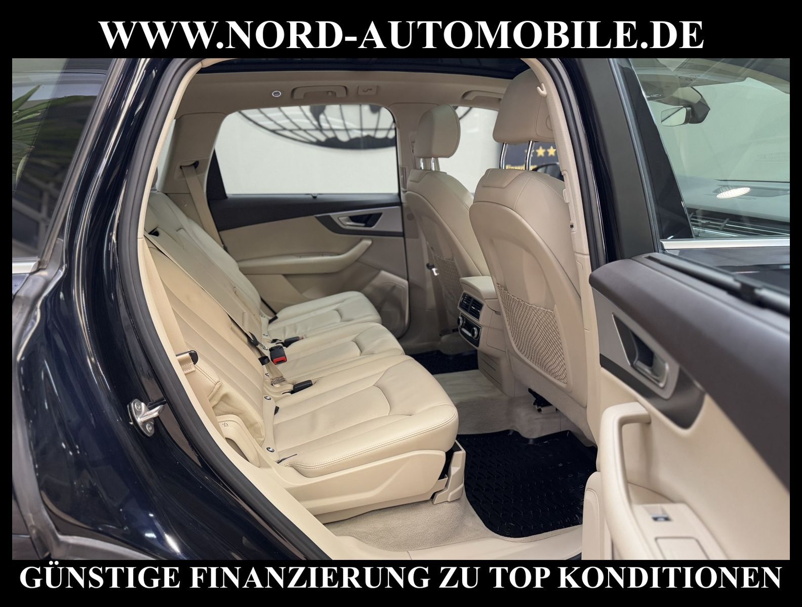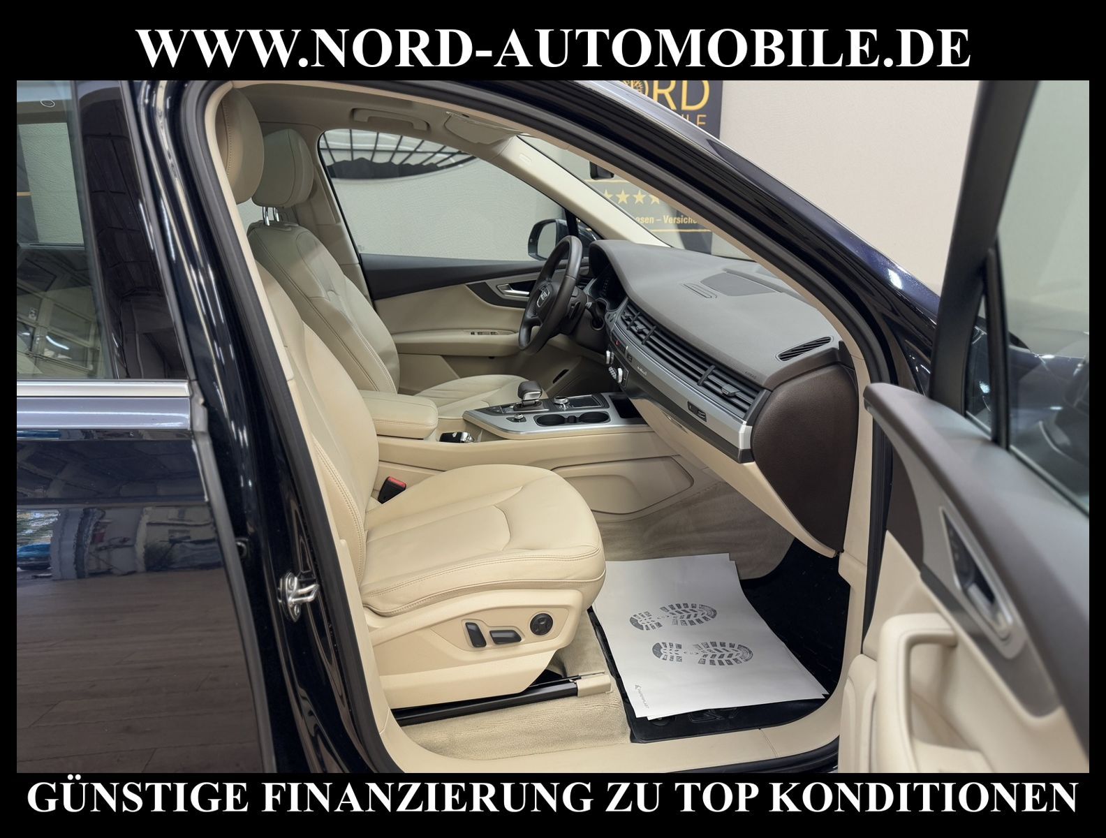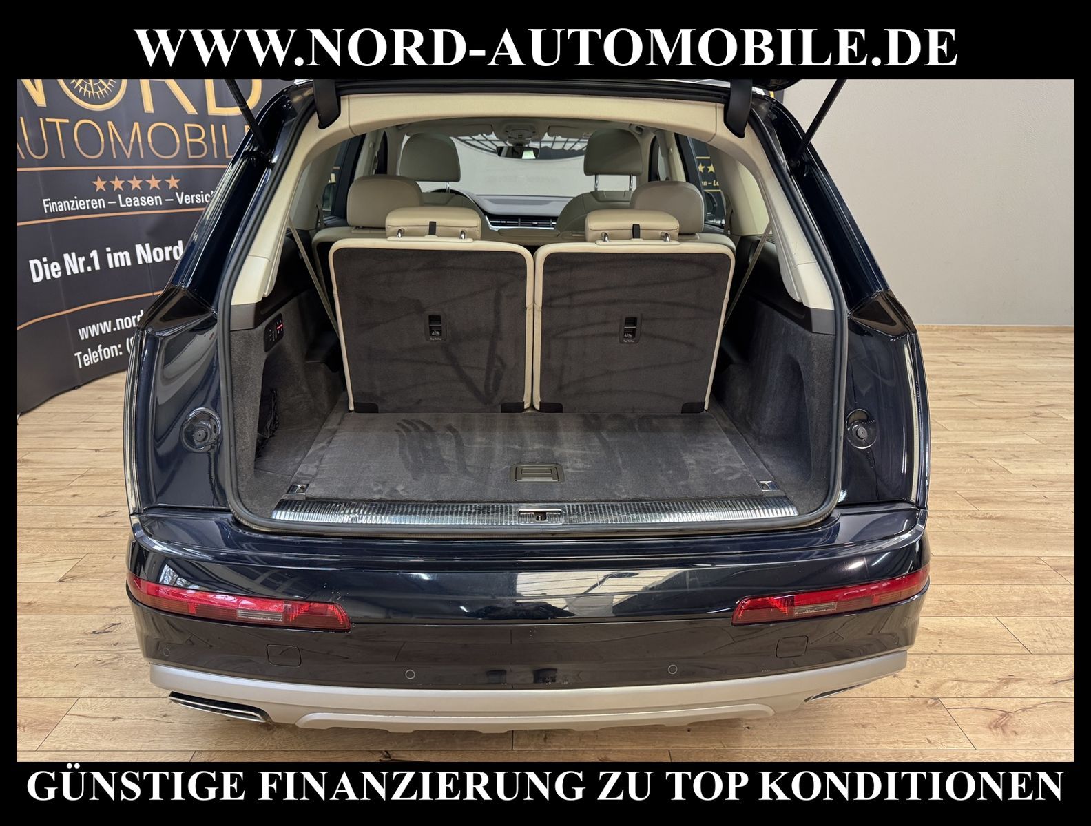 Audi Q7 3.0 TDI quattro Tiptronic 7-SITZERAnsprechpartner: Jan Feldhus, Jonathan Steinfeld, Tom Bijman, Simon Wolff, Matthis Ullrich* FAHRZEUG-NUMMER: MW-4573 * LACKIERUNG: tintenblau metallic * Abgaskonzept, Euro6 plus * ehem.UPE: 83.222, - * Allradantrieb quattro mit automatischem Sperrdifferential * 7-Sitzer (3.Sitzreihe, 2 Einzelsitze klappbar) * Kombiinstrument digital (virtual cockpit) * MMI Navigation Plus mit MMI Touch * Radioempfang digital (DAB) * Audi connect * Vorrüstung Mobiltelefon/Handy mit Bluetooth-Schnittstelle * Komfort-Klimaautomatik 4-Zonen * Panoramadach vorn elektrisch, hinten fest * Sitzbezug / Polsterung: Leder * LM-Felgen 8, 5x19 (5-Speichen, V-Design) * 4 Corner Luftfederung (adaptive air suspension) * Audi Drive Select * LED-Scheinwerfer mit LED-Tagfahrlicht * Heckleuchten LED mit dynamischem Blinklicht * Fernlichtassistent * Geschwindigkeits-Regelanlage (Tempomat) plus Speed-Limiter * Parklenkassistent * Einparkhilfe vorn und hinten, akustisch und optisch mit selektiver Anzeige (APS Plus) * Rückfahrkamera * Spurwechselassistent * Gepäckraumklappe elektrisch betätigt (öffnen + schliessen) * Multifunktions-Lederlenkrad mit Schaltfunktion * Sonnenschutzrollo an Heckscheibe und Seitenscheibe * Sitze elektrisch verstellbar * Lendenwirbelstützen vorn elektrisch verstellbar * Mittelarmlehne vorn Komfortausstattung * Rücksitzlehne geteilt/klappbar * Dekoreinlagen oben Diamantlack / unten Eloxallack Anthrazit * Dachhimmel Stoff schwarz * Dachreling * Stoßfänger kpl. / Schwellerabdeckung / Radlaufblenden in Wagenfarbe (Voll-Lackierung) * Zentralverriegelung ''Keyless-Go'' * Außenspiegel elektrisch verstell-, heiz- und anklappbar, mit Abblendautomatik und Memory * Sicherheitsinnenspiegel automatisch abblendbar * Licht- und Regensensor * Anfahr-Assistent (hold assist) * City-Notbremsfunktion (Audi pre sense City) * Kopf-Airbag-System (Sideguard) * Airbag für Fahrer und Beifahrer * Beifahrerairbag abschaltbar * Seitenairbag vorn und hinten * Isofix-Aufnahmen für Kindersitz * Reifendruckkontrolle * Start/Stopp-Anlage mit Rekuperation * Kraftstoffbehälter 85 Liter * zus. Tank für SCR (24 Liter) * Getriebe Automatik - Tiptronic (8-Stufen) für Allrad Nord-Automobile - Ihr starker und kompetenter Partner seit über 20 Jahren* Wir bieten Ihnen eine günstige Finanzierung auch ohne Anzahlung über die * AutoEuropaBank - Zweigniederlassung der Volkswagen Bank GmbH an * 20 XXL-Fotografien dieses Fahrzeuges finden Sie unter www.nord-automobile.de * Gerne unterbreiten wir Ihnen ein Angebot zum Ankauf Ihres bisherigen Fahrzeuges * Beim Export-Geschäft führen wir die Ausfuhranmeldung und Zulassung für Sie durch * Wir sind Meister-Werkstatt und zertifizierte DEKRA-Prüfstelle * Lernen Sie uns kennen - wir freuen uns auf Ihren Besuch * Keine Haftung für Druck & Schreibfehler. ... Klima vorn+hinten, Klimaautomatik, Automatik, Leder, Navigationssystem, Allrad, Regensensor, Vorders. elekt. verstellb., ESP, ABS, Schiebedach elek., Parktronic System, Multifunktionslenkr., Radio, Bordcomputer, Tempomat, Spiegel autom. abblendbar, Spiegel beheizbar, Scheinwerferreinigung, elektr. Fensterheber vorn, elektr. WFS, ZV mit Fernb., Fahrerairb., Beifahrerairb., Seitenairbag vorn, Seitenairbag hinten, Kopfairbags, Leichtmetallfelgen, Nichtraucher, Glasdach, Servolenkung, Spoiler, Sperrdiff., Sitzbank teilbar, 7-Sitzer/3.Sitzreihe, Lenksaeule einstellbar, Dachreling, abklappb. Spiegel, elektr. verstellb. Spiegel, Kopfst. vorn, Gepaeckraumabd., Scheibenbr., Luftfederung, Mittelarmlehne, Lendenwirbelst., elekt. verstellb. Fahrersitz, Lichtsensor, Waermeschutzvergl., aus erster Hand, Diesel, 4x4-Antrieb, Lederlenkrad, Verbrauch: 6,2/6,7/6,0 l/100 km (komb/inn/auß), CO2: 163 g/km, Partikelfilter, SCR-Technologie |