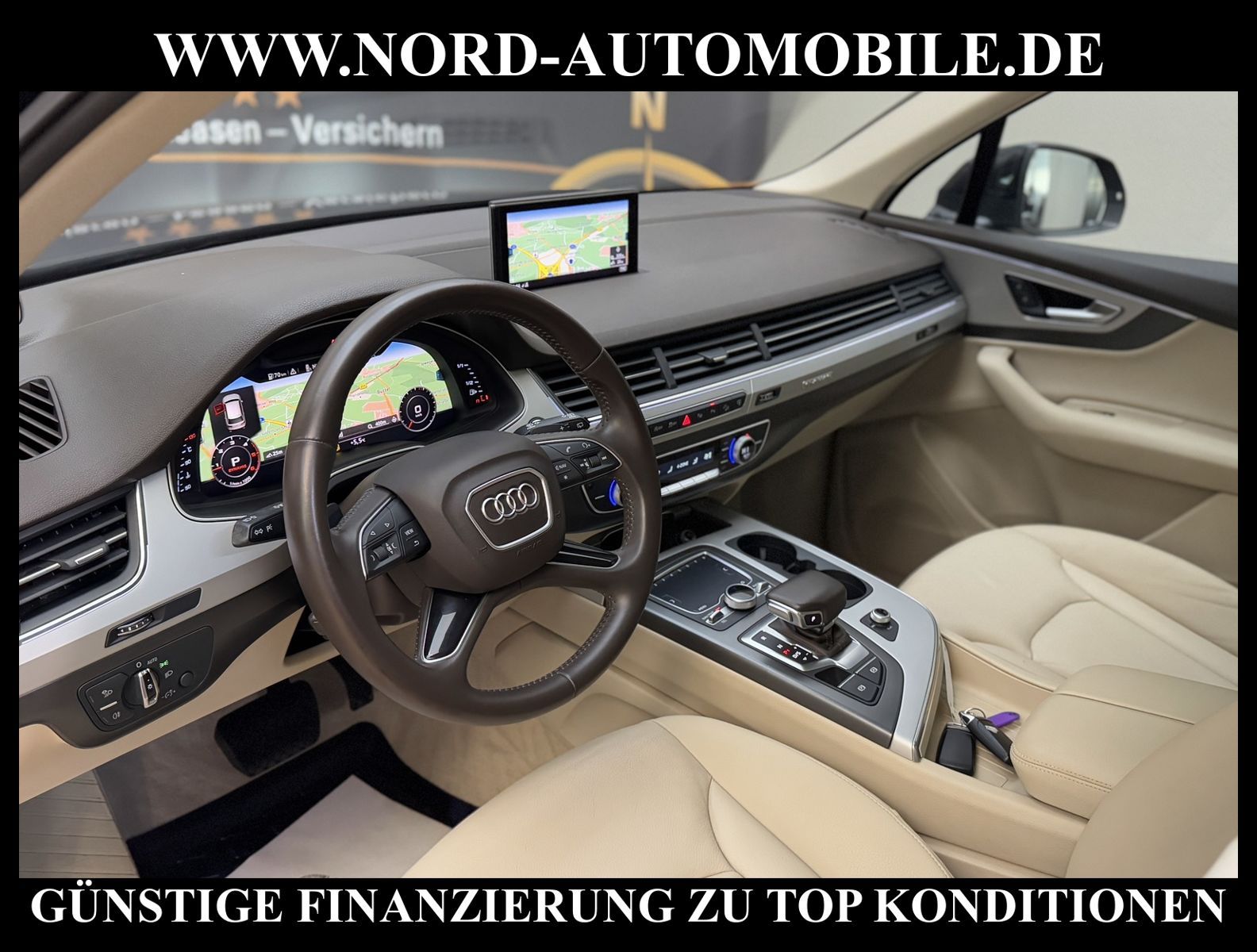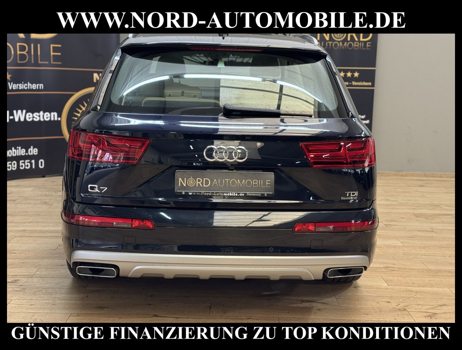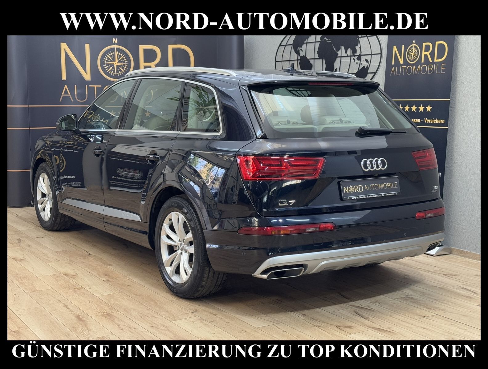Audi Q7 3.0 TDI quattro Tiptronic 7-SITZERAnsprechpartner: Jan Feldhus, Jonathan Steinfeld, Tom Bijman, Simon Wolff, Matthis Ullrich* FAHRZEUG-NUMMER: MW-4573 * LACKIERUNG: tintenblau metallic * Abgaskonzept, Euro6 plus * ehem.UPE: 83.222, - * Allradantrieb quattro mit automatischem Sperrdifferential * 7-Sitzer (3.Sitzreihe, 2 Einzelsitze klappbar) * Kombiinstrument digital (virtual cockpit) * MMI Navigation Plus mit MMI Touch * Radioempfang digital (DAB) * Audi connect * Vorrüstung Mobiltelefon/Handy mit Bluetooth-Schnittstelle * Komfort-Klimaautomatik 4-Zonen * Panoramadach vorn elektrisch, hinten fest * Sitzbezug / Polsterung: Leder * LM-Felgen 8, 5x19 (5-Speichen, V-Design) * 4 Corner Luftfederung (adaptive air suspension) * Audi Drive Select * LED-Scheinwerfer mit LED-Tagfahrlicht * Heckleuchten LED mit dynamischem Blinklicht * Fernlichtassistent * Geschwindigkeits-Regelanlage (Tempomat) plus Speed-Limiter * Parklenkassistent * Einparkhilfe vorn und hinten, akustisch und optisch mit selektiver Anzeige (APS Plus) * Rückfahrkamera * Spurwechselassistent * Gepäckraumklappe elektrisch betätigt (öffnen + schliessen) * Multifunktions-Lederlenkrad mit Schaltfunktion * Sonnenschutzrollo an Heckscheibe und Seitenscheibe * Sitze elektrisch verstellbar * Lendenwirbelstützen vorn elektrisch verstellbar * Mittelarmlehne vorn Komfortausstattung * Rücksitzlehne geteilt/klappbar * Dekoreinlagen oben Diamantlack / unten Eloxallack Anthrazit * Dachhimmel Stoff schwarz * Dachreling * Stoßfänger kpl. / Schwellerabdeckung / Radlaufblenden in Wagenfarbe (Voll-Lackierung) * Zentralverriegelung ''Keyless-Go'' * Außenspiegel elektrisch verstell-, heiz- und anklappbar, mit Abblendautomatik und Memory * Sicherheitsinnenspiegel automatisch abblendbar * Licht- und Regensensor * Anfahr-Assistent (hold assist) * City-Notbremsfunktion (Audi pre sense City) * Kopf-Airbag-System (Sideguard) * Airbag für Fahrer und Beifahrer * Beifahrerairbag abschaltbar * Seitenairbag vorn und hinten * Isofix-Aufnahmen für Kindersitz * Reifendruckkontrolle * Start/Stopp-Anlage mit Rekuperation * Kraftstoffbehälter 85 Liter * zus. Tank für SCR (24 Liter) * Getriebe Automatik - Tiptronic (8-Stufen) für Allrad Nord-Automobile - Ihr starker und kompetenter Partner seit über 20 Jahren* Wir bieten Ihnen eine günstige Finanzierung auch ohne Anzahlung über die * AutoEuropaBank - Zweigniederlassung der Volkswagen Bank GmbH an * 20 XXL-Fotografien dieses Fahrzeuges finden Sie unter www.nord-automobile.de * Gerne unterbreiten wir Ihnen ein Angebot zum Ankauf Ihres bisherigen Fahrzeuges * Beim Export-Geschäft führen wir die Ausfuhranmeldung und Zulassung für Sie durch * Wir sind Meister-Werkstatt und zertifizierte DEKRA-Prüfstelle * Lernen Sie uns kennen - wir freuen uns auf Ihren Besuch * Keine Haftung für Druck & Schreibfehler. ... Klima vorn+hinten, Klimaautomatik, Automatik, Leder, Navigationssystem, Allrad, Regensensor, Vorders. elekt. verstellb., ESP, ABS, Schiebedach elek., Parktronic System, Multifunktionslenkr., Radio, Bordcomputer, Tempomat, Spiegel autom. abblendbar, Spiegel beheizbar, Scheinwerferreinigung, elektr. Fensterheber vorn, elektr. WFS, ZV mit Fernb., Fahrerairb., Beifahrerairb., Seitenairbag vorn, Seitenairbag hinten, Kopfairbags, Leichtmetallfelgen, Nichtraucher, Glasdach, Servolenkung, Spoiler, Sperrdiff., Sitzbank teilbar, 7-Sitzer/3.Sitzreihe, Lenksaeule einstellbar, Dachreling, abklappb. Spiegel, elektr. verstellb. Spiegel, Kopfst. vorn, Gepaeckraumabd., Scheibenbr., Luftfederung, Mittelarmlehne, Lendenwirbelst., elekt. verstellb. Fahrersitz, Lichtsensor, Waermeschutzvergl., aus erster Hand, Diesel, 4x4-Antrieb, Lederlenkrad, Verbrauch: 6,2/6,7/6,0 l/100 km (komb/inn/auß), CO2: 163 g/km, Partikelfilter, SCR-Technologie |