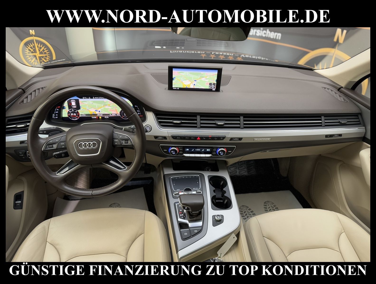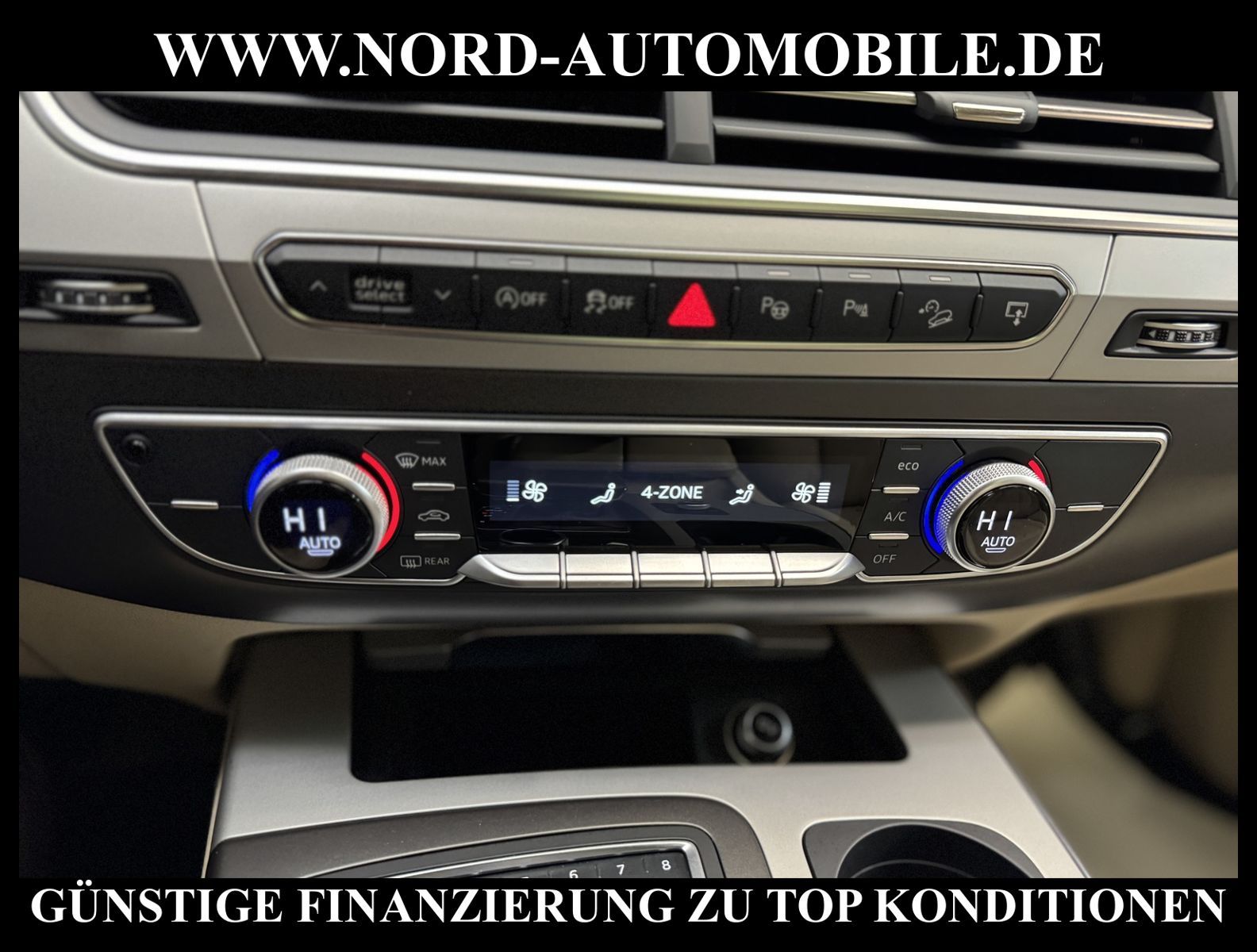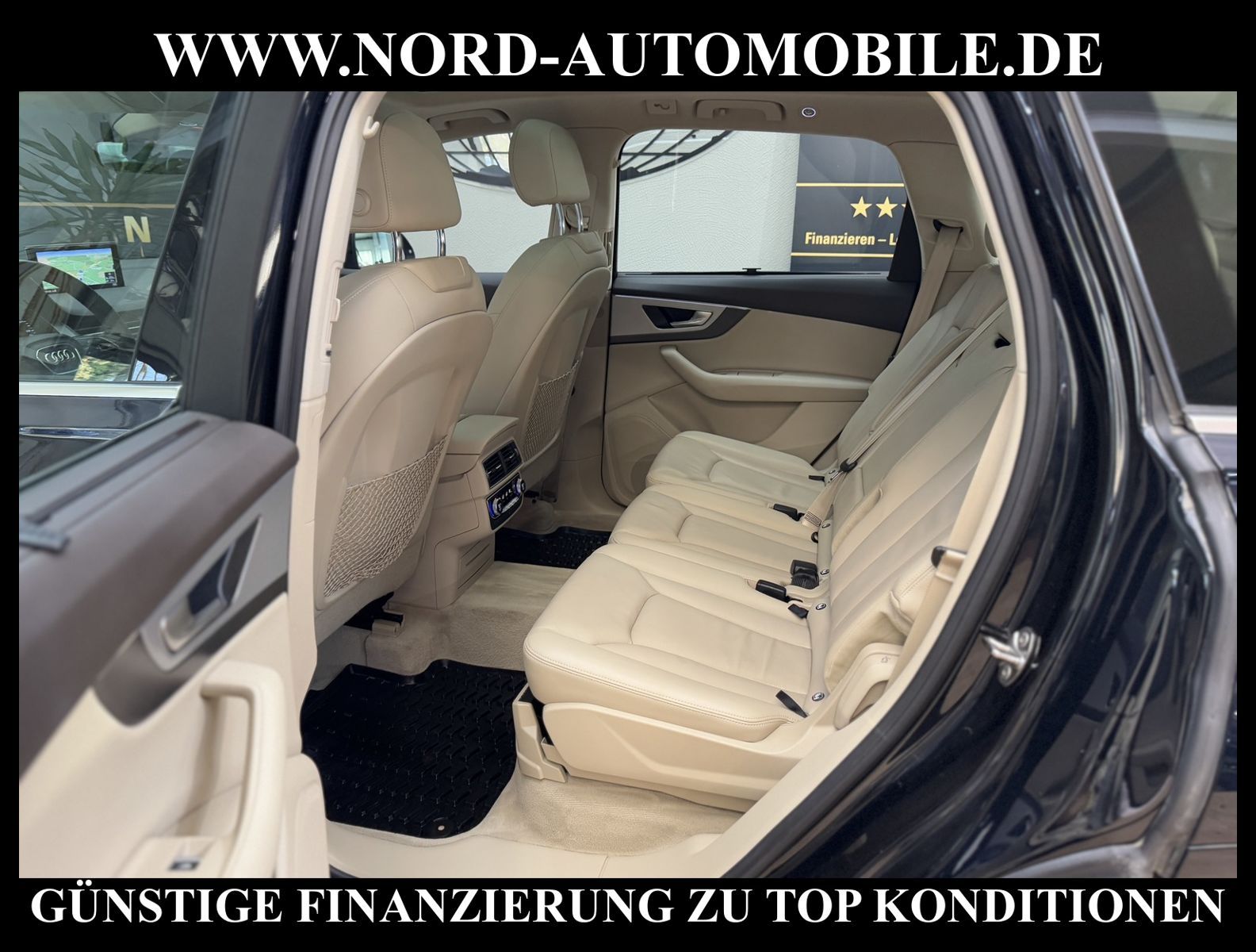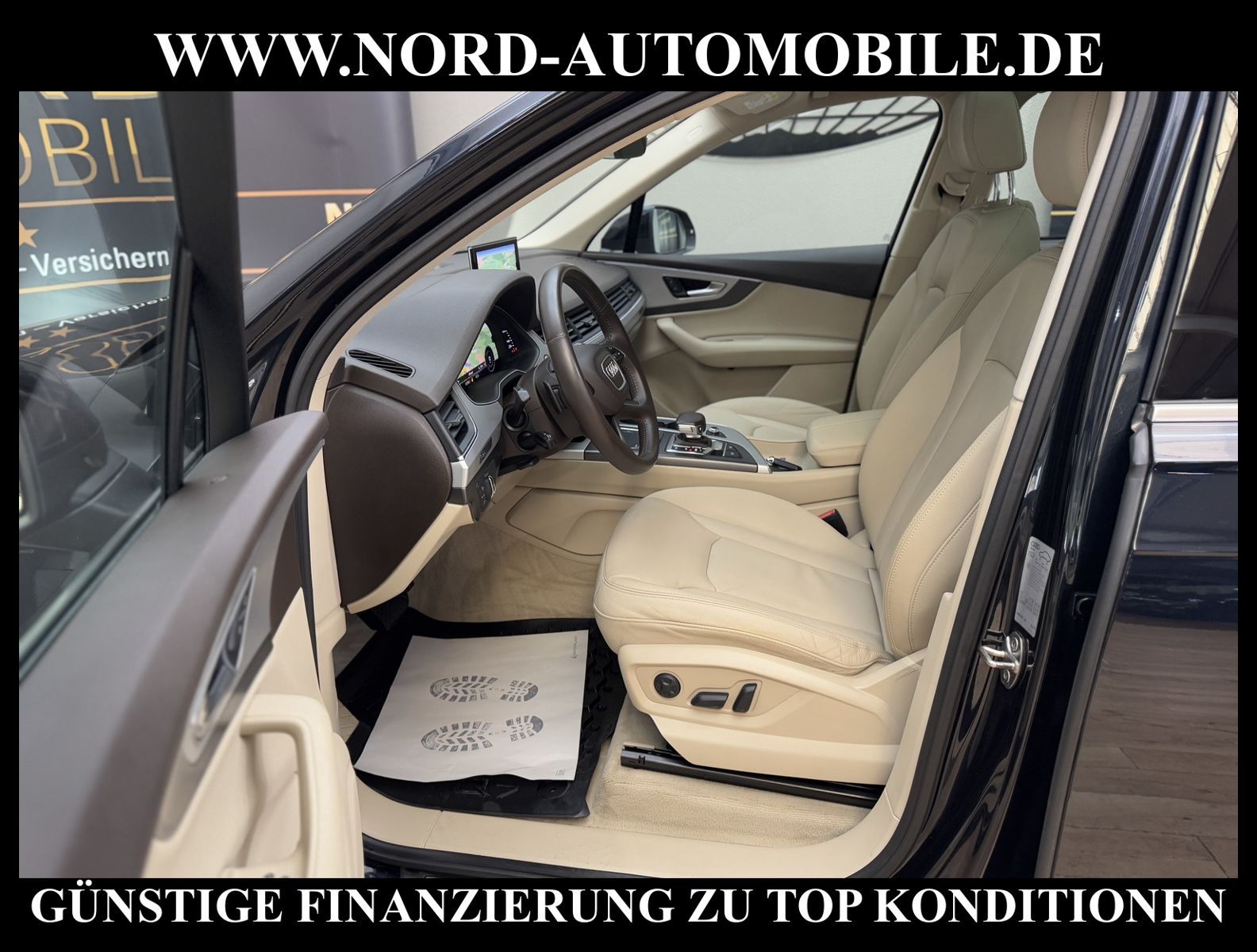 Audi Q7 3.0 TDI quattro Tiptronic 7-SITZERAnsprechpartner: Jan Feldhus, Jonathan Steinfeld, Tom Bijman, Simon Wolff, Matthis Ullrich* FAHRZEUG-NUMMER: MW-4573 * LACKIERUNG: tintenblau metallic * Abgaskonzept, Euro6 plus * ehem.UPE: 83.222, - * Allradantrieb quattro mit automatischem Sperrdifferential * 7-Sitzer (3.Sitzreihe, 2 Einzelsitze klappbar) * Kombiinstrument digital (virtual cockpit) * MMI Navigation Plus mit MMI Touch * Radioempfang digital (DAB) * Audi connect * Vorrüstung Mobiltelefon/Handy mit Bluetooth-Schnittstelle * Komfort-Klimaautomatik 4-Zonen * Panoramadach vorn elektrisch, hinten fest * Sitzbezug / Polsterung: Leder * LM-Felgen 8, 5x19 (5-Speichen, V-Design) * 4 Corner Luftfederung (adaptive air suspension) * Audi Drive Select * LED-Scheinwerfer mit LED-Tagfahrlicht * Heckleuchten LED mit dynamischem Blinklicht * Fernlichtassistent * Geschwindigkeits-Regelanlage (Tempomat) plus Speed-Limiter * Parklenkassistent * Einparkhilfe vorn und hinten, akustisch und optisch mit selektiver Anzeige (APS Plus) * Rückfahrkamera * Spurwechselassistent * Gepäckraumklappe elektrisch betätigt (öffnen + schliessen) * Multifunktions-Lederlenkrad mit Schaltfunktion * Sonnenschutzrollo an Heckscheibe und Seitenscheibe * Sitze elektrisch verstellbar * Lendenwirbelstützen vorn elektrisch verstellbar * Mittelarmlehne vorn Komfortausstattung * Rücksitzlehne geteilt/klappbar * Dekoreinlagen oben Diamantlack / unten Eloxallack Anthrazit * Dachhimmel Stoff schwarz * Dachreling * Stoßfänger kpl. / Schwellerabdeckung / Radlaufblenden in Wagenfarbe (Voll-Lackierung) * Zentralverriegelung ''Keyless-Go'' * Außenspiegel elektrisch verstell-, heiz- und anklappbar, mit Abblendautomatik und Memory * Sicherheitsinnenspiegel automatisch abblendbar * Licht- und Regensensor * Anfahr-Assistent (hold assist) * City-Notbremsfunktion (Audi pre sense City) * Kopf-Airbag-System (Sideguard) * Airbag für Fahrer und Beifahrer * Beifahrerairbag abschaltbar * Seitenairbag vorn und hinten * Isofix-Aufnahmen für Kindersitz * Reifendruckkontrolle * Start/Stopp-Anlage mit Rekuperation * Kraftstoffbehälter 85 Liter * zus. Tank für SCR (24 Liter) * Getriebe Automatik - Tiptronic (8-Stufen) für Allrad Nord-Automobile - Ihr starker und kompetenter Partner seit über 20 Jahren* Wir bieten Ihnen eine günstige Finanzierung auch ohne Anzahlung über die * AutoEuropaBank - Zweigniederlassung der Volkswagen Bank GmbH an * 20 XXL-Fotografien dieses Fahrzeuges finden Sie unter www.nord-automobile.de * Gerne unterbreiten wir Ihnen ein Angebot zum Ankauf Ihres bisherigen Fahrzeuges * Beim Export-Geschäft führen wir die Ausfuhranmeldung und Zulassung für Sie durch * Wir sind Meister-Werkstatt und zertifizierte DEKRA-Prüfstelle * Lernen Sie uns kennen - wir freuen uns auf Ihren Besuch * Keine Haftung für Druck & Schreibfehler. ... Klima vorn+hinten, Klimaautomatik, Automatik, Leder, Navigationssystem, Allrad, Regensensor, Vorders. elekt. verstellb., ESP, ABS, Schiebedach elek., Parktronic System, Multifunktionslenkr., Radio, Bordcomputer, Tempomat, Spiegel autom. abblendbar, Spiegel beheizbar, Scheinwerferreinigung, elektr. Fensterheber vorn, elektr. WFS, ZV mit Fernb., Fahrerairb., Beifahrerairb., Seitenairbag vorn, Seitenairbag hinten, Kopfairbags, Leichtmetallfelgen, Nichtraucher, Glasdach, Servolenkung, Spoiler, Sperrdiff., Sitzbank teilbar, 7-Sitzer/3.Sitzreihe, Lenksaeule einstellbar, Dachreling, abklappb. Spiegel, elektr. verstellb. Spiegel, Kopfst. vorn, Gepaeckraumabd., Scheibenbr., Luftfederung, Mittelarmlehne, Lendenwirbelst., elekt. verstellb. Fahrersitz, Lichtsensor, Waermeschutzvergl., aus erster Hand, Diesel, 4x4-Antrieb, Lederlenkrad, Verbrauch: 6,2/6,7/6,0 l/100 km (komb/inn/auß), CO2: 163 g/km, Partikelfilter, SCR-Technologie |