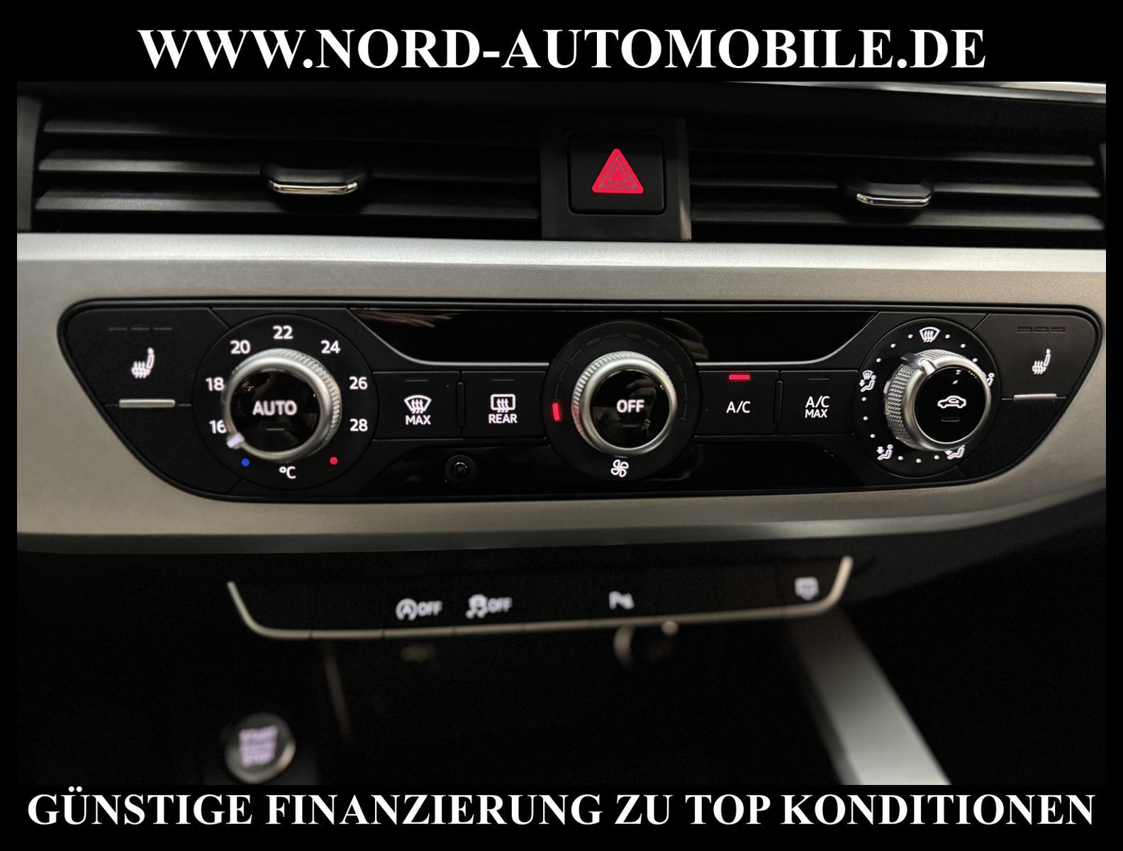 KomfortExtrasUnterhaltungBeschreibungwww.nord-automobile.de AUDI A4 AvantAnsprechpartner:Jan Feldhus, Jonathan Steinfeld, Tom Bijman, Simon Wolff, Matthis Ullrich* FAHRZEUG-NUMMER: M-0638-BD * LACKIERUNG:Mythosschwarz Metallic * Deutsche Auslieferung * Mdelljahr:2022 * UPE brutto 45.261 ¤ * Abgaskonzept, EU6 AP * Audi Smartphone Interface * Einparkhilfe plus * Sonnenschutzrollo für Seitenscheiben hinten * Sitzheizung für Vordersitze getrennt regelbar * Navigationsgerät-High * Telefonvorbereitung für Handy * Digitaler Radioempfang * Einparkhilfe vorn und hinten * Multifunktionsanzeige/Bordcomputer''TOP'' * Geschwindigkeitsregelanlage plus Speed-Limiter * LED-Scheinwerfer * Komfortschlüssel inkl. sensorgesteuerterGepäckraumentriegelung inkl. Gepäckraum-klappe elektrisch öffnend und schließend * Ledersportmultifunktionslenkrad * Höheneinstellung, manuell, für Vordersitze * Rücksitzbank ungeteilt, Lehne geteilt umlegbar (dreiteilig) mit Mittelarmlehne * Zentralverriegelung ''Keyless-Entry''ohne Safesicherung * Servoschließung Heckklappe * Glas im Fond dunkel eingefärbt(Venus 35/ Privacy)vorn Wärmeschutzglas (grün) * Fernlichtassistent * Sicherheitsinnenspiegel automatisch abblendbar * Airbag FS und BFS, ohne Knieairbag, mit BFS-Deaktivierung * Außenspiegel, automatisch abblendbar elektrisch anklapp-/einstell-/beheizbar * Reifendruckkontrolle * Start/Stopp-Anlage mit Rekuperation * Leichtmetallräder 7 1/2J x17 * 7-Gang-Automatikgetriebe * Nord-Automobile - Ihr starker und kompetenter Partner seit über 30 Jahren * Wir bieten Ihnen eine günstige Finanzierung auch ohne Anzahlung über die * AutoEuropaBank - Zweigniederlassung der Volkswagen Bank GmbH an * 20 XXL-Fotografien dieses Fahrzeuges finden Sie unter www.nord-automobile.de * Gerne unterbreiten wir Ihnen ein Angebot zum Ankauf Ihres bisherigen Fahrzeuges * Beim Export-Geschäft führen wir die Ausfuhranmeldung und Zulassung für Sie durch * Wir sind Meister-Werkstatt und zertifizierte GTÜ-Prüfstelle * Lernen Sie uns kennen - wir freuen uns auf Ihren Besuch * Keine Haftung für Druck & Schreibfehler. ... Klima, Klimaautomatik, Automatik, Navigationssystem, Sitzheiz. vorn, Regensensor, ESP, ABS, Parktronic System, Multifunktionslenkr., Radio, Bordcomputer, Tempomat, Spiegel autom. abblendbar, Spiegel beheizbar, elektr. Fensterheber vorn, elektr. WFS, Keyless-Go, Beifahrerairb., Seitenairbag vorn, Kopfairbags, Leichtmetallfelgen, Nichtraucher, Servolenkung, Sitzbank teilbar, Dachreling, abklappb. Spiegel, elektr. verstellb. Spiegel, Kopfst. vorn, Mittelarmlehne, Sitzheizung Fahrer + Beif., Lichtsensor, Waermeschutzvergl., aus erster Hand, Schadstoffklasse: Euro 6, Frontantrieb, Lederlenkrad, HSN 0588, TSN BNW, Verbrauch: 6,0/7,5/5,1 l/100 km (komb/inn/auß), CO2: 145 g/km, Partikelfilter, HU + AU wird vor Verkauf erneuert, Feinstaubplakette: 4 - Grün |