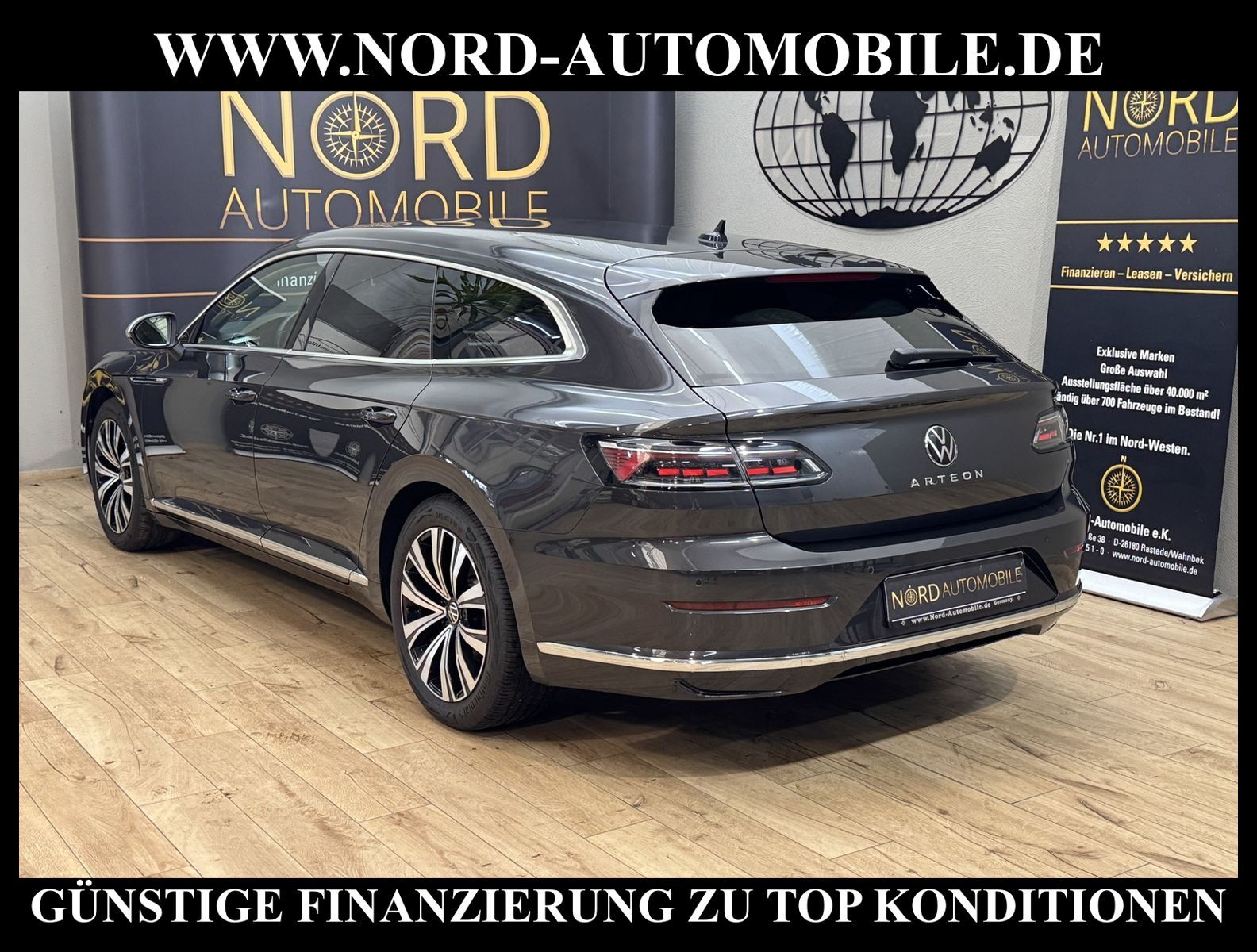KomfortExtrasUnterhaltungBeschreibungwww.nord-automobile.de Volkswagen Arteon Shooting Brake Elegance 2.0 TDI SCR 110kW 7-Gang DSG 4 TürenAnsprechpartner: Jan Feldhus, Jonathan Steinfeld, Tom Bijman, Simon Wolff, Matthis Ullrich* FAHRZEUG-NUMMER: M-1274-BD * LACKIERUNG: Mangangrau Metallic * Modelljahr:2023 * UPE brutto 53.039 ¤ * Deutsche Auslieferung * Abgasnorm Euro 6d * Navigationssystem ''Discover Media'' inkl. ''Streaming & Internet'' * Rückfahrkamera ''Rear View'' * Einparkhilfe vorne und hinten * LED Scheinwerfer * Müdigkeitserkennungserkennung * Spurhalteassistent Lane-Assist * Climatronic ( 3-Zonen ) mit Klimabedienteil hinten * Autom. Distanzregelung (ACC inkl. Stop&Go-Funktion) - Geschwindigkeitsbegrenzungsanlage * Sitzheizung für Vorder-/u.Hintersitze, getrennt regelbar * Verkehrszeichenerkennung * Multifunktionsanzeige/Bordcomputer * Vorbereitet für ''We Connect'' und ''We Connect Plus'' * Schlüsselloses Schließ- und Startsystem ''Keyless Access'' ohne Safe-Sicherung * Front Assist inkl. City ANB für ACC high * Fernlichtregulierung (Light Assist) * Lenkrad heizbar (Leder, R-Line) mit Multifunktion und Schaltfunktion * Lendenwirbelstütze, elektr. einstellbar für linke Vordersitzlehne * Ambientebeleuchtung ''Plus'' * Mobiltelefon Schnittstelle Comfort mit kabelloser Ladefunktion - Bluetooth und 2 x USB * Rücksitzbank ungeteilt, Lehne asymmetrisch geteilt umklappbar, mit Mittelarmlehne und Durchlademöglichkeit * Höheneinstellung, manuell f.Vordersitze plus Sitzflächen-Neigungs u.Tiefeneins. links, plus Lehneneinst.elektr.links * Top-Komfortsitze vorn * Seitenscheiben hinten und Heckscheibe abgedunkelt, zu 65 % lichtabsorbierend * Scheibenwaschdüsen vorn automatisch beheizt * Scheibenwischer-Intervallschaltung mit Licht/Regensensor * Kindersitzverankerung für Kindersitzsystem I-Size, 2 x top tether * Radioempfang digital (DAB+) * Außenspiegel elektr. verstell-, heiz- und anklappbar * Sicherheitsinnenspiegel automatisch abblendbar * Kopfairbagsystem für Front- und Fondpassagiere inkl. Seitenairbags vorn * Sitzmittelbahnen in Mikrovlies ''ArtVelours'' * Airbag für Fahrer und Beifahrer, mit Beifahrerairbag-Deaktivierung, inkl. Knie-Airbag auf der Fahrerseite * Kofferraumdeckel / Heckklappe elektr. betätigt (öffnen + schliessen) * Elektronische Parkbremse inkl. Auto-Hold-Funktion * Berganfahrassistent * Start/Stopp-Anlage mit Rekuperation * 7-Gang-Automatikgetriebe * Reifenkontrollanzeige * 4 Leichtmetallräder ''Muscat'' 8 J x 18 in Schwarz, Oberfläche glanzgedreht * Nord-Automobile - Ihr starker und kompetenter Partner seit über 30 Jahren * Wir bieten Ihnen eine günstige Finanzierung auch ohne Anzahlung über die * AutoEuropaBank - Zweigniederlassung der Volkswagen Bank GmbH an * 20 XXL-Fotografien dieses Fahrzeuges finden Sie unter www.nord-automobile.de * Gerne unterbreiten wir Ihnen ein Angebot zum Ankauf Ihres bisherigen Fahrzeuges * Beim Export-Geschäft führen wir die Ausfuhranmeldung und Zulassung für Sie durch * Wir sind Meister-Werkstatt und zertifizierte GTÜ-Prüfstelle * Lernen Sie uns kennen - wir freuen uns auf Ihren Besuch * Keine Haftung für Druck & Schreibfehler. ... Klima, Klimaautomatik, Automatik, Navigationssystem, Sitzheiz. vorn, Sitzheiz. hinten, Regensensor, ESP, ABS, Distronic, Multifunktionslenkr., Radio, Tel. m. Freisprech., Bordcomputer, Spiegel beheizbar, elektr. Fensterheber vorn, elektr. WFS, Keyless-Go, ZV mit Fernb., Fahrerairb., Beifahrerairb., Seitenairbag vorn, Kopfairbags, Leichtmetallfelgen, Nichtraucher, abklappb. Spiegel, elektr. verstellb. Spiegel, Mittelarmlehne, Sitzhoehenv., Sitzheizung, Lichtsensor, Waermeschutzvergl., aus erster Hand, Schadstoffklasse: Euro 6, Diesel, Frontantrieb, Lederlenkrad, HSN 0603, TSN CMR, Verbrauch: 4,1/5,0/3,5 l/100 km (komb/inn/auß), CO2: 127 g/km, HU + AU wird vor Verkauf erneuert, Feinstaubplakette: 4 - Grün |