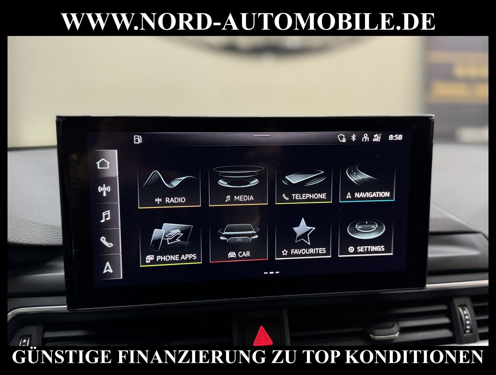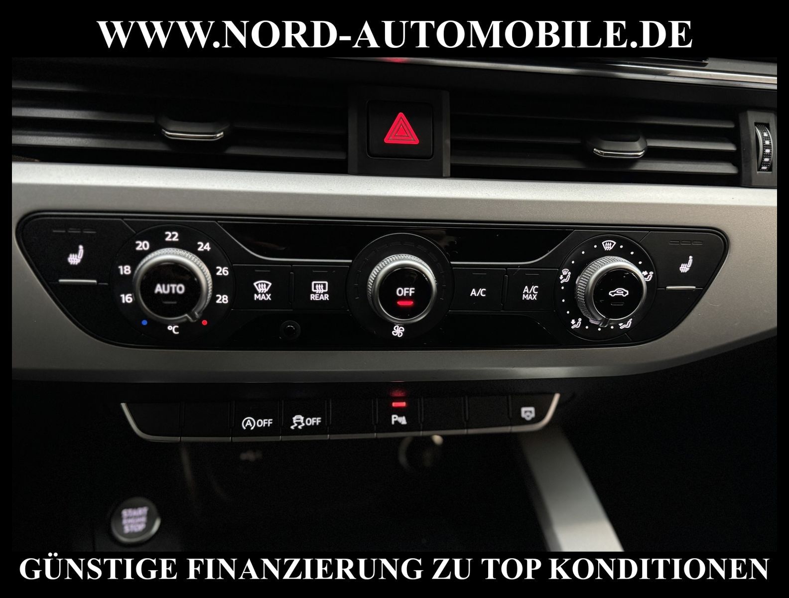 KomfortExtrasUnterhaltungBeschreibungwww.nord-automobile.de AUDI A4 AvantAnsprechpartner:Jan Feldhus, Jonathan Steinfeld, Tom Bijman, Simon Wolff, Matthis Ullrich* FAHRZEUG-NUMMER: M-3842-BD * LACKIERUNG:Mythosschwarz Metallic * Deutsche Auslieferung * Mdelljahr:2022 * UPE brutto 45.261 ¤ * Abgaskonzept, EU6 AP * Audi Smartphone Interface * Einparkhilfe plus * Sonnenschutzrollo für Seitenscheiben hinten * Sitzheizung für Vordersitze getrennt regelbar * Navigationsgerät-High * Telefonvorbereitung für Handy * Digitaler Radioempfang * Einparkhilfe vorn und hinten * Multifunktionsanzeige/Bordcomputer''TOP'' * Geschwindigkeitsregelanlage plus Speed-Limiter * LED-Scheinwerfer * Komfortschlüssel inkl. sensorgesteuerterGepäckraumentriegelung inkl. Gepäckraum-klappe elektrisch öffnend und schließend * Ledersportmultifunktionslenkrad * Höheneinstellung, manuell, für Vordersitze * Rücksitzbank ungeteilt, Lehne geteilt umlegbar (dreiteilig) mit Mittelarmlehne * Zentralverriegelung ''Keyless-Entry''ohne Safesicherung * Servoschließung Heckklappe * Glas im Fond dunkel eingefärbt(Venus 35/ Privacy)vorn Wärmeschutzglas (grün) * Fernlichtassistent * Sicherheitsinnenspiegel automatisch abblendbar * Airbag FS und BFS, ohne Knieairbag, mit BFS-Deaktivierung * Außenspiegel, automatisch abblendbar elektrisch anklapp-/einstell-/beheizbar * Reifendruckkontrolle * Start/Stopp-Anlage mit Rekuperation * Leichtmetallräder 7 1/2J x17 * 7-Gang-Automatikgetriebe * Nord-Automobile - Ihr starker und kompetenter Partner seit über 30 Jahren * Wir bieten Ihnen eine günstige Finanzierung auch ohne Anzahlung über die * AutoEuropaBank - Zweigniederlassung der Volkswagen Bank GmbH an * 20 XXL-Fotografien dieses Fahrzeuges finden Sie unter www.nord-automobile.de * Gerne unterbreiten wir Ihnen ein Angebot zum Ankauf Ihres bisherigen Fahrzeuges * Beim Export-Geschäft führen wir die Ausfuhranmeldung und Zulassung für Sie durch * Wir sind Meister-Werkstatt und zertifizierte GTÜ-Prüfstelle * Lernen Sie uns kennen - wir freuen uns auf Ihren Besuch * Keine Haftung für Druck & Schreibfehler. ... Klima, Klimaautomatik, Automatik, Navigationssystem, Sitzheiz. vorn, Regensensor, ESP, ABS, Parktronic System, Multifunktionslenkr., Radio, Bordcomputer, Tempomat, Spiegel autom. abblendbar, Spiegel beheizbar, elektr. Fensterheber vorn, elektr. WFS, Keyless-Go, Beifahrerairb., Seitenairbag vorn, Kopfairbags, Leichtmetallfelgen, Nichtraucher, Servolenkung, Sitzbank teilbar, Dachreling, abklappb. Spiegel, elektr. verstellb. Spiegel, Kopfst. vorn, Mittelarmlehne, Sitzheizung Fahrer + Beif., Lichtsensor, Waermeschutzvergl., aus erster Hand, Schadstoffklasse: Euro 6, Frontantrieb, Lederlenkrad, HSN 0588, TSN BNW, Verbrauch: 6,0/7,5/5,1 l/100 km (komb/inn/auß), CO2: 145 g/km, Partikelfilter, HU + AU wird vor Verkauf erneuert, Feinstaubplakette: 4 - Grün |