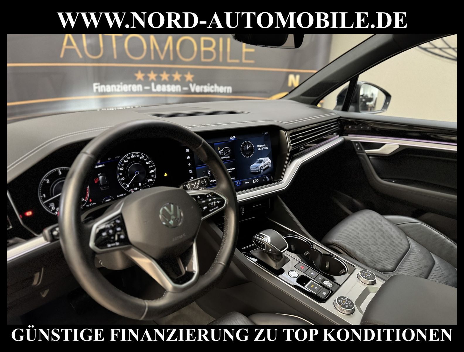 KomfortExtrasUnterhaltungBeschreibungwww.nord-automobile.de Volkswagen Touareg Elegance 4Motion 3.0 TDI SCR 210kW 8-Gang Tiptronic 4 TürenAnsprechpartner: Jan Feldhus, Jonathan Steinfeld, Tom Bijman, Simon Wolff* FAHRZEUG-NUMMER: M-0419- BD * LACKIERUNG: Deep Black Perleffekt * Modelljahr: 2022 * UPE brutto 105.599 ¤ * Unfallfrei * Deutsche Auslieferung * Abgasnorm Euro 6d * R-Line Black Style * 4 Corner Luftfederung mit elektrisch geregelter Dämpfung * Rückfahrkamera mit 360° Umgebungsansicht (Area View) * Head-up-Display * IQ.LIGHT - LED-Matrix-Scheinwerfer * Spurwechselassistent * Digital Cockpit, mehrfarbig, verschiedene Info-Profile wählbar * Schlüsselloses Schließ- und Startsystem ''Keyless Access'' mit Safe-Sicherung * Spurhalteassistent plus Emergency Assist und Stauassistent * Parklenkassistent (Park Assist) und PDC vorn und hinten * Panorama-Ausstell-/Schiebedach * Müdigkeitserkennungserkennung * Mirror Link plus Wireless RSE ''App'' * Sitzbezug / Polsterung: Leder Savona * Dachhimmel in Soul-Schwarz * Active Info Display, mehrfarbig, verschiedene Info-Profile wählbar * Autom. Distanzregelung (ACC inkl. Stop&Go-Funktion) - Geschwindigkeitsbegrenzungsanlage * Sitzheizung für Vorder-/u.Hintersitze, getrennt regelbar * Automatische Distanzregelung ACC ''stop & go'' bis 210 km/h inkl. ''Front Assist'' mit Fußgängererkennung * Navigationsgerät-Premium * Standheizung und -lüftung mit Funkfernbedienung und Vorwahluhr * Verkehrszeichenerkennung * Sonnenschutzrollo an den Türscheiben hinten * Memory-Paket Premium * ''Air Care Climatronic'' mit 4-Zonen-Klimatisierung und Bedienungselementen hinten * Komfort-Paket Keyless Access * Umfeldbeobachtungssystem (Front assist) mit City-Notbremsfunktion * 2 USB-C-Schnittstellen vorn, 1 USB-C-Ladebuchse an der Mittelkonsole hinten * Telefonschnittstelle ''Business'' mit induktiver Ladefunktion * Lenkrad heizbar (Leder) mit Multifunktion und Schaltfunktion * Seitenscheiben in Verbund-Sicherheitsglas, Seitenscheiben hinten und Heckscheibe abgedunkelt * Komfortsitze vorn * Lendenwirbelstützen vorn pneumatisch einstellbar * Lenksäule mit elektrischer Höhen- und Längseinstellung, mit Memory-Funktion * Rücksitzbank und -lehne asymmetrisch geteilt umklappbar, längs verschiebbar, Lehenneigung einstellbar * Vordersitze elektrisch einstellbar, mit Memory-Funktion und längs verschiebbarer Oberschenkelauflage * Ambiente-Paket * Sitze vorn mit Klima- und Massagefunktion * Dynamische Fernlichtregulierung ''Dynamic Light Assist'' für LED-Matrix-Scheinwerfer * Scheibenwaschdüsen vorn automatisch beheizt * Scheinwerfer-Reinigungsanlage * Ambientebeleuchtung mehrfarbig * Frontscheibe in Wärmeschutzglas, geräuschdämmend und beheizbar * Knieairbag Fahrer-/Beifahrerseite, Seitenairbag und Gurtstraffer hinten außen * Kindersitzverankerung für Kindersitzsystem I-Size, 2 x top tether * Radioempfang digital (DAB+) * Airbag für Fahrer und Beifahrer, mit Beifahrerairbag-Deaktivierung, inkl. Knie-Airbag auf der Fahrerseite * Reifenfülldruck-Kontrollsystem * Komfortöffnung Heckklappe (Virtuelles Pedal) plus Easy Close * Außenspiegel elektrisch einstell-, anklapp-, beheizbar und abblendend, Beifahrerspiegelabsenkung und Memory * Diebstahlwarnanlage mit Innenraumüberwachung, Back-up-Horn und Abschleppschutz * 8-Gang-Automatikgetriebe für Allrad * Start-Stopp-System mit Bremsenergie-Rückgewinnung * Dachhimmel in Titanschwarz * Allradlenkung * 4 Leichtmetallräder ''Suzuka'' 9, 5 J x 21 in Schwarz, Volkswagen R * Nord-Automobile - Ihr starker und kompetenter Partner seit über 30 Jahren * Wir bieten Ihnen eine günstige Finanzierung auch ohne Anzahlung über die * AutoEuropaBank - Zweigniederlassung der Volkswagen Bank GmbH an * 20 XXL-Fotografien dieses Fahrzeuges finden Sie unter www.nord-automobile.de * Gerne unterbreiten wir Ihnen ein Angebot zum Ankauf Ihres bisherigen Fahrzeuges * Beim Export-Geschäft führen wir die Ausfuhranmeldung und Zulassung für Sie durch * Wir sind Meister-Werkstatt und zertifizierte GTÜ-Prüfstelle * Lernen Sie uns kennen - wir freuen uns auf Ihren Besuch * Keine Haftung für Druck & Schreibfehler. ... Klima, Klimaautomatik, Automatik, Leder, Navigationssystem, Allrad, Sitzheiz. vorn, Sitzheiz. hinten, Xenon, Vorders. elekt. verstellb., ESP, ABS, Distronic, Parktronic System, Multifunktionslenkr., Radio, Bordcomputer, beheizte Frontscheibe, Spiegel beheizbar, Scheinwerferreinigung, elektr. Fensterheber vorn, Keyless-Go, ZV mit Fernb., Fahrerairb., Beifahrerairb., Seitenairbag vorn, Kopfairbags, Leichtmetallfelgen, Nichtraucher, Sitzbank teilbar, Lenksaeule einstellbar, abklappb. Spiegel, elektr. verstellb. Spiegel, Luftfederung, Mittelarmlehne, elekt. verstellb. Fahre |