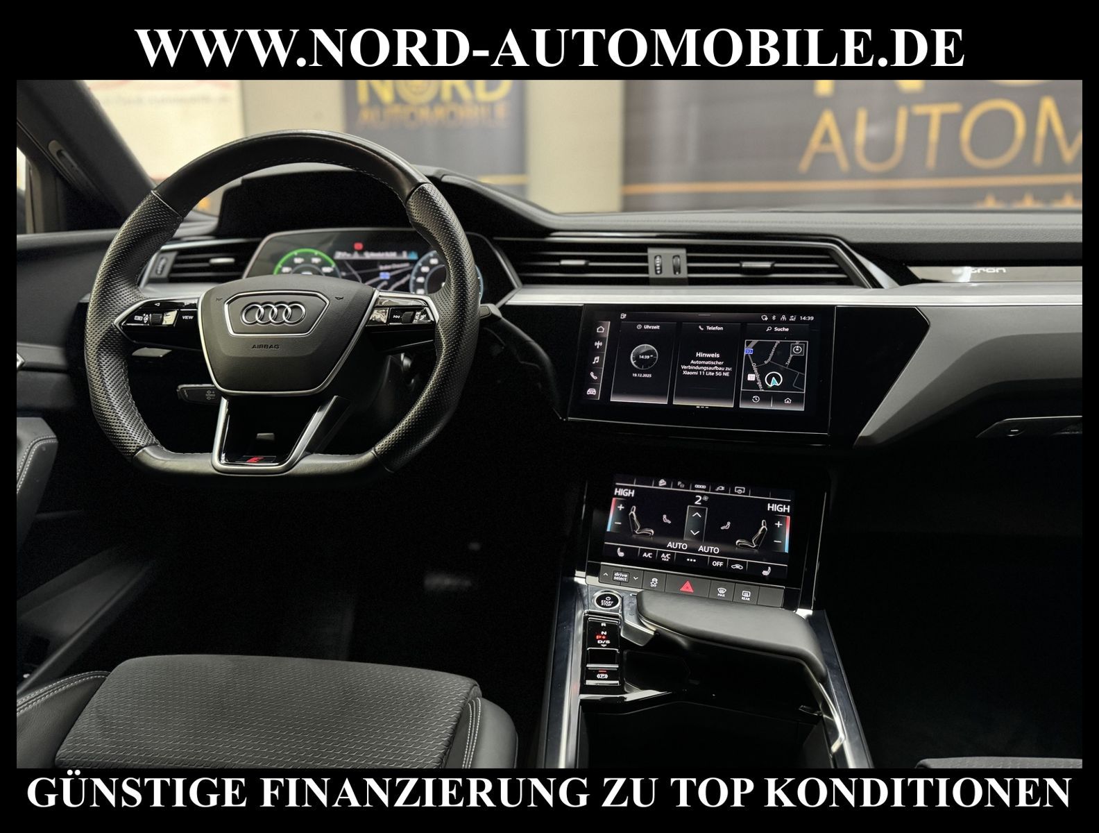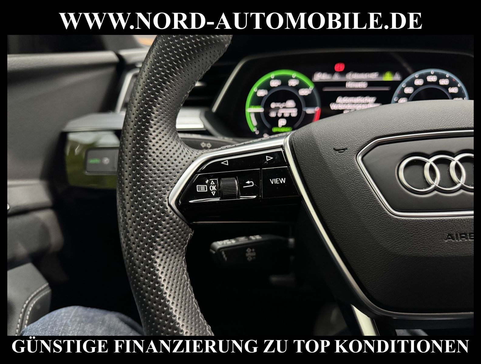 KomfortExtrasUnterhaltungBeschreibungwww.nord-automobile.de AUDI e-tronAnsprechpartner:Jan Feldhus, Jonathan Steinfeld, Tom Bijman, Simon Wolff, Matthis Ullrich* FAHRZEUG-NUMMER: M-6540-BD * LACKIERUNG: Daytonagrau Perleffekt * Deutsche Auslieferung * Modelljahr:2022 * Mit Batteriezertifikat! * UPE brutto 87.669 ¤ * S-Line * Sportback * Optikpaket schwarz plus * Navigationsgerät-High * Spurverlassenswarnung * Sitzheizung für Vordersitze getrennt regelbar * Mit Rückfahrkamerasystem * Zentralverriegelung ''Keyless-Go''ohne Safesicherung * Matrix LED-Scheinwerfer und LED-Heckleuchten * 4 Corner Luftfederung mit elektronisch geregelter Dämpfung * Rückfahrkamera * Mikrofaser Dinamica Frequenz/ Leder-Kombination mit S-Prägung * Geschwindigkeitsregelanlage plus Speed-Limiter * Telefonvorbereitung für Handy * Privacy Verglasung (Scheiben abgedunkelt) * Digitaler Radioempfang * Lendenwirbelstütze, elektr. einstellbar in Vordersitzlehnen * Höheneinstellung, manuell, für Vordersitze * Dachhimmel in Stoff schwarz * Sportsitze vorn * Ledersportmultifunktionslenkrad * Lenksäule, axial u.vertikal einstellbar * Sportsitze vorn * Servoschließung Heckklappe * Sicherheitsinnenspiegel automatisch abblendbar * Außenspiegel, automatisch abblendbar elektrisch anklapp-/einstell-/beheizbar * Airbag FS und BFS, ohne Knieairbag, mit BFS-Deaktivierung * Radschrauben mit Diebstahlsicherung plus Radlöseerkennung * Räder, 5-Arm-Dynamik, graphitgrau, glanzgedreht, 9, 0Jx20, Reifen 255/50 R20 * Reifendruckkontrolle * Nord-Automobile - Ihr starker und kompetenter Partner seit über 30 Jahren * Wir bieten Ihnen eine günstige Finanzierung auch ohne Anzahlung über die * AutoEuropaBank - Zweigniederlassung der Volkswagen Bank GmbH an * 20 XXL-Fotografien dieses Fahrzeuges finden Sie unter www.nord-automobile.de * Gerne unterbreiten wir Ihnen ein Angebot zum Ankauf Ihres bisherigen Fahrzeuges * Beim Export-Geschäft führen wir die Ausfuhranmeldung und Zulassung für Sie durch * Wir sind Meister-Werkstatt und zertifizierte GTÜ-Prüfstelle * Lernen Sie uns kennen - wir freuen uns auf Ihren Besuch * Keine Haftung für Druck & Schreibfehler. ... Klima, Klimaautomatik, Automatik, Navigationssystem, Allrad, Sitzheiz. vorn, Parktronic System, Multifunktionslenkr., Radio, Soundsystem, Bordcomputer, Tempomat, Spiegel autom. abblendbar, Spiegel beheizbar, Scheinwerferreinigung, elektr. Fensterheber vorn, elektr. WFS, Keyless-Go, ZV mit Fernb., Fahrerairb., Beifahrerairb., Seitenairbag vorn, Kopfairbags, Leichtmetallfelgen, Nichtraucher, Sportfahrwerk, Sportsitze/Schalensitze, Sitzbank teilbar, abklappb. Spiegel, elektr. verstellb. Spiegel, Kopfst. vorn, Gepaeckraumabd., Luftfederung, Aluoptik, Mittelarmlehne, Lendenwirbelst., Sitzheizung Fahrer + Beif., Waermeschutzvergl., 12 V Zusatzanschluss, aus erster Hand, 4x4-Antrieb, Lederlenkrad, HSN 0588, TSN BSM, Standklima |