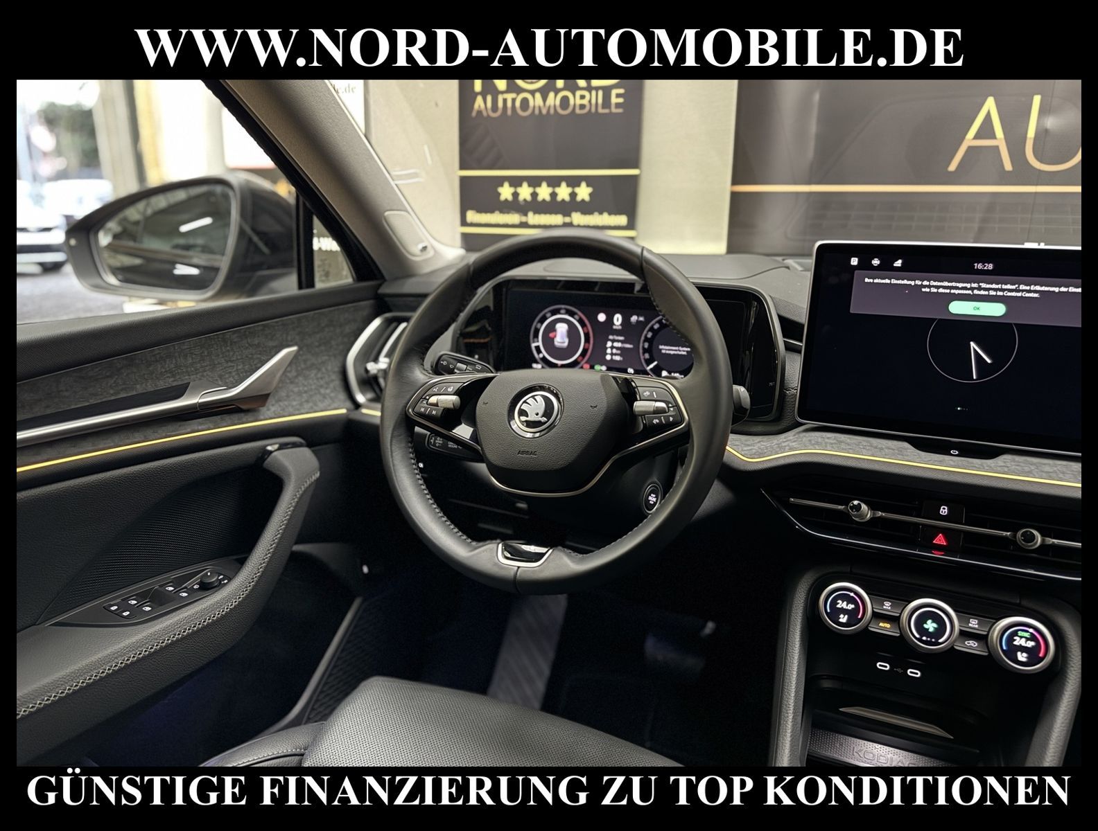 KomfortExtrasUnterhaltungBeschreibungwww.nord-automobile.de Skoda Kodiaq Selection 2.0 TDI 110kW 7-Gang Automatikgetriebe 4 TürenAnsprechpartner: Jan Feldhus, Jonathan Steinfeld, Tom Bijman, Simon Wolff* FAHRZEUG-NUMMER: M-5168-BD * LACKIERUNG: Schwarz-Magic Perleffekt * Modelljahr:2024 * Auslieferungsland Deutschland * Schadstoffarm nach Abgasnorm Euro 6e * Interieur-Design-Paket Suite Black * Head-Up Display * Multipler Matrix-Beam * Mit Front und Rückfahrkamerasystem und zwei Seitenkameras * Spurhalteassistent plus Emergency Assist und Stauassistent * Leder Feinnappa * Anhängevorrichtung mechanisch schwenkbar u.elektr.auslösbar mit Anhängerrangier assistent * Standheizung mit Funkfernbedienung * Fahrassistenz-System: Abbiegebremsfunktion und Ausweichunterstützung * Climatronic (3-Zonen) mit Klimabedienteil hinten * Wired & Wireless App-Connect * Automatische Distanzregelung * Care Connect + Infotainment Online * Verkehrszeichenerkennung * LED- Hauptscheinwerfer mit Kurvenfahrlicht * Sitzbezüge in Leder * Beheizbare Vorder- und Rücksitze * Sprachsteuerung * Ledermultifunktionslenkrad, beheizbar mit Tiptronic * Sitzeinstellung elektrisch für beide Vordersitze, mit Memory und Sitztiefeneinstellung * Leuchtweitenregulierung, autom/dynamisch mit Kurvenfahrlicht * Rücksitzbank/-lehne, geteilt, umlegbar * Scheibenwischer-Intervallschaltung mit Licht/Regensensor * Akustische Seitliche Fenster vorne mit SunSet * Außenspiegel mit Memoryfunktion automatisch abblendbar, elektrisch anklapp-/einstellbar, separat beheizbar * Komfortsitze vorn * DAB - Digitaler Radioempfang * Sonnenrollo für die Seitenscheiben hinten - mechanisch * Klimakomfortscheibe * Dachreling, schwarz * Seitenairbag vorn und hinten, mit Kopfairbag und Interaktionsairbag vorn * Berganfahrassistent * Aero Leichtmetallräder SOIRA 7, 5Jx18'' Anthrazit Glanzgedreht * Airbag FS und BFS, ohne Knieairbag, mit BFS-Deaktivierung * Nord-Automobile - Ihr starker und kompetenter Partner seit über 30 Jahren * Wir bieten Ihnen eine günstige Finanzierung auch ohne Anzahlung über die * AutoEuropaBank - Zweigniederlassung der Volkswagen Bank GmbH an * 20 XXL-Fotografien dieses Fahrzeuges finden Sie unter www.nord-automobile.de * Gerne unterbreiten wir Ihnen ein Angebot zum Ankauf Ihres bisherigen Fahrzeuges * Beim Export-Geschäft führen wir die Ausfuhranmeldung und Zulassung für Sie durch * Wir sind Meister-Werkstatt und zertifizierte GTÜ-Prüfstelle * Lernen Sie uns kennen - wir freuen uns auf Ihren Besuch * Keine Haftung für Druck & Schreibfehler. ... Klima, Klimaautomatik, Automatik, Leder, Navigationssystem, Sitzheiz. vorn, Sitzheiz. hinten, Regensensor, Vorders. elekt. verstellb., ESP, ABS, Distronic, Parktronic System, Multifunktionslenkr., Radio, Bordcomputer, Tempomat, Spiegel autom. abblendbar, Spiegel beheizbar, elektr. Fensterheber vorn, ZV mit Fernb., Fahrerairb., Beifahrerairb., Seitenairbag vorn, Kopfairbags, Leichtmetallfelgen, Nichtraucher, Anhaengerk., Sitzbank teilbar, Dachreling, abklappb. Spiegel, elektr. verstellb. Spiegel, elekt. verstellb. Fahrersitz, Standheizung, Sitzheizung, Lichtsensor, Waermeschutzvergl., aus erster Hand, Schadstoffklasse: Euro 6, Diesel, Frontantrieb, Lederlenkrad, HSN 8004, TSN AYG, CO2: 143 g/km, Feinstaubplakette: 4 - Grün |
