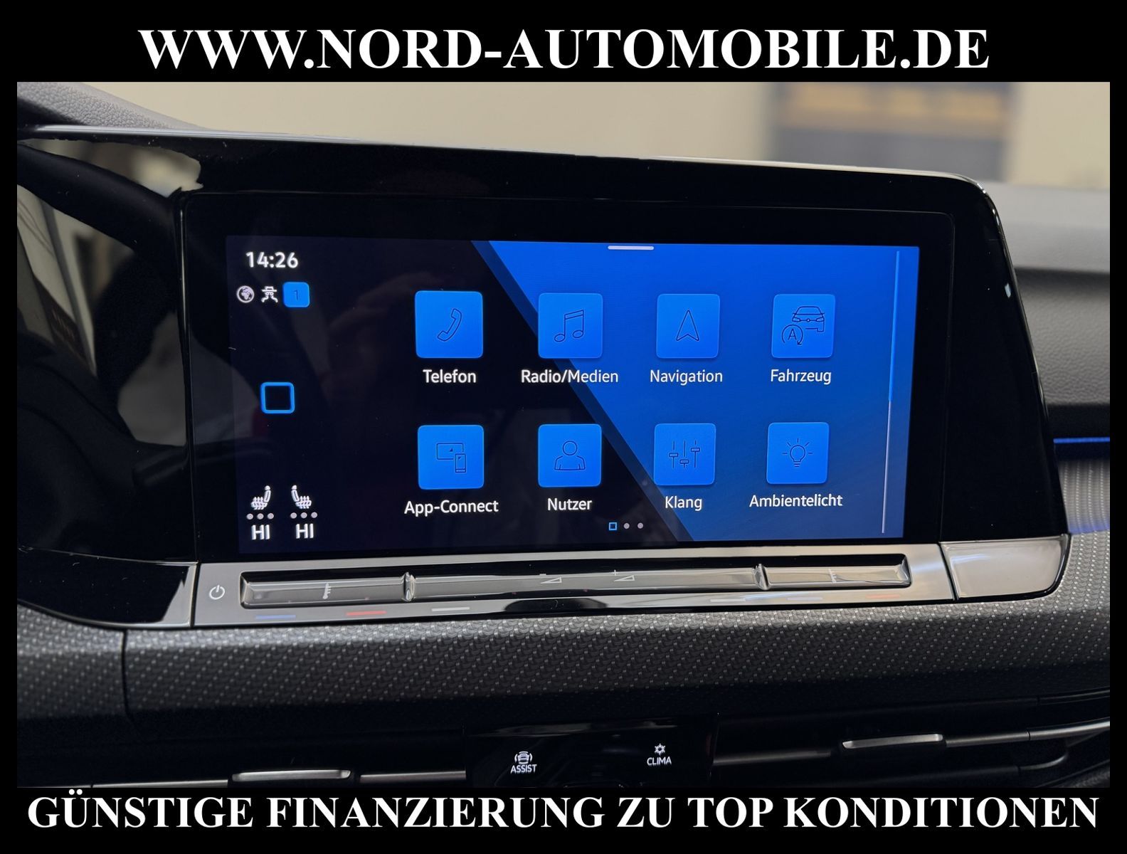 KomfortExtrasUnterhaltungBeschreibungwww.nord-automobile.de Volkswagen Golf Variant R-Line 2.0 TDI SCR 110kW 7-Gang DSG 4 TürenAnsprechpartner: Jan Feldhus, Jonathan Steinfeld, Tom Bijman, Simon Wolff, Matthis Ullrich* FAHRZEUG-NUMMER: M-0613-BD * LACKIERUNG: Deep Black Perleffekt * Modelljahr: 2023 * UPE brutto 4.764 ¤ * Deutsche Auslieferung * Abgasnorm Euro 6d * Ausstattung R-Line * Navigationssystem ''Discover Media'' inkl. ''Streaming & Internet'' * LED-Scheinwerfer * Spurhalteassistent plus Emergency Assist und Stauassistent * Rückfahrkamera ''Rear View'' * Einparkhilfe vorne und hinten * Anhängevorrichtung anklappbar, mit elektrischer Entriegelung * Müdigkeitserkennungserkennung * Climatronic ( 3-Zonen ) mit Klimabedienteil hinten * Autom. Distanzregelung (ACC inkl. Stop&Go-Funktion) - Geschwindigkeitsbegrenzungsanlage * Zentralverriegelung ''Keyless-Go'' ohne Safesicherung * Verkehrszeichenerkennung * ''Business Premium''-Paket inkl. Navigation * Vorbereitet für ''We Connect'' und ''We Connect Plus'' * Fahrassistenz-System: Spurwechselassistent (Side Assist) mit Auspark-Assistent und Ausstiegswarnung * Sitzheizung für Vordersitze getrennt regelbar * Digital Cockpit Pro * Mobiltelefon Schnittstelle Comfort mit kabelloser Ladefunktion * Intelligente Fahrzeugvernetzung (Car2X) * Sprachsteuerungssystem * Lenkrad heizbar (Leder, R-Line) mit Multifunktion und Schaltfunktion * Sportsitze vorn * Sitze vorn höhenverstellbar * Seitenscheiben hinten und Heckscheibe abgedunkelt, zu 65 % lichtabsorbierend * Scheibenwaschdüsen vorn automatisch beheizt * Rücksitzlehne asymmetrisch geteilt umklappbar, mit Durchlademöglichkeit und Mittelarmlehne, 2 Becherhalter * Umfeldbeobachtungssystem (Front assist) mit City-Notbremsfunktion * ISOFIX-Halteösen für Kindersitze auf denäußeren Rücksitzen sowie auf dem Beifahrersitz, i-Size-kompatibel * Leichtmetallräder ''Las Minas'' * Sitzmittelbahnen der Vordersitze und deräußeren Rücksitzplätze in Stoff ''Sardegna'', -innenwangen in ''ArtVelours'' * Airbag für Fahrer und Beifahrer, mit Beifahrerairbag-Deaktivierung * Radioempfang digital (DAB+) * Kopfairbagsystem für Front- und Fondpassagiere inkl. Seitenairbags vorn * Außenspiegel elektrisch einstell-, anklapp-, beheizbar, Umfeldbeleuchtung, Beifahrerspiegelabsenkung, Memory * Sportfahrwerk * Elektronische Parkbremse inkl. Auto-Hold-Funktion * Start/Stopp-Anlage mit Rekuperation * 7-Gang-Automatikgetriebe * Reifenkontrollanzeige * 4 Leichtmetallräder ''Bergamo'' 7, 5 J x 18 in Schwarz, Oberfläche glanzgedreht * Nord-Automobile - Ihr starker und kompetenter Partner seit über 30 Jahren * Wir bieten Ihnen eine günstige Finanzierung auch ohne Anzahlung über die * AutoEuropaBank - Zweigniederlassung der Volkswagen Bank GmbH an * 20 XXL-Fotografien dieses Fahrzeuges finden Sie unter www.nord-automobile.de * Gerne unterbreiten wir Ihnen ein Angebot zum Ankauf Ihres bisherigen Fahrzeuges * Beim Export-Geschäft führen wir die Ausfuhranmeldung und Zulassung für Sie durch * Wir sind Meister-Werkstatt und zertifizierte GTÜ-Prüfstelle * Lernen Sie uns kennen - wir freuen uns auf Ihren Besuch * Keine Haftung für Druck & Schreibfehler. ... Klima, Klimaautomatik, Automatik, Navigationssystem, Sitzheiz. vorn, ESP, ABS, Distronic, Multifunktionslenkr., Radio, Tel. m. Freisprech., Bordcomputer, Spiegel beheizbar, elektr. Fensterheber vorn, elektr. WFS, Keyless-Go, ZV mit Fernb., Fahrerairb., Beifahrerairb., Seitenairbag vorn, Kopfairbags, Leichtmetallfelgen, Nichtraucher, Anhaengerk., Sportfahrwerk, Sportsitze/Schalensitze, Sitzbank teilbar, Dachreling, abklappb. Spiegel, elektr. verstellb. Spiegel, Mittelarmlehne, Lendenwirbelst., Sitzhoehenv., orthop. Fahrersitz, Sitzheizung, Waermeschutzvergl., aus erster Hand, Schadstoffklasse: Euro 6, Diesel, Frontantrieb, Lederlenkrad, HSN 0603, TSN CNN, CO2: 124 g/km, HU + AU wird vor Verkauf erneuert, Feinstaubplakette: 4 - Grün |