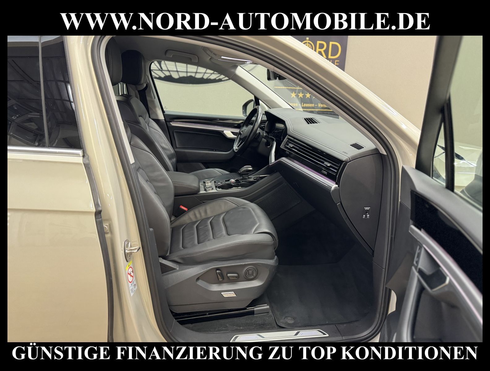 KomfortExtrasUnterhaltungBeschreibungwww.nord-automobile.de Volkswagen Touareg Elegance 4Motion 3.0 TDI SCR 210kW 8-Gang Tiptronic 4 TürenAnsprechpartner: Jan Feldhus, Jonathan Steinfeld, Tom Bijman, Simon Wolff, Matthis Ullrich* FAHRZEUG-NUMMER: M-9361-BD * LACKIERUNG: Sechura Beige Metallic * Modelljahr: 2023 * UPE brutto 90.038 ¤ * Deutsche Auslieferung * Abgasnorm Euro 6d * 4 Corner Luftfederung mit elektrisch geregelter Dämpfung * Rückfahrkamera mit 360° Umgebungsansicht (Area View) * Head-up-Display * LED-Scheinwerfer * Spurwechselassistent * Automatische Distanzregelung ACC bis 210 km/h inkl. ''Front Assist'' mit Fußgängererkennung * Schlüsselloses Schließ- und Startsystem ''Keyless Access'' mit Safe-Sicherung * Spurhalteassistent plus Emergency Assist und Stauassistent * Parklenkassistent (Park Assist) und PDC vorn und hinten * Müdigkeitserkennungserkennung * Sitzbezüge in Leder ''Vienna'' * Active Info Display, mehrfarbig, verschiedene Info-Profile wählbar * Autom. Distanzregelung (ACC inkl. Stop&Go-Funktion) - Geschwindigkeitsbegrenzungsanlage * Navigationsgerät-Premium * Standheizung mit Fernbedienung * Klimaanlage ''Climatronic'' mit 2-Zonen-Temperaturregelung * Verkehrszeichenerkennung * Anhängerkupplung elektr. anklappbar * Sitzheizung für Vordersitze getrennt regelbar * Komfort-Paket Keyless Access * Umfeldbeobachtungssystem (Front assist) mit City-Notbremsfunktion * Bluetooth-Schnittstelle für Mobiltelefon * Lenkrad heizbar (Leder) mit Multifunktion und Schaltfunktion * Vordersitze elektrisch einstellbar, mit längs verschiebbarer Oberschenkelauflagesowie Fahrersitz mit Memory-Funktion * Memory-Paket * Komfortsitze vorn * Lendenwirbelstützen vorn pneumatisch einstellbar * Rücksitzbank und -lehne asymmetrisch geteilt umklappbar, längs verschiebbar, Lehenneigung einstellbar * Ambiente-Paket * Seitenscheiben hinten und Heckscheibe abgedunkelt, zu 65 % lichtabsorbierend * Dynamische Fernlichtregulierung ''Dynamic Light Assist'' für LED-Matrix-Scheinwerfer * Scheibenwaschdüsen vorn automatisch beheizt * Scheinwerfer-Reinigungsanlage * Ambientebeleuchtung mehrfarbig * Kindersitzverankerung für Kindersitzsystem I-Size, 2 x top tether * Airbag für Fahrer und Beifahrer, mit Beifahrerairbag-Deaktivierung * Radioempfang digital (DAB+) * Lenksäule einstellbar * Kopfairbagsystem für Front- und Fondpassagiere inkl. Seitenairbags vorn * Komfortöffnung Heckklappe (Virtuelles Pedal) plus Easy Close * Außenspiegel elektrisch einstell-, anklapp-, beheizbar und abblendend, Beifahrerspiegelabsenkung und Memory * Diebstahlwarnanlage mit Innenraumüberwachung, Back-up-Horn und Abschleppschutz * 8-Gang-Automatikgetriebe für Allrad * Start-Stopp-System mit Bremsenergie-Rückgewinnung * Reifenkontrollanzeige * 4 Leichtmetallräder ''Concordia'' 8 J x 18 * Nord-Automobile - Ihr starker und kompetenter Partner seit über 30 Jahren * Wir bieten Ihnen eine günstige Finanzierung auch ohne Anzahlung über die * AutoEuropaBank - Zweigniederlassung der Volkswagen Bank GmbH an * 20 XXL-Fotografien dieses Fahrzeuges finden Sie unter www.nord-automobile.de * Gerne unterbreiten wir Ihnen ein Angebot zum Ankauf Ihres bisherigen Fahrzeuges * Beim Export-Geschäft führen wir die Ausfuhranmeldung und Zulassung für Sie durch * Wir sind Meister-Werkstatt und zertifizierte GTÜ-Prüfstelle * Lernen Sie uns kennen - wir freuen uns auf Ihren Besuch * Keine Haftung für Druck & Schreibfehler. ... Klima, Klimaautomatik, Automatik, Leder, Navigationssystem, Sitzheiz. vorn, Xenon, Vorders. elekt. verstellb., ESP, ABS, Distronic, Parktronic System, Multifunktionslenkr., Radio, Tel. m. Freisprech., Bordcomputer, Spiegel beheizbar, Scheinwerferreinigung, elektr. Fensterheber vorn, Keyless-Go, ZV mit Fernb., Fahrerairb., Beifahrerairb., Seitenairbag vorn, Kopfairbags, Leichtmetallfelgen, Nichtraucher, Anhaengerk., Sitzbank teilbar, Lenksaeule einstellbar, abklappb. Spiegel, elektr. verstellb. Spiegel, Luftfederung, Mittelarmlehne, elekt. verstellb. Fahrersitz, Standheizung, Sitzheizung, Waermeschutzvergl., aus erster Hand, Schadstoffklasse: Euro 6, Diesel, 4x4-Antrieb, Lederlenkrad, HSN 0603, TSN COC, CO2: 212 g/km, HU + AU wird vor Verkauf erneuert, Feinstaubplakette: 4 - Grün |