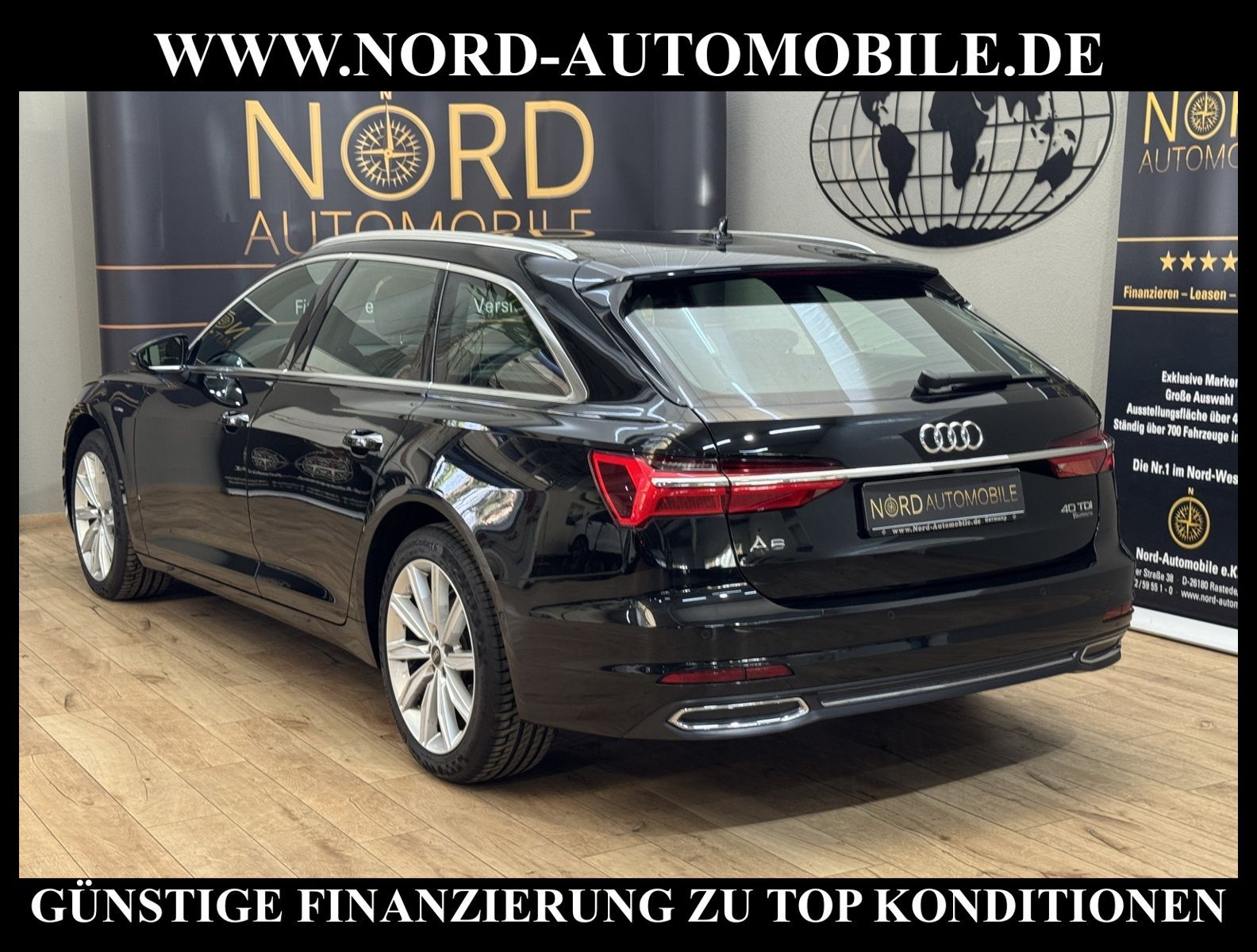 KomfortExtrasUnterhaltungBeschreibungwww.nord-automobile.de Audi A6 Avant design quattro 2.0 40 electric/TDI 150kW 7-Gang S tronic 4 TürenAnsprechpartner: Jan Feldhus, Jonathan Steinfeld, Tom Bijman, Simon Wolff, Matthis Ullrich* FAHRZEUG-NUMMER: M-7321-BD * LACKIERUNG: Mythosschwarz Metallic * Modelljahr:2021 * UPE brutto 73.499¤ * Deutsche Auslieferung * MMI Navigation Plus mit MMI Touch * Sitzbezug / Polsterung: Leder Milano * Sitzheizung vorn * Assistenz-Paket Tour * Geschwindigkeitsbegrenzungsanlage * Rückfahrkamera * LED Scheinwerfer * City-Notbremsfunktion (Audi pre sense City) * Schließ-/Startsystem Advanced Key (Komfortschlüssel) * Einparkhilfe plus vorn, seitlich und hinten, akustisch und optisch mit Umgebungsanzeige * Bluetooth-Freisprecheinrichtung mit Spracherkennung (Audi Phone Box) * Komfort-Klimaautomatik 4-Zonen * Radioempfang digital (DAB) * Audi Sound-System * Adaptiver Geschwindigkeitsassistent mit Geschwindigkeitsbegrenzer, Effizienz-, Ausweich- und Abbiegeassistent * Lederlenkrad im 3-Speichen-Design mit Multifunktion plus * Dachhimmel in Stoff schwarz * Adaptive Scheibenwischer mit integrierten Waschdüsen * Vordersitze elektrisch einstellbar inklusive Memory-Funktion für den Fahrersitz * Mittelarmlehne vorn * Sitze vorn elektr. verstellbar (links mit Memory) * Fernlichtassistent * Servolenkung * Airbag Beifahrerseite abschaltbar * Audi Drive Select * Start/Stop-Anlage * Wegfahrsperre (elektronisch) * Reifendruck-Kontrollanzeige * Gepäckraumklappe elektr. betätigt (öffnen + schliessen) * Außenspiegel elektr. verstell-, heiz- und anklappbar, mit Abblendautomatik und Memory * Getriebe 7-Gang - Doppelkupplungsgetriebe S-tronic * Komfortschlüssel mit sensorgesteuerter Heckklappenentriegelung inkl. (öffnen + schliessen) * Aluminium-Gussräder im 10-Speichen-Dynamik-Design 8, 5 J x 19 * Nord-Automobile - Ihr starker und kompetenter Partner seit über 30 Jahren * Wir bieten Ihnen eine günstige Finanzierung auch ohne Anzahlung über die * AutoEuropaBank - Zweigniederlassung der Volkswagen Bank GmbH an * 20 XXL-Fotografien dieses Fahrzeuges finden Sie unter www.nord-automobile.de * Gerne unterbreiten wir Ihnen ein Angebot zum Ankauf Ihres bisherigen Fahrzeuges * Beim Export-Geschäft führen wir die Ausfuhranmeldung und Zulassung für Sie durch * Wir sind Meister-Werkstatt und zertifizierte GTÜ-Prüfstelle * Lernen Sie uns kennen - wir freuen uns auf Ihren Besuch * Keine Haftung für Druck & Schreibfehler. ... Klima, Klimaautomatik, Automatik, Leder, Navigationssystem, Allrad, Sitzheiz. vorn, Vorders. elekt. verstellb., ESP, ABS, Distronic, Parktronic System, Multifunktionslenkr., Soundsystem, Tel. m. Freisprech., Bordcomputer, Spiegel beheizbar, elektr. Fensterheber vorn, elektr. WFS, ZV mit Fernb., Fahrerairb., Beifahrerairb., Leichtmetallfelgen, Nichtraucher, Servolenkung, abklappb. Spiegel, Mittelarmlehne, elekt. verstellb. Fahrersitz, Sitzheizung, Schadstoffklasse: Euro 6, Diesel, 4x4-Antrieb, Lederlenkrad, HSN 0588, TSN BTA, Verbrauch: 4,9/5,7/4,4 l/100 km (komb/inn/auß), CO2: 153 g/km, Feinstaubplakette: 4 - Grün |