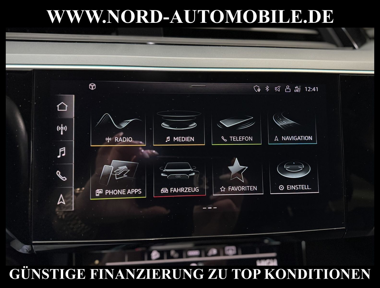 KomfortExtrasUnterhaltungBeschreibungwww.nord-automobile.de Audi e-tronAnsprechpartner:Jan Feldhus, Jonathan Steinfeld, Tom Bijman, Simon Wolff, Matthis Ullrich* FAHRZEUG-NUMMER: M-8640-BD * LACKIERUNG: Taifungrau Metallic * Deutsche Auslieferung * UPE brutto 93.829 ¤ * Mit Batteriezertifikat SoH 95% * Modelljahr:2023 * Advanced * Optikpaket schwarz plus * Navigationsgerät-High * Automatische Distanzregelung * Assistenzpaket Tour * Digitaler Radioempfang * Sitzbezüge in Teilleder schwarz * Smartphone-Interface * Rückfahrkamera * Ambiente-Lichtpaket plus * Sitzheizung für Vordersitze getrennt regelbar * Zentralverriegelung ''Keyless-Go''ohne Safesicherung * Mit Verkehrszeichenerkennung * Sportsitze vorn * Spurhalteassistent plus Emergency Assist und Stauassistent * Telefonvorbereitung für Handy * 4 Corner Luftfederung mit elektrisch geregelter Dämpfung * Radschrauben mit Diebstahlsicherung plus Radlöseerkennung * Höheneinstellung, manuell, für Vordersitze * Bedientasten schwarz glänzend mit haptischem Feedback und Aluminiumoptik Interieur * Lenksäule, axial u.vertikal einstellbar * Lendenwirbelstütze, elektr. einstellbar in Vordersitzlehnen * Sicherheitsinnenspiegel automatisch abblendbar * Dachreling Schwarz * Schalttafeloberseite und Interieurelemente unten in Kunstleder * Ledermultifunktionslenkrad für Airbag-System * Glas im Fond dunkel eingefärbt(Venus 35/ Privacy)vorn Wärmeschutzglas (grün) * Allradantrieb * Airbag FS und BFS, ohne Knieairbag, mit BFS-Deaktivierung * Außenspiegel, automatisch abblendbar elektrisch anklapp-/einstell-/beheizbar * Bremssättel orange lackiert, 18 Zoll * Räder, 5-Arm-Dynamik, graphitgrau, glanzgedreht, 9, 0Jx20, Reifen 255/50 R20 * Reifendruckkontrolle * Servoschließung Heckklappe * Nord-Automobile - Ihr starker und kompetenter Partner seit über 20 Jahren * Wir bieten Ihnen eine günstige Finanzierung auch ohne Anzahlung über die * AutoEuropaBank - Zweigniederlassung der Volkswagen Bank GmbH an * 20 XXL-Fotografien dieses Fahrzeuges finden Sie unter www.nord-automobile.de * Gerne unterbreiten wir Ihnen ein Angebot zum Ankauf Ihres bisherigen Fahrzeuges * Beim Export-Geschäft führen wir die Ausfuhranmeldung und Zulassung für Sie durch * Wir sind Meister-Werkstatt und zertifizierte DEKRA-Prüfstelle * Lernen Sie uns kennen - wir freuen uns auf Ihren Besuch * Keine Haftung für Druck & Schreibfehler. ... Klima, Klimaautomatik, Automatik, Navigationssystem, Allrad, Sitzheiz. vorn, ABS, Distronic, Parktronic System, Multifunktionslenkr., Radio, Soundsystem, Bordcomputer, Tempomat, Spiegel autom. abblendbar, Spiegel beheizbar, Scheinwerferreinigung, elektr. Fensterheber vorn, elektr. WFS, Keyless-Go, ZV mit Fernb., Fahrerairb., Beifahrerairb., Seitenairbag vorn, Kopfairbags, Leichtmetallfelgen, Nichtraucher, Sportsitze/Schalensitze, Spoiler, Sitzbank teilbar, Dachreling, abklappb. Spiegel, elektr. verstellb. Spiegel, Kopfst. vorn, Gepaeckraumabd., Luftfederung, Mittelarmlehne, Lendenwirbelst., Sitzheizung Fahrer + Beif., Waermeschutzvergl., 12 V Zusatzanschluss, aus erster Hand, 4x4-Antrieb, Lederlenkrad, HSN 0588, TSN BSL, HU + AU wird vor Verkauf erneuert, Standklima |