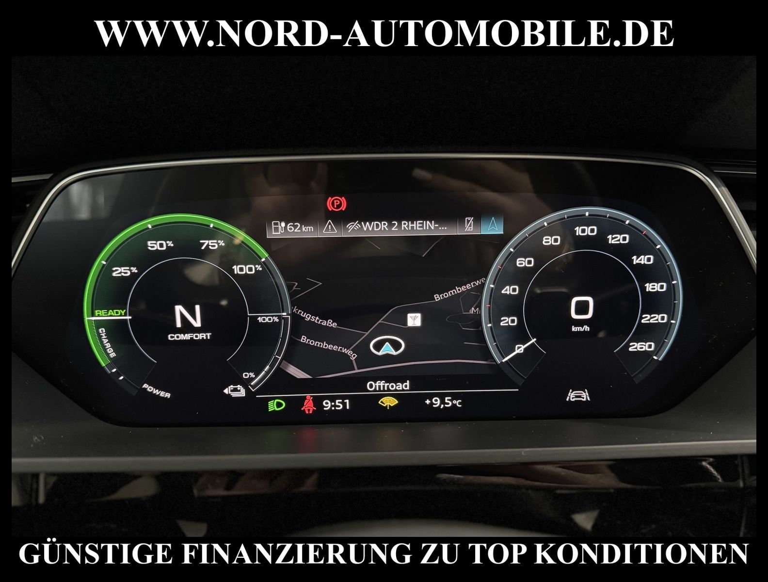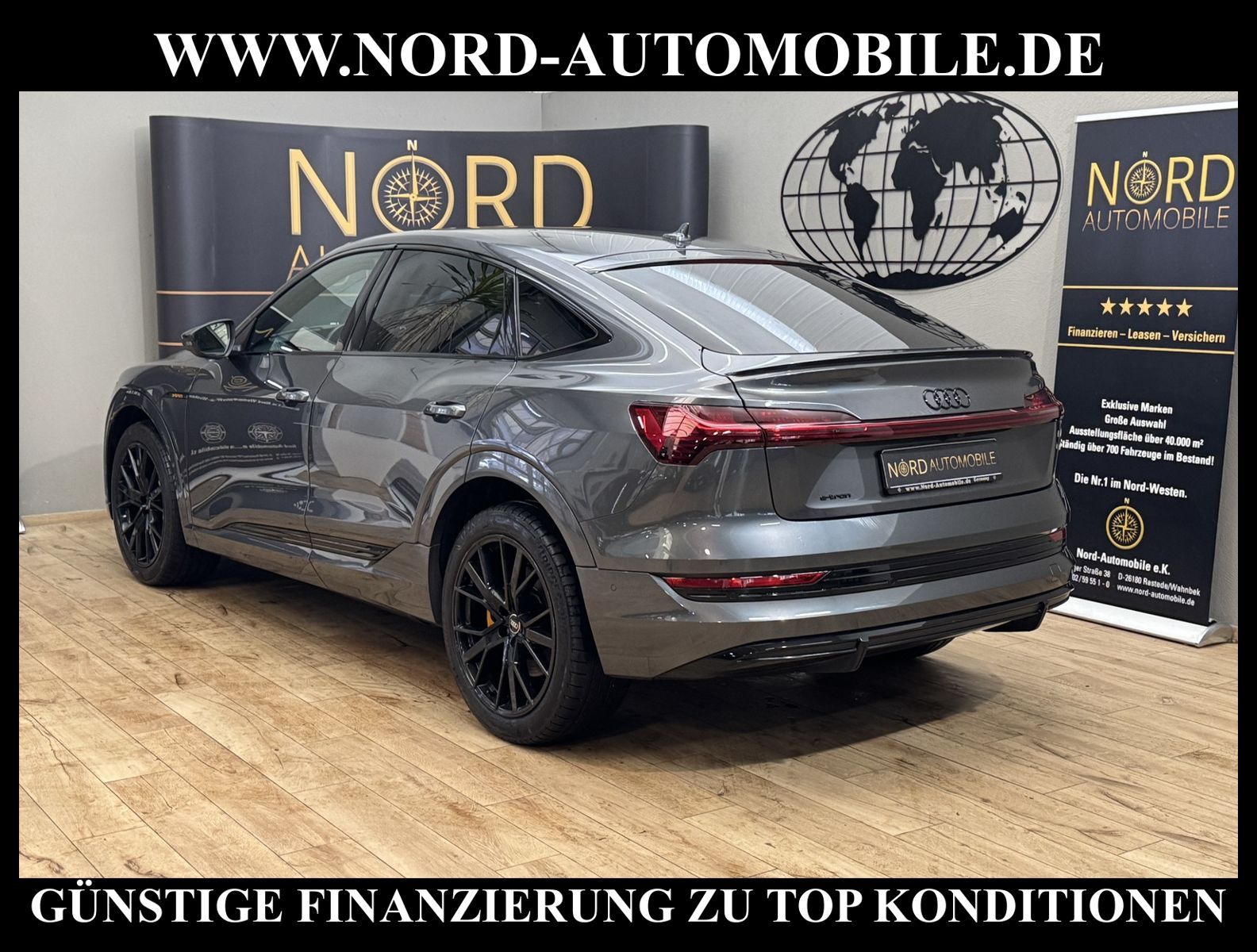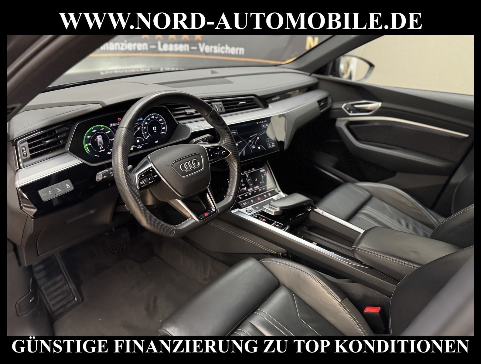 KomfortExtrasUnterhaltungBeschreibungwww.nord-automobile.de Audi e-tron SportbackAnsprechpartner:Jan Feldhus, Jonathan Steinfeld, Tom Bijman, Simon Wolff, Matthis Ullrich* FAHRZEUG-NUMMER: M-0506-BD * LACKIERUNG: Daytonagrau Perleffekt * Deutsche Auslieferung * Modelljahr:2023 * Mit Batteriezertifikat! * UPE brutto 88.814 ¤ * S-Line * Optikpaket schwarz plus * Leder Valcona mit S-Prägung * Rückfahrkamera * Zentralverriegelung ''Keyless-Entry''ohne Safesicherung * Spurverlassenswarnung * Navigationsgerät-High * Parklenkassistent * LED-Scheinwerfer * Digitaler Radioempfang * Ambiente-Lichtpaket * Geschwindigkeitsregelanlage plus Speed-Limiter * Bang & Olufsen Premium Soundsystem mit 3D Klang * Sitzheizung für Vordersitze getrennt regelbar * Telefonvorbereitung für Handy * 4 Corner Luftfederung mit elektronisch geregelter Dämpfung * Komfortschlüssel inkl. sensorgesteuerter Gepäckraumentriegelung * Höheneinstellung, manuell, für Vordersitze * Ledersportmultifunktionslenkrad * Sportsitze vorn * Dachhimmel in Stoff schwarz * Außenspiegelgehäuse schwarz * Lendenwirbelstütze, elektr. einstellbar in Vordersitzlehnen * Sportkontur-Lederlenkrad, 3-Speichen, unten abgeflacht mit Multifunktion und Schaltwippen * Bremssättel orange lackiert, 18 Zoll * Glas im Fond dunkel eingefärbt(Venus 35/ Privacy)vorn Wärmeschutzglas (grün) * Lenksäule, axial u.vertikal einstellbar * Räder Audi Sport, 5-V-Speichen-Stern, schwarz, 9, 5Jx21, Reifen 265/45 R21 * Radschrauben mit Diebstahlsicherung plus Radlöseerkennung * Sicherheitsinnenspiegel automatisch abblendbar * Außenspiegel elektr. einstell-/beheizbar * Reifendruckkontrolle * Airbag FS und BFS, ohne Knieairbag, mit BFS-Deaktivierung * Servoschließung Heckklappe * Nord-Automobile - Ihr starker und kompetenter Partner seit über 30 Jahren * Wir bieten Ihnen eine günstige Finanzierung auch ohne Anzahlung über die * AutoEuropaBank - Zweigniederlassung der Volkswagen Bank GmbH an * 20 XXL-Fotografien dieses Fahrzeuges finden Sie unter www.nord-automobile.de * Gerne unterbreiten wir Ihnen ein Angebot zum Ankauf Ihres bisherigen Fahrzeuges * Beim Export-Geschäft führen wir die Ausfuhranmeldung und Zulassung für Sie durch * Wir sind Meister-Werkstatt und zertifizierte GTÜ-Prüfstelle * Lernen Sie uns kennen - wir freuen uns auf Ihren Besuch * Keine Haftung für Druck & Schreibfehler. ... Klima, Klimaautomatik, Automatik, Leder, Navigationssystem, Allrad, Sitzheiz. vorn, Parktronic System, Multifunktionslenkr., Radio, Soundsystem, Bordcomputer, Tempomat, Spiegel autom. abblendbar, Spiegel beheizbar, Scheinwerferreinigung, elektr. Fensterheber vorn, elektr. WFS, Keyless-Go, ZV mit Fernb., Fahrerairb., Beifahrerairb., Seitenairbag vorn, Kopfairbags, Leichtmetallfelgen, Nichtraucher, Sportfahrwerk, Sportsitze/Schalensitze, Sitzbank teilbar, elektr. verstellb. Spiegel, Kopfst. vorn, Gepaeckraumabd., Luftfederung, Aluoptik, Mittelarmlehne, Lendenwirbelst., Sitzheizung Fahrer + Beif., Waermeschutzvergl., 12 V Zusatzanschluss, aus erster Hand, 4x4-Antrieb, Lederlenkrad, HSN 0588, TSN BSM, HU + AU wird vor Verkauf erneuert, Standklima |