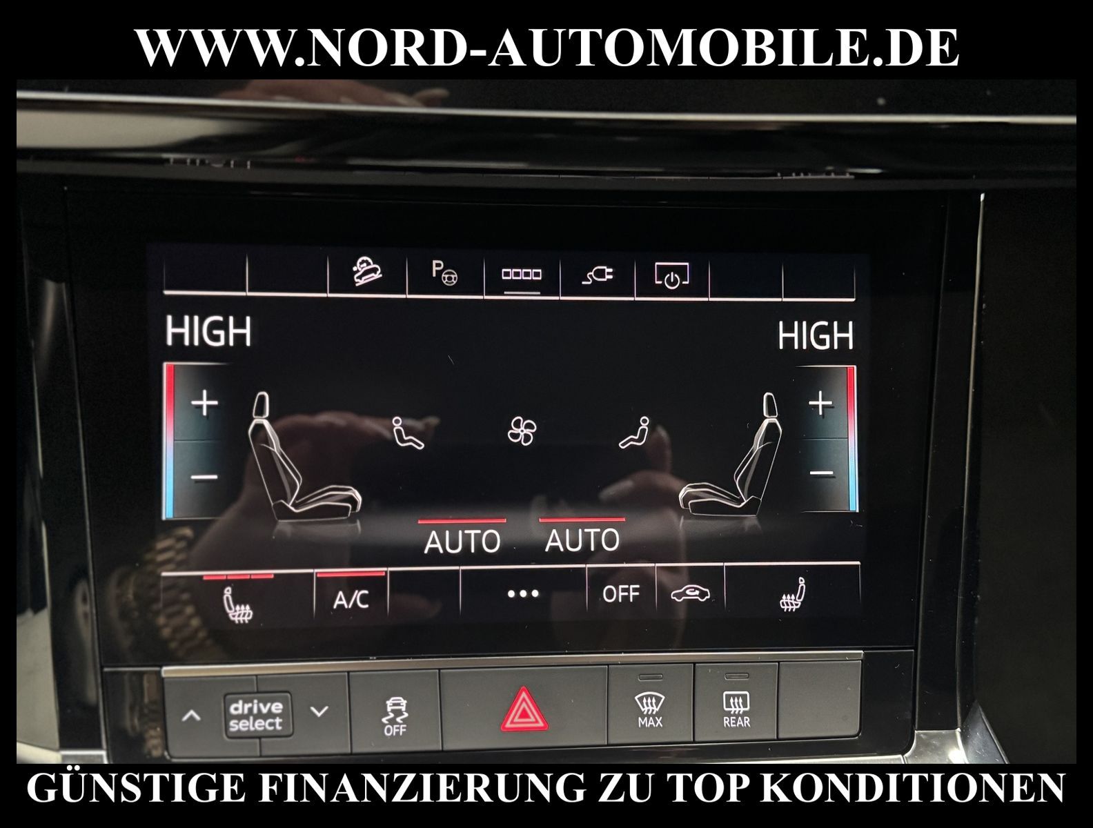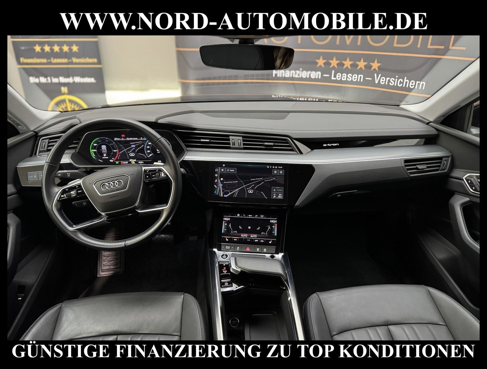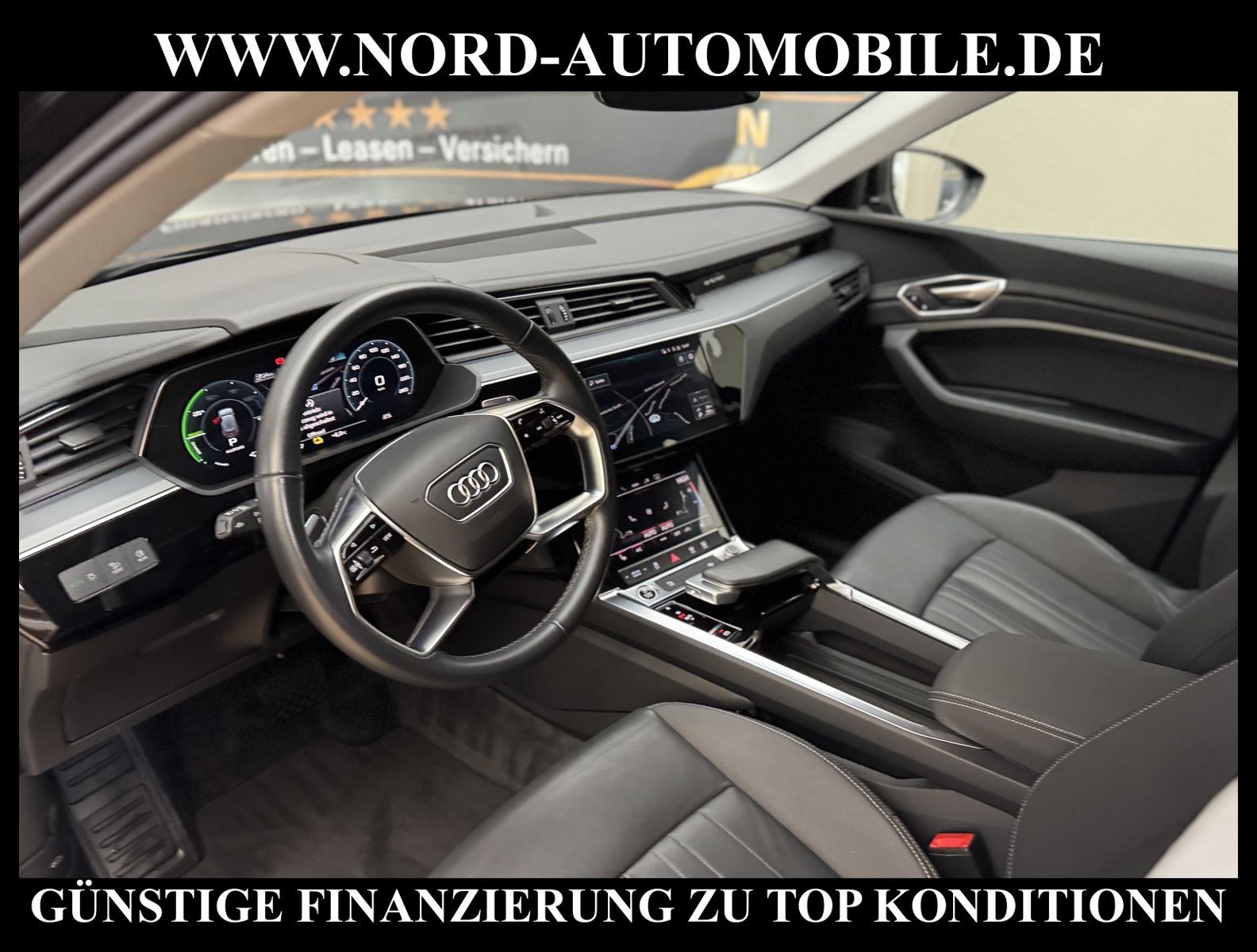 KomfortExtrasUnterhaltungBeschreibungwww.nord-automobile.de Audi e-tronAnsprechpartner:Jan Feldhus, Jonathan Steinfeld, Tom Bijman, Simon Wolff, Matthis Ullrich* FAHRZEUG-NUMMER: M-2568-BD * LACKIERUNG: Brillantschwarz * Deutsche Auslieferung * Modelljahr:2022 * UPE brutto 86.579 ¤ * Mit Batteriezertifikat SoH 97, 9% * Navigationsgerät-High * Mit Rückfahrkamerasystem * LED-Scheinwerfer * Audi virtual cockpit * Audi Soundsystem * Einparkhilfe plus mit Umgebungsanzeige * 4 Corner Luftfederung mit elektrisch geregelter Dämpfung * Digitaler Radioempfang * Sitzheizung für Vordersitze getrennt regelbar * Spurverlassenswarnung * Ledersitze * Telefonvorbereitung für Handy * Lenksäule, axial u.vertikal einstellbar * Höheneinstellung, manuell, für Vordersitze * Ledermultifunktionslenkrad für Airbag-System * Lendenwirbelstütze, elektr. einstellbar in Vordersitzlehnen * Radschrauben mit Diebstahlsicherung plus Radlöseerkennung * Räder, 5-Arm, 9, 0Jx20, Reifen 255/50 R20 * Servoschließung Heckklappe * Zentralverriegelung ''Keyless-Go''ohne Safesicherung * Außenspiegel elektr. einstell-/beheizbar * Sicherheitsinnenspiegel automatisch abblendbar * Airbag FS und BFS, ohne Knieairbag, mit BFS-Deaktivierung * Reifendruckkontrolle * Nord-Automobile - Ihr starker und kompetenter Partner seit über 30 Jahren * Wir bieten Ihnen eine günstige Finanzierung auch ohne Anzahlung über die * AutoEuropaBank - Zweigniederlassung der Volkswagen Bank GmbH an * 20 XXL-Fotografien dieses Fahrzeuges finden Sie unter www.nord-automobile.de * Gerne unterbreiten wir Ihnen ein Angebot zum Ankauf Ihres bisherigen Fahrzeuges * Beim Export-Geschäft führen wir die Ausfuhranmeldung und Zulassung für Sie durch * Wir sind Meister-Werkstatt und zertifizierte GTÜ-Prüfstelle * Lernen Sie uns kennen - wir freuen uns auf Ihren Besuch * Keine Haftung für Druck & Schreibfehler. ... Klima, Klimaautomatik, Automatik, Leder, Navigationssystem, Allrad, Sitzheiz. vorn, ESP, ABS, Parktronic System, Multifunktionslenkr., Radio, Soundsystem, Bordcomputer, Tempomat, Spiegel autom. abblendbar, Spiegel beheizbar, Scheinwerferreinigung, elektr. Fensterheber vorn, elektr. WFS, Keyless-Go, ZV mit Fernb., Fahrerairb., Beifahrerairb., Seitenairbag vorn, Kopfairbags, Leichtmetallfelgen, Nichtraucher, Spoiler, Sitzbank teilbar, elektr. verstellb. Spiegel, Kopfst. vorn, Gepaeckraumabd., Luftfederung, Mittelarmlehne, Lendenwirbelst., Sitzheizung Fahrer + Beif., Waermeschutzvergl., 12 V Zusatzanschluss, aus erster Hand, 4x4-Antrieb, Lederlenkrad, HSN 0588, TSN BSL, HU + AU wird vor Verkauf erneuert, Standklima |