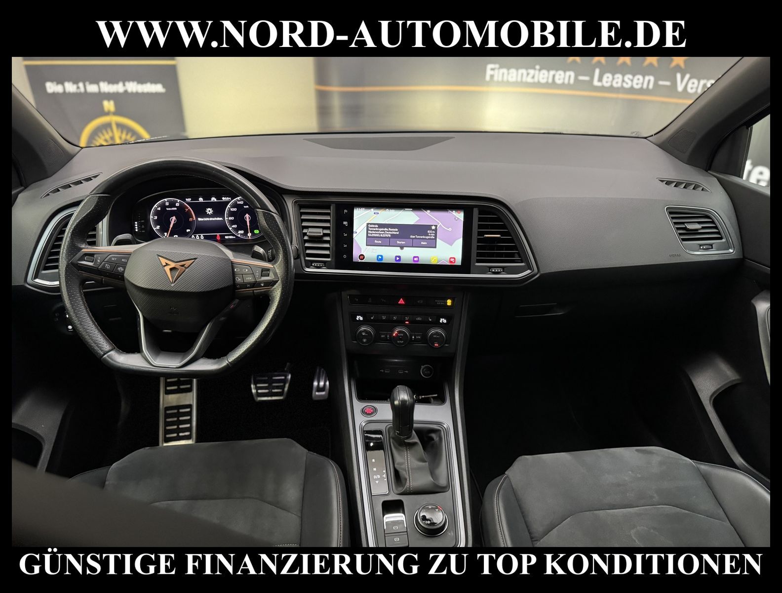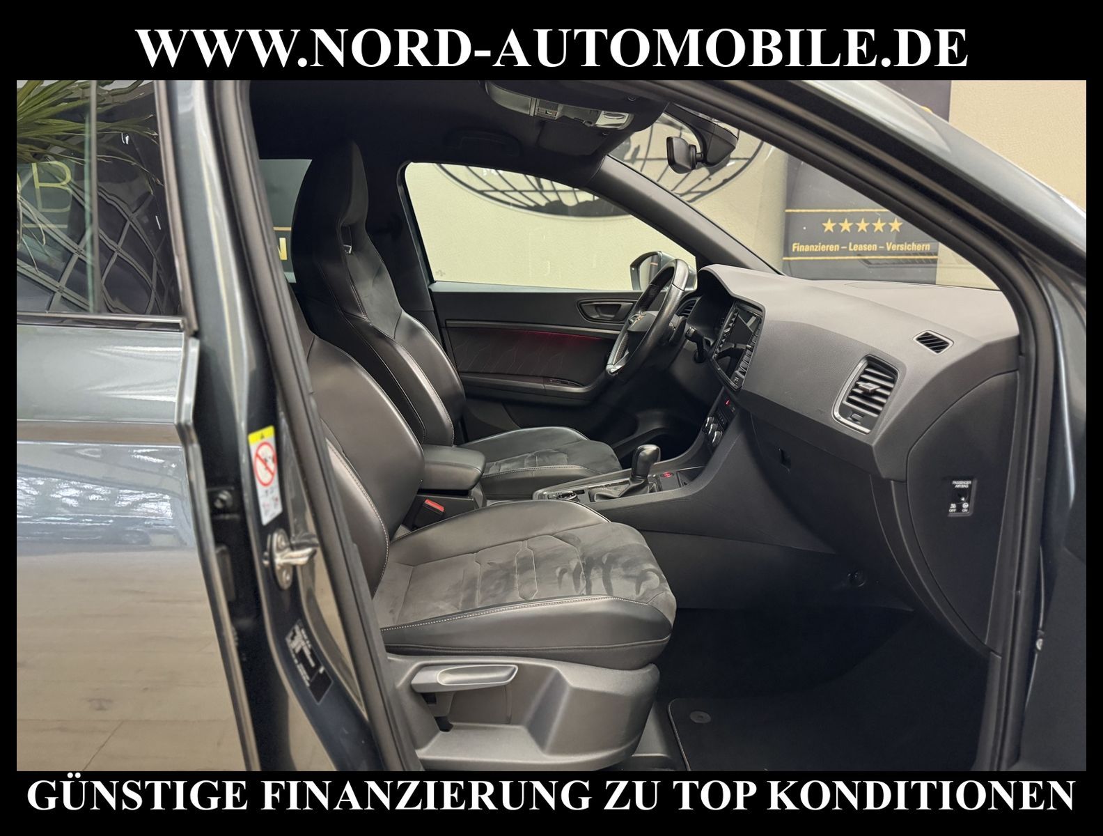 KomfortExtrasUnterhaltungBeschreibungwww.nord-automobile.de CUPRA ATECAAnsprechpartner: Jan Felhus, Jonathan Steinfeld, Tom Bijman, Simon Wolff, Matthis Ullrich* FAHRZEUG-NUMMER: M-1502-BD * LACKIERUNG: Rodiumgrau Metallic * Deutsche Auslieferung * Modelljahr:2022 * Abgaskonzept, EU6 AP * UPE brutto 49.649 ¤ * LED-Scheinwerfer * Zentralverriegelung ''Keyless-Entry'' ohne Safesicherung * Front Assist inkl. City ANB ohne ACC * Navigationsgerät-High * Mirror Link plus Wireless ''App''plus RSE (Vorbereitung) * Komfort telefonie, ohne Außenantennenanbindung * Müdigkeitserkennung * Geschwindigkeitsregelanlage plus Speed-Limiter * Multifunktionsanzeige/Bordcomputer''FPK'' Entry * Mit Front und Rückfahrkamerasystem und zwei Seitenkameras * Sitzheizung für Vordersitze getrennt regelbar * Sportsitze vorn * Sprachsteuerung * Digitaler Radioempfang * Anhängevorrichtung mechanisch schwenkbarund elektrisch auslösbar * Ledermultifunktionslenkrad, beheizbar mit Tiptronic * Dynamiklenkung * Höheneinstellung, manuell, für Vordersitze * Rücksitzbank ungeteilt, Lehne geteilt umlegbar mit Mittelarmlehne * Scheiben seitlich in Wärmeschutzverglasung, ab B-Säule und hinten dunkel eingefärbt * Radschrauben mit Diebstahlsicherung(nicht abschließbar) * Sicherheitsinnenspiegel automatisch abblendbar * Einstiegleisten in den Türausschnitten(beleuchtet) * Nebelscheinwerfer * Scheibenwischer-Intervallschaltung mit Licht/Regensensor * Außenspiegel elektrisch anklappbar-/einstellbar, beheizbar, mit Beifahrerspiegelabsenkung * Fensterheber mit Komfortschaltung und Abschaltsicherung, elektrisch * Airbag FS und BFS, Knieairbag auf FS und BFS, mit BFS-Deaktivierung * Servoschließung Heckklappe * 19''-Leichtmetallräder ''Exclusive'' 36/1, bearbeitet, kupferfarben * Reifendruckkontrolle * 7-Gang-Automatikgetriebe für Allrad * Start/Stopp-Anlage mit Rekuperation * Nord-Automobile - Ihr starker und kompetenter Partner seit über 30 Jahren * Wir bieten Ihnen eine günstige Finanzierung auch ohne Anzahlung über die * AutoEuropaBank - Zweigniederlassung der Volkswagen Bank GmbH an * 20 XXL-Fotografien dieses Fahrzeuges finden Sie unter www.nord-automobile.de * Gerne unterbreiten wir Ihnen ein Angebot zum Ankauf Ihres bisherigen Fahrzeuges * Beim Export-Geschäft führen wir die Ausfuhranmeldung und Zulassung für Sie durch * Wir sind Meister-Werkstatt und zertifizierte GTÜ-Prüfstelle * Lernen Sie uns kennen - wir freuen uns auf Ihren Besuch * Keine Haftung für Druck & Schreibfehler. ... Klima, Klimaautomatik, Automatik, Navigationssystem, Allrad, Sitzheiz. vorn, Regensensor, ESP, ASR, ABS, Parktronic System, Multifunktionslenkr., Radio, Bordcomputer, Tempomat, Spiegel autom. abblendbar, beheizte Frontscheibe, Spiegel beheizbar, elektr. Fensterheber vorn+hinten, elektr. WFS, Keyless-Go, ZV mit Fernb., Fahrerairb., Beifahrerairb., Seitenairbag vorn, Kopfairbags, Leichtmetallfelgen, elektr. Fahrwerksregelung, Nichtraucher, Anhaengerk., Nebelscheinw., Servolenkung, Sportsitze/Schalensitze, Spoiler, Traktionskontr., Sitzbank teilbar, Dachreling, abklappb. Spiegel, elektr. verstellb. Spiegel, Kopfst. vorn, 3.Bremsl., Gepaeckraumabd., Nebelschlussl., Scheibenbr., Mittelarmlehne, Lendenwirbelst., Sitzhoehenv., Sitzheizung Fahrer + Beif., Lichtsensor, Waermeschutzvergl., 12 V Zusatzanschluss, aus erster Hand, Schadstoffklasse: Euro 6, 4x4-Antrieb, Lederlenkrad, HSN 7593, TSN AOD, Verbrauch: 7,7/9,6/6,6 l/100 km (komb/inn/auß), CO2: 203 g/km, Partikelfilter, Feinstaubplakette: 4 - Grün |