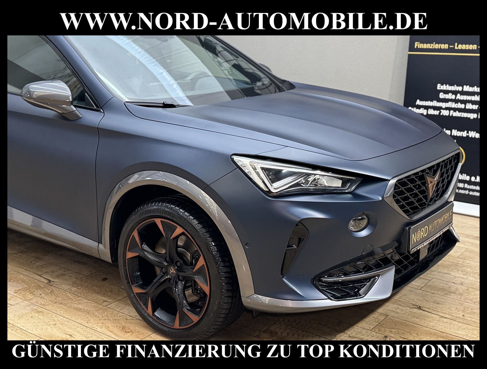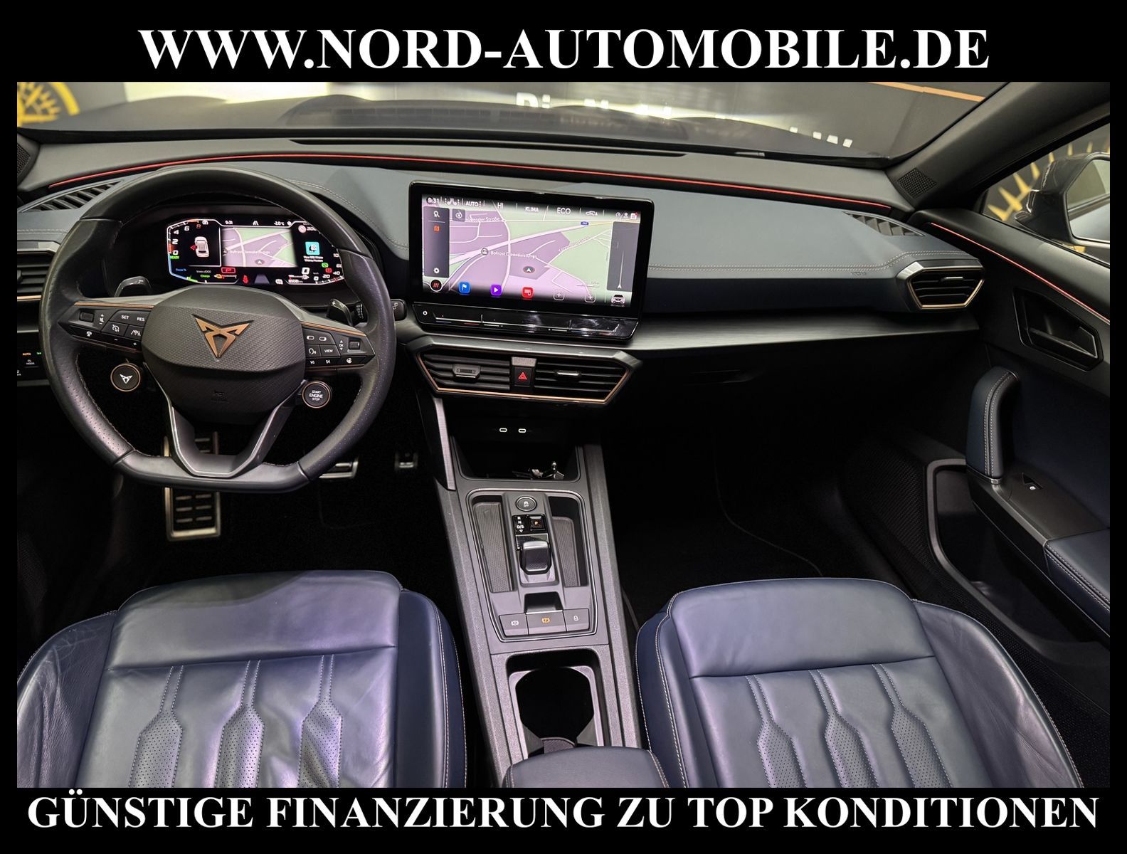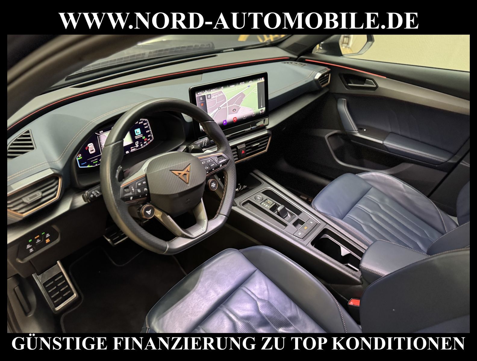 KomfortExtrasUnterhaltungBeschreibungwww.nord-automobile.de Cupra Formentor VZ 1.4 electric/TSI e-HYBRID 180kW 6-Gang Automatikgetriebe 4 TürenAnsprechpartner: Jan Feldhus, Jonathan Steinfeld, Tom Bijman, Simon Wolff, Matthis Ullrich* FAHRZEUG-NUMMER: M-6330-BD * LACKIERUNG: Petrolblau Matt * Modelljahr:2023 * UPE nbrutto 51.029 ¤ * Mit Batteriezertifikat! * Deutsche Auslieferung * Abgaskonzept, EU6 AP * Navigationssystem * Full Link (MirrorLink, Apple CarPlay und Android Auto) * Mit Verkehrszeichenerkennung * Automatische Distanzregelung (mit follow to stop) und Speed-Limiter * Sitzbezüge in Leder * Komforttelefonie mit LTE und Wireless charging * Mit Rückfahrkamerasystem * Sprachsteuerung * Anhängevorrichtung mechanisch schwenkbarund elektrisch auslösbar * Müdigkeitserkennung * LED-Scheinwerfer * Fahrassistenz-System: Parklenkassistent mit Einparkhilfe vorn und hinten inkl. Rückfahrkamera * Sitzheizung für Vordersitze getrennt regelbar * Spurhalteassistent plus Emergency Assistund Stauassistent * Climatronic ( 3-Zonen ) mit Klimabedienteil hinten * Kombiinstrument digital (virtual cockpit) * Auspark- und Spurwechselassistent und Ausstiegswarner * Schlüsselloses Schließ- und Startsystem ''Keyless Advanced'' ohne Safesicherung * Sitzeinstellung, links elektrisch mit Memory, rechts mechan. höheneinstellbar * Lenkrad heizbar (CUPRA Supersport, Leder) mit Multifunktion und Schaltfunktion * Lendenwirbelstütze, elektr. einstellbar für linke Vordersitzlehne * Tagesfahrlicht mit Assistenzfahrlicht u.Coming- u. Leaving-home Funktion automatisch * Rücksitzbank ungeteilt, Lehne geteilt umlegbar mit Mittelarmlehne * Einstiegleisten in den Türausschnitten (beleuchtet) * Nebelscheinwerfer * Fernlichtassistent * Scheiben seitlich in Wärmeschutzver- glasung, ab B-Säule und hinten dunkel eingefärbt * Mittelarmlehne vorn * Heckscheiben-Wisch-Waschanlage mit Intervallschaltung * Scheibenwischer-Intervallschaltung mit Licht/Regensensor * Angehobener Ladeboden hinten * Servolenkung, geschwindigkeitsabhängig (Servotronic) mit Lenkhubeinschränkung * Sicherheitsinnenspiegel automatisch abblendbar * Fensterheber mit Komfortschaltung und Abschaltsicherung, elektrisch * Radschrauben mit Diebstahlsicherung (nicht abschließbar) * Reifendruckkontrolle * Pedale Aluminium-Design * Start/Stopp-Anlage mit Rekuperation * 6-Gang-Automatikgetriebe * Heckklappe/-Deckel elektr. betätigt (öffnen + schliessen, sensorgesteuert) * LM-Felgen 8x19 (Exclusive I, schwarz / Copper, glanzgedreht, mit Sportreifen) * Außenspiegel mit Memoryfunktion elektrisch anklapp-/einstellbar, separat beheizbar * Nord-Automobile - Ihr starker und kompetenter Partner seit über 30 Jahren * Wir bieten Ihnen eine günstige Finanzierung auch ohne Anzahlung über die * AutoEuropaBank - Zweigniederlassung der Volkswagen Bank GmbH an * 20 XXL-Fotografien dieses Fahrzeuges finden Sie unter www.nord-automobile.de * Gerne unterbreiten wir Ihnen ein Angebot zum Ankauf Ihres bisherigen Fahrzeuges * Beim Export-Geschäft führen wir die Ausfuhranmeldung und Zulassung für Sie durch * Wir sind Meister-Werkstatt und zertifizierte GTÜ-Prüfstelle * Lernen Sie uns kennen - wir freuen uns auf Ihren Besuch * Keine Haftung für Druck & Schreibfehler. ... Klima, Klimaautomatik, Automatik, Leder, Navigationssystem, Sitzheiz. vorn, Regensensor, ESP, ABS, Distronic, Parktronic System, Multifunktionslenkr., Bordcomputer, Spiegel beheizbar, elektr. Fensterheber vorn, elektr. WFS, ZV mit Fernb., Fahrerairb., Beifahrerairb., Leichtmetallfelgen, Nichtraucher, Anhaengerk., Nebelscheinw., Servolenkung, abklappb. Spiegel, elektr. verstellb. Spiegel, Mittelarmlehne, Sitzheizung, Lichtsensor, aus erster Hand, Schadstoffklasse: Euro 6, Lederlenkrad, HSN 7593, TSN ARH, Verbrauch: 1,9/0,0/0,0 l/100 km (komb/inn/auß), CO2: 33 g/km, HU + AU wird vor Verkauf erneuert, Feinstaubplakette: 4 - Grün |