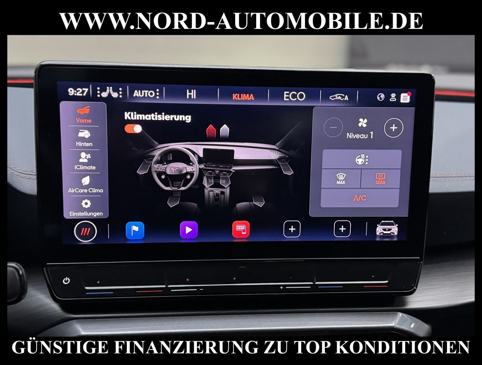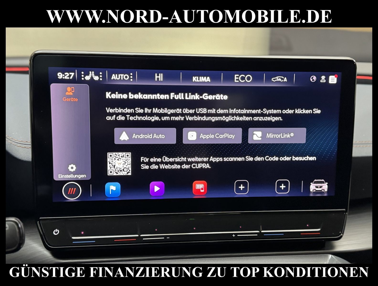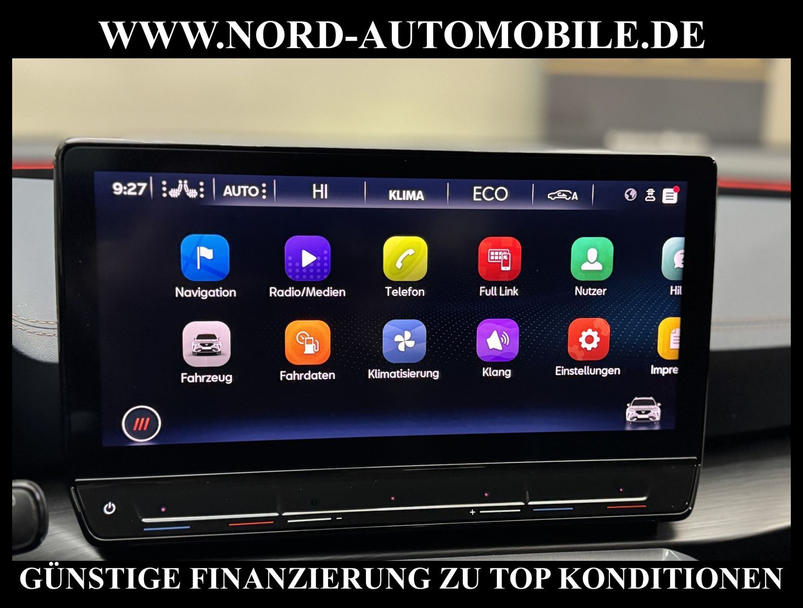 KomfortExtrasUnterhaltungBeschreibungwww.nord-automobile.de Cupra Formentor VZ 1.4 electric/TSI e-HYBRID 180kW 6-Gang Automatikgetriebe 4 TürenAnsprechpartner: Jan Feldhus, Jonathan Steinfeld, Tom Bijman, Simon Wolff, Matthis Ullrich* FAHRZEUG-NUMMER: M-6330-BD * LACKIERUNG: Petrolblau Matt * Modelljahr:2023 * UPE nbrutto 51.029 ¤ * Mit Batteriezertifikat! * Deutsche Auslieferung * Abgaskonzept, EU6 AP * Navigationssystem * Full Link (MirrorLink, Apple CarPlay und Android Auto) * Mit Verkehrszeichenerkennung * Automatische Distanzregelung (mit follow to stop) und Speed-Limiter * Sitzbezüge in Leder * Komforttelefonie mit LTE und Wireless charging * Mit Rückfahrkamerasystem * Sprachsteuerung * Anhängevorrichtung mechanisch schwenkbarund elektrisch auslösbar * Müdigkeitserkennung * LED-Scheinwerfer * Fahrassistenz-System: Parklenkassistent mit Einparkhilfe vorn und hinten inkl. Rückfahrkamera * Sitzheizung für Vordersitze getrennt regelbar * Spurhalteassistent plus Emergency Assistund Stauassistent * Climatronic ( 3-Zonen ) mit Klimabedienteil hinten * Kombiinstrument digital (virtual cockpit) * Auspark- und Spurwechselassistent und Ausstiegswarner * Schlüsselloses Schließ- und Startsystem ''Keyless Advanced'' ohne Safesicherung * Sitzeinstellung, links elektrisch mit Memory, rechts mechan. höheneinstellbar * Lenkrad heizbar (CUPRA Supersport, Leder) mit Multifunktion und Schaltfunktion * Lendenwirbelstütze, elektr. einstellbar für linke Vordersitzlehne * Tagesfahrlicht mit Assistenzfahrlicht u.Coming- u. Leaving-home Funktion automatisch * Rücksitzbank ungeteilt, Lehne geteilt umlegbar mit Mittelarmlehne * Einstiegleisten in den Türausschnitten (beleuchtet) * Nebelscheinwerfer * Fernlichtassistent * Scheiben seitlich in Wärmeschutzver- glasung, ab B-Säule und hinten dunkel eingefärbt * Mittelarmlehne vorn * Heckscheiben-Wisch-Waschanlage mit Intervallschaltung * Scheibenwischer-Intervallschaltung mit Licht/Regensensor * Angehobener Ladeboden hinten * Servolenkung, geschwindigkeitsabhängig (Servotronic) mit Lenkhubeinschränkung * Sicherheitsinnenspiegel automatisch abblendbar * Fensterheber mit Komfortschaltung und Abschaltsicherung, elektrisch * Radschrauben mit Diebstahlsicherung (nicht abschließbar) * Reifendruckkontrolle * Pedale Aluminium-Design * Start/Stopp-Anlage mit Rekuperation * 6-Gang-Automatikgetriebe * Heckklappe/-Deckel elektr. betätigt (öffnen + schliessen, sensorgesteuert) * LM-Felgen 8x19 (Exclusive I, schwarz / Copper, glanzgedreht, mit Sportreifen) * Außenspiegel mit Memoryfunktion elektrisch anklapp-/einstellbar, separat beheizbar * Nord-Automobile - Ihr starker und kompetenter Partner seit über 30 Jahren * Wir bieten Ihnen eine günstige Finanzierung auch ohne Anzahlung über die * AutoEuropaBank - Zweigniederlassung der Volkswagen Bank GmbH an * 20 XXL-Fotografien dieses Fahrzeuges finden Sie unter www.nord-automobile.de * Gerne unterbreiten wir Ihnen ein Angebot zum Ankauf Ihres bisherigen Fahrzeuges * Beim Export-Geschäft führen wir die Ausfuhranmeldung und Zulassung für Sie durch * Wir sind Meister-Werkstatt und zertifizierte GTÜ-Prüfstelle * Lernen Sie uns kennen - wir freuen uns auf Ihren Besuch * Keine Haftung für Druck & Schreibfehler. ... Klima, Klimaautomatik, Automatik, Leder, Navigationssystem, Sitzheiz. vorn, Regensensor, ESP, ABS, Distronic, Parktronic System, Multifunktionslenkr., Bordcomputer, Spiegel beheizbar, elektr. Fensterheber vorn, elektr. WFS, ZV mit Fernb., Fahrerairb., Beifahrerairb., Leichtmetallfelgen, Nichtraucher, Anhaengerk., Nebelscheinw., Servolenkung, abklappb. Spiegel, elektr. verstellb. Spiegel, Mittelarmlehne, Sitzheizung, Lichtsensor, aus erster Hand, Schadstoffklasse: Euro 6, Lederlenkrad, HSN 7593, TSN ARH, Verbrauch: 1,9/0,0/0,0 l/100 km (komb/inn/auß), CO2: 33 g/km, HU + AU wird vor Verkauf erneuert, Feinstaubplakette: 4 - Grün |