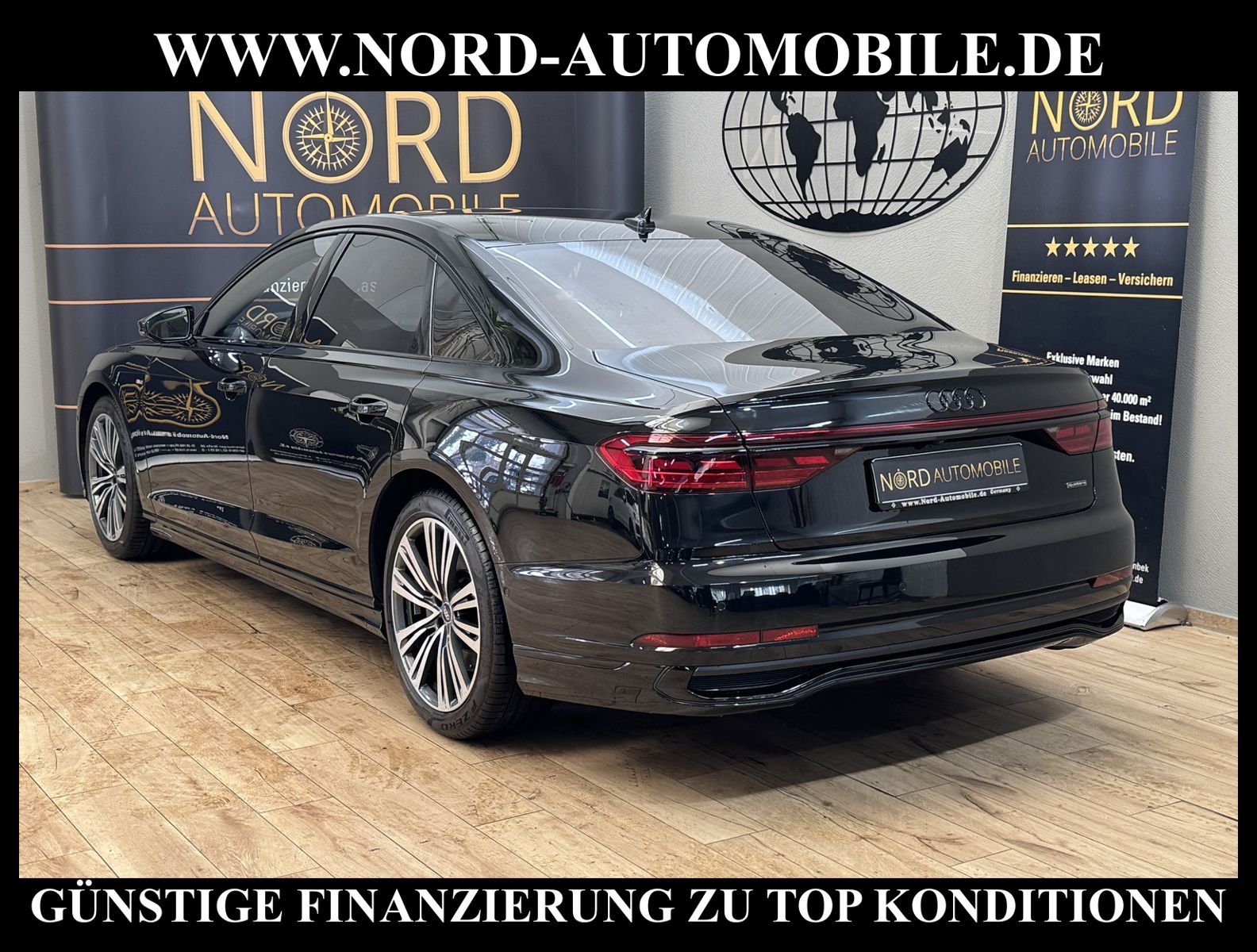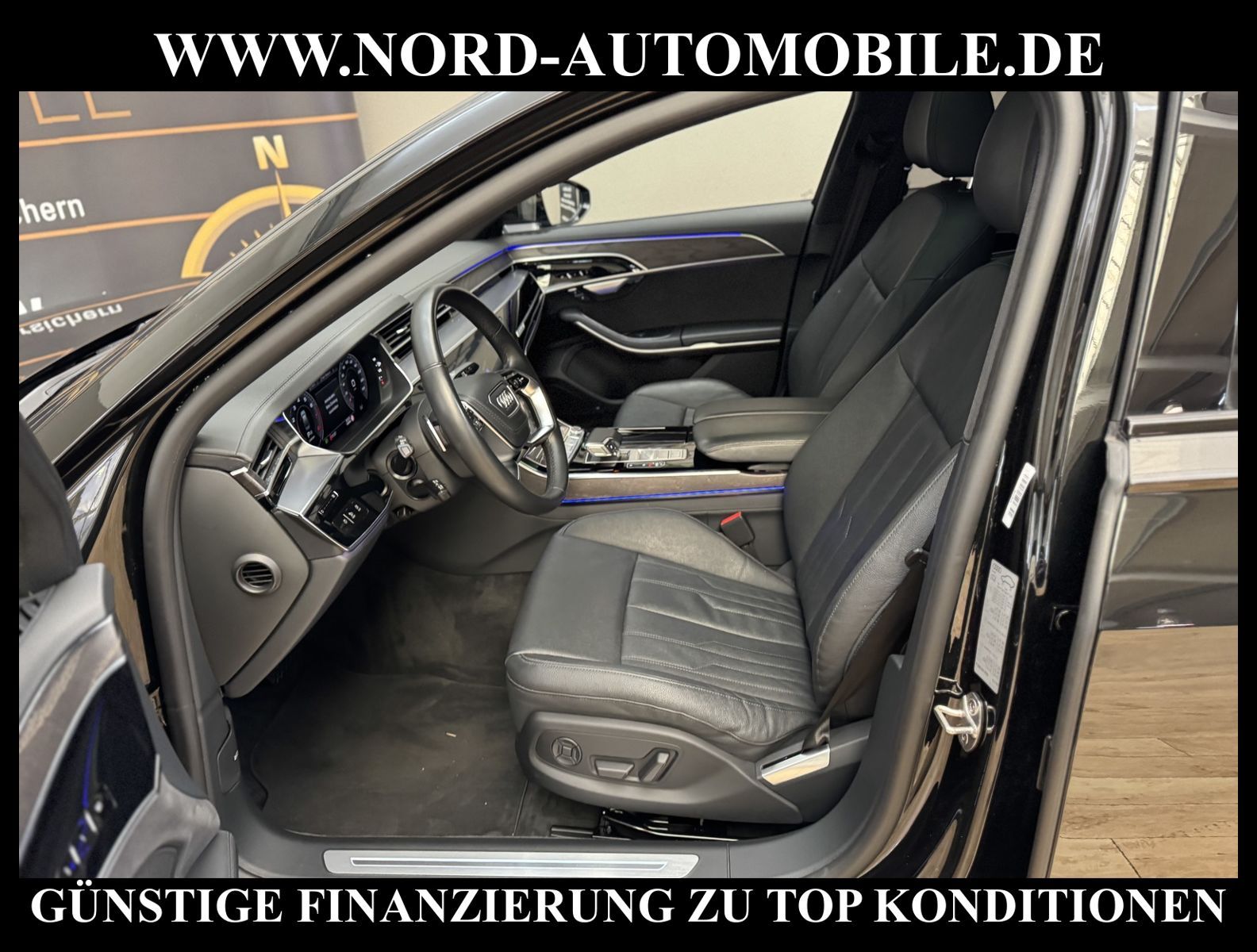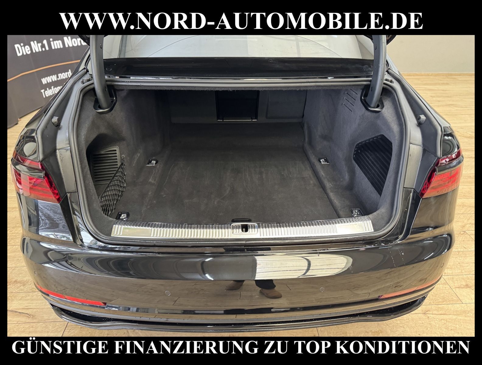 KomfortExtrasUnterhaltungBeschreibungwww.nord-automobile.de Audi A8 Limousine quattro 3.0 55 electric/TFSI 250kW 8-Gang Tiptronic 4 TürenAnsprechpartner: Jan Feldhus, Jonathan Steinfeld, Tom Bijman, Simon Wolff, Matthis Ullrich* FAHRZEUG-NUMMER: M_5596-BD * LACKIERUNG: Mythosschwarz Metallic * Modelljahr:2022 * UPE brutto 125.489 ¤ * Audi Anschlussgarantie bis 14.04.2027 und 100.000KM(unabhängig von der gesetzlichen Sachmangelhaftung) * Deutsche Auslieferung * S-Line Exterieurpaket * MMI Navigation Plus mit MMI Touch * Optikpaket schwarz plus * Kombiinstrument digital (virtual cockpit plus) * Panorama-Ausstelldach elektrisch * Parkassistent plus * Zentralverriegelung ''Keyless-Entry'' * HD Matrix LED-Scheinwerfer mit dynamischer Lichtinszenierung und dynamischem Blinklicht * Bang & Olufsen Premium Sound System mit 3D Klang * Head-up-Display * Einparkhilfe vorn und hinten, akustisch und optisch mit selektiver Anzeige (APS Plus) * Automatische Distanzregelung (mit follow to stop) und Speed-Limiter * City-Notbremsfunktion (Audi pre sense City) * Bluetooth-Freisprecheinrichtung mit Spracherkennung (Audi Phone Box) * Leder Valetta * Spurwechselassistent * Radioempfang digital (DAB) * Mit Front und Rückfahrkamerasystem und zwei Seitenkameras * Fahrwerk (adaptive air suspension) * Garagentoröffner * Standheizung * Sitzheizung vorn und hinten * Doppelspeichen-Lederlenkrad mit Multifunktion, Schaltwippen und Lenkradheizung * Adaptive Scheibenwischer mit integrierten Waschdüsen * Dachhimmel in Stoff schwarz * Kontur-/Ambiente Lichtpaket, mehrfarbig * Verglasung hinten abgedunkelt (Privacyverglasung) und Türscheiben vorn Akustikglas * Vordersitze elektrisch einstellbar mit Memory-Funktion * Kühlbox im Handschuhfach * Mittelarmlehne vorn * Frontscheibe in Klimakomfort- und Akustikverglasung drahtlos beheizbar * Scheinwerfer-Reinigungsanlage (SRA) * Airbag Beifahrerseite abschaltbar * Start/Stop-Anlage * Reifendruck-Kontrollanzeige * Gepäckraumklappe elektr. betätigt (öffnen + schliessen) * Außenspiegel elektr. verstell-, heiz- und anklappbar, mit Abblendautomatik und Memory * Diebstahl-Warnanlage + Innenraumabsicherung / Abschleppschutz * Durchladeeinrichtung * Räder, 10-Parallelspeichen, graphitgrau, glanzgedreht, 9, 0Jx20, Reifen 265/40 R20 * Nord-Automobile - Ihr starker und kompetenter Partner seit über 30 Jahren * Wir bieten Ihnen eine günstige Finanzierung auch ohne Anzahlung über die * AutoEuropaBank - Zweigniederlassung der Volkswagen Bank GmbH an * 20 XXL-Fotografien dieses Fahrzeuges finden Sie unter www.nord-automobile.de * Gerne unterbreiten wir Ihnen ein Angebot zum Ankauf Ihres bisherigen Fahrzeuges * Beim Export-Geschäft führen wir die Ausfuhranmeldung und Zulassung für Sie durch * Wir sind Meister-Werkstatt und zertifizierte GTÜ-Prüfstelle * Lernen Sie uns kennen - wir freuen uns auf Ihren Besuch * Keine Haftung für Druck & Schreibfehler. ... Klimaautomatik, Automatik, Leder, Navigationssystem, Allrad, Sitzheiz. vorn, Sitzheiz. hinten, Vorders. elekt. verstellb., ESP, ABS, Distronic, Multifunktionslenkr., Soundsystem, Tel. m. Freisprech., Bordcomputer, beheizte Frontscheibe, Spiegel beheizbar, Scheinwerferreinigung, elektr. Fensterheber vorn, elektr. WFS, ZV mit Fernb., Fahrerairb., Beifahrerairb., Leichtmetallfelgen, Nichtraucher, abklappb. Spiegel, Luftfederung, Mittelarmlehne, elekt. verstellb. Fahrersitz, Standheizung, Sitzheizung, Schadstoffklasse: Euro 6, 4x4-Antrieb, Lederlenkrad, HSN 0588, TSN BMK, Verbrauch: 8,1/11,2/6,4 l/100 km (komb/inn/auß), CO2: 213 g/km, HU + AU wird vor Verkauf erneuert, Feinstaubplakette: 4 - Grün |