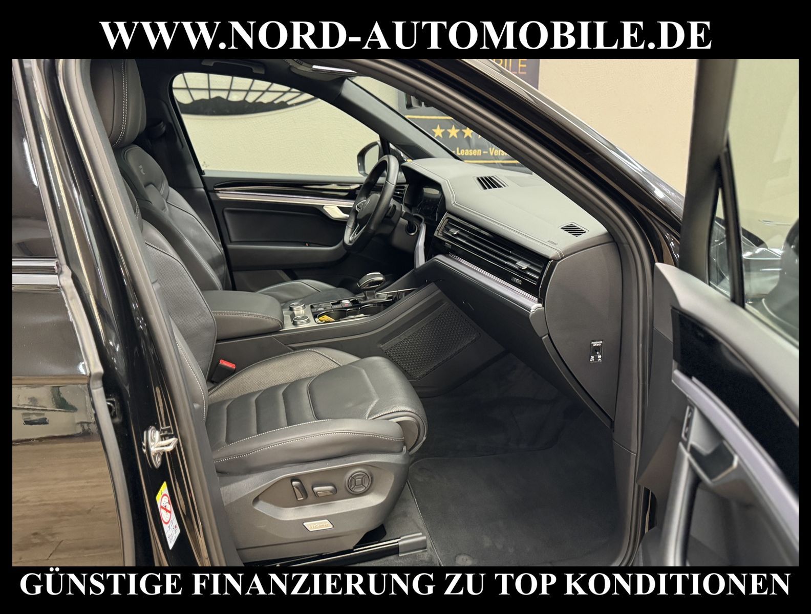 KomfortExtrasUnterhaltungBeschreibungwww.nord-automobile.de Volkswagen Touareg R-Line 4Motion 3.0 TDI SCR 170kW 8-Gang Tiptronic 4 TürenAnsprechpartner: Jan Feldhus, Jonathan Steinfeld, Tom Bijman, Simon Wolff, Matthis Ullrich* FAHRZEUG-NUMMER: M-9760-BD * LACKIERUNG: Grenadillschwarz Metallic * Modelljahr: 2023 * UPE brutto 95.289 ¤ * Deutsche Auslieferung * Abgasnorm Euro 6d * R-Line Black Style * 4 Corner Luftfederung mit elektrisch geregelter Dämpfung * Rückfahrkamera mit 360° Umgebungsansicht (Area View) * Head-up-Display * IQ.LIGHT - LED-Matrix-Scheinwerfer * Schlüsselloses Schließ- und Startsystem ''Keyless Access'' mit Safe-Sicherung * Parklenkassistent (Park Assist) und PDC vorn und hinten * Sitzbelüftung vorn * Spurhalteassistent Lane-Assist * Panorama-Ausstell-/Schiebedach * Müdigkeitserkennungserkennung * Mirror Link plus Wireless RSE ''App'' * Active Info Display, mehrfarbig, verschiedene Info-Profile wählbar * Autom. Distanzregelung (ACC inkl. Stop&Go-Funktion) - Geschwindigkeitsbegrenzungsanlage * Sitzheizung für Vorder-/u.Hintersitze, getrennt regelbar * Automatische Distanzregelung ACC ''stop & go'' bis 210 km/h inkl. ''Front Assist'' mit Fußgängererkennung * Navigationsgerät-Premium * Verkehrszeichenerkennung * Sitzmittelbahnen und -wangeninnenseiten in Leder ''Vienna'', ''R-Line''-Logo in den Vordersitzen * Sonnenschutzrollo an den Türscheiben hinten * ''Air Care Climatronic'' mit 4-Zonen-Klimatisierung und Bedienungselementen hinten * Komfort-Paket Keyless Access * Umfeldbeobachtungssystem (Front assist) mit City-Notbremsfunktion * 2 USB-C-Schnittstellen vorn, 1 USB-C-Ladebuchse an der Mittelkonsole hinten * Telefonschnittstelle ''Business'' mit induktiver Ladefunktion * Lenkrad heizbar (Leder, R-Line) mit Multifunktion und Schaltfunktion * Vordersitze elektrisch einstellbar, mit längs verschiebbarer Oberschenkelauflagesowie Fahrersitz mit Memory-Funktion * Memory-Paket * Komfortsitze vorn * Lendenwirbelstützen vorn pneumatisch einstellbar * Ambiente-Beleuchtung weiß * Rücksitzbank und -lehne asymmetrisch geteilt umklappbar, längs verschiebbar, Lehenneigung einstellbar * Seitenscheiben hinten und Heckscheibe abgedunkelt, zu 65 % lichtabsorbierend * Dynamische Fernlichtregulierung ''Dynamic Light Assist'' für LED-Matrix-Scheinwerfer * Scheibenwaschdüsen vorn automatisch beheizt * Scheinwerfer-Reinigungsanlage * Kindersitzverankerung für Kindersitzsystem I-Size, 2 x top tether * Airbag für Fahrer und Beifahrer, mit Beifahrerairbag-Deaktivierung * Radioempfang digital (DAB+) * Lenksäule einstellbar * Kopfairbagsystem für Front- und Fondpassagiere inkl. Seitenairbags vorn * Komfortöffnung Heckklappe (Virtuelles Pedal) plus Easy Close * Außenspiegel elektrisch einstell-, anklapp-, beheizbar und abblendend, Beifahrerspiegelabsenkung und Memory * Diebstahlwarnanlage mit Innenraumüberwachung, Back-up-Horn und Abschleppschutz * 8-Gang-Automatikgetriebe für Allrad * Start-Stopp-System mit Bremsenergie-Rückgewinnung * Reifenkontrollanzeige * Dachhimmel in Titanschwarz * 4 Leichtmetallräder ''Suzuka'' 9, 5 J x 21 in Schwarz, Volkswagen R * Nord-Automobile - Ihr starker und kompetenter Partner seit über 30 Jahren * Wir bieten Ihnen eine günstige Finanzierung auch ohne Anzahlung über die * AutoEuropaBank - Zweigniederlassung der Volkswagen Bank GmbH an * 20 XXL-Fotografien dieses Fahrzeuges finden Sie unter www.nord-automobile.de * Gerne unterbreiten wir Ihnen ein Angebot zum Ankauf Ihres bisherigen Fahrzeuges * Beim Export-Geschäft führen wir die Ausfuhranmeldung und Zulassung für Sie durch * Wir sind Meister-Werkstatt und zertifizierte GTÜ-Prüfstelle * Lernen Sie uns kennen - wir freuen uns auf Ihren Besuch * Keine Haftung für Druck & Schreibfehler. ... Klima, Klimaautomatik, Automatik, Leder, Navigationssystem, Sitzheiz. vorn, Sitzheiz. hinten, Xenon, Vorders. elekt. verstellb., ESP, ABS, Distronic, Parktronic System, Multifunktionslenkr., Radio, Bordcomputer, Spiegel beheizbar, Scheinwerferreinigung, elektr. Fensterheber vorn, Keyless-Go, ZV mit Fernb., Fahrerairb., Beifahrerairb., Seitenairbag vorn, Kopfairbags, Leichtmetallfelgen, Nichtraucher, Sitzbank teilbar, Lenksaeule einstellbar, abklappb. Spiegel, elektr. verstellb. Spiegel, Luftfederung, Mittelarmlehne, elekt. verstellb. Fahrersitz, Sitzheizung, Waermeschutzvergl., aus erster Hand, Schadstoffklasse: Euro 6, Diesel, 4x4-Antrieb, Lederlenkrad, HSN 0603, TSN COB, CO2: 217 g/km, HU + AU wird vor Verkauf erneuert, Feinstaubplakette: 4 - Grün |