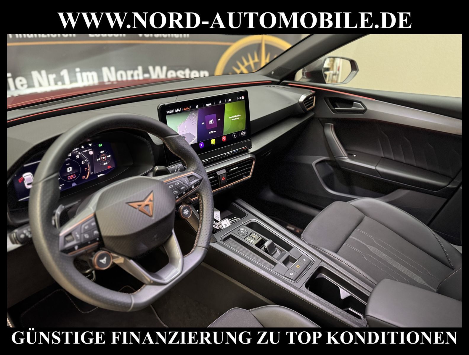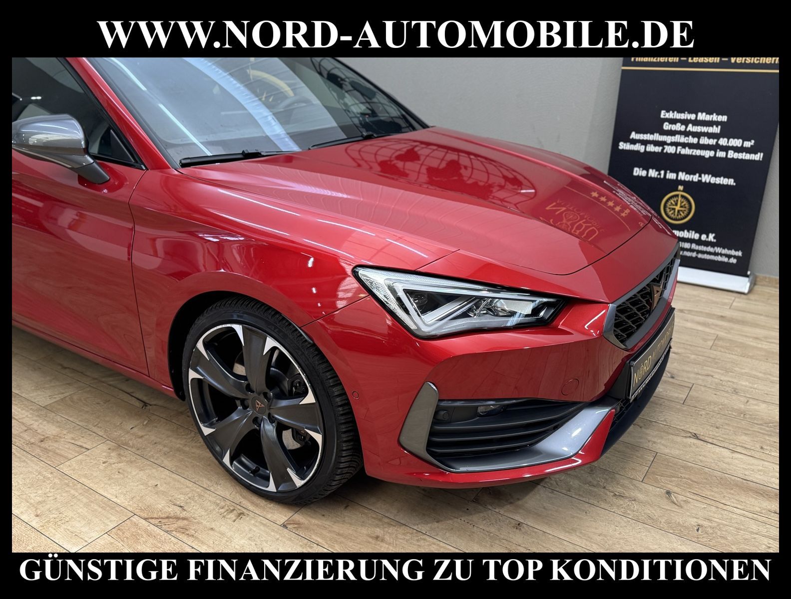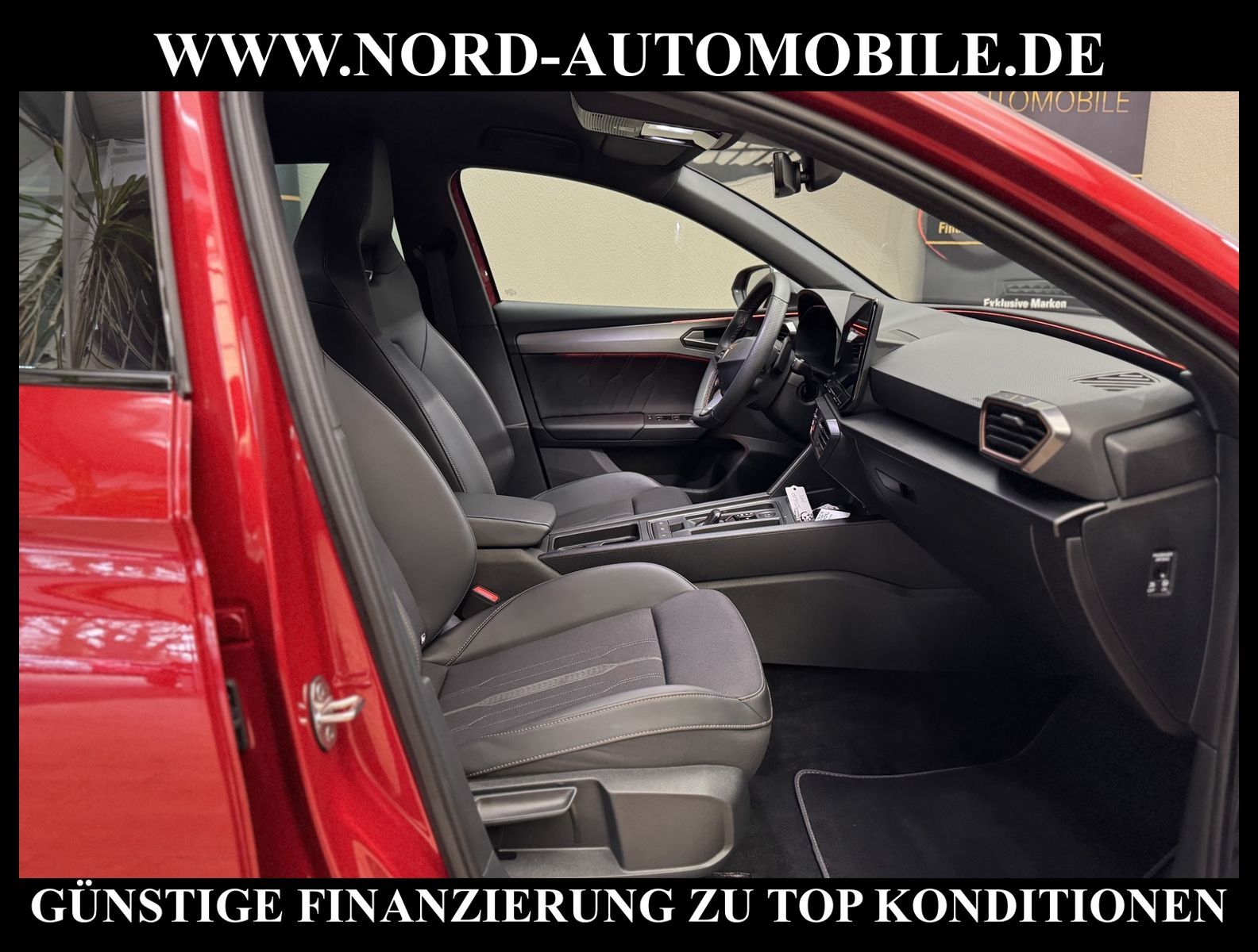 CUPRA LEON VZ 2.0 TSI DSG Ansprechpartner: Jan Feldhus, Jonathan Steinfeld, Tom Bijman, Simon Wolff, Matthis Ullrich* FAHRZEUG-NUMMER: MW-3465-BD * LACKIERUNG: Sonderlackierung desire red metallic * Abgaskonzept, Euro6 AP ehem.UPE: 51.155, -* Kombiinstrument digital (virtual cockpit) * Dynamic-Paket * Fahrassistenz-Paket XL * Fahrassistenz-Paket: Vision Plus * Licht & Sicht Paket * Audio-Navigationssystem mit Touchscreen Farbbildschirm * BeatsAudio: Premium-Lautsprecher, Subwoofer, 340 W-Verstärker und Surround-Technologie * Sprachsteuerungs-System * Verkehrszeichenerkennung * Radioempfang digital (DAB+) * Full Link (MirrorLink, Apple CarPlay und Android Auto) * Mobile Online Dienste Cupra Connect * Komfort telefonie mit LTE und wireless charging * Induktionsladeschale für Smartphone * Klimaanlage Climatronic 3-Zonen * Sitzheizung für Vordersitze getrennt regelbar * Voll-LED-Hauptscheinwerfer mit LED-Tagfahrlicht * Fernlichtassistent * Heckleuchten Voll-LED mit dynamischem Blinklicht (Infinite Light) * automatische Distanzregelung (ACC) (mit follow to stop) und Speed-Limiter * LM-Felgen 8x19 (Exclusive I, schwarz / silber, glanzgedreht) * adaptive Fahrwerksregelung (DCC) * Progressivlenkung * Fahrprofilauswahl (CUPRA Drive Profile) * heizbares Cupra Supersport-Multifunktionslenkrad mit Tiptronic * Parklenkassistent * Einparkhilfe vorn und hinten * Rückfahrkamera * Schlüsselloses Schließ- und Startsystem ''Keyless Advanced'' * Spurhalteassistent * Totwinkel-Assistent mit Auspark-Assistent * Emergency Assist und Stauassistent * Spurwechselassistent und Ausstiegswarnung * Ambiente-Beleuchtung Smart Ambient Light * Sitze vorn höhenverstellbar * Lendenwirbelstützen vorn * Müdigkeitserkennung * Mittelarmlehne * Dachhimmel schwarz * Seitenscheiben hinten und Heckscheibe abgedunkelt * Rücksitzlehne geteilt/klappbar (1/3-2/3) * Zentralverriegelung mit Fernbedienung und Startanlage Keyless Go * Bordcomputer * Nebelscheinwerfer LED mit Abbiegelicht * Licht/Regensensor * Scheinwerfer-Reinigungsanlage * Scheibenwaschdüsen heizbar * Sicherheitsinnenspiegel automatisch abblendbar * Außenspiegel elektrisch anklappbar, einstell-und beheizbar * Airbag Fahrer-/Beifahrerseite * Airbag Beifahrerseite abschaltbar * Kopf-Airbag-System * Seitenairbag * Seitenairbag vorn mitte (Central Airbag) * Isofix-Aufnahmen für Kindersitz * Fensterheber elektrisch vorn und hinten * Berganfahr-Assistent * Differentialsperre XDS * Umfeldbeobachtungssystem (Front assist) mit City-Notbremsfunktion * Reifendruckkontrolle * Start/Stopp-Anlage mit Rekuperation * 7-Gang - Doppelkupplungsgetriebe DSG Nord-Automobile - Ihr starker und kompetenter Partner seit über 20 Jahren* Wir bieten Ihnen eine günstige Finanzierung auch ohne Anzahlung über die * AutoEuropaBank - Zweigniederlassung der Volkswagen Bank GmbH an * 20 XXL-Fotografien dieses Fahrzeuges finden Sie unter www.nord-automobile.de * Gerne unterbreiten wir Ihnen ein Angebot zum Ankauf Ihres bisherigen Fahrzeuges * Beim Export-Geschäft führen wir die Ausfuhranmeldung und Zulassung für Sie durch * Wir sind Meister-Werkstatt und zertifizierte DEKRA-Prüfstelle * Lernen Sie uns kennen - wir freuen uns auf Ihren Besuch * Keine Haftung für Druck & Schreibfehler. ... Klima vorn+hinten, Klimaautomatik, Automatik, Leder, Navigationssystem, Sitzheiz. vorn, Regensensor, ESP, ASR, ABS, Distronic, Parktronic System, Multifunktionslenkr., Radio, Soundsystem, Bordcomputer, Tempomat, Spiegel autom. abblendbar, Spiegel beheizbar, elektr. Fensterheber vorn+hinten, elektr. WFS, Keyless-Go, ZV mit Fernb., Fahrerairb., Beifahrerairb., Seitenairbag vorn, Kopfairbags, Leichtmetallfelgen, elektr. Fahrwerksregelung, Nichtraucher, Nebelscheinw., Servolenkung, Sportfahrwerk, Sportsitze/Schalensitze, Spoiler, Traktionskontr., Sitzbank teilbar, abklappb. Spiegel, elektr. verstellb. Spiegel, Kopfst. vorn, Gepaeckraumabd., Nebelschlussl., Scheibenbr., Mittelarmlehne, Lendenwirbelst., Sitzhoehenv., Sitzheizung Fahrer + Beif., Lichtsensor, Waermeschutzvergl., Frontantrieb, Lederlenkrad, HSN 7593, TSN ARR, Verbrauch: 6,7/8,4/5,7 l/100 km (komb/inn/auß), CO2: 152 g/km, Partikelfilter, HU + AU wird vor Verkauf erneuert |