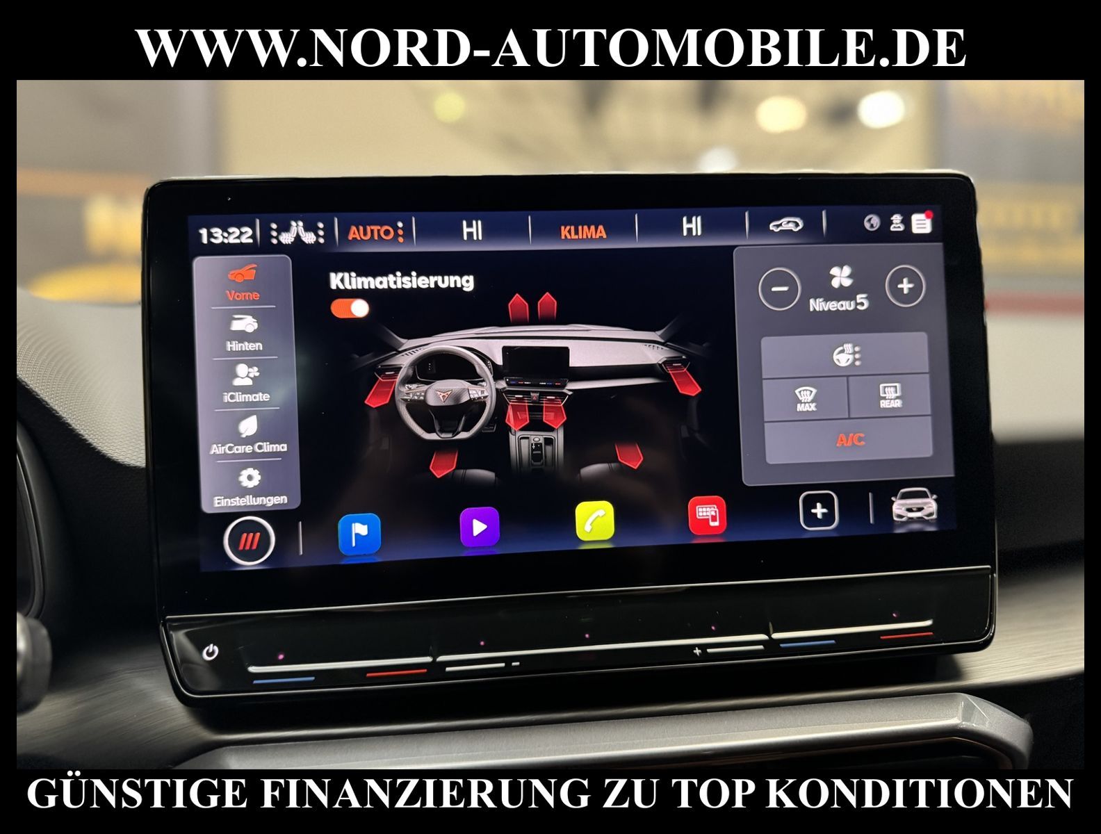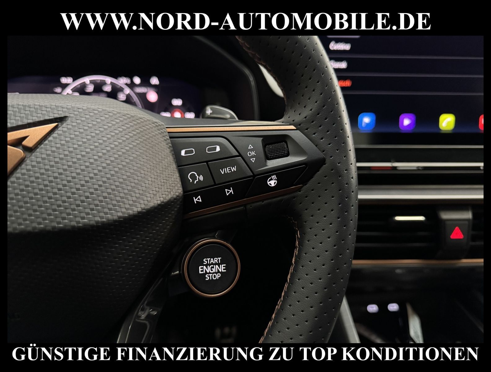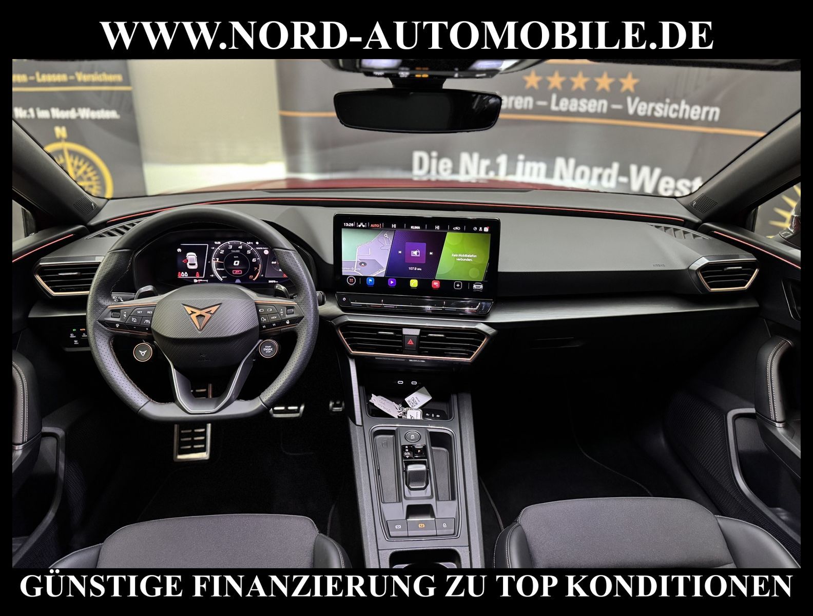 CUPRA LEON VZ 2.0 TSI DSG Ansprechpartner: Jan Feldhus, Jonathan Steinfeld, Tom Bijman, Simon Wolff, Matthis Ullrich* FAHRZEUG-NUMMER: MW-3465-BD * LACKIERUNG: Sonderlackierung desire red metallic * Abgaskonzept, Euro6 AP ehem.UPE: 51.155, -* Kombiinstrument digital (virtual cockpit) * Dynamic-Paket * Fahrassistenz-Paket XL * Fahrassistenz-Paket: Vision Plus * Licht & Sicht Paket * Audio-Navigationssystem mit Touchscreen Farbbildschirm * BeatsAudio: Premium-Lautsprecher, Subwoofer, 340 W-Verstärker und Surround-Technologie * Sprachsteuerungs-System * Verkehrszeichenerkennung * Radioempfang digital (DAB+) * Full Link (MirrorLink, Apple CarPlay und Android Auto) * Mobile Online Dienste Cupra Connect * Komfort telefonie mit LTE und wireless charging * Induktionsladeschale für Smartphone * Klimaanlage Climatronic 3-Zonen * Sitzheizung für Vordersitze getrennt regelbar * Voll-LED-Hauptscheinwerfer mit LED-Tagfahrlicht * Fernlichtassistent * Heckleuchten Voll-LED mit dynamischem Blinklicht (Infinite Light) * automatische Distanzregelung (ACC) (mit follow to stop) und Speed-Limiter * LM-Felgen 8x19 (Exclusive I, schwarz / silber, glanzgedreht) * adaptive Fahrwerksregelung (DCC) * Progressivlenkung * Fahrprofilauswahl (CUPRA Drive Profile) * heizbares Cupra Supersport-Multifunktionslenkrad mit Tiptronic * Parklenkassistent * Einparkhilfe vorn und hinten * Rückfahrkamera * Schlüsselloses Schließ- und Startsystem ''Keyless Advanced'' * Spurhalteassistent * Totwinkel-Assistent mit Auspark-Assistent * Emergency Assist und Stauassistent * Spurwechselassistent und Ausstiegswarnung * Ambiente-Beleuchtung Smart Ambient Light * Sitze vorn höhenverstellbar * Lendenwirbelstützen vorn * Müdigkeitserkennung * Mittelarmlehne * Dachhimmel schwarz * Seitenscheiben hinten und Heckscheibe abgedunkelt * Rücksitzlehne geteilt/klappbar (1/3-2/3) * Zentralverriegelung mit Fernbedienung und Startanlage Keyless Go * Bordcomputer * Nebelscheinwerfer LED mit Abbiegelicht * Licht/Regensensor * Scheinwerfer-Reinigungsanlage * Scheibenwaschdüsen heizbar * Sicherheitsinnenspiegel automatisch abblendbar * Außenspiegel elektrisch anklappbar, einstell-und beheizbar * Airbag Fahrer-/Beifahrerseite * Airbag Beifahrerseite abschaltbar * Kopf-Airbag-System * Seitenairbag * Seitenairbag vorn mitte (Central Airbag) * Isofix-Aufnahmen für Kindersitz * Fensterheber elektrisch vorn und hinten * Berganfahr-Assistent * Differentialsperre XDS * Umfeldbeobachtungssystem (Front assist) mit City-Notbremsfunktion * Reifendruckkontrolle * Start/Stopp-Anlage mit Rekuperation * 7-Gang - Doppelkupplungsgetriebe DSG Nord-Automobile - Ihr starker und kompetenter Partner seit über 20 Jahren* Wir bieten Ihnen eine günstige Finanzierung auch ohne Anzahlung über die * AutoEuropaBank - Zweigniederlassung der Volkswagen Bank GmbH an * 20 XXL-Fotografien dieses Fahrzeuges finden Sie unter www.nord-automobile.de * Gerne unterbreiten wir Ihnen ein Angebot zum Ankauf Ihres bisherigen Fahrzeuges * Beim Export-Geschäft führen wir die Ausfuhranmeldung und Zulassung für Sie durch * Wir sind Meister-Werkstatt und zertifizierte DEKRA-Prüfstelle * Lernen Sie uns kennen - wir freuen uns auf Ihren Besuch * Keine Haftung für Druck & Schreibfehler. ... Klima vorn+hinten, Klimaautomatik, Automatik, Leder, Navigationssystem, Sitzheiz. vorn, Regensensor, ESP, ASR, ABS, Distronic, Parktronic System, Multifunktionslenkr., Radio, Soundsystem, Bordcomputer, Tempomat, Spiegel autom. abblendbar, Spiegel beheizbar, elektr. Fensterheber vorn+hinten, elektr. WFS, Keyless-Go, ZV mit Fernb., Fahrerairb., Beifahrerairb., Seitenairbag vorn, Kopfairbags, Leichtmetallfelgen, elektr. Fahrwerksregelung, Nichtraucher, Nebelscheinw., Servolenkung, Sportfahrwerk, Sportsitze/Schalensitze, Spoiler, Traktionskontr., Sitzbank teilbar, abklappb. Spiegel, elektr. verstellb. Spiegel, Kopfst. vorn, Gepaeckraumabd., Nebelschlussl., Scheibenbr., Mittelarmlehne, Lendenwirbelst., Sitzhoehenv., Sitzheizung Fahrer + Beif., Lichtsensor, Waermeschutzvergl., Frontantrieb, Lederlenkrad, HSN 7593, TSN ARR, Verbrauch: 6,7/8,4/5,7 l/100 km (komb/inn/auß), CO2: 152 g/km, Partikelfilter, HU + AU wird vor Verkauf erneuert |