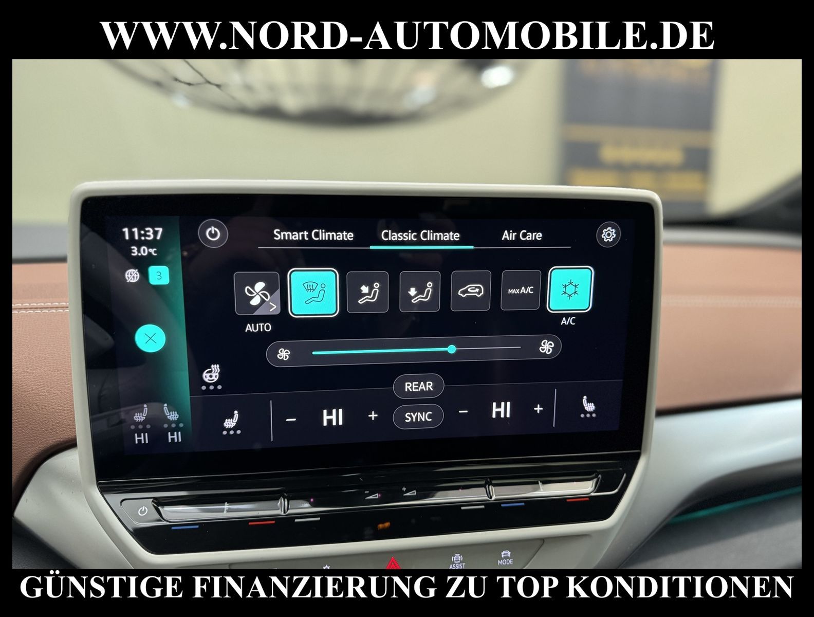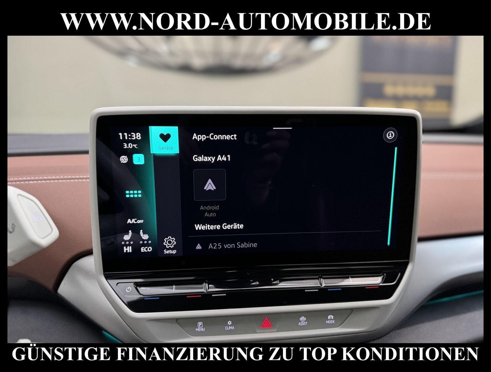 KomfortExtrasUnterhaltungBeschreibungwww.nord-automobile.de Volkswagen ID.4 Pro Performance electric 150kW 1-Gang-Automatik 4 TürenAnsprechpartner: Jan Feldhus, Jonathan Steinfeld, Tom Bijman, Simon Wolff, Matthis Ullrich* FAHRZEUG-NUMMER: M-0218-BD * LACKIERUNG: Gletscherweiß Metallic * Modelljahr:2023 * UPE brutto 62.169 ¤ * Mit Batteriezertifikat! SOH 94, 6% * Deutsche Auslieferung * Style-Paket * Schnellladevorrichtung (CCS-Ladedose) * Navigationssystem ''Discover Media'' inkl. ''Streaming & Internet'' * Wärmepumpe zur Reichweitenoptimierung * Panoramadach * Rückfahrkamera ''Rear View'' * Anhängevorrichtung anklappbar, mit elektrischer Entriegelung * Müdigkeitserkennungserkennung * Spurhalteassistent Lane-Assist * Climatronic ( 3-Zonen ) mit Klimabedienteil hinten * Autom. Distanzregelung (ACC inkl. Stop&Go-Funktion) - Geschwindigkeitsbegrenzungsanlage * Matrix-LED-Scheinwerfer (IQ.Light) inkl. autom. Fahrlichtschaltung, Schlechtwetter-Licht und Begrüßungsfunktion * Head-up-Display mit Augmented Reality * Parkassistent ''Park Assist Plus'' inkl. Einparkhilfe * Verkehrszeichenerkennung * Soundsystem ''DYNAUDIO Excite'', digitaler 10 Kanal Verstärker, Subwoofer, 8 Lautsprecher * Sitzheizung für Vordersitze getrennt regelbar * Schlüsselloses Schließ- und Startsystem ''Keyless Access'', mit Safe-Sicherung * Mobiltelefon Schnittstelle Comfort mit kabelloser Ladefunktion * Intelligente Fahrzeugvernetzung (Car2X) * Sprachsteuerungssystem * Lenkrad heizbar (Leder) mit Multifunktion * Sitze vorn höhenverstellbar * Seitenscheiben in Verbund-Sicherheitsglas, Seitenscheiben hinten und Heckscheibe abgedunkelt * Frontscheibe in Verbundsicherheitsglas, drahtlos beheizbar und infrarot-reflektierend, geräuschdämmend * Dynamische Fernlichtregulierung ''Dynamic Light Assist'' für LED-Matrix-Scheinwerfer * Scheibenwaschdüsen vorn automatisch beheizt * Scheibenwischer-Intervallschaltung mit Licht/Regensensor * Rücksitzlehne asymmetrisch geteilt umklappbar, mit Durchlademöglichkeit und Mittelarmlehne, 2 Becherhalter * Dachreling silber eloxiert * Ambientebeleuchtung * Umfeldbeobachtungssystem (Front assist) mit City-Notbremsfunktion * ISOFIX-Halteösen für Kindersitze auf denäußeren Rücksitzen sowie auf dem Beifahrersitz, i-Size-kompatibel * Airbag für Fahrer und Beifahrer, mit Beifahrerairbag-Deaktivierung * Radioempfang digital (DAB+) * Sicherheitsinnenspiegel automatisch abblendbar * Diebstahl-Warnanlage mit Innenraumabsicherung * Kopfairbags vorn und hinten, Seitenairbags vorn, Center-Airbag * Außenspiegel elektrisch einstell-, anklapp-, beheizbar, Umfeldbeleuchtung, Beifahrerspiegelabsenkung * Pedale in Edelstahl, im ''Play/Pause''-Design * Servolenkung, geschwindigkeitsabhängig (Servotronic) * Diebstahlwarnanlage mit Innenraumüberwachung, Back-up-Horn und Abschleppschutz * Reifenkontrollanzeige * 4 Leichtmetallräder ''Drammen'', 8 J x 20 vorn, 9 J x 20 hinten, in Schwarz, Oberfläche glanzgedreht * Nord-Automobile - Ihr starker und kompetenter Partner seit über 30 Jahren * Wir bieten Ihnen eine günstige Finanzierung auch ohne Anzahlung über die * AutoEuropaBank - Zweigniederlassung der Volkswagen Bank GmbH an * 20 XXL-Fotografien dieses Fahrzeuges finden Sie unter www.nord-automobile.de * Gerne unterbreiten wir Ihnen ein Angebot zum Ankauf Ihres bisherigen Fahrzeuges * Beim Export-Geschäft führen wir die Ausfuhranmeldung und Zulassung für Sie durch * Wir sind Meister-Werkstatt und zertifizierte GTÜ-Prüfstelle * Lernen Sie uns kennen - wir freuen uns auf Ihren Besuch * Keine Haftung für Druck & Schreibfehler. ... Klima, Klimaautomatik, Automatik, Navigationssystem, Sitzheiz. vorn, Regensensor, ABS, Distronic, Multifunktionslenkr., Radio, Soundsystem, Tel. m. Freisprech., Bordcomputer, beheizte Frontscheibe, Spiegel beheizbar, elektr. Fensterheber vorn, Alarm, ZV mit Fernb., Fahrerairb., Beifahrerairb., Kopfairbags, Leichtmetallfelgen, Nichtraucher, Anhaengerk., Servolenkung, Sitzbank teilbar, Dachreling, abklappb. Spiegel, elektr. verstellb. Spiegel, Sitzhoehenv., Sitzheizung, Lichtsensor, aus erster Hand, Lederlenkrad, HSN 0603, TSN CLQ, HU + AU wird vor Verkauf erneuert |