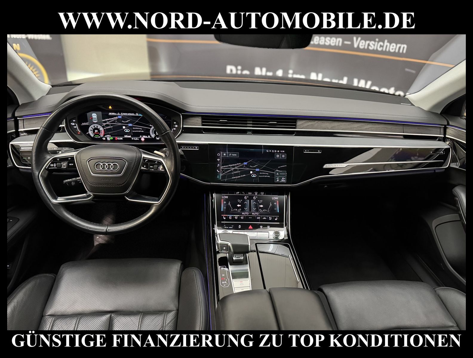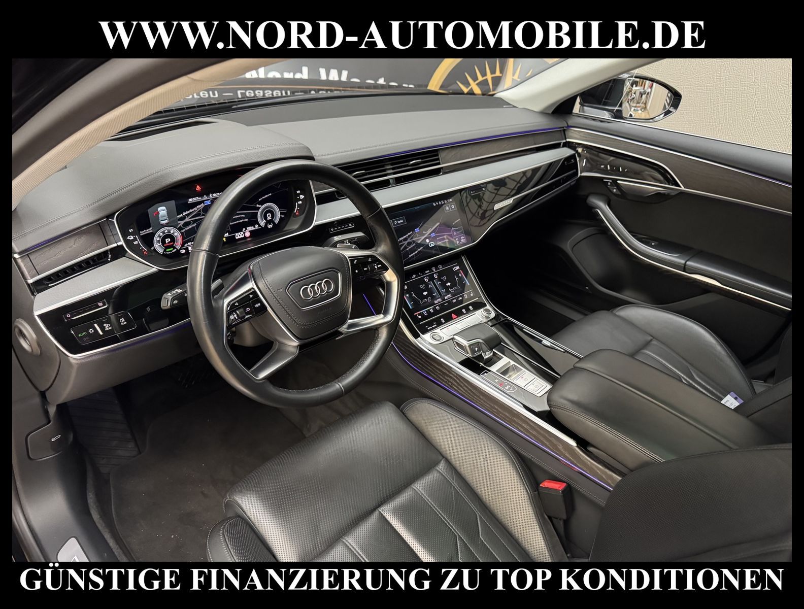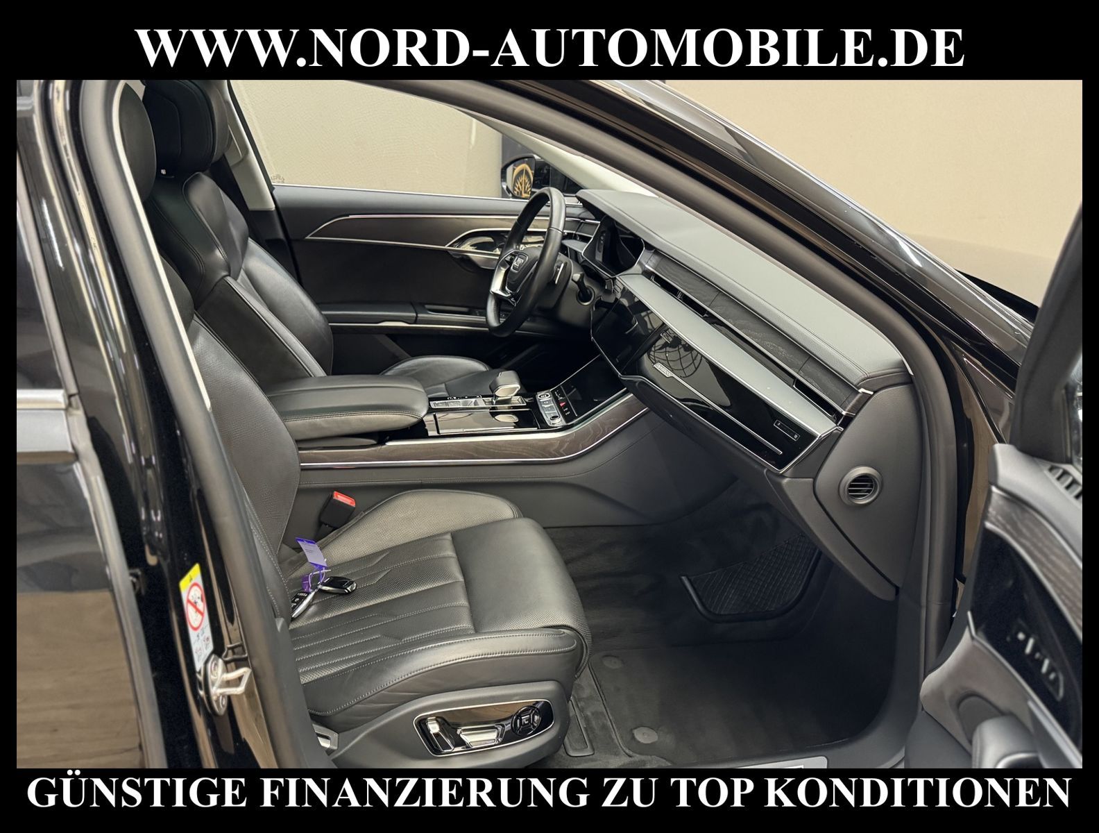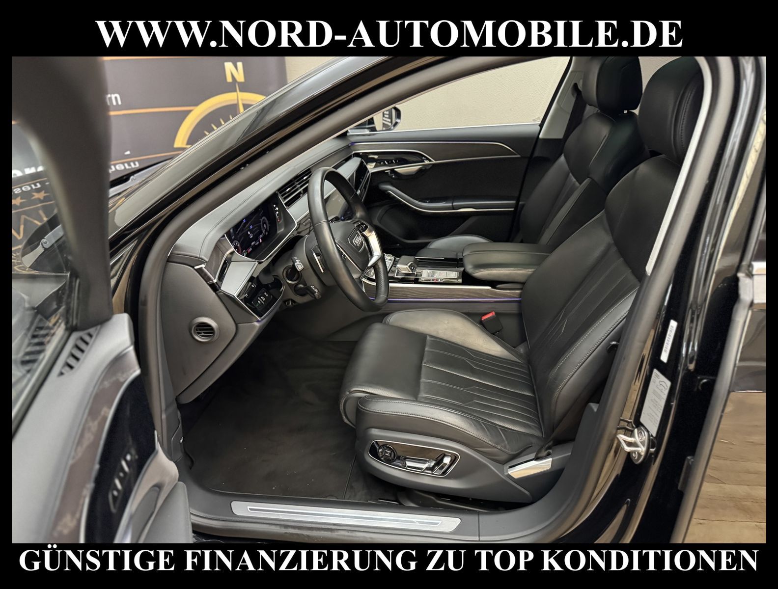 KomfortExtrasUnterhaltungBeschreibungwww.nord-automobile.de Audi A8 quattro 3.0 60 TFSI e 330kW 8-Gang Tiptronic 4 TürenAnsprechpartner: Jan Feldhus, Jonathan Steinfeld, Tom Bijman, Simon Wolff, Matthis Ullrich* FAHRZEUG-NUMMER: M-1635-BD * LACKIERUNG: Mythosschwarz Metallic * Mit Batteriezertifikt! * Deutsche Auslieferung * ehem.UPE: 133.815, - * MMI Navigation Plus mit MMI Touch * Sitzbezug / Polsterung: Leder Valcona * Assistenz-Paket Tour * Panorama-Ausstelldach elektrisch * Assistenzpaket Parken * Sitzbelüftung und Massagefunktion vorne * Parkassistent plus * HD Matrix LED-Scheinwerfer mit dynamischer Lichtinszenierung und dynamischem Blinklicht * Zentralverriegelung ''Keyless-Entry'' * Einparkhilfe vorn und hinten, akustisch und optisch mit selektiver Anzeige (APS Plus) * Bang & Olufsen Premium Sound System mit 3D Klang * Head-up-Display * Automatische Distanzregelung (mit follow to stop) und Speed-Limiter * City-Notbremsfunktion (Audi pre sense City) * Bluetooth-Freisprecheinrichtung mit Spracherkennung (Audi Phone Box) * Spurwechselassistent * Radioempfang digital (DAB) * Mit Front und Rückfahrkamerasystem und zwei Seitenkameras * Fahrwerk (adaptive air suspension) * Kombiinstrument digital (virtual cockpit plus) * Sitze vorn elektr. verstellbar (mit Memory) * Sitzheizung vorn und hinten * Doppelspeichen-Lederlenkrad mit Multifunktion, Schaltwippen und Lenkradheizung * Adaptive Scheibenwischer mit integrierten Waschdüsen * Kontur-/Ambiente Lichtpaket, mehrfarbig * Verglasung hinten abgedunkelt (Privacyverglasung) und Türscheiben vorn Akustikglas * Kühlbox im Handschuhfach * Mittelarmlehne vorn * Frontscheibe in Klimakomfort- und Akustikverglasung drahtlos beheizbar * Scheinwerfer-Reinigungsanlage (SRA) * Airbag Beifahrerseite abschaltbar * Start/Stop-Anlage * Reifendruck-Kontrollanzeige * Gepäckraumklappe elektr. betätigt (öffnen + schliessen) * Außenspiegel elektr. verstell-, heiz- und anklappbar, mit Abblendautomatik und Memory * Diebstahl-Warnanlage + Innenraumabsicherung / Abschleppschutz * Durchladeeinrichtung * Leichtmetallräder, 5-Arm, graphitgrau, glanzgedreht, 9, 0Jx19, Reifen 255/45 R19 * Nord-Automobile - Ihr starker und kompetenter Partner seit über 30 Jahren * Wir bieten Ihnen eine günstige Finanzierung auch ohne Anzahlung über die * AutoEuropaBank - Zweigniederlassung der Volkswagen Bank GmbH an * 20 XXL-Fotografien dieses Fahrzeuges finden Sie unter www.nord-automobile.de * Gerne unterbreiten wir Ihnen ein Angebot zum Ankauf Ihres bisherigen Fahrzeuges * Beim Export-Geschäft führen wir die Ausfuhranmeldung und Zulassung für Sie durch * Wir sind Meister-Werkstatt und zertifizierte GTÜ-Prüfstelle * Lernen Sie uns kennen - wir freuen uns auf Ihren Besuch * Keine Haftung für Druck & Schreibfehler. ... Klimaautomatik, Automatik, Leder, Navigationssystem, Allrad, Sitzheiz. vorn, Sitzheiz. hinten, Vorders. elekt. verstellb., ESP, ABS, Distronic, Multifunktionslenkr., Soundsystem, Tel. m. Freisprech., Bordcomputer, beheizte Frontscheibe, Spiegel beheizbar, Scheinwerferreinigung, elektr. Fensterheber vorn, elektr. WFS, ZV mit Fernb., Fahrerairb., Beifahrerairb., Leichtmetallfelgen, Nichtraucher, abklappb. Spiegel, Luftfederung, Mittelarmlehne, elekt. verstellb. Fahrersitz, Sitzheizung, Schadstoffklasse: Euro 6, 4x4-Antrieb, Lederlenkrad, HSN 0588, TSN BQR, Verbrauch: 2,2/0,0/0,0 l/100 km (komb/inn/auß), CO2: 56 g/km, HU + AU wird vor Verkauf erneuert, Feinstaubplakette: 4 - Grün |