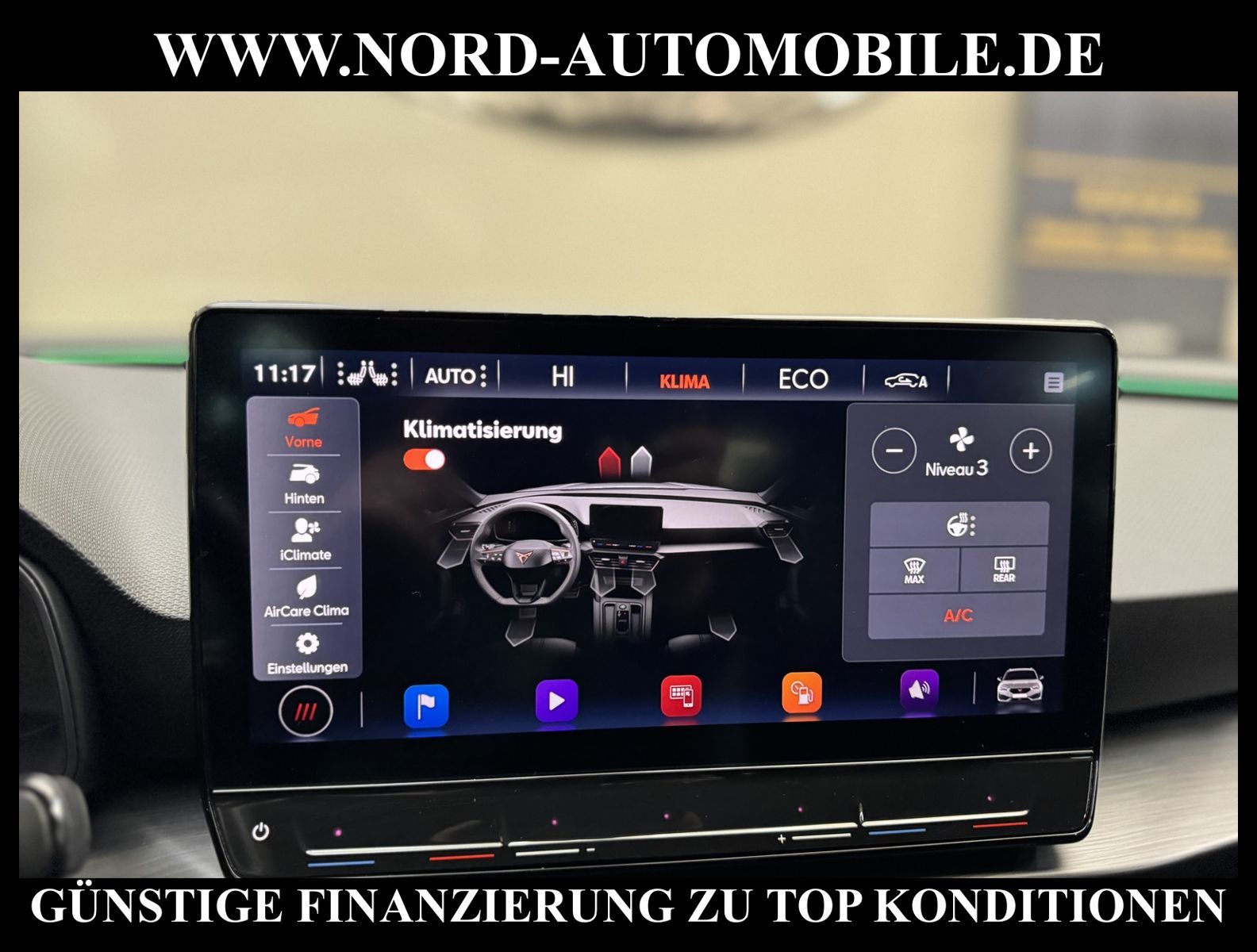 KomfortExtrasUnterhaltungBeschreibungwww.nord-automobile.de Cupra Leon SP VZ 1.4 electric/TSI e-HYBRID 180kW 6-Gang Automatikgetriebe 4 TürenAnsprechpartner: Jan Feldhus, Jonathan Steinfeld, Tom Bijman, Simon Wolff, Matthis Ullrich* FAHRZEUG-NUMMER: TEST-23908-BD * LACKIERUNG: Mitternachtsschwarz * Modelljahr:2023 * UPE netto 37.710, 08 ¤ * Deutsche Auslieferung * Abgaskonzept, EU6 AP * Navigationssystem * Full Link (MirrorLink, Apple CarPlay und Android Auto) * Mit Verkehrszeichenerkennung * Automatische Distanzregelung (mit follow to stop) und Speed-Limiter * Komforttelefonie mit LTE und Wireless charging * Mit Rückfahrkamerasystem * Sprachsteuerung * Anhängevorrichtung mechanisch schwenkbarund elektrisch auslösbar * Müdigkeitserkennung * LED-Scheinwerfer * Fahrassistenz-System: Parklenkassistent mit Einparkhilfe vorn und hinten inkl. Rückfahrkamera * Schlüsselloses Schließ- und Startsystem ''Keyless Advanced'' mit Safesicherung * Sitzheizung für Vordersitze getrennt regelbar * Spurhalteassistent plus Emergency Assistund Stauassistent * Climatronic ( 3-Zonen ) mit Klimabedienteil hinten * Kombiinstrument digital (virtual cockpit) * Auspark- und Spurwechselassistent und Ausstiegswarner * Sitzeinstellung, links elektrisch mit Memory, rechts mechan. höheneinstellbar * Lendenwirbelstütze, elektr. einstellbar für linke Vordersitzlehne * Lenkrad heizbar (Sport/Leder) mit Multifunktion und Schaltfunktion * Tagesfahrlicht mit Assistenzfahrlicht u.Coming- u. Leaving-home Funktion automatisch * Rücksitzbank ungeteilt, Lehne geteilt umlegbar mit Mittelarmlehne * Einstiegleisten in den Türausschnitten (beleuchtet) * Nebelscheinwerfer * Fernlichtassistent * Scheiben seitlich in Wärmeschutzver- glasung, ab B-Säule und hinten dunkel eingefärbt * Mittelarmlehne vorn * Heckscheiben-Wisch-Waschanlage mit Intervallschaltung * Scheibenwischer-Intervallschaltung mit Licht/Regensensor * Angehobener Ladeboden hinten * Servolenkung, geschwindigkeitsabhängig (Servotronic) mit Lenkhubeinschränkung * Fensterheber mit Komfortschaltung und Abschaltsicherung, elektrisch * Sicherheitsinnenspiegel automatisch abblendbar * Radschrauben mit Diebstahlsicherung (nicht abschließbar) * Reifendruckkontrolle * Diebstahlalarmanlage, Innenraumüber- wachung, Back-up-Horn und Abschleppschutz * Pedale Aluminium-Design * Start/Stopp-Anlage mit Rekuperation * 6-Gang-Automatikgetriebe * Außenspiegel mit Memoryfunktion elektrisch anklapp-/einstellbar, separat beheizbar * Leichtmetallräder 8J x 19 * Nord-Automobile - Ihr starker und kompetenter Partner seit über 30 Jahren * Wir bieten Ihnen eine günstige Finanzierung auch ohne Anzahlung über die * AutoEuropaBank - Zweigniederlassung der Volkswagen Bank GmbH an * 20 XXL-Fotografien dieses Fahrzeuges finden Sie unter www.nord-automobile.de * Gerne unterbreiten wir Ihnen ein Angebot zum Ankauf Ihres bisherigen Fahrzeuges * Beim Export-Geschäft führen wir die Ausfuhranmeldung und Zulassung für Sie durch * Wir sind Meister-Werkstatt und zertifizierte GTÜ-Prüfstelle * Lernen Sie uns kennen - wir freuen uns auf Ihren Besuch * Keine Haftung für Druck & Schreibfehler. ... Klima, Klimaautomatik, Automatik, Navigationssystem, Sitzheiz. vorn, Regensensor, ESP, ABS, Distronic, Parktronic System, Multifunktionslenkr., Bordcomputer, Spiegel beheizbar, elektr. Fensterheber vorn, Keyless-Go, ZV mit Fernb., Fahrerairb., Beifahrerairb., Leichtmetallfelgen, Nichtraucher, Anhaengerk., Nebelscheinw., Servolenkung, abklappb. Spiegel, elektr. verstellb. Spiegel, Mittelarmlehne, Sitzheizung, Lichtsensor, aus erster Hand, Schadstoffklasse: Euro 6, Frontantrieb, Lederlenkrad, HSN 7593, TSN ARS, Verbrauch: 1,6/0,0/0,0 l/100 km (komb/inn/auß), CO2: 30 g/km, HU + AU wird vor Verkauf erneuert, Feinstaubplakette: 4 - Grün |
