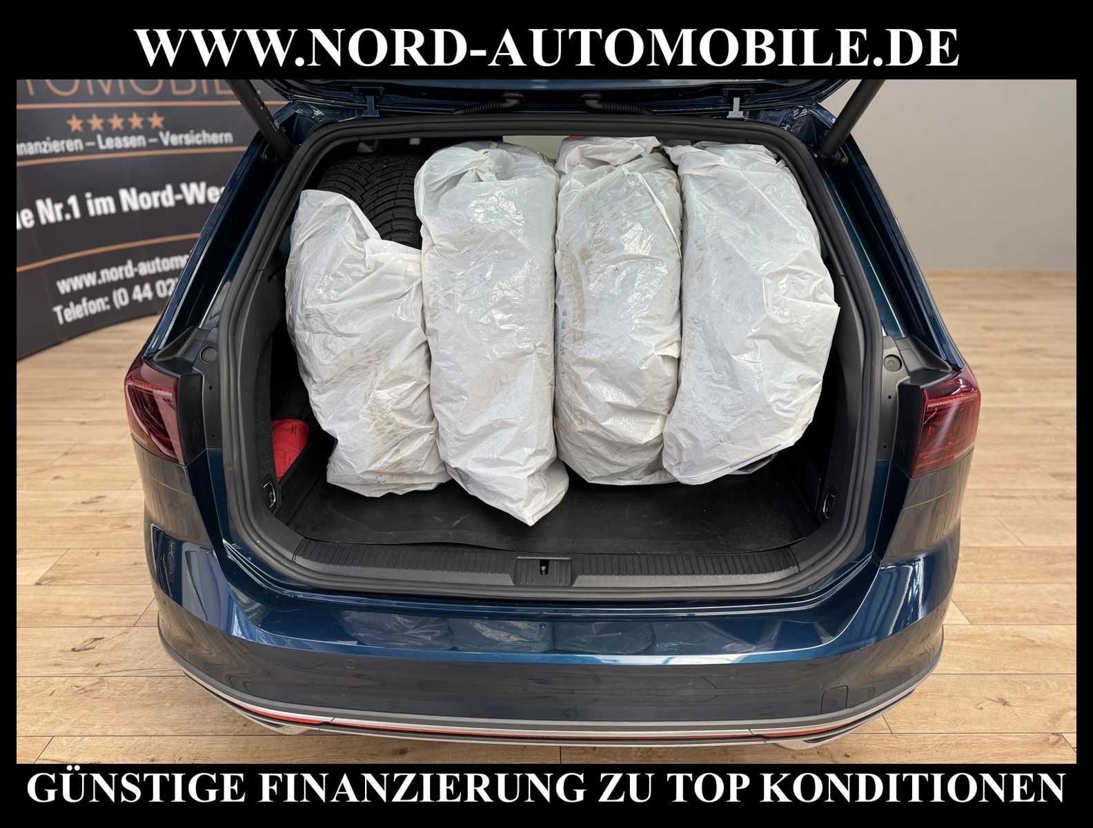 KomfortExtrasUnterhaltungBeschreibungwww.nord-automobile.de Volkswagen Passat Alltrack Variant 4Motion 2.0 TDI SCR 147kW 7-Gang DSG 4 TürenAnsprechpartner: Jan Feldhus, Jonathan Steinfeld, Tom Bijman, Simon Wolff, Matthis Ullrich* FAHRZEUG-NUMMER: M-1319-BD * LACKIERUNG: Aquamarinblau Metallic * Modelljahr: 2022 * Deutsche Auslieferung * Abgasnorm Euro 6d * Navigationssystem ''Discover Pro'' * LED-Scheinwerfer * Spurwechselassistent * Schlüsselloses Schließ- und Startsystem ''Keyless Access'' mit Safe-Sicherung * Sitzbezüge in Leder * Spurhalteassistent plus Emergency Assist und Stauassistent * Rückfahrkamera ''Rear View'' * Audio-Navigationssystem Discover Pro Streaming & Internet * Parklenkassistent (Park Assist) und PDC vorn und hinten * Müdigkeitserkennungserkennung * Business-Paket Premium mit Navigation * Climatronic ( 3-Zonen ) mit Klimabedienteil hinten * Autom. Distanzregelung (ACC inkl. Stop&Go-Funktion) - Geschwindigkeitsbegrenzungsanlage * Verkehrszeichenerkennung * Sonnenschutzrollo an den Türscheiben hinten * Multifunktionsanzeige/Bordcomputer * Vorbereitet für ''We Connect'' und ''We Connect Plus'' * Front Assist inkl. City ANB für ACC high * Sitzheizung für Vordersitze getrennt regelbar * 2 USB-C-Schnittstellen vorn, 1 USB-C-Ladebuchse an der Mittelkonsole hinten * Mobiltelefon Schnittstelle Comfort mit kabelloser Ladefunktion * Sprachsteuerungssystem * Innenausstattung Leder Vienna - Sportsitze vorn * ergoComfort Sitz mit elektrischer 14-Wege-Einstellung mit Memory-Funktion und Massagefunktion auf der Fahrerseite * Sitzeinstellung elektrische Vordersitze, li. mit Memory und Sitztiefeneinstellung und Smart Comfort Einstiegshilfe * Rücksitzbank ungeteilt, Lehne geteilt umlegbar (dreiteilig) mit Mittelarmlehne * Lendenwirbelstütze, elektr. einstellbar in Vordersitzlehnen und Massagefunktion links * Top-Komfortsitze vorn * Leuchtweitenregulierung dynamisch, mit dynamischem Kurvenfahrlicht * Frontscheibe in Verbundsicherheitsglas, drahtlos beheizbar und infrarot-reflektierend, geräuschdämmend * Dynamische Fernlichtregulierung ''Dynamic Light Assist'' für LED-Matrix-Scheinwerfer * Scheibenwaschdüsen vorn automatisch beheizt * Nebelscheinwerfer und Abbiegeleuchte * Tagesfahrlicht mit Assistenzfahrlicht und coming home Funktion * Scheibenwischer-Intervallschaltung mit Licht/Regensensor * Dachreling silber eloxiert * Kindersitzverankerung für Kindersitzsystem I-Size, 2 x top tether * Ledersportenkrad mit Multifunktion und Schaltfunktion * Leichtmetallräder ''Kalamata'' * Radioempfang digital (DAB+) * Sicherheitsinnenspiegel automatisch abblendbar * Außenspiegel mit Memoryfunktion automatisch abblendbar, elektrisch anklapp-/einstellbar, separat beheizbar * Reifendruckkontrollsystem für Fahrbereifung und Winterräder * Reifenfülldruck-Kontrollsystem * Vorbereitung Mobiler Schlüssel, für den Fahrzeugzugang per Smartphone * Servolenkung, geschwindigkeitsabhängig (Servotronic) * Airbag für Fahrer und Beifahrer, mit Beifahrerairbag-Deaktivierung, inkl. Knie-Airbag auf der Fahrerseite * Kofferraumdeckel / Heckklappe elektr. betätigt (öffnen + schliessen) * Elektronische Parkbremse inkl. Auto-Hold-Funktion * Diebstahlwarnanlage mit Innenraumüberwachung, Back-up-Horn und Abschleppschutz * Start/Stopp-Anlage mit Rekuperation * Berganfahr- und Bergabfahrassistent * 7-Gang-Automatikgetriebe für Allrad * Dachhimmel in Titanschwarz * Kalamata 8 J x 18, AirStop®-Reifen 245/45 R 18 rollwiderstandspotimiert * Nord-Automobile - Ihr starker und kompetenter Partner seit über 30 Jahren * Wir bieten Ihnen eine günstige Finanzierung auch ohne Anzahlung über die * AutoEuropaBank - Zweigniederlassung der Volkswagen Bank GmbH an * 20 XXL-Fotografien dieses Fahrzeuges finden Sie unter www.nord-automobile.de * Gerne unterbreiten wir Ihnen ein Angebot zum Ankauf Ihres bisherigen Fahrzeuges * Beim Export-Geschäft führen wir die Ausfuhranmeldung und Zulassung für Sie durch * Wir sind Meister-Werkstatt und zertifizierte GTÜ-Prüfstelle * Lernen Sie uns kennen - wir freuen uns auf Ihren Besuch * Keine Haftung für Druck & Schreibfehler. ... Klima, Klimaautomatik, Automatik, Leder, Navigationssystem, Allrad, Sitzheiz. vorn, Regensensor, Vorders. elekt. verstellb., ESP, ABS, Distronic, Parktronic System, Multifunktionslenkr., Radio, Tel. m. Freisprech., Bordcomputer, beheizte Frontscheibe, elektr. Fensterheber vorn, Keyless-Go, ZV mit Fernb., Fahrerairb., Beifahrerairb., Leichtmetallfelgen, Nichtraucher, Nebelscheinw., Servolenkung, Sportsitze/Schalensitze, Sitzbank teilbar, Dachreling, abklappb. Spiegel, Mittelarmlehne, Lendenwirbelst., elekt. verstellb. Fahrersitz, orthop. Fahrersitz, Sitzheizung, Lichtsensor, Schadstoffklasse: Euro 6, Diesel, 4x4-Antr |