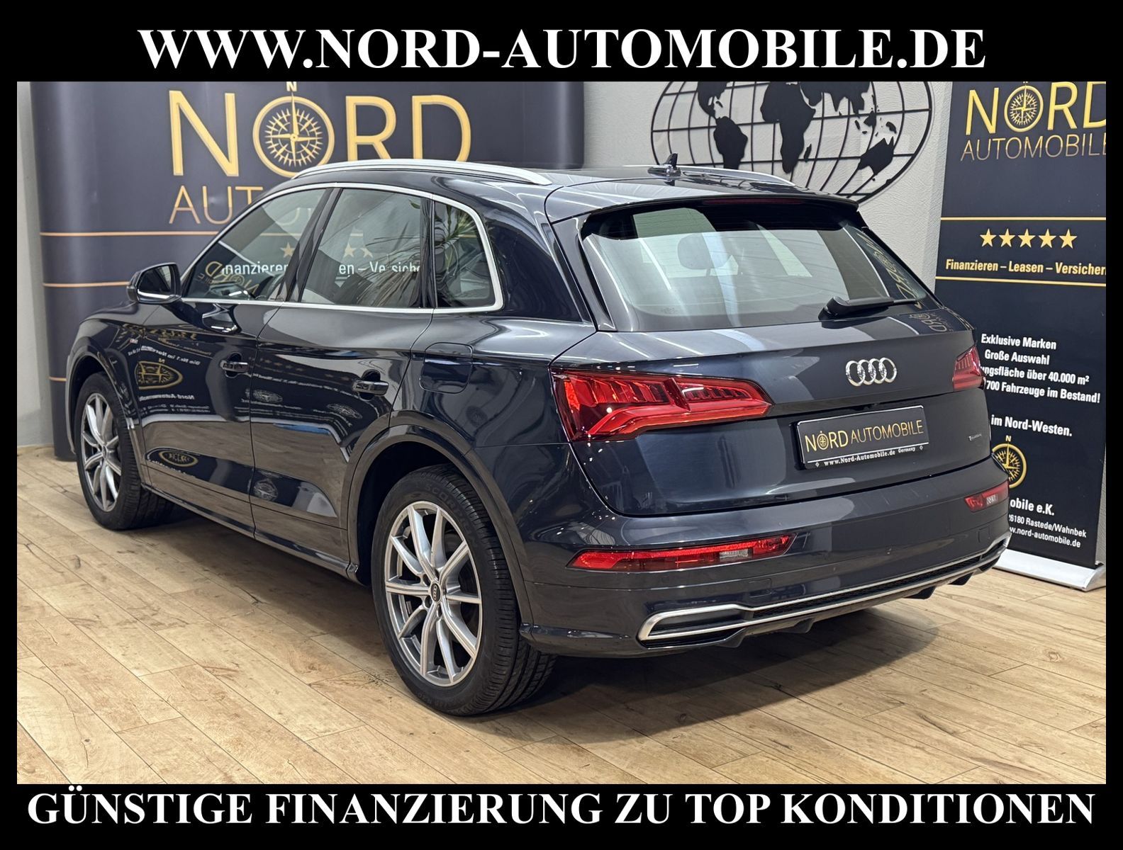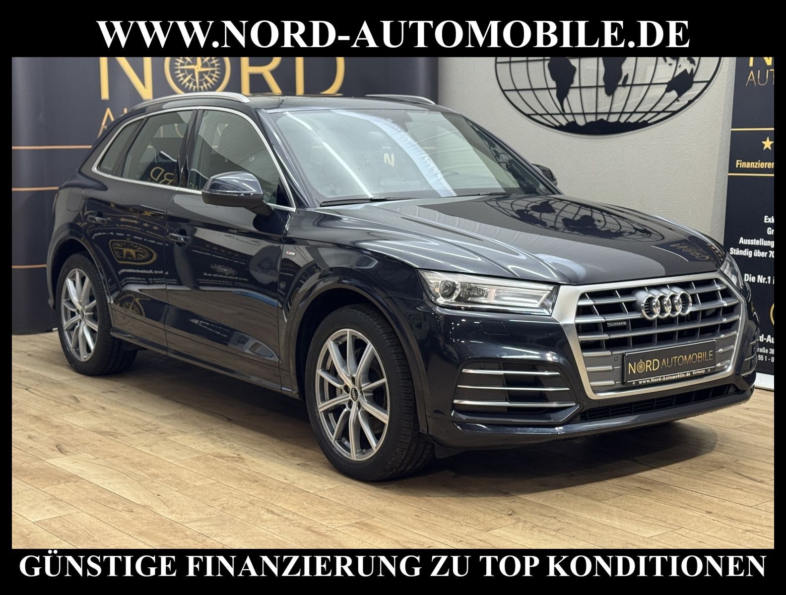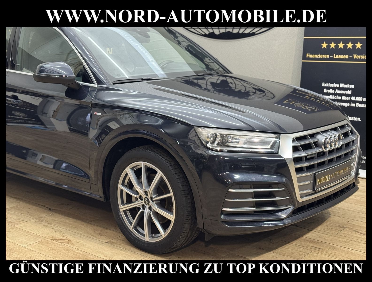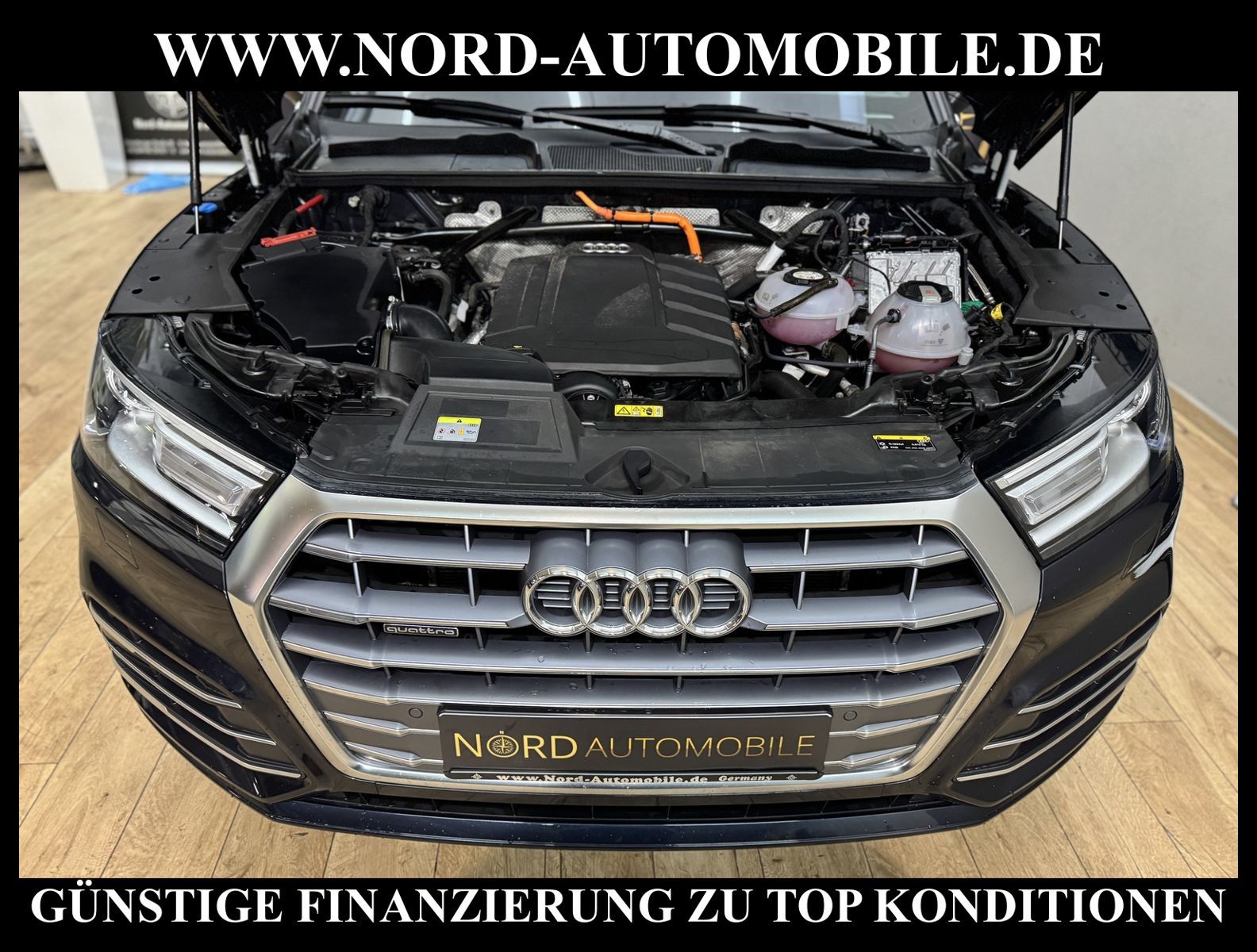 Audi Q5 50 TFSI e Hybrid quattro S-Tronic S-LINEAnsprechpartner: Jan Feldhus, Jonathan Steinfeld, Tom Bijman, Simon Wolff, Matthis Ullrich* FAHRZEUG-NUMMER: MW-9795-BD * LACKIERUNG: mondscheinblau metallic * deutsche Ausführung * Abgaskonzept, Euro6 DG * ehem.UPE: 80.890, - * Allradantrieb quattro * Hybrid 220 kW (Motor 2, 0 Ltr. - 195 kW TFSI) * Anhängerkupplung (Kugelkopf schwenkbar) * Ausstattungs-Paket: S line Sport-Paket / Plus * Exterieur-Paket S line * MMI Navigationssystem Plus mit MMI touch * Kombiinstrument digital (virtual cockpit) * Audi Sound-System DSP * Audi connect * Bluetooth-Freisprecheinrichtung mit Spracherkennung (Audi Phone Box) * Audi Smartphone Interface * digitaler Radioempfang (DAB+) * Komfort-Klimaautomatik 3-Zonen * Komfort-Standklimatisierung * Panoramadach vorn elektrisch, hinten fest * Sitzbezug / Polsterung: Leder Feinnappa, Rautensteppung mit Logo-Prägung in Vordersitzlehnen * Sportsitze vorn * Sitzheizung vorn * Sitzheizung hinten * Xenon-Scheinwerfer Plus mit LED-Tagfahrlicht * Fernlichtassistent * Heckleuchten LED * LM-Felgen 8x20 (10-Speichen-Stern-Design, Platin-Optik, glanzgedreht) * 4-Corner Luftfederung (adaptive air suspension) * Geschwindigkeitsregelanlage plus Speed-Limiter * Audi Drive Select * Einparkhilfe vorn und hinten, akustisch und optisch mit selektiver Anzeige (APS Plus) * Rückfahrkamera * Multifunktions-Lederlenkrad * Gepäckraumklappe elektrisch betätigt (öffnen + schliessen) * Sonnenschutzrollo an Türscheiben hinten * Sitze vorn höhenverstellbar * Mittelarmlehne vorn * Rücksitzlehne geteilt/klappbar, verschiebbar (40:20:40) * Dachhimmel Stoff, schwarz * Dachreling * Zentralverriegelung mit Fernbedienung ''keyless go'' * Außenspiegel elektrisch verstell-, heiz- und anklappbar, mit Abblendautomatik und Bordsteinautomatik * Innenspiegel mit Abblendautomatik * Isofix-Aufnahmen für Kindersitz * Airbag Fahrer-/Beifahrerseite * Airbag Beifahrerseite abschaltbar * Kopf-Airbag-System (Sideguard) * Seitenairbag vorn und hinten * Insassen-Schutzsystem (Audi pre sense basic) * City-Notbremsfunktion (Audi pre sense City) * Reifendruckkontrolle * Start/Stopp-Anlage mit Rekuperation * Getriebe 7-Gang - Doppelkupplungsgetriebe S-tronic für Allrad * Nord-Automobile - Ihr starker und kompetenter Partner seit über 30 Jahren * Wir bieten Ihnen eine günstige Finanzierung auch ohne Anzahlung über die * AutoEuropaBank - Zweigniederlassung der Volkswagen Bank GmbH an * 20 XXL-Fotografien dieses Fahrzeuges finden Sie unter www.nord-automobile.de * Gerne unterbreiten wir Ihnen ein Angebot zum Ankauf Ihres bisherigen Fahrzeuges * Beim Export-Geschäft führen wir die Ausfuhranmeldung und Zulassung für Sie durch * Wir sind Meister-Werkstatt und zertifizierte DEKRA-Prüfstelle * Lernen Sie uns kennen - wir freuen uns auf Ihren Besuch * Keine Haftung für Druck & Schreibfehler. ... Klima vorn+hinten, Klimaautomatik, Automatik, Leder, Navigationssystem, Allrad, Sitzheiz. vorn, Sitzheiz. hinten, Xenon, Regensensor, ESP, ABS, Schiebedach elek., Parktronic System, Multifunktionslenkr., Radio, Soundsystem, Bordcomputer, Tempomat, Spiegel autom. abblendbar, Spiegel beheizbar, elektr. Fensterheber vorn, elektr. WFS, Keyless-Go, ZV mit Fernb., Fahrerairb., Beifahrerairb., Seitenairbag vorn, Seitenairbag hinten, Kopfairbags, Leichtmetallfelgen, Nichtraucher, Anhaengerk., Glasdach, Servolenkung, Sportsitze/Schalensitze, Spoiler, Sitzbank teilbar, Dachreling, abklappb. Spiegel, elektr. verstellb. Spiegel, Kopfst. vorn, Gepaeckraumabd., Luftfederung, Aluoptik, Mittelarmlehne, Sitzheizung Fahrer + Beif., Lichtsensor, Waermeschutzvergl., aus erster Hand, 4x4-Antrieb, Lederlenkrad, Lederschaltknauf, HSN 0588, TSN BRF, Verbrauch: 2,2/0,0/0,0 l/100 km (komb/inn/auß), CO2: 57 g/km, Partikelfilter, HU + AU wird vor Verkauf erneuert, Standklima |