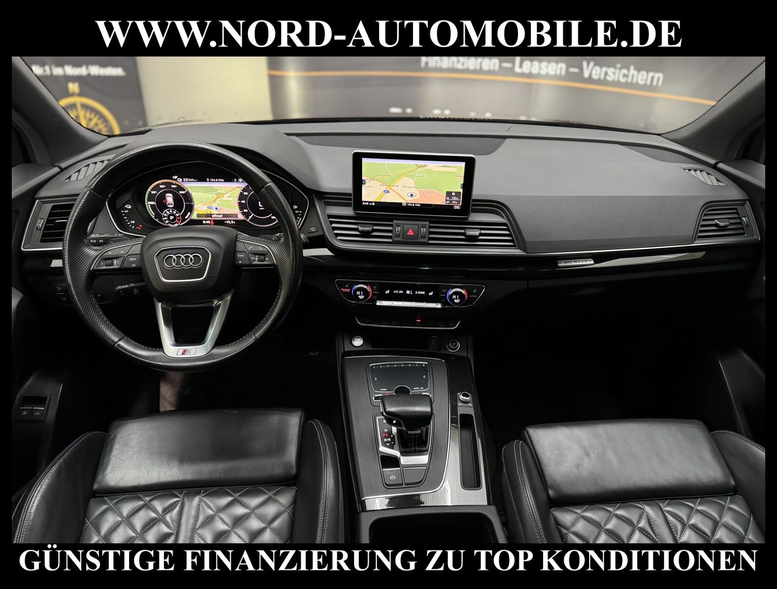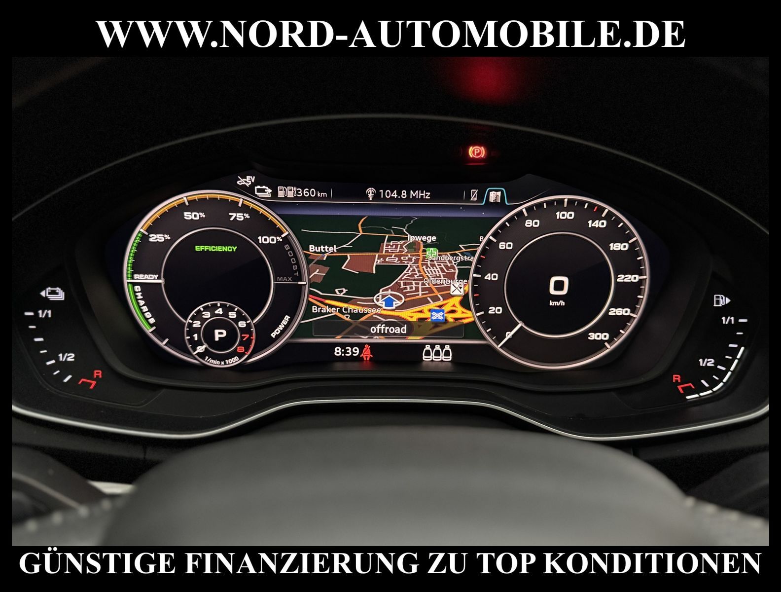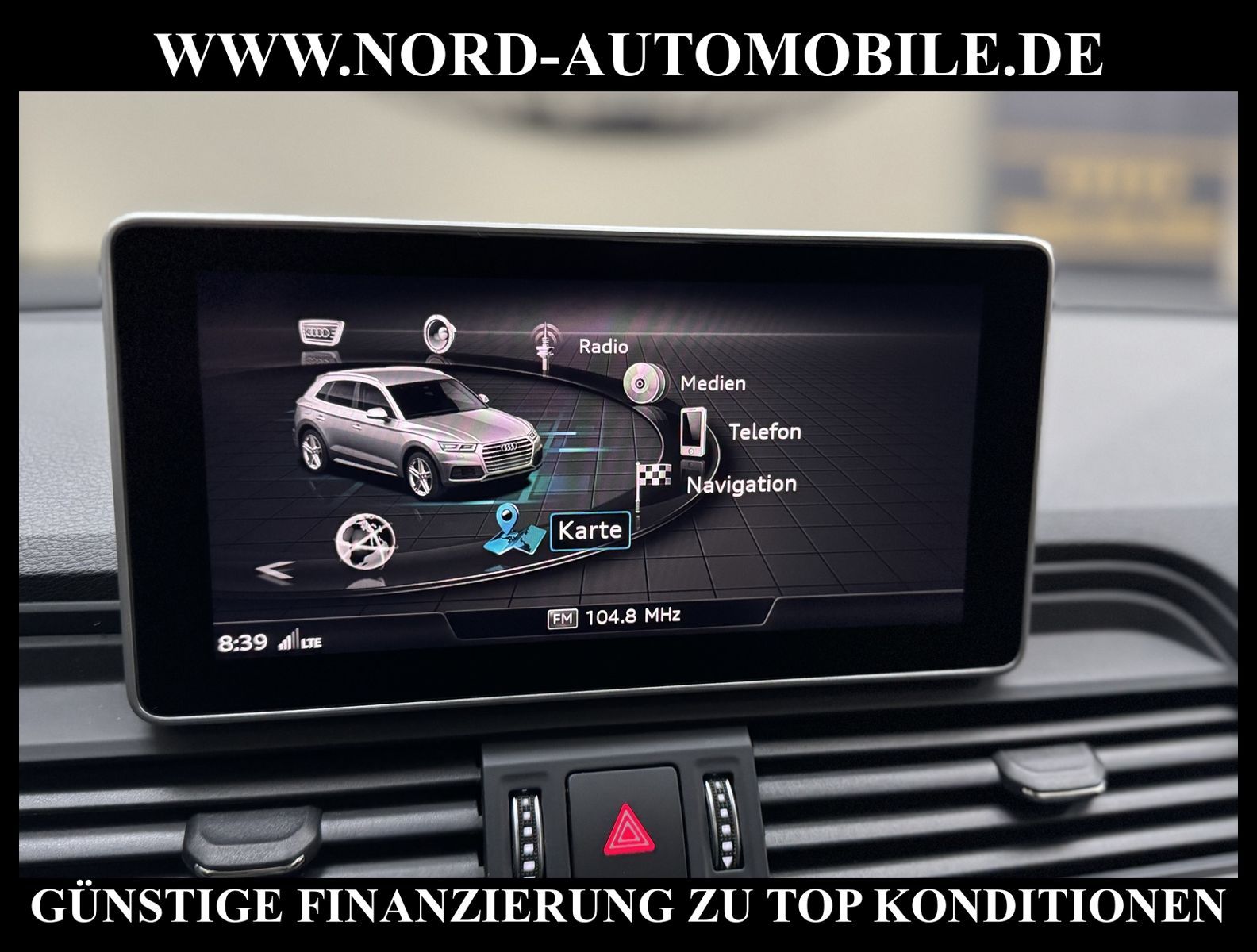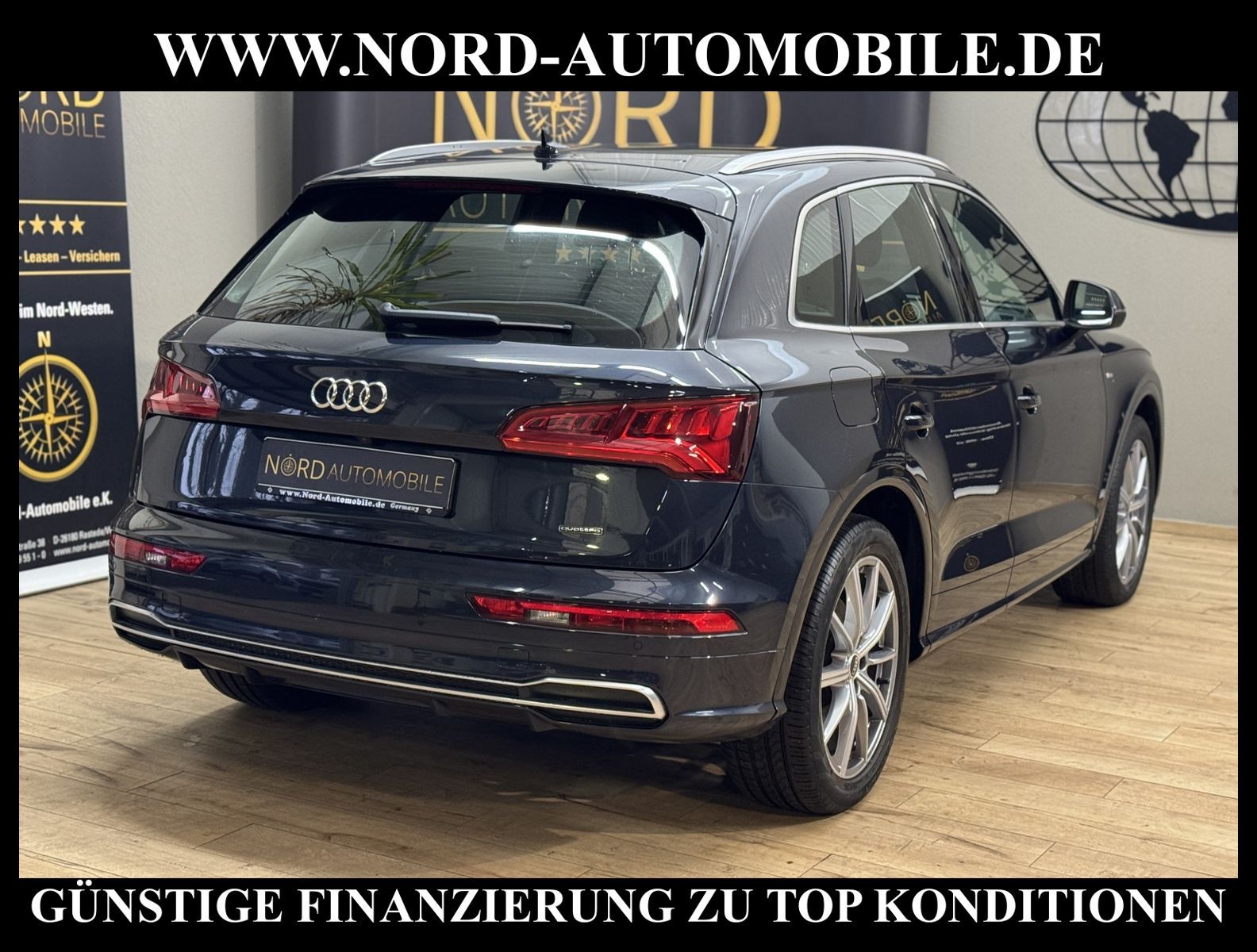 Audi Q5 50 TFSI e Hybrid quattro S-Tronic S-LINEAnsprechpartner: Jan Feldhus, Jonathan Steinfeld, Tom Bijman, Simon Wolff, Matthis Ullrich* FAHRZEUG-NUMMER: MW-9795-BD * LACKIERUNG: mondscheinblau metallic * deutsche Ausführung * Abgaskonzept, Euro6 DG * ehem.UPE: 80.890, - * Allradantrieb quattro * Hybrid 220 kW (Motor 2, 0 Ltr. - 195 kW TFSI) * Anhängerkupplung (Kugelkopf schwenkbar) * Ausstattungs-Paket: S line Sport-Paket / Plus * Exterieur-Paket S line * MMI Navigationssystem Plus mit MMI touch * Kombiinstrument digital (virtual cockpit) * Audi Sound-System DSP * Audi connect * Bluetooth-Freisprecheinrichtung mit Spracherkennung (Audi Phone Box) * Audi Smartphone Interface * digitaler Radioempfang (DAB+) * Komfort-Klimaautomatik 3-Zonen * Komfort-Standklimatisierung * Panoramadach vorn elektrisch, hinten fest * Sitzbezug / Polsterung: Leder Feinnappa, Rautensteppung mit Logo-Prägung in Vordersitzlehnen * Sportsitze vorn * Sitzheizung vorn * Sitzheizung hinten * Xenon-Scheinwerfer Plus mit LED-Tagfahrlicht * Fernlichtassistent * Heckleuchten LED * LM-Felgen 8x20 (10-Speichen-Stern-Design, Platin-Optik, glanzgedreht) * 4-Corner Luftfederung (adaptive air suspension) * Geschwindigkeitsregelanlage plus Speed-Limiter * Audi Drive Select * Einparkhilfe vorn und hinten, akustisch und optisch mit selektiver Anzeige (APS Plus) * Rückfahrkamera * Multifunktions-Lederlenkrad * Gepäckraumklappe elektrisch betätigt (öffnen + schliessen) * Sonnenschutzrollo an Türscheiben hinten * Sitze vorn höhenverstellbar * Mittelarmlehne vorn * Rücksitzlehne geteilt/klappbar, verschiebbar (40:20:40) * Dachhimmel Stoff, schwarz * Dachreling * Zentralverriegelung mit Fernbedienung ''keyless go'' * Außenspiegel elektrisch verstell-, heiz- und anklappbar, mit Abblendautomatik und Bordsteinautomatik * Innenspiegel mit Abblendautomatik * Isofix-Aufnahmen für Kindersitz * Airbag Fahrer-/Beifahrerseite * Airbag Beifahrerseite abschaltbar * Kopf-Airbag-System (Sideguard) * Seitenairbag vorn und hinten * Insassen-Schutzsystem (Audi pre sense basic) * City-Notbremsfunktion (Audi pre sense City) * Reifendruckkontrolle * Start/Stopp-Anlage mit Rekuperation * Getriebe 7-Gang - Doppelkupplungsgetriebe S-tronic für Allrad * Nord-Automobile - Ihr starker und kompetenter Partner seit über 30 Jahren * Wir bieten Ihnen eine günstige Finanzierung auch ohne Anzahlung über die * AutoEuropaBank - Zweigniederlassung der Volkswagen Bank GmbH an * 20 XXL-Fotografien dieses Fahrzeuges finden Sie unter www.nord-automobile.de * Gerne unterbreiten wir Ihnen ein Angebot zum Ankauf Ihres bisherigen Fahrzeuges * Beim Export-Geschäft führen wir die Ausfuhranmeldung und Zulassung für Sie durch * Wir sind Meister-Werkstatt und zertifizierte DEKRA-Prüfstelle * Lernen Sie uns kennen - wir freuen uns auf Ihren Besuch * Keine Haftung für Druck & Schreibfehler. ... Klima vorn+hinten, Klimaautomatik, Automatik, Leder, Navigationssystem, Allrad, Sitzheiz. vorn, Sitzheiz. hinten, Xenon, Regensensor, ESP, ABS, Schiebedach elek., Parktronic System, Multifunktionslenkr., Radio, Soundsystem, Bordcomputer, Tempomat, Spiegel autom. abblendbar, Spiegel beheizbar, elektr. Fensterheber vorn, elektr. WFS, Keyless-Go, ZV mit Fernb., Fahrerairb., Beifahrerairb., Seitenairbag vorn, Seitenairbag hinten, Kopfairbags, Leichtmetallfelgen, Nichtraucher, Anhaengerk., Glasdach, Servolenkung, Sportsitze/Schalensitze, Spoiler, Sitzbank teilbar, Dachreling, abklappb. Spiegel, elektr. verstellb. Spiegel, Kopfst. vorn, Gepaeckraumabd., Luftfederung, Aluoptik, Mittelarmlehne, Sitzheizung Fahrer + Beif., Lichtsensor, Waermeschutzvergl., aus erster Hand, 4x4-Antrieb, Lederlenkrad, Lederschaltknauf, HSN 0588, TSN BRF, Verbrauch: 2,2/0,0/0,0 l/100 km (komb/inn/auß), CO2: 57 g/km, Partikelfilter, HU + AU wird vor Verkauf erneuert, Standklima |