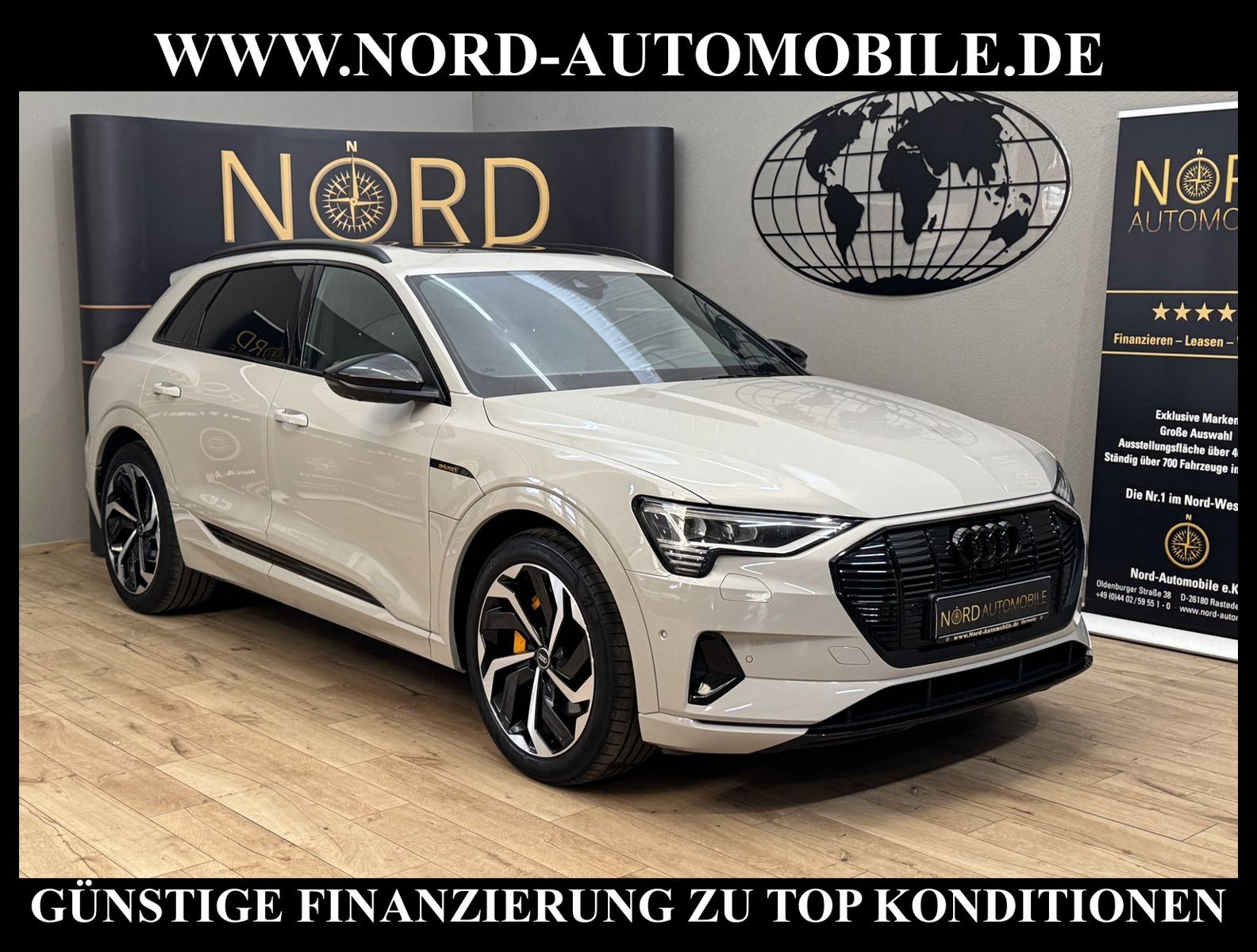 KomfortExtrasUnterhaltungBeschreibungwww.nord-automobile.de Audi e-tron advanced quattro 230kW 1-Gang Automatikgetriebe 4 TürenAnsprechpartner: Jan Feldhus, Jonathan Steinfeld, Tom Bijman, Simon Wolff, Matthis Ullrich* FAHRZEUG-NUMMER: M-6958-BD * LACKIERUNG: Siambeige Metallic * Modelljahr:2022 * UPE brutto 94.890 ¤ * Mit Batteriezertifikat! * Deutsche Auslieferung * S-Line * Advanced Selection * MMI Navigation Plus mit MMI Touch * Panoramadach vorn elektrisch, hinten fest * Optikpaket schwarz plus * Sitzheizung vorn * Kombiinstrument digital (virtual cockpit plus) * Assistenz-Paket Stadt * Bang & Olufsen Premium Sound System mit 3D Klang * City-Notbremsfunktion (Audi pre sense City) * Schließ-/Startsystem Advanced Key (Komfortschlüssel) * Spurwechselassistent * Spurhalteassistent plus Emergency Assist und Stauassistent * Matrix LED-Scheinwerfer mit dynamischem Blinklicht * Komfort-Klimaautomatik 4-Zonen * Radioempfang digital (DAB) * Mit Front und Rückfahrkamerasystem und zwei Seitenkameras * Fahrwerk (adaptive air suspension) * Adaptiver Geschwindigkeitsassistent mit Geschwindigkeitsbegrenzer, Effizienz-, Ausweich- und Abbiegeassistent * Sitzbezüge in Teilleder * Adaptive Scheibenwischer mit integrierten Waschdüsen * Vordersitze elektrisch einstellbar inklusive Memory-Funktion für den Fahrersitz * Dachhimmel in Stoff schwarz * Lederlenkrad im 3-Speichen-Design mit Multifunktion plus und Lenkradheizung * Kontur-/Ambiente Lichtpaket, mehrfarbig * Einstiegsleisten mit Aluminiumeinlegern vorne und hinten, beleuchtet, vorne mit S-Schriftzug * Verglasung hinten abgedunkelt (Privacyverglasung) und Türscheiben vorn Akustikglas * Mittelarmlehne vorn * Sitze vorn elektr. verstellbar (links mit Memory) * Sportsitze vorn * Servolenkung * Airbag Beifahrerseite abschaltbar * Wegfahrsperre (elektronisch) * Reifendruck-Kontrollanzeige * Gepäckraumklappe elektr. betätigt (öffnen + schliessen) * Außenspiegel elektr. verstell-, heiz- und anklappbar, mit Abblendautomatik und Memory * Komfortschlüssel mit sensorgesteuerter Heckklappenentriegelung inkl. (öffnen + schliessen) * Leichtmetallräder, 10-Speichen-Rotor, anthrazitschwarz, glanzgedreht, 9, 5Jx21, Reifen 265/45 R21, Audi Sport GmbH * Nord-Automobile - Ihr starker und kompetenter Partner seit über 30 Jahren * Wir bieten Ihnen eine günstige Finanzierung auch ohne Anzahlung über die * AutoEuropaBank - Zweigniederlassung der Volkswagen Bank GmbH an * 20 XXL-Fotografien dieses Fahrzeuges finden Sie unter www.nord-automobile.de * Gerne unterbreiten wir Ihnen ein Angebot zum Ankauf Ihres bisherigen Fahrzeuges * Beim Export-Geschäft führen wir die Ausfuhranmeldung und Zulassung für Sie durch * Wir sind Meister-Werkstatt und zertifizierte GTÜ-Prüfstelle * Lernen Sie uns kennen - wir freuen uns auf Ihren Besuch * Keine Haftung für Druck & Schreibfehler. ... Klima, Klimaautomatik, Automatik, Navigationssystem, Allrad, Sitzheiz. vorn, Vorders. elekt. verstellb., ESP, ABS, Distronic, Parktronic System, Multifunktionslenkr., Soundsystem, Bordcomputer, Spiegel beheizbar, elektr. Fensterheber vorn, elektr. WFS, ZV mit Fernb., Fahrerairb., Beifahrerairb., Leichtmetallfelgen, Nichtraucher, Servolenkung, Sportsitze/Schalensitze, abklappb. Spiegel, Luftfederung, Mittelarmlehne, elekt. verstellb. Fahrersitz, Sitzheizung, aus erster Hand, 4x4-Antrieb, Lederlenkrad, HSN 0588, TSN BSK, HU + AU wird vor Verkauf erneuert |