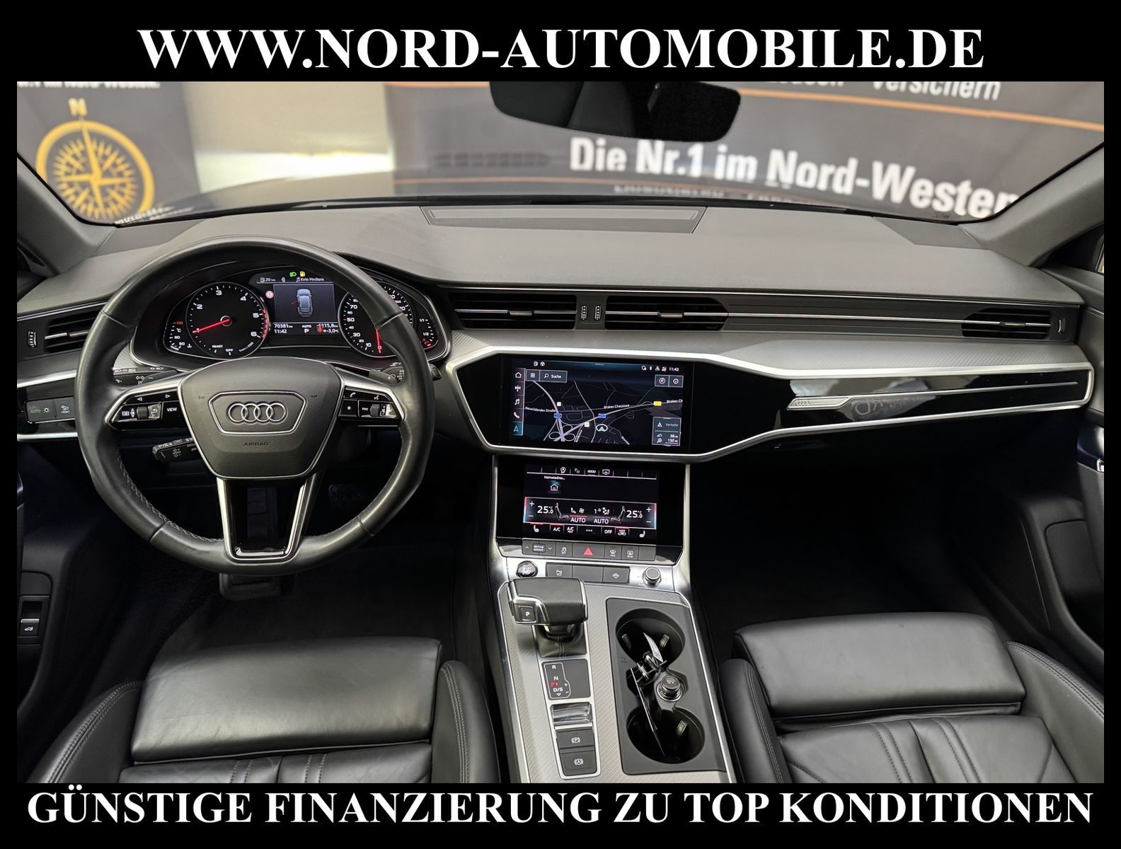 KomfortExtrasUnterhaltungBeschreibungwww.nord-automobile.de Audi A6 Avant sport 2.0 40 electric/TDI 150kW 7-Gang S tronic 4 TürenAnsprechpartner: Jan Feldhus, Jonathan Steinfeld, Tom Bijman, Simon Wolff, Matthis Ullrich* FAHRZEUG-NUMMER: M-7877-BD * LACKIERUNG: Firmamentblau Metallic * Modelljahr:2023 * UPE brutto 76.874 ¤ * Audi Anschlussgarantie bis 06.09.2027 und 100.000KM(unabhängig von der gesetzlichen Sachmangelhaftung) * Deutsche Auslieferung * MMI Navigation Plus mit MMI Touch * Sitzbezug / Polsterung: Leder Valcona * Sitzheizung vorn * Assistenz-Paket Tour * Spurhalteassistent plus Emergency Assist und Stauassistent * Geschwindigkeitsbegrenzungsanlage * Rückfahrkamera * LED Scheinwerfer * Einparkhilfe plus vorn, seitlich und hinten, akustisch und optisch mit Umgebungsanzeige * Bluetooth-Freisprecheinrichtung mit Spracherkennung (Audi Phone Box) * Schließ-/Startsystem Advanced Key (Komfortschlüssel) * City-Notbremsfunktion (Audi pre sense City) * Spurwechselassistent * Komfort-Klimaautomatik 4-Zonen * Radioempfang digital (DAB) * Audi Sound-System * Adaptiver Geschwindigkeitsassistent mit Geschwindigkeitsbegrenzer, Effizienz-, Ausweich- und Abbiegeassistent * Lederlenkrad im 3-Speichen-Design mit Multifunktion plus * Dachhimmel in Stoff schwarz * Vordersitze elektrisch einstellbar inklusive Memory-Funktion für den Fahrersitz * Adaptive Scheibenwischer mit integrierten Waschdüsen * Verglasung hinten abgedunkelt (Privacyverglasung) und Türscheiben vorn Akustikglas * Mittelarmlehne vorn * Sitze vorn elektr. verstellbar (links mit Memory) * Sportsitze vorn * Fernlichtassistent * Fahrwerk mit Dämpferregelung (Magnetic Ride) * Servolenkung * Gepäckraumklappe elektr. betätigt (öffnen + schliessen) * Komfortschlüssel mit sensorgesteuerter Heckklappenentriegelung inkl. (öffnen + schliessen) * Außenspiegel elektr. verstell-, heiz- und anklappbar, mit Abblendautomatik und Memory * Getriebe 7-Gang - Doppelkupplungsgetriebe S-tronic * Audi Drive Select * Reifendruck-Kontrollanzeige * Wegfahrsperre (elektronisch) * Start/Stop-Anlage * Airbag Beifahrerseite abschaltbar * Aluminium-Gussräder im 10-Speichen-Dynamik-Design 8, 5 J x 19 * Nord-Automobile - Ihr starker und kompetenter Partner seit über 30 Jahren * Wir bieten Ihnen eine günstige Finanzierung auch ohne Anzahlung über die * AutoEuropaBank - Zweigniederlassung der Volkswagen Bank GmbH an * 20 XXL-Fotografien dieses Fahrzeuges finden Sie unter www.nord-automobile.de * Gerne unterbreiten wir Ihnen ein Angebot zum Ankauf Ihres bisherigen Fahrzeuges * Beim Export-Geschäft führen wir die Ausfuhranmeldung und Zulassung für Sie durch * Wir sind Meister-Werkstatt und zertifizierte GTÜ-Prüfstelle * Lernen Sie uns kennen - wir freuen uns auf Ihren Besuch * Keine Haftung für Druck & Schreibfehler. ... Klima, Klimaautomatik, Automatik, Leder, Navigationssystem, Sitzheiz. vorn, Vorders. elekt. verstellb., ESP, ABS, Distronic, Parktronic System, Multifunktionslenkr., Soundsystem, Tel. m. Freisprech., Bordcomputer, Spiegel beheizbar, elektr. Fensterheber vorn, elektr. WFS, ZV mit Fernb., Fahrerairb., Beifahrerairb., Leichtmetallfelgen, Nichtraucher, Servolenkung, Sportsitze/Schalensitze, abklappb. Spiegel, Mittelarmlehne, elekt. verstellb. Fahrersitz, Sitzheizung, Schadstoffklasse: Euro 6, Diesel, Frontantrieb, Lederlenkrad, HSN 0588, TSN BSZ, Verbrauch: 4,6/5,4/4,2 l/100 km (komb/inn/auß), CO2: 149 g/km, Feinstaubplakette: 4 - Grün |