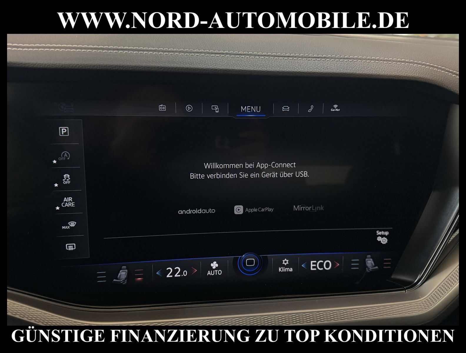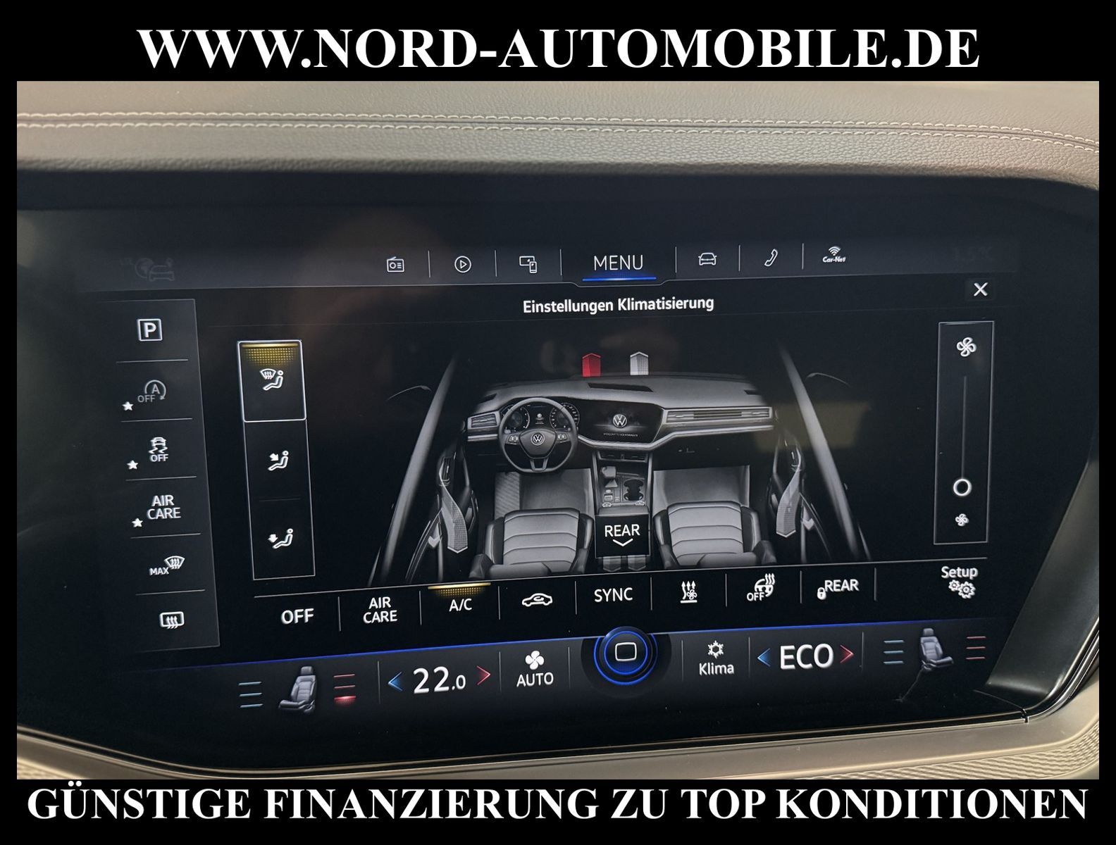 KomfortExtrasUnterhaltungBeschreibungwww.nord-automobile.de Volkswagen Touareg 4Motion 3.0 TDI SCR 210kW 8-Gang Tiptronic 4 TürenAnsprechpartner: Jan Feldhus, Jonathan Steinfeld, Tom Bijman, Simon Wolff, Matthis Ullrich* FAHRZEUG-NUMMER: TEST-22099-BD * LACKIERUNG: Pure White * Modelljahr: 2022 * UPE brutto 82.895 ¤ * Deutsche Auslieferung * Abgasnorm Euro 6d * 4 Corner Luftfederung mit elektrisch geregelter Dämpfung * Spurwechselassistent * Schlüsselloses Schließ- und Startsystem ''Keyless Access'' mit Safe-Sicherung * Spurhalteassistent plus Emergency Assist und Stauassistent * Rückfahrkamera ''Rear View'' * LED Scheinwerfer * Parklenkassistent (Park Assist) und PDC vorn und hinten * Müdigkeitserkennungserkennung * Sitzbelüftung vorn * Mirror Link plus Wireless RSE ''App'' * Sitzbezüge in Leder ''Vienna'' * Active Info Display, mehrfarbig, verschiedene Info-Profile wählbar * Autom. Distanzregelung (ACC inkl. Stop&Go-Funktion) - Geschwindigkeitsbegrenzungsanlage * Navigationsgerät-Premium * Standheizung mit Fernbedienung * Verkehrszeichenerkennung * Anhängerkupplung elektr. anklappbar * Sitzheizung für Vordersitze getrennt regelbar * ''Air Care Climatronic'' mit 4-Zonen-Klimatisierung und Bedienungselementen hinten * Komfort-Paket Keyless Access * Umfeldbeobachtungssystem (Front assist) mit City-Notbremsfunktion * 2 USB-C-Schnittstellen vorn, 1 USB-C-Ladebuchse an der Mittelkonsole hinten * Telefonschnittstelle ''Business'' mit induktiver Ladefunktion * Fernlichtregulierung (Light Assist) * Dekoreinlagen ''Diamond Silver'' für Instrumententafel und Türverkleidungen * Lenkrad heizbar (Leder) mit Multifunktion und Schaltfunktion * Komfortsitze vorn * Lendenwirbelstützen vorn pneumatisch einstellbar * Vordersitze elektrisch einstellbar, Fahrersitz mit längs verschiebbarer Oberschenkelauflage * Rücksitzbank und -lehne asymmetrisch geteilt umklappbar, längs verschiebbar, Lehenneigung einstellbar * Seitenscheiben hinten und Heckscheibe abgedunkelt, zu 65 % lichtabsorbierend * Scheibenwaschdüsen vorn automatisch beheizt * Scheinwerfer-Reinigungsanlage * Kindersitzverankerung für Kindersitzsystem I-Size, 2 x top tether * Airbag für Fahrer und Beifahrer, mit Beifahrerairbag-Deaktivierung * Radioempfang digital (DAB+) * Lenksäule einstellbar * Außenspiegel elektr. verstell-, heiz- und anklappbar * Kopfairbagsystem für Front- und Fondpassagiere inkl. Seitenairbags vorn * Komfortöffnung Heckklappe (Virtuelles Pedal) plus Easy Close * Diebstahlwarnanlage mit Innenraumüberwachung, Back-up-Horn und Abschleppschutz * 8-Gang-Automatikgetriebe für Allrad * Start-Stopp-System mit Bremsenergie-Rückgewinnung * Reifenkontrollanzeige * Dachhimmel in Titanschwarz * 4 Leichtmetallräder ''Montero'' 9 J x 20 * Nord-Automobile - Ihr starker und kompetenter Partner seit über 30 Jahren * Wir bieten Ihnen eine günstige Finanzierung auch ohne Anzahlung über die * AutoEuropaBank - Zweigniederlassung der Volkswagen Bank GmbH an * 20 XXL-Fotografien dieses Fahrzeuges finden Sie unter www.nord-automobile.de * Gerne unterbreiten wir Ihnen ein Angebot zum Ankauf Ihres bisherigen Fahrzeuges * Beim Export-Geschäft führen wir die Ausfuhranmeldung und Zulassung für Sie durch * Wir sind Meister-Werkstatt und zertifizierte GTÜ-Prüfstelle * Lernen Sie uns kennen - wir freuen uns auf Ihren Besuch * Keine Haftung für Druck & Schreibfehler. ... Klima, Klimaautomatik, Automatik, Leder, Navigationssystem, Allrad, Sitzheiz. vorn, Vorders. elekt. verstellb., ESP, ABS, Distronic, Parktronic System, Multifunktionslenkr., Radio, Bordcomputer, Spiegel beheizbar, Scheinwerferreinigung, elektr. Fensterheber vorn, Keyless-Go, ZV mit Fernb., Fahrerairb., Beifahrerairb., Seitenairbag vorn, Kopfairbags, Leichtmetallfelgen, Nichtraucher, Anhaengerk., Sitzbank teilbar, Lenksaeule einstellbar, abklappb. Spiegel, elektr. verstellb. Spiegel, Luftfederung, Mittelarmlehne, elekt. verstellb. Fahrersitz, Standheizung, Sitzheizung, Waermeschutzvergl., Schadstoffklasse: Euro 6, Diesel, 4x4-Antrieb, Lederlenkrad, HSN 0603, TSN COC, Verbrauch: 7,0/8,6/6,1 l/100 km (komb/inn/auß), CO2: 217 g/km, HU + AU wird vor Verkauf erneuert, Feinstaubplakette: 4 - Grün |