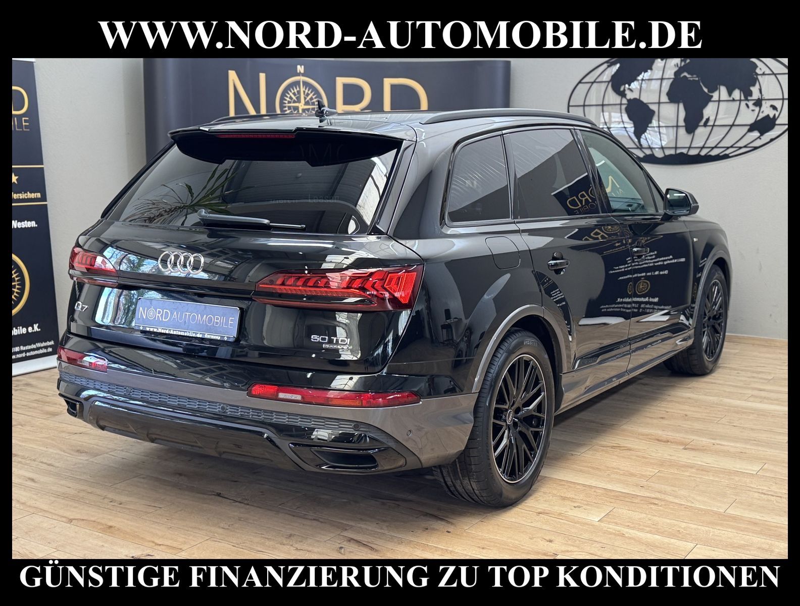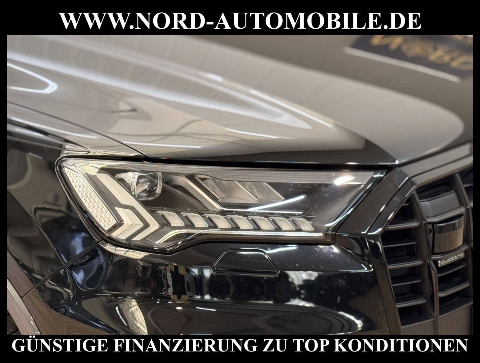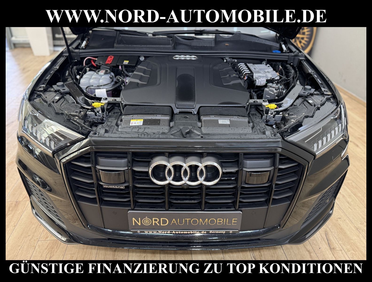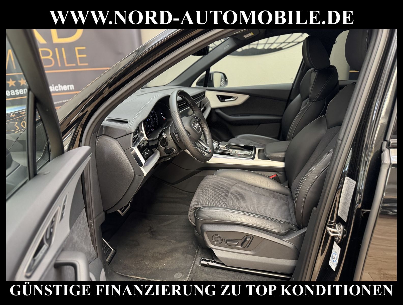 KomfortExtrasUnterhaltungBeschreibungwww.nord-automobile.de Audi Q7 S line quattro 3.0 50 electric/TDI 210kW 8-Gang Tiptronic 4 TürenAnsprechpartner: Jan Feldhus, Jonathan Steinfeld, Tom Bijman, Simon Wolff, Matthis Ullrich* FAHRZEUG-NUMMER: M-0208-BD * LACKIERUNG: Mythosschwarz Metallic * Modelljahr:2023 * Deutsche Auslieferung * S-Line Sportpaket * Optik-Paket schwarz * Sitzheizung vorn * Matrix-LED-Scheinwerfer * Geschwindigkeitsbegrenzungsanlage * Rückfahrkamera * Spurhalteassistent plus Emergency Assist und Stauassistent * Adaptive air suspension sport * Einparkhilfe plus vorn, seitlich und hinten, akustisch und optisch mit Umgebungsanzeige * City-Notbremsfunktion (Audi pre sense City) * Schließ-/Startsystem Advanced Key (Komfortschlüssel) * Bluetooth-Freisprecheinrichtung mit Spracherkennung (Audi Phone Box) * Spurwechselassistent * Radioempfang digital (DAB) * 2-Zonen-Komfortklimaautomatik * Audi Sound-System * Adaptiver Geschwindigkeitsassistent mit Geschwindigkeitsbegrenzer, Effizienz-, Ausweich- und Abbiegeassistent * Kombiinstrument digital (virtual cockpit plus) * Sitzbezüge in Teilleder * Dachhimmel in Stoff schwarz * Vordersitze elektrisch einstellbar inklusive Memory-Funktion für den Fahrersitz * Lederlenkrad im 3-Speichen-Design mit Multifunktion plus und Lenkradheizung * Rücksitzlehne geteilt umklappbar, mit Lehnenneigungseinstellung * Verglasung hinten abgedunkelt (Privacyverglasung) und Türscheiben vorn Akustikglas * Sitze vorn elektr. verstellbar (links mit Memory) * LED-Heckleuchten mit dynamischem Blinklicht * Sportsitze vorn * Servolenkung * Gepäckraumklappe elektr. betätigt (öffnen + schliessen) * Pedalerie und Fußstütze in Edelstahl * Komfortschlüssel mit sensorgesteuerter Heckklappenentriegelung inkl. (öffnen + schliessen) * Außenspiegel elektr. verstell-, heiz- und anklappbar, mit Abblendautomatik und Memory * Airbag Beifahrerseite abschaltbar * Reifendruck-Kontrollanzeige * Wegfahrsperre (elektronisch) * Start/Stop-Anlage * Audi Drive Select * Räder Audi Sport, 10-Y-Speichen, schwarz, glanzgedreht, 9, 0Jx20, Reifen 285/45 R20 * Nord-Automobile - Ihr starker und kompetenter Partner seit über 30 Jahren * Wir bieten Ihnen eine günstige Finanzierung auch ohne Anzahlung über die * AutoEuropaBank - Zweigniederlassung der Volkswagen Bank GmbH an * 20 XXL-Fotografien dieses Fahrzeuges finden Sie unter www.nord-automobile.de * Gerne unterbreiten wir Ihnen ein Angebot zum Ankauf Ihres bisherigen Fahrzeuges * Beim Export-Geschäft führen wir die Ausfuhranmeldung und Zulassung für Sie durch * Wir sind Meister-Werkstatt und zertifizierte GTÜ-Prüfstelle * Lernen Sie uns kennen - wir freuen uns auf Ihren Besuch * Keine Haftung für Druck & Schreibfehler. ... Klima, Klimaautomatik, Automatik, Navigationssystem, Allrad, Sitzheiz. vorn, Vorders. elekt. verstellb., ESP, ABS, Distronic, Parktronic System, Multifunktionslenkr., Soundsystem, Tel. m. Freisprech., Bordcomputer, Spiegel beheizbar, elektr. Fensterheber vorn, elektr. WFS, ZV mit Fernb., Fahrerairb., Beifahrerairb., Leichtmetallfelgen, Nichtraucher, Servolenkung, Sportsitze/Schalensitze, abklappb. Spiegel, Luftfederung, elekt. verstellb. Fahrersitz, Sitzheizung, aus erster Hand, Schadstoffklasse: Euro 6, Diesel, 4x4-Antrieb, Lederlenkrad, HSN 0588, TSN BNK, CO2: 206 g/km, HU + AU wird vor Verkauf erneuert, Feinstaubplakette: 4 - Grün |