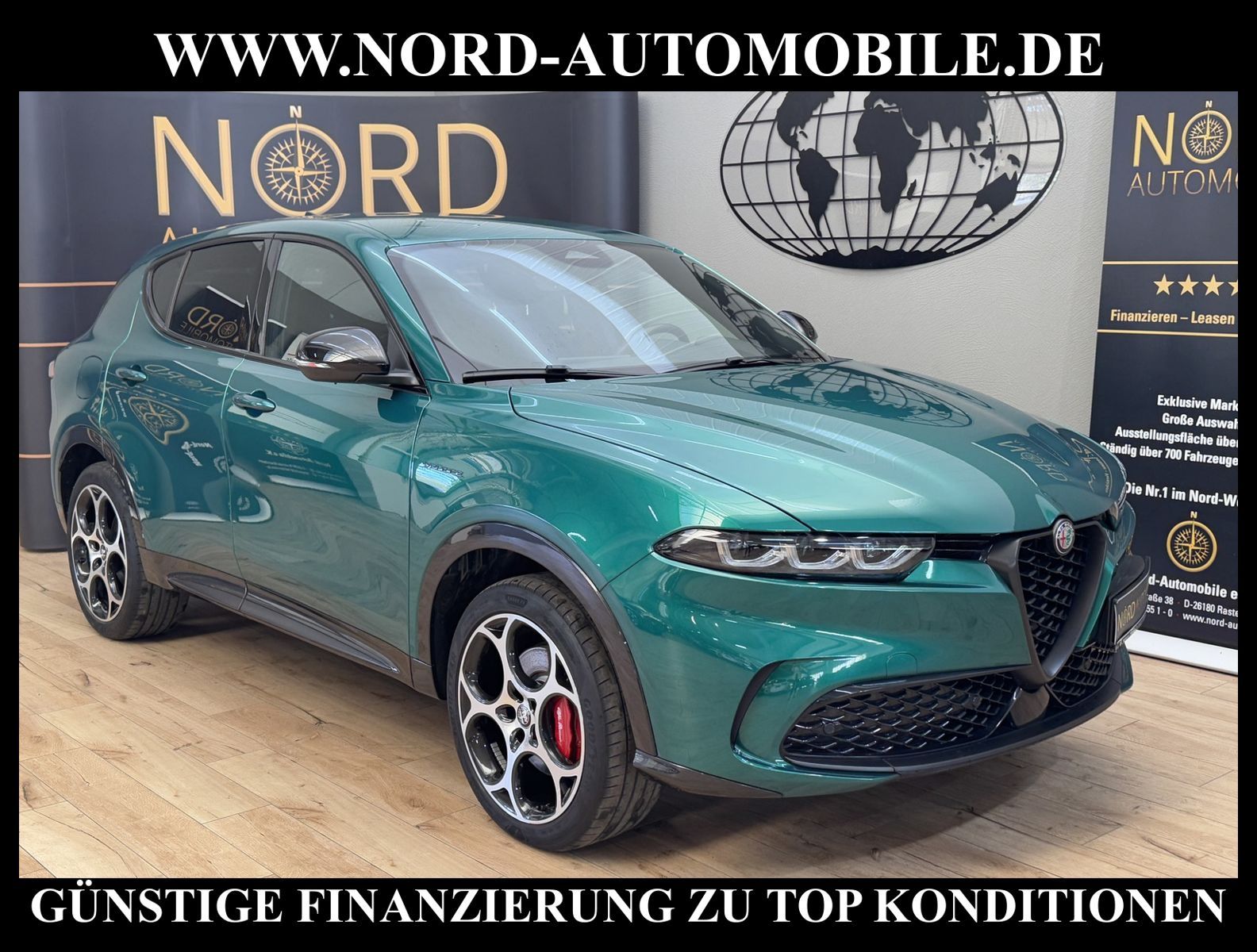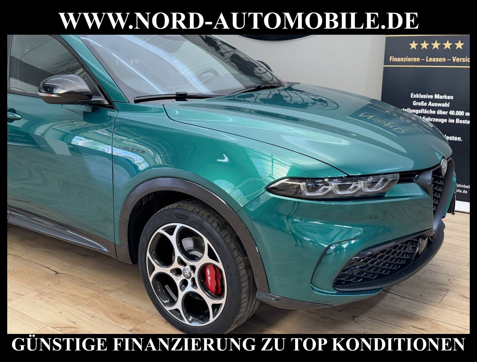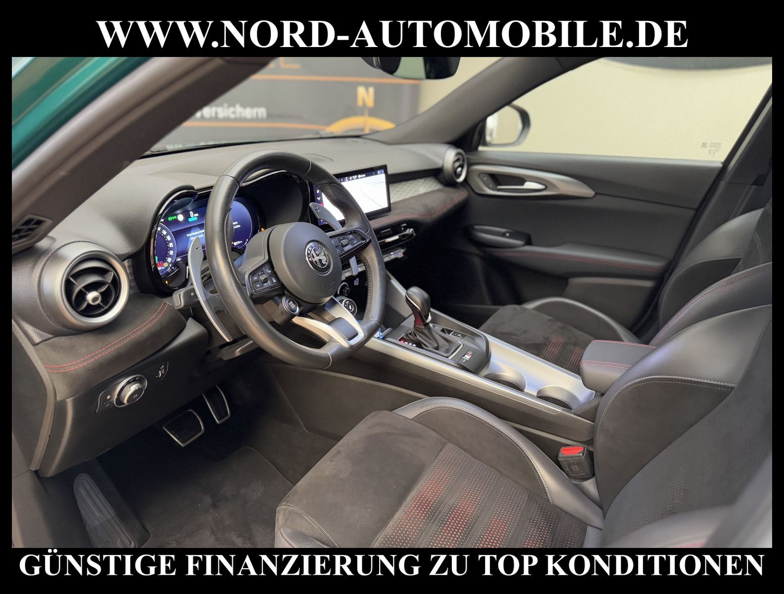 ALFA ROMEO TONALE VELOCE 1.3 PLUG-IN HYBRID Q-TRONIC AWDAnsprechpartner: Jan Feldhus, Jonathan Steinfeld, Tom Bijman, Simon Wolff, Matthis Ullrich* FAHRZEUG-NUMMER: MW-3713 * LACKIERUNG: Sonderlackierung Verde Montreal Metallic * Abgaskonzept, Euro6d temp * ehem.UPE: 58.500, - * Allradantrieb AWD * Hybrid 206 kW (Motor 1, 3 Ltr. - 132 kW) * Winterpaket * Instrumentenanzeige TFT-Farbdisplay (12, 3 Zoll) * Navigationssystem inkl. Bluetooth-Freisprecheinrichtung * Verkehrszeichenerkennung (TSR) * Radioempfang Digital (DAB) * USB-Anschlüsse (Typ C und Typ A) * Touchscreen-Farbdisplay (10, 25 Zoll) * Service-System: Alfa Romeo Connect Services * Service-System: Amazon Alexa * Smartphone Schnittstelle (Apple CarPlay & Android Auto) * Induktionsladeschale für Smartphone * 2-Zonen Klimaautomatik * Sitzbezug / Polsterung: Alcantara / Leder * Sitzheizung für Vordersitze getrennt regelbar * Matrix-LED-Scheinwerfer (Adaptives Scheinwerferlicht) mit LED-Tagfahrlicht * Fernlichtassistent * intelligente adaptive Geschwindigkeitsregelanlage (Intelligent Adaptive Cruise Control / I-ACC) * intelligente Geschwindigkeitskontrolle (ISC) * LM-Felgen 8x19 (Veloce, glanzgedreht) * Fahrmodusschalter * Fahrwerk Aktiv mit elektronischer Stoßdämpferregelung (Active Suspension) * Fahrwerksdämpfung elektronisch geregelt (Dynamic Suspension) * Alfa Romeo D.N.A.-Fahrdynamik-System * Bremsanlage: Brembo * Bremssättel Rot lackiert * Einparkhilfe elektronisch vorn und hinten * Rückfahrkamera * Keyless-Entry * Multifunktions-Sportlederlenkrad * Heckklappe/-Deckel elektrisch betätigt (öffnen + schliessen, sensorgesteuert) * Spurhalteassistent (LaneDeparture Warning) * Spurverlassenswarnung (LDW) * Ambiente-Beleuchtung LED * Seitenscheiben hinten und Heckscheibe abgedunkelt * Sitze vorn mechanisch verstellbar (6-fach) * Lendenwirbelstütze Sitz vorn links, elektrisch verstellbar * Mittelarmlehne * Rücksitz geteilt / klappbar (Asymmetrisch) * Licht- und Regensensor * Außenspiegel elektrisch anklappbar, verstell- und heizbar * Kindersitzverankerung für Kindersitzsystem ISO FIX * Fensterheber elektrisch vorn + hinten * Zentralverriegelung mit Fernbedienung * Airbag Beifahrerseite abschaltbar * Airbag Fahrer-/Beifahrerseite * Kopf-Airbag-System * Seitenairbag * ESP / VDC Vehicle Dynamic Control * Frontkollisionswarnung (FCW) * Bremsassistent (HBA / EBA) * elektron. Stabilitätskontrolle (ESC) * Kurvenbremskontrolle (CBC / ESBS) * autonomer Notbrems-Assistent (AEB) * Reifendruckkontrolle * Start/Stopp-Anlage mit Rekuperation * Getriebe Automatik - mit QTRONIC (6-Stufen) * Nord-Automobile - Ihr starker und kompetenter Partner seit über 20 Jahren * Wir bieten Ihnen eine günstige Finanzierung auch ohne Anzahlung über die * AutoEuropaBank - Zweigniederlassung der Volkswagen Bank GmbH an * 20 XXL-Fotografien dieses Fahrzeuges finden Sie unter www.nord-automobile.de * Gerne unterbreiten wir Ihnen ein Angebot zum Ankauf Ihres bisherigen Fahrzeuges * Beim Export-Geschäft führen wir die Ausfuhranmeldung und Zulassung für Sie durch * Wir sind Meister-Werkstatt und zertifizierte DEKRA-Prüfstelle * Lernen Sie uns kennen - wir freuen uns auf Ihren Besuch * Keine Haftung für Druck & Schreibfehler. ... Klima, Klimaautomatik, Automatik, Leder, Navigationssystem, Allrad, Sitzheiz. vorn, Regensensor, ESP, ASR, ABS, Distronic, Parktronic System, Multifunktionslenkr., CD-Wechsler, CD, Radio, Bordcomputer, Tempomat, Spiegel autom. abblendbar, elektr. Fensterheber vorn+hinten, elektr. WFS, ZV mit Fernb., Fahrerairb., Beifahrerairb., Seitenairbag vorn, Kopfairbags, Leichtmetallfelgen, elektr. Fahrwerksregelung, Nichtraucher, Servolenkung, Spoiler, Sperrdiff., Traktionskontr., Sitzbank teilbar, Lenksaeule einstellbar, elektr. verstellb. Spiegel, Scheibenbr., Mittelarmlehne, Lendenwirbelst., Sitzheizung Fahrer + Beif., Lichtsensor, 12 V Zusatzanschluss, aus erster Hand, 4x4-Antrieb, Lederlenkrad, HSN 1742, TSN ACM, Partikelfilter |