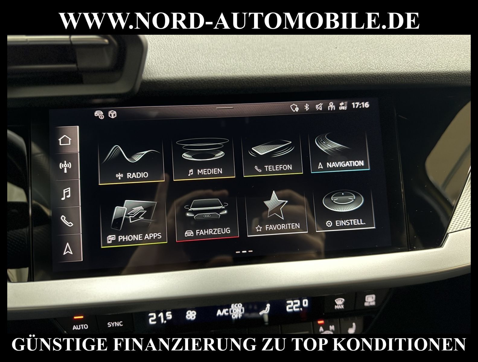 KomfortExtrasUnterhaltungBeschreibungwww.nord-automobile.de Audi A3 Sportback advanced 1.0 30 TFSI 81kW 6-Gang 4 TürenAnsprechpartner: Jan Feldhus, Jonathan Steinfeld, Tom Bijman, Simon Wolff, Matthis Ullrich* FAHRZEUG-NUMMER: M-9936 * LACKIERUNG: Pythongelb Metallic * Modelljahr:2023 * Audi Anschlussgarantie bis 01.03.2028 und 100.000KM(unabhängig von der gesetzlichen Sachmangelhaftung) * Deutsche Auslieferung * S-Line Sportpaket * MMI Navigation Plus mit MMI Touch * Optik-Paket schwarz * Sitzheizung vorn * Kombiinstrument digital (virtual cockpit plus) * Geschwindigkeitsbegrenzungsanlage * LED-Scheinwerfer * Einparkhilfe hinten (APS) * Bluetooth-Freisprecheinrichtung mit Spracherkennung (Audi Phone Box) * Radioempfang digital (DAB) * Ausweichassistent und Abbiegeassistent * Schließ-/Startsystem Advanced Key (Komfortschlüssel * Sitzbezug / Polsterung: Leder Feinnappa * Audi Sound-System * Klimaautomatik * Dachhimmel in Stoff schwarz * Scheibenwischer mit Regensensor * Verglasung hinten abgedunkelt (Privacyverglasung) und Türscheiben vorn Akustikglas * Mittelarmlehne vorn * Sportkontur-Lederlenkrad im 3-Speichen-Design unten abgeflacht mit Multifunktion plus * Sportsitze vorn * Fernlichtassistent * Airbag Beifahrerseite abschaltbar * 6-Gang Schaltgetriebe * Wegfahrsperre (elektronisch) * Reifendruck-Kontrollanzeige * Start-Stop-System mit Rekuperation * Pedalerie und Fußstütze in Edelstahl * Gepäckraumklappe elektr. betätigt (öffnen + schliessen * Außenspiegel elektr. verstell- und heizbar, beide * Leichtmetallräder, 5-Y-Speichen, graphitgrau, glanzgedreht, 8, 0Jx18, Reifen 225/40 R18 * Nord-Automobile - Ihr starker und kompetenter Partner seit über 30 Jahren * Wir bieten Ihnen eine günstige Finanzierung auch ohne Anzahlung über die * AutoEuropaBank - Zweigniederlassung der Volkswagen Bank GmbH an * 20 XXL-Fotografien dieses Fahrzeuges finden Sie unter www.nord-automobile.de * Gerne unterbreiten wir Ihnen ein Angebot zum Ankauf Ihres bisherigen Fahrzeuges * Beim Export-Geschäft führen wir die Ausfuhranmeldung und Zulassung für Sie durch * Wir sind Meister-Werkstatt und zertifizierte GTÜ-Prüfstelle * Lernen Sie uns kennen - wir freuen uns auf Ihren Besuch * Keine Haftung für Druck & Schreibfehler. ... Klima, Klimaautomatik, Leder, Navigationssystem, Sitzheiz. vorn, Regensensor, ESP, ABS, Multifunktionslenkr., Soundsystem, Tel. m. Freisprech., Bordcomputer, Spiegel beheizbar, elektr. Fensterheber vorn, elektr. WFS, ZV mit Fernb., Fahrerairb., Beifahrerairb., Leichtmetallfelgen, Nichtraucher, Sportsitze/Schalensitze, elektr. verstellb. Spiegel, Mittelarmlehne, Sitzheizung, aus erster Hand, Schadstoffklasse: Euro 6, Frontantrieb, Lederlenkrad, HSN 0588, TSN BUB, HU + AU wird vor Verkauf erneuert, Feinstaubplakette: 4 - Grün |