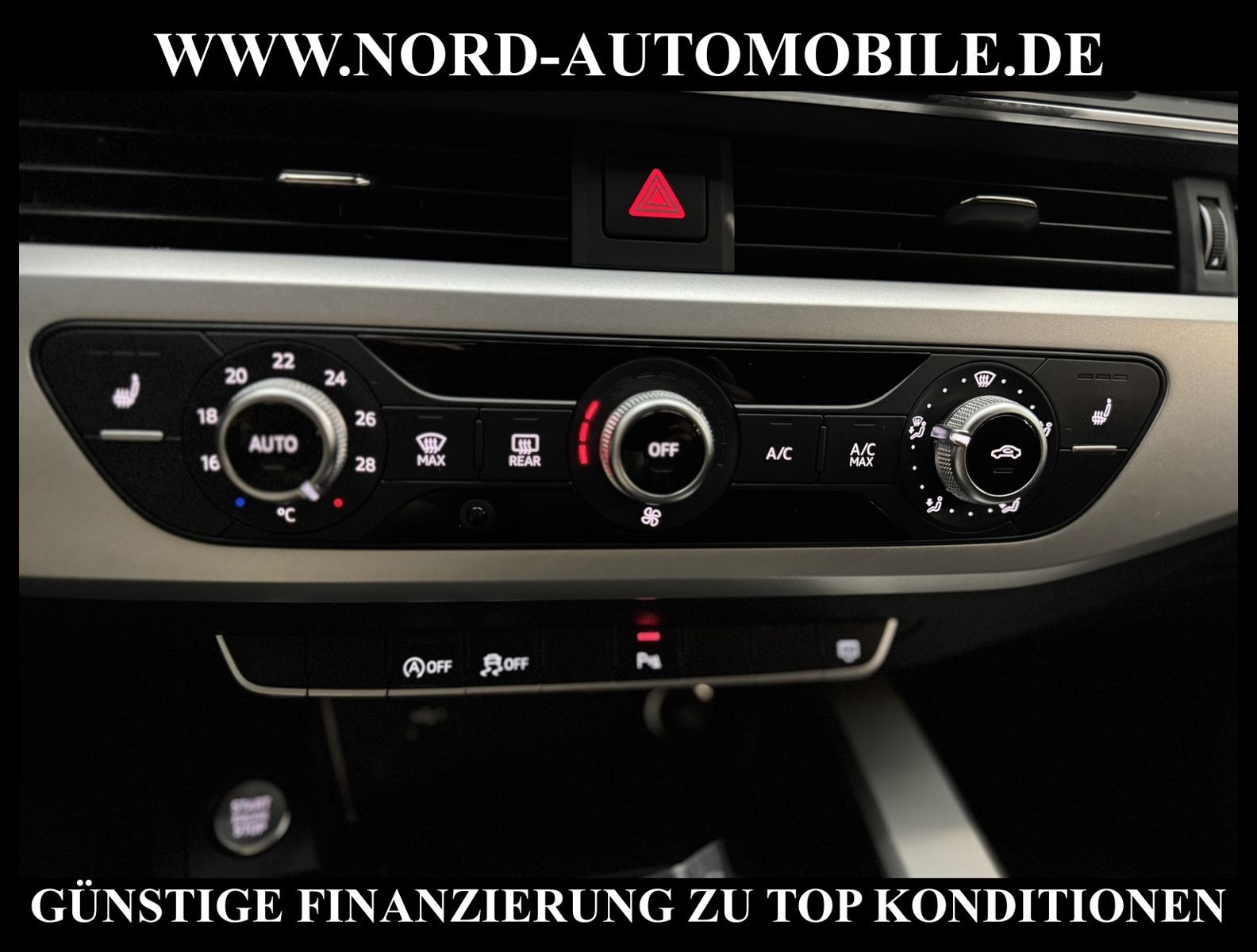 KomfortExtrasUnterhaltungBeschreibungwww.nord-automobile.de AUDI A4 AvantAnsprechpartner:Jan Feldhus, Jonathan Steinfeld, Tom Bijman, Simon Wolff, Matthis Ullrich* FAHRZEUG-NUMMER: M-9693-BD * LACKIERUNG:Mythosschwarz Metallic * Deutsche Auslieferung * Mdelljahr:2022 * UPE brutto 45.261 ¤ * Abgaskonzept, EU6 AP * Audi Smartphone Interface * Einparkhilfe plus * Sonnenschutzrollo für Seitenscheiben hinten * Sitzheizung für Vordersitze getrennt regelbar * Navigationsgerät-High * Telefonvorbereitung für Handy * Digitaler Radioempfang * Einparkhilfe vorn und hinten * Multifunktionsanzeige/Bordcomputer''TOP'' * Geschwindigkeitsregelanlage plus Speed-Limiter * LED-Scheinwerfer * Komfortschlüssel inkl. sensorgesteuerterGepäckraumentriegelung inkl. Gepäckraum-klappe elektrisch öffnend und schließend * Ledersportmultifunktionslenkrad * Höheneinstellung, manuell, für Vordersitze * Rücksitzbank ungeteilt, Lehne geteilt umlegbar (dreiteilig) mit Mittelarmlehne * Zentralverriegelung ''Keyless-Entry''ohne Safesicherung * Servoschließung Heckklappe * Glas im Fond dunkel eingefärbt(Venus 35/ Privacy)vorn Wärmeschutzglas (grün) * Fernlichtassistent * Sicherheitsinnenspiegel automatisch abblendbar * Airbag FS und BFS, ohne Knieairbag, mit BFS-Deaktivierung * Außenspiegel, automatisch abblendbar elektrisch anklapp-/einstell-/beheizbar * Reifendruckkontrolle * Start/Stopp-Anlage mit Rekuperation * Leichtmetallräder 7 1/2J x17 * 7-Gang-Automatikgetriebe * Nord-Automobile - Ihr starker und kompetenter Partner seit über 30 Jahren * Wir bieten Ihnen eine günstige Finanzierung auch ohne Anzahlung über die * AutoEuropaBank - Zweigniederlassung der Volkswagen Bank GmbH an * 20 XXL-Fotografien dieses Fahrzeuges finden Sie unter www.nord-automobile.de * Gerne unterbreiten wir Ihnen ein Angebot zum Ankauf Ihres bisherigen Fahrzeuges * Beim Export-Geschäft führen wir die Ausfuhranmeldung und Zulassung für Sie durch * Wir sind Meister-Werkstatt und zertifizierte GTÜ-Prüfstelle * Lernen Sie uns kennen - wir freuen uns auf Ihren Besuch * Keine Haftung für Druck & Schreibfehler. ... Klima, Klimaautomatik, Automatik, Navigationssystem, Sitzheiz. vorn, Regensensor, ESP, ABS, Parktronic System, Multifunktionslenkr., Radio, Bordcomputer, Tempomat, Spiegel autom. abblendbar, Spiegel beheizbar, elektr. Fensterheber vorn, elektr. WFS, Keyless-Go, Beifahrerairb., Seitenairbag vorn, Kopfairbags, Leichtmetallfelgen, Nichtraucher, Servolenkung, Sitzbank teilbar, Dachreling, abklappb. Spiegel, elektr. verstellb. Spiegel, Kopfst. vorn, Mittelarmlehne, Sitzheizung Fahrer + Beif., Lichtsensor, Waermeschutzvergl., aus erster Hand, Schadstoffklasse: Euro 6, Frontantrieb, Lederlenkrad, HSN 0588, TSN BNW, Verbrauch: 6,0/7,5/5,1 l/100 km (komb/inn/auß), CO2: 145 g/km, Partikelfilter, Feinstaubplakette: 4 - Grün |