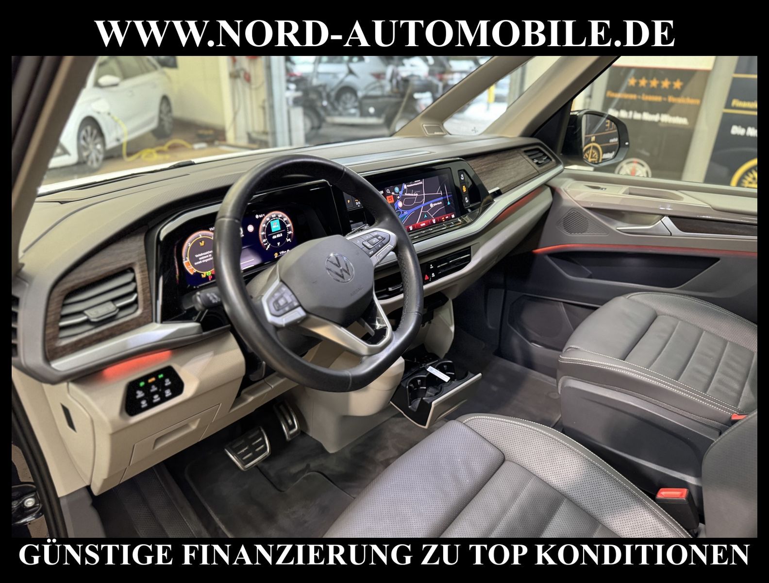 T7 MULTIVAN STYLE LANG 2.0 TDI DSG 7-SITZERAnsprechpartner: Jan Feldhus, Jonathan Steinfeld, Tom Bijman, Simon Wolff, Matthias Ullrich* FAHRZEUG-NUMMER: MW-3871-BD * LACKIERUNG: candyweiß / starlight metallic * deutsche Ausführung * Abgaskonzept WLTP3 M1, N1-I//EU6EA * ehem.UPE: 97.797, - * VW Anschlussgarantie 3 Jahre, max.150.000 km (unabhängig der gesetzlichen Sachmängelhaftung) * Ausführung LANG * Anhängevorrichtung anklappbar, mit elektrischer Entriegelung (einschließlich Gespannstabilisierung) * 7-Sitzer mit 4 Armlehnen beidseitig sowie 2 Klapptischen an 2.SR * Assistenzpaket Advanced * Business-Paket * Digital Cockpit Pro * Head-up-Display * Navigationssystem Discover PRO mit 25, 4 cm (10'') Touch-Farbdisplay inklusive ''Streaming & Internet'' * HARMAN-KARDON Sound-System (13 Lautsprecher, 840 Watt Gesamtleistung, Verstärker und Subwoofer) * Verkehrszeichenerkennung * Sprachassistent IDA und elektronische Sprachverstärkung * Digitaler Radioempfang (DAB+) * Intelligente Fahrzeugvernetzung (Car2X) * App-Connect Wireless für Apple CarPlay und Android Auto * Mobiltelefon-Schnittstelle * 2 USB-C-Schnittstellen vorn, 4 USB-C-Ladebuchsen im Fahrgastraum * 3-Zonen Klimaanlage ''Air Care Climatronic'' mit zusätzlichem Bedienteil im Fahrgastraum * Standheizung (als Wasser-Zusatzheizung) mit Funkfernbedienung * Bi-Color Sitzbezüge, Sitzmittelbahnen in Leder Savona perforiert, Sitzwangen in Glattlederoptik * Vordersitze mit aktiver Sitzbelüftung * Sitzheizung für beide Sitze im Fahrerhaus * Sitzheizung die äußeren Sitze des Fahrgastraums * IQ.LIGHT-LED-Matrix-Scheinwerfer mit LED-Tagfahrlicht * dynamische Fernlichtregulierung ''Dynamic Light Assist'' * Leuchtweitenregulierung, dynamisch, mit dynamischem Kurvenfahrlicht * LED-Rückleuchten * Leiste zwischen den Scheinwerfern hinterleuchtet * Leichtmetallräder ''Halmstad'' 8J x 19, in Schwarz, Oberfläche glanzgedreht * adaptive Fahrwerksregelung DCC mit Dynamikfahrwerk inklusive Tieferlegung um ca. 20 mm * Fahrprofilauswahl für DCC * autom. Distanzregelung (ACC inkl.Stop&Go-Funktion) * Parklenkassistent ''Park Assist'' und Einparkhilfe im Front- und Heckbereich * Rückfahrkamera ''Rear View'' * heizbares Multifunktions-Lederlenkrad mit Schaltwippen * Multifunktionstisch/Mittelkonsole mit 3 Becherhaltern, im ganzen Fahrzeug verschiebbar * Spurhalteassistent (Lane Assist) mit Travel Assist und Emergency Assist * Spurwechselassistent (Side Assist)inkl.''Blind Spot Detection'', mit Auspark-Assistent und Ausstiegswarnung * Ausweichunterstützung und Abbiegeassistent * Frontscheibe in Verbundsicherheitsglas, wärme- und geräuschdämmend, beheizbar * Scheiben im Fond abgedunkelt * Diebstahl-Alarmanlage mit Innenraumüberwachung * Schiebetür links und rechts elektrisch * Schiebefenster in der Schiebetür links und rechts * Servoschließung der Heckklappe mit Entriegelungsfunktion von innen * AGR ErgoComfort Sitze vorne, elektrisch verstellbar, Memory- & Massagefunktion für Fahrer * Armlehnen für Fahrer- und Beifahrersitz, beidseitig, mit elektrischer Lendenwirbelstütze und Klapptisch * Ablenkungs- und Müdigkeitserkennung * Schubladen unter den äußeren Sitzen im Fahrgastraum * Ambientebeleuchtung 30-farbig * Umfeldbeleuchtung an der Heckklappe * Umfeldbeleuchtung im Türbereich * Bordcomputer * Zentralverriegelung mit Fernbedienung und Keyless-Start * Fensterheber elektrisch vorn + hinten * Außenspiegel elektrisch anklappbar, einstell- und beheizbar * Außenspiegelgehäuse in schwarz hochglanz * Scheibenwischer mit Licht/Regensensor * Schlechtwetterlicht (inklusive Abbiegelicht) * Isofix-Aufnahmen für Kindersitz * Airbag Fahrer-/Beifahrerseite * Airbag Beifahrerseite abschaltbar * Seiten- und Kopfairbag für Fahrer und Beifahrer * Kopfairbags für die äußeren Sitzplätze hinten und Mittenairbag vorn * Insassen-Schutzsystem proaktiv * Notbremsassistent ''Front Assist'' mit Fußgänger- und Radfahrererkennung * Notrufsystem eCall * Reifendruckkontrolle * Start/Stopp-Anlage mit Rekuperation * 7-Gang-Doppelkupplungsgetriebe DSG * Nord-Automobile - Ihr starker und kompetenter Partner seit über 20 Jahren * Wir bieten Ihnen eine günstige Finanzierung auch ohne Anzahlung über die * AutoEuropaBank - Zweigniederlassung der Volkswagen Bank GmbH an * 20 XXL-Fotografien dieses Fahrzeuges finden Sie unter www.nord-automobile.de * Gerne unterbreiten wir Ihnen ein Angebot zum Ankauf Ihres bisherigen Fahrzeuges * Beim Export-Geschäft führen wir die Ausfuhranmeldung und Zulassung für Sie durch * Wir sind Meister-Werkstatt und zertifizierte DEKRA-Prüfstelle * **Lernen Sie uns kennen - wir freu |