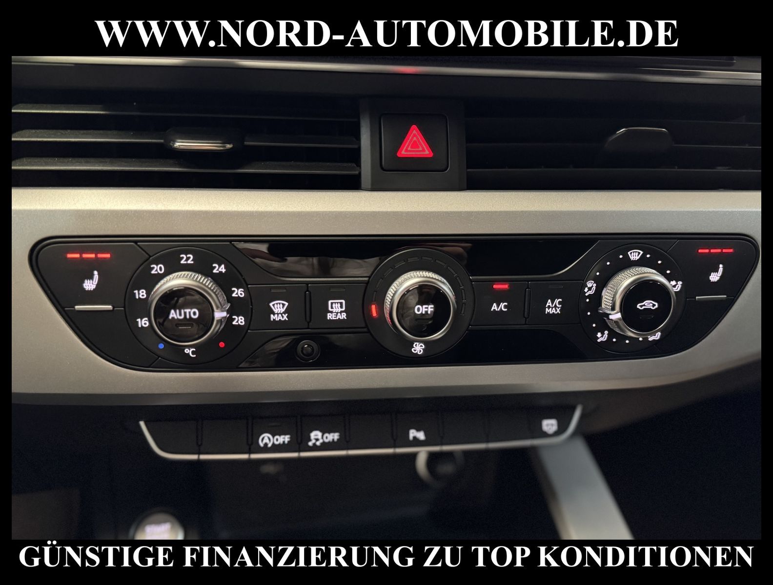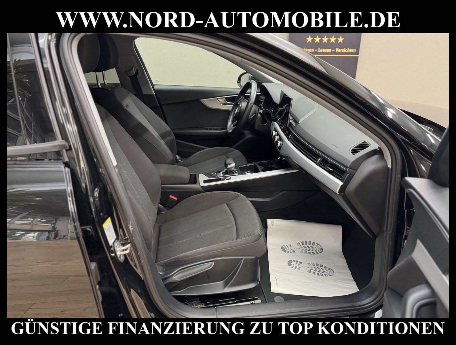 KomfortExtrasUnterhaltungBeschreibungwww.nord-automobile.de Audi A4 Avant 2.0 35 electric/TFSI 110kW 7-Gang S tronic 4 TürenAnsprechpartner: Jan Feldhus, Jonathan Steinfeld, Tom Bijman, Simon Wolff, Matthis Ullrich* FAHRZEUG-NUMMER: M-5926-BD * LACKIERUNG: Mythosschwarz Metallic * Modelljahr:2022 * UPE brutto 45.261 ¤ * Deutsche Auslieferung * MMI Navigation Plus mit MMI Touch * Sitzheizung vorn * Einparkhilfe vorn und hinten * LED-Scheinwerfer * Audi Smartphone Interface * City-Notbremsfunktion (Audi pre sense City) * Schließ-/Startsystem Advanced Key (Komfortschlüssel) * Radioempfang digital (DAB) * Geschwindigkeits-Regelanlage (Tempomat) * Sonnenschutzrollo manuell für die Türscheiben hinten * Klimaautomatik * Lederlenkrad im 3-Speichen-Design mit Multifunktion plus * Verglasung hinten abgedunkelt (Privacyverglasung) und Türscheiben vorn Akustikglas * Fernlichtassistent * Außenspiegel elektr. verstell-, heiz- und anklappbar, mit Abblendautomatik und Bordsteinautomatik * Servolenkung * Airbag Beifahrerseite abschaltbar * Start/Stop-Anlage * Wegfahrsperre (elektronisch) * Reifendruck-Kontrollanzeige * Gepäckraumklappe elektr. betätigt (öffnen + schliessen) * Getriebe 7-Gang - Doppelkupplungsgetriebe S-tronic * Komfortschlüssel mit sensorgesteuerter Heckklappenentriegelung inkl. (öffnen + schliessen) * Aluminium-Schmiederäder im 10-Speichen-Design, Größe 7, 5 J x 17 mit Reifen 225/50 R 17 * Nord-Automobile - Ihr starker und kompetenter Partner seit über 30 Jahren * Wir bieten Ihnen eine günstige Finanzierung auch ohne Anzahlung über die * AutoEuropaBank - Zweigniederlassung der Volkswagen Bank GmbH an * 20 XXL-Fotografien dieses Fahrzeuges finden Sie unter www.nord-automobile.de * Gerne unterbreiten wir Ihnen ein Angebot zum Ankauf Ihres bisherigen Fahrzeuges * Beim Export-Geschäft führen wir die Ausfuhranmeldung und Zulassung für Sie durch * Wir sind Meister-Werkstatt und zertifizierte GTÜ-Prüfstelle * Lernen Sie uns kennen - wir freuen uns auf Ihren Besuch * Keine Haftung für Druck & Schreibfehler. ... Klima, Klimaautomatik, Automatik, Navigationssystem, Sitzheiz. vorn, ESP, ABS, Multifunktionslenkr., Bordcomputer, Tempomat, Spiegel beheizbar, elektr. Fensterheber vorn, elektr. WFS, ZV mit Fernb., Fahrerairb., Beifahrerairb., Leichtmetallfelgen, Nichtraucher, Servolenkung, abklappb. Spiegel, Sitzheizung, aus erster Hand, Schadstoffklasse: Euro 6, Frontantrieb, Lederlenkrad, HSN 0588, TSN BNW, Verbrauch: 5,9/7,3/5,1 l/100 km (komb/inn/auß), CO2: 145 g/km, Feinstaubplakette: 4 - Grün |