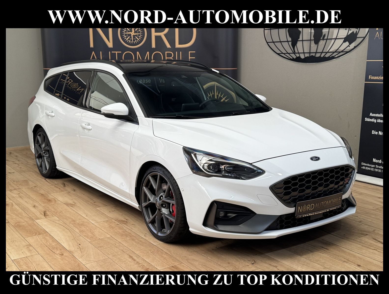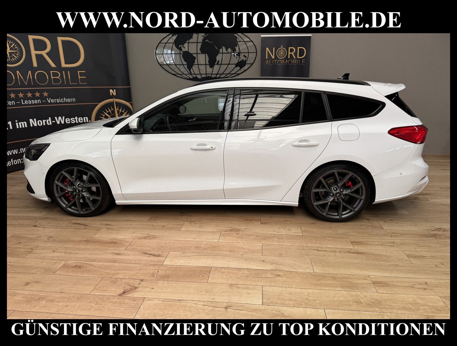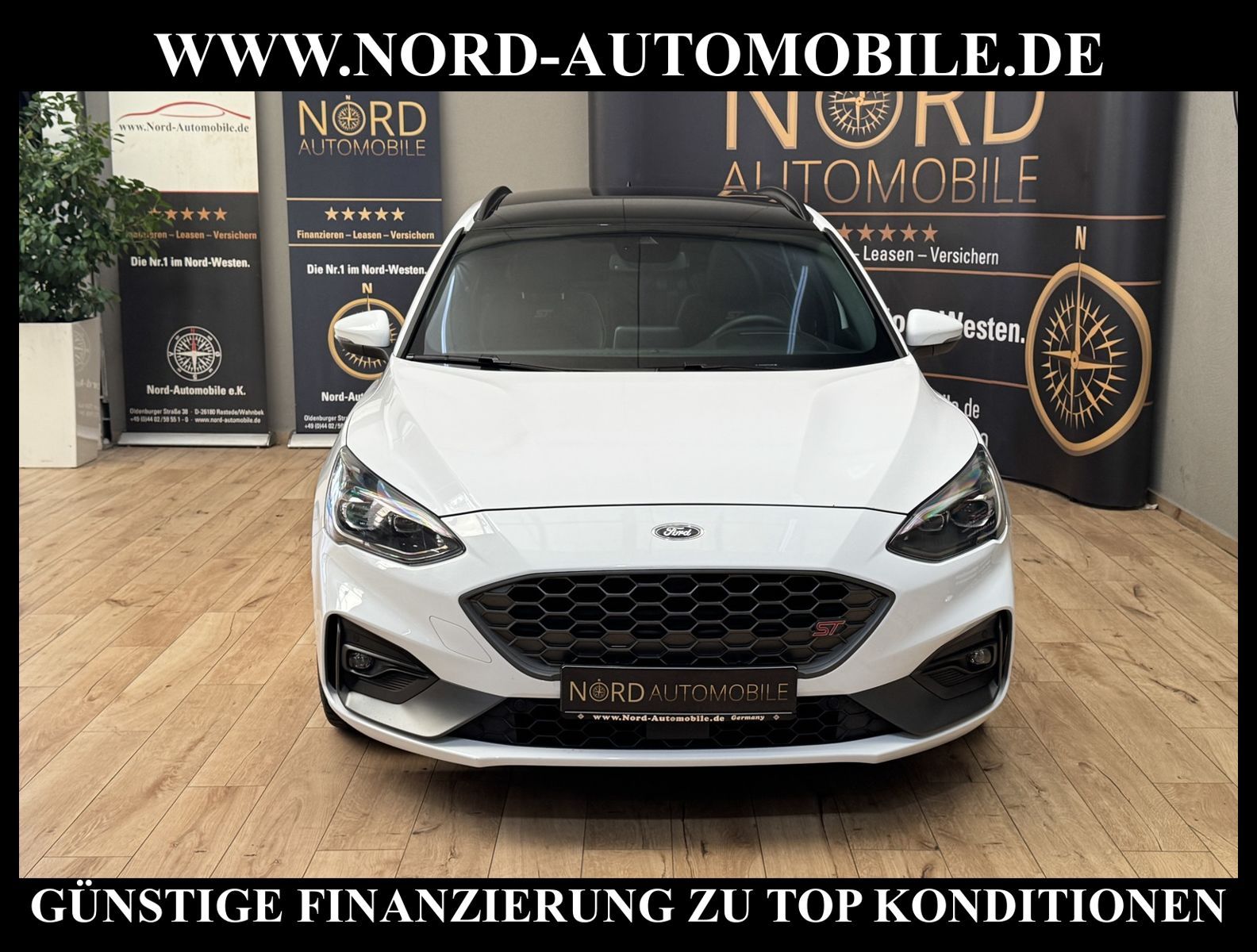 FORD FOCUS TURNIER 2.0 ECOBLUE ST Ansprechpartner:Jan Feldhus, Jonathan Steinfeld, Tom Bijman, Simon Wolff, Matthis Ullrich, Andreas Cirja* FAHRZEUG-NUMMER: MD-9806-BD * LACKIERUNG: Frost-Weiß * Deutsche Auslieferung * 1.Hand * Schadstoffarm nach Abgasnorm Euro 6d * UPE brutto 45.620, - * Matrix-LED-Scheinwerfer * Performance-Paket * Recaro-Sportsitze vorn * ST-Body-Styling-Kit * Panorama-Schiebedach elektrisch * Head-up-Display * B&O Sound System * Panorama-Schiebedach elektrisch * Technologie-Paket 2 * Adaptive Geschwindigkeistregelanlage ACC * Spurhalteassistent * Toter-Winkel-Erkennung 2 * Easy-Parking-Paket * Rückfahrkamera * Parkpilotsystem vorne und hinten * Virtual Cockpit (Volldigitales Kombiinstrument) * Induktionsladeschale für mobile Endgeräte * Kofferraumdeckel / Heckklappe elektrisch betätigt (Öffnung, sensorgesteuert) * Sonderlackierung Frost-Weiß * Verglasung hinten abgedunkelt (Privacy Glass) * Klimaautomatik 2-Zonen * Sitze vorne elektrisch verstellbar * Winter-Paket * Sitzheizung vorne * Lenkrad heizbar * Frontscheibe heizbar * Digitaler Radioempfang DAB+ * Geschwindigkeitsschildererkennung * Antischlupfregelung (ASR) * Audio-Navigationssystem Ford mit AppLink * Außenspiegel elektrisch anklappbar * Außenspiegel elektrisch verstell- und heizbar * Blinkleuchte in Außenspiegel integriert * Body-Styling-Paket * Bord-/Verbrauchscompute * Dachhimmel Stoff schwarz * Dachreling schwarz * Dachspoiler (große Ausführung) Wagenfarbe * Dimmer Instrumentenbeleuchtung * Doppelendrohr Auspuffanlage * Elektr. Bremskraftverteilung (EBD) * Elektron. Differentialsperre (EDS) * Fahrassistenz-System: Berganfahr-Assistent (Hill-Holder) * Fahrassistenz-System: Notbrems-Assistent * Fahrassistenz-System: Post-Collision-System * Fahrassistenz-System: Pre-Collision-System * Fahrassistenz-System: Spurhalteassistent * Fensterheber elektrisch vorn + hinten mit Komfortschließung * Innenspiegel mit Abblendautomatik * Intelligent Protection System (IPS) * Intelligenter Geschwindigkeits-Begrenzer * Isofix-Aufnahmen für Kindersitz * Klimaautomatik 2-Zonen * Kombiinstrument Digitalanzeige 12, 3 Zoll * Kopfstützen hinten mechanisch verstellbar (3 Stück) * Kopfstützen vorn 4-fach verstellbar * Laderaumboden verstellbar * Lendenwirbelstütze Sitz vorn links, elektrisch verstellbar * Lendenwirbelstütze Sitz vorn rechts, elektrisch verstellbar * Lenkrad (Sport/Leder, ST) * Lenksäule (Lenkrad) höhen-/längsverstellbar * Mittelkonsole Premium * Parkbremse elektrisch mit Auto-Hold-Funktion * Parkpilotsystem vorn und hinten * Pedale Aluminium * Reifendruck-Kontrollsystem * Rücksitzlehne geteilt/klappbar (60:40) * Schalt-/Wählhebelgriff Aluminium * Schaltpunktanzeige * Scheinwerfer mit abgedunkelten Hintergrund * Scheinwerfer mit Ausschaltverzögerung * Scheinwerfer-Assistent mit Tag-/Nachtsensor * SCR-System (AdBlue-Technologie) * Sitz vorn links höhenverstellbar * Sonnenblende links mit Spiegel * Sonnenblende rechts mit Spiegel * Steckdose (12V-Anschluß) im Koffer-/Laderaum * Styling-Paket * Verglasung getönt * Warnanlage für Sicherheitsgurte hinten * Warnanlage für Sicherheitsgurte vorn * Start/Stop-Anlage * Motor 2, 0 Ltr. - 140 kW EcoBlue KAT * Leichtmetallräder 19'' Zoll * Nord-Automobile - Ihr starker und kompetenter Partner seit über 30 Jahren * Wir bieten Ihnen eine günstige Finanzierung auch ohne Anzahlung über die * AutoEuropaBank - Zweigniederlassung der Volkswagen Bank GmbH an * 20 XXL-Fotografien dieses Fahrzeuges finden Sie unter www.nord-automobile.de * Gerne unterbreiten wir Ihnen ein Angebot zum Ankauf Ihres bisherigen Fahrzeuges * Beim Export-Geschäft führen wir die Ausfuhranmeldung und Zulassung für Sie durch * Wir sind Meister-Werkstatt und zertifizierte GTÜ-Prüfstelle * Lernen Sie uns kennen - wir freuen uns auf Ihren Besuch * Keine Haftung für Druck & Schreibfehler. ... Klima, Klimaautomatik, Navigationssystem, Sitzheiz. vorn, Regensensor, Vorders. elekt. verstellb., ESP, ASR, ABS, Schiebedach elek., Distronic, Parktronic System, Multifunktionslenkr., Radio, Bordcomputer, Tempomat, Spiegel autom. abblendbar, beheizte Frontscheibe, Spiegel beheizbar, elektr. Fensterheber vorn+hinten, Alarm, Keyless-Go, ZV, Fahrerairb., Beifahrerairb., Seitenairbag vorn, Kopfairbags, Leichtmetallfelgen, Nichtraucher, Nebelscheinw., Servolenkung, Kat., Sportfahrwerk, Sportsitze/Schalensitze, Spoiler, Traktionskontr., Sitzbank teilbar, Innenraumfilter, Lenksaeule einstellbar, Dachreling, abklappb. Spiegel, elektr. verstellb. Spi |