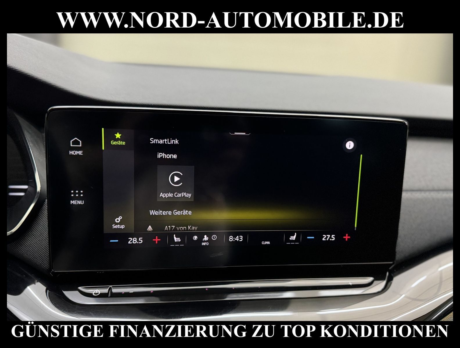 SKODA OCTAVIAAnsprechpartner:Jan Feldhus, Jonathan Steinfeld, Tom Bijman, Simon Wolff, Matthis Ullrich, Andreas Cirja* FAHRZEUG-NUMMER: M-0416-BD * LACKIERUNG: Schwarz-Magic Perleffekt * Deutsche Auslieferung * Modelljahr:2023 * UPE brutto 39.699 ¤ * Abgaskonzept, EU6 AP * Limousine * SportLine * Head-Up Display * Navigationsgerät-High * Parklenkassistent * Multipler Matrix-Beam * Wired & Wireless App-Connect * Müdigkeitserkennung * Mit Rückfahrkamerasystem * Climatronic ( 3-Zonen ) mit Klimabedienteil hinten * Geschwindigkeitsregelanlage plus Speed-Limiter * Ambiente und Umfeldbeleuchtung * Digitaler Radioempfang * Komforttelefonie mit LTE und Wireless charging * Schlüsselloses Schließ- und Startsystem''Keyless Advanced'' ohne Safesicherung * Mit Ausweichunterstützung mit Abbiegeassistent * Sitzheizung für Vorder-/u.Hintersitze, getrennt regelbar * Lendenwirbelstütze, manuell einstellbar in Vordersitzlehnen * Höheneinstellung, manuell, für Vordersitze * Rücksitzbank ungeteilt, Lehne geteilt umlegbar mit Mittelarmlehne * 3-Speichen-Sportmultifunktionsleder- lenkrad mit dem Heizung * Airbag FS und BFS, Knieairbag auf FS und BFS, mit BFS-Deaktivierung * Scheibenwischer-Intervallschaltung mit Licht/Regensensor * Leuchtweitenregulierung, autom/dynamisch mit Kurvenfahrlicht (AFS 1) * Fensterheber mit Komfortschaltung und Abschaltsicherung, elektrisch * Außenspiegel, automatisch abblendbar elektrisch anklapp-/einstell-/beheizbar * Sicherheitsinnenspiegel automatisch abblendbar(Inlay Spiegel) * Reifendruckkontrolle * Start/Stopp-Anlage mit Rekuperation * Leichtmetallräder 7 1/2J x 18 * Dynamiklenkung * 6-Gang-Schaltgetriebe * Nord-Automobile - Ihr starker und kompetenter Partner seit über 20 Jahren * Wir bieten Ihnen eine günstige Finanzierung auch ohne Anzahlung über die * AutoEuropaBank - Zweigniederlassung der Volkswagen Bank GmbH an * 20 XXL-Fotografien dieses Fahrzeuges finden Sie unter www.nord-automobile.de * Gerne unterbreiten wir Ihnen ein Angebot zum Ankauf Ihres bisherigen Fahrzeuges * Beim Export-Geschäft führen wir die Ausfuhranmeldung und Zulassung für Sie durch * Wir sind Meister-Werkstatt und zertifizierte DEKRA-Prüfstelle * Lernen Sie uns kennen - wir freuen uns auf Ihren Besuch * Keine Haftung für Druck & Schreibfehler. ... Klima vorn+hinten, Klimaautomatik, Navigationssystem, Sitzheiz. vorn, Sitzheiz. hinten, Regensensor, ESP, ASR, ABS, Parktronic System, Multifunktionslenkr., Radio, Bordcomputer, Tempomat, Spiegel autom. abblendbar, beheizte Frontscheibe, Spiegel beheizbar, Scheinwerferreinigung, elektr. Fensterheber vorn+hinten, elektr. WFS, Keyless-Go, ZV mit Fernb., Fahrerairb., Beifahrerairb., Seitenairbag vorn, Kopfairbags, Leichtmetallfelgen, Nichtraucher, Nebelscheinw., Servolenkung, Sportfahrwerk, Sportsitze/Schalensitze, Spoiler, Traktionskontr., Sitzbank teilbar, Lenksaeule einstellbar, abklappb. Spiegel, elektr. verstellb. Spiegel, Gurtstraffer, Scheibenbr., Mittelarmlehne, Lendenwirbelst., Sitzhoehenv., Sitzheizung Fahrer + Beif., Lichtsensor, 12 V Zusatzanschluss, aus erster Hand, Schadstoffklasse: Euro 6, Diesel, Frontantrieb, Lederlenkrad, Lederschaltknauf, HSN 8004, TSN AWG, Verbrauch: 3,8/5,2/3,0 l/100 km (komb/inn/auß), CO2: 113 g/km, Partikelfilter, HU + AU wird vor Verkauf erneuert, Feinstaubplakette: 4 - Grün |