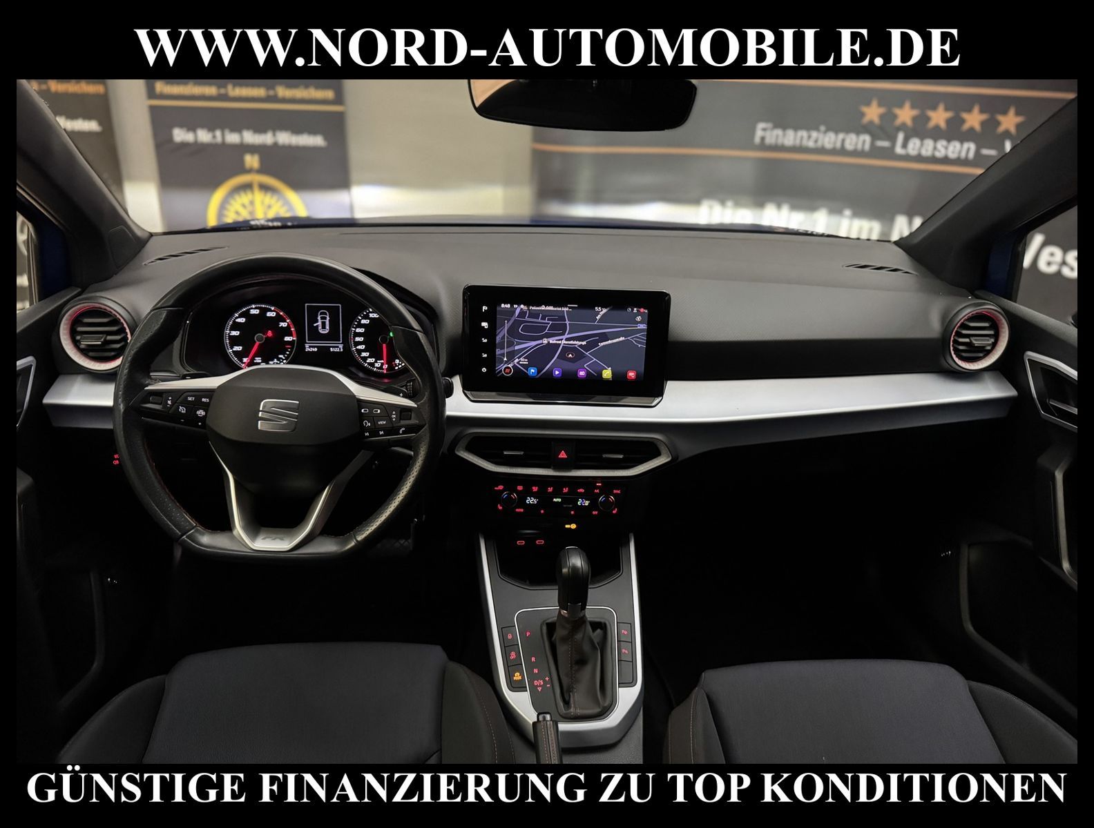 KomfortExtrasUnterhaltungBeschreibungwww.nord-automobile.de Seat Arona FR Beats 1.0 TSI 81kW 7-Gang Automatikgetriebe 4 TürenAnsprechpartner: Jan Feldhus, Jonathan Steinfeld, Tom Bijman, Simon Wolff, Matthis Ullrich, Andreas Cirja* FAHRZEUG-NUMMER: M-7831-BD * LACKIERUNG: Saphirblau * Modelljahr:2022 * UPE brutto 30.394 ¤ * Deutsche Auslieferung * Schadstoffarm nach Abgasnorm Euro 6d * Navigationssystem * Sitzheizung für Vordersitze getrennt regelbar * Anhängevorrichtung, abnehmbar und abschließbar * Müdigkeitserkennung * LED- Hauptscheinwerfer mit Linse * Klimaautomatik * Spurhalteassistent * Mirror Link plus Wireless ''App'' plus RSE (Vorbereitung) * BeatsAudio Soundsystem * Digitaler Radioempfang * Geschwindigkeitsregelanlage plus Speed-Limiter * Multifunktionsanzeige/Bordcomputer ''Medium'' * Soundsystem mit Subwoofer ''branded'' * Front Assist inkl. City ANB ohne ACC * Lenksäule, axial u.vertikal einstellbar * Höheneinstellung, manuell, für Vordersitze * Ledersportmultifunktionslenkrad mit Tiptronic * Tagesfahrlicht mit Assistenzfahrlicht u.Coming- Leaving-home Funktion manuell * Scheiben seitlich in Wärmeschutzver- glasung, ab B-Säule und hinten dunkel eingefärbt * Leuchtweitenregulierung, autom.dynamisch * Nebelscheinwerfer mit Abbiegelicht integriert * Rücksitzbank ungeteilt, Lehne geteilt umlegbar * Scheibenwischer-Intervallschaltung mit Licht/Regensensor * Winterpaket: Sitzheizung vorne, Scheinwerfer-Reinigungsanlage, beheizbare Scheibenwaschdüsen, beheizbare Aussenspiegel * LED-Kennzeichenbeleuchtung * Ambientelicht Ausführung 1 * Fensterheber mit Komfortschaltung und Abschaltsicherung * Seitenscheiben hinten und Heckscheibe abgedunkelt * Wegfahrsperre (elektronisch) * Sicherheitsinnenspiegel automatisch abblendbar * Außenspiegel, elektrisch anklappbar und elektrisch einstell-/beheizbar * Dachreling silber * Reifendruckkontrolle * Kindersitzverankerung für Kindersitzsystem ISO FIX * Seitenairbag vorn, mit Kopfairbag * Zentralverriegelung m. Funkfernbedienung Innenbetätigung ohne Safesicherung * Servolenkung * 7-Gang-Automatikgetriebe * Start/Stopp-Anlage mit Rekuperation * Airbag FS und BFS, ohne Knieairbag, mit BFS-Deaktivierung * LED Scheinwerfer * Leichtmetallräder 6 1/2J x 17 * Nord-Automobile - Ihr starker und kompetenter Partner seit über 30 Jahren * Wir bieten Ihnen eine günstige Finanzierung auch ohne Anzahlung über die * AutoEuropaBank - Zweigniederlassung der Volkswagen Bank GmbH an * 20 XXL-Fotografien dieses Fahrzeuges finden Sie unter www.nord-automobile.de * Gerne unterbreiten wir Ihnen ein Angebot zum Ankauf Ihres bisherigen Fahrzeuges * Beim Export-Geschäft führen wir die Ausfuhranmeldung und Zulassung für Sie durch * Wir sind Meister-Werkstatt und zertifizierte GTÜ-Prüfstelle * Lernen Sie uns kennen - wir freuen uns auf Ihren Besuch * Keine Haftung für Druck & Schreibfehler. ... Klima, Klimaautomatik, Automatik, Navigationssystem, Sitzheiz. vorn, Regensensor, ESP, ABS, Parktronic System, Multifunktionslenkr., Soundsystem, Bordcomputer, Tempomat, Spiegel beheizbar, elektr. Fensterheber vorn, elektr. WFS, ZV mit Fernb., Fahrerairb., Beifahrerairb., Seitenairbag vorn, Kopfairbags, Leichtmetallfelgen, Nichtraucher, Anhaengerk., Nebelscheinw., Servolenkung, Dachreling, abklappb. Spiegel, Sitzhoehenv., Sitzheizung, Lichtsensor, aus erster Hand, Schadstoffklasse: Euro 6, Frontantrieb, Lederlenkrad, HSN 7593, TSN ARJ, Verbrauch: 4,9/5,7/4,5 l/100 km (komb/inn/auß), CO2: 136 g/km, Feinstaubplakette: 4 - Grün |