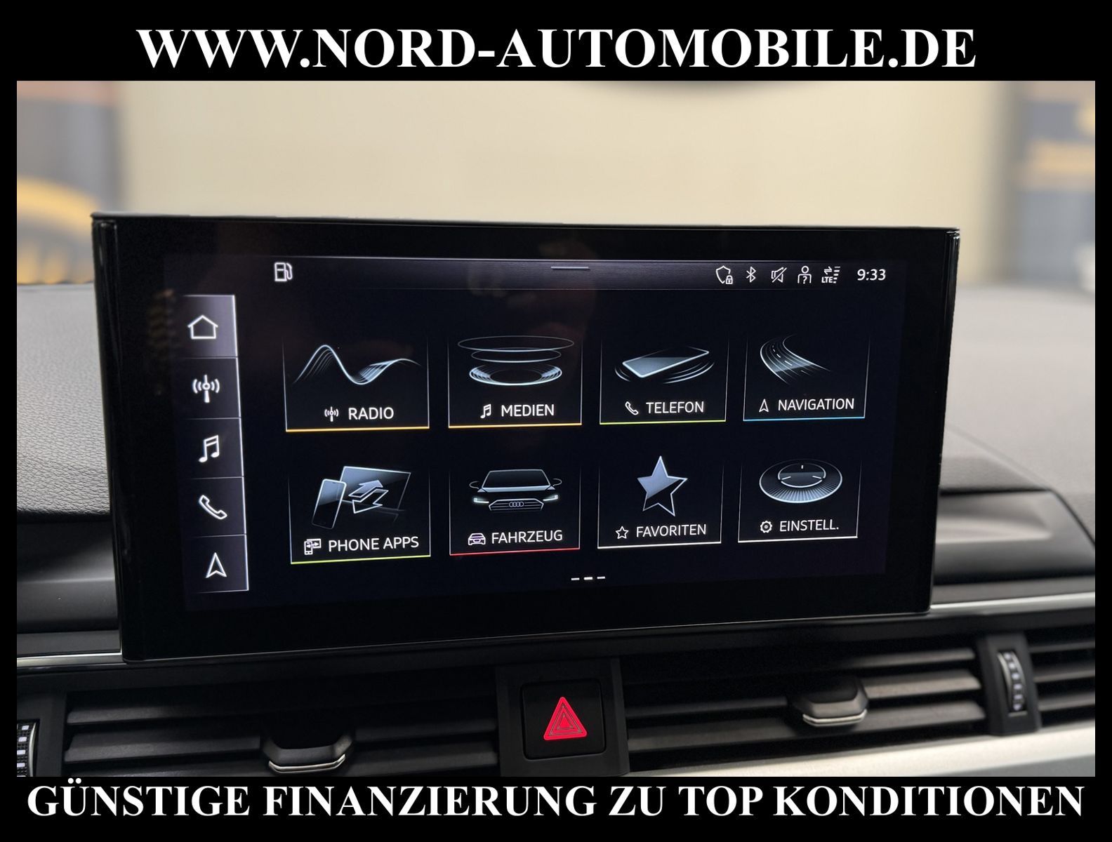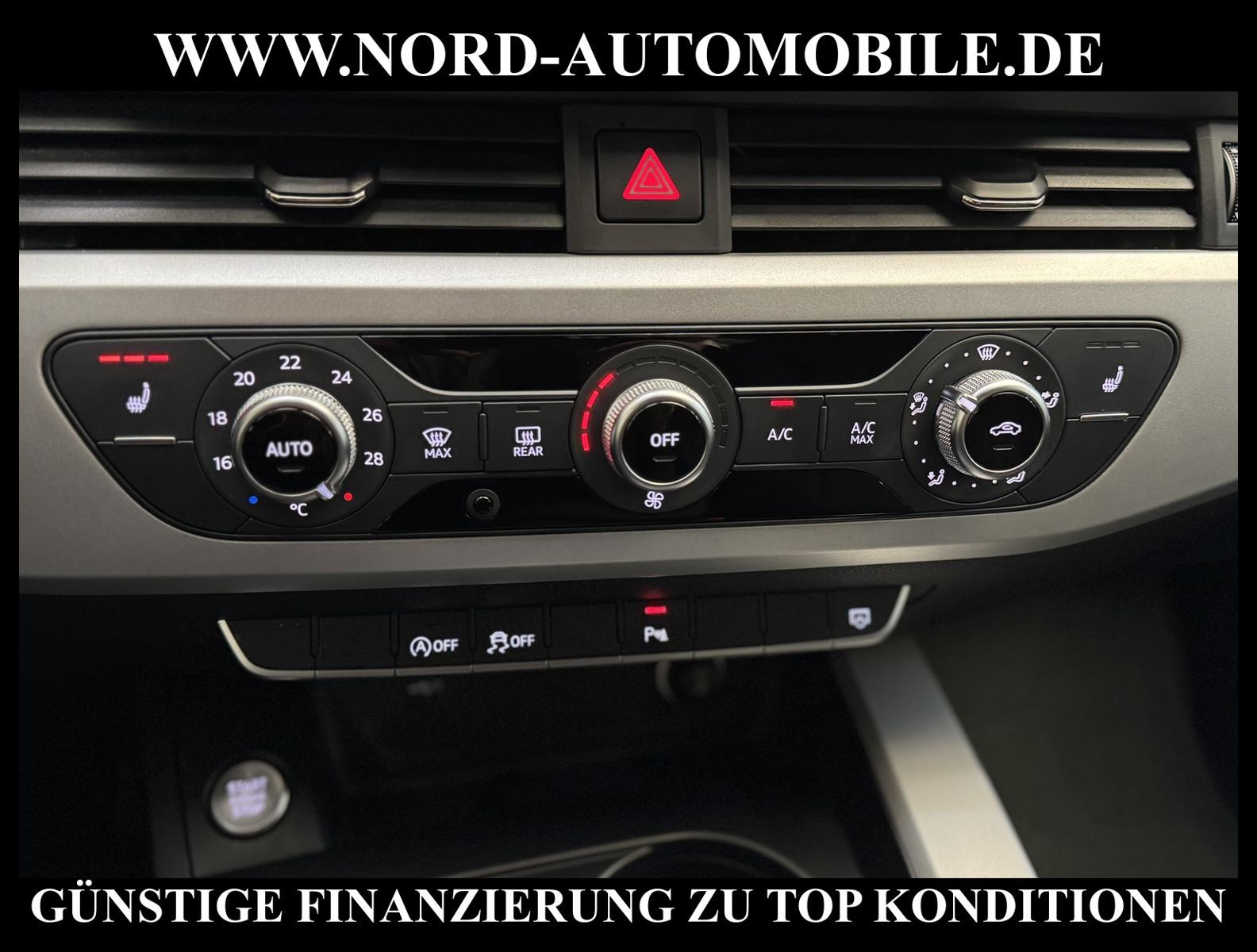 KomfortExtrasUnterhaltungBeschreibungwww.nord-automobile.de AUDI A4 AvantAnsprechpartner:Jan Feldhus, Jonathan Steinfeld, Tom Bijman, Simon Wolff, Matthis Ullrich, Andreas Cirja* FAHRZEUG-NUMMER: M-1200-BD * LACKIERUNG:Mythosschwarz Metallic * Deutsche Auslieferung * Mdelljahr:2022 * UPE brutto 45.261 ¤ * Abgaskonzept, EU6 AP * Audi Smartphone Interface * Einparkhilfe plus * Sonnenschutzrollo für Seitenscheiben hinten * Sitzheizung für Vordersitze getrennt regelbar * Navigationsgerät-High * Telefonvorbereitung für Handy * Digitaler Radioempfang * Einparkhilfe vorn und hinten * Multifunktionsanzeige/Bordcomputer''TOP'' * Geschwindigkeitsregelanlage plus Speed-Limiter * LED-Scheinwerfer * Komfortschlüssel inkl. sensorgesteuerterGepäckraumentriegelung inkl. Gepäckraum-klappe elektrisch öffnend und schließend * Ledersportmultifunktionslenkrad * Höheneinstellung, manuell, für Vordersitze * Rücksitzbank ungeteilt, Lehne geteilt umlegbar (dreiteilig) mit Mittelarmlehne * Zentralverriegelung ''Keyless-Entry''ohne Safesicherung * Servoschließung Heckklappe * Glas im Fond dunkel eingefärbt(Venus 35/ Privacy)vorn Wärmeschutzglas (grün) * Fernlichtassistent * Sicherheitsinnenspiegel automatisch abblendbar * Airbag FS und BFS, ohne Knieairbag, mit BFS-Deaktivierung * Außenspiegel, automatisch abblendbar elektrisch anklapp-/einstell-/beheizbar * Reifendruckkontrolle * Start/Stopp-Anlage mit Rekuperation * Leichtmetallräder 7 1/2J x17 * 7-Gang-Automatikgetriebe * Nord-Automobile - Ihr starker und kompetenter Partner seit über 30 Jahren * Wir bieten Ihnen eine günstige Finanzierung auch ohne Anzahlung über die * AutoEuropaBank - Zweigniederlassung der Volkswagen Bank GmbH an * 20 XXL-Fotografien dieses Fahrzeuges finden Sie unter www.nord-automobile.de * Gerne unterbreiten wir Ihnen ein Angebot zum Ankauf Ihres bisherigen Fahrzeuges * Beim Export-Geschäft führen wir die Ausfuhranmeldung und Zulassung für Sie durch * Wir sind Meister-Werkstatt und zertifizierte GTÜ-Prüfstelle * Lernen Sie uns kennen - wir freuen uns auf Ihren Besuch * Keine Haftung für Druck & Schreibfehler. ... Klima, Klimaautomatik, Automatik, Navigationssystem, Sitzheiz. vorn, Regensensor, ESP, ABS, Parktronic System, Multifunktionslenkr., Radio, Bordcomputer, Tempomat, Spiegel autom. abblendbar, Spiegel beheizbar, elektr. Fensterheber vorn, elektr. WFS, Keyless-Go, Beifahrerairb., Seitenairbag vorn, Kopfairbags, Leichtmetallfelgen, Nichtraucher, Servolenkung, Sitzbank teilbar, Dachreling, abklappb. Spiegel, elektr. verstellb. Spiegel, Kopfst. vorn, Mittelarmlehne, Sitzheizung Fahrer + Beif., Lichtsensor, Waermeschutzvergl., aus erster Hand, Schadstoffklasse: Euro 6, Frontantrieb, Lederlenkrad, HSN 0588, TSN BNW, Verbrauch: 6,0/7,5/5,1 l/100 km (komb/inn/auß), CO2: 145 g/km, Partikelfilter, HU + AU wird vor Verkauf erneuert, Feinstaubplakette: 4 - Grün |